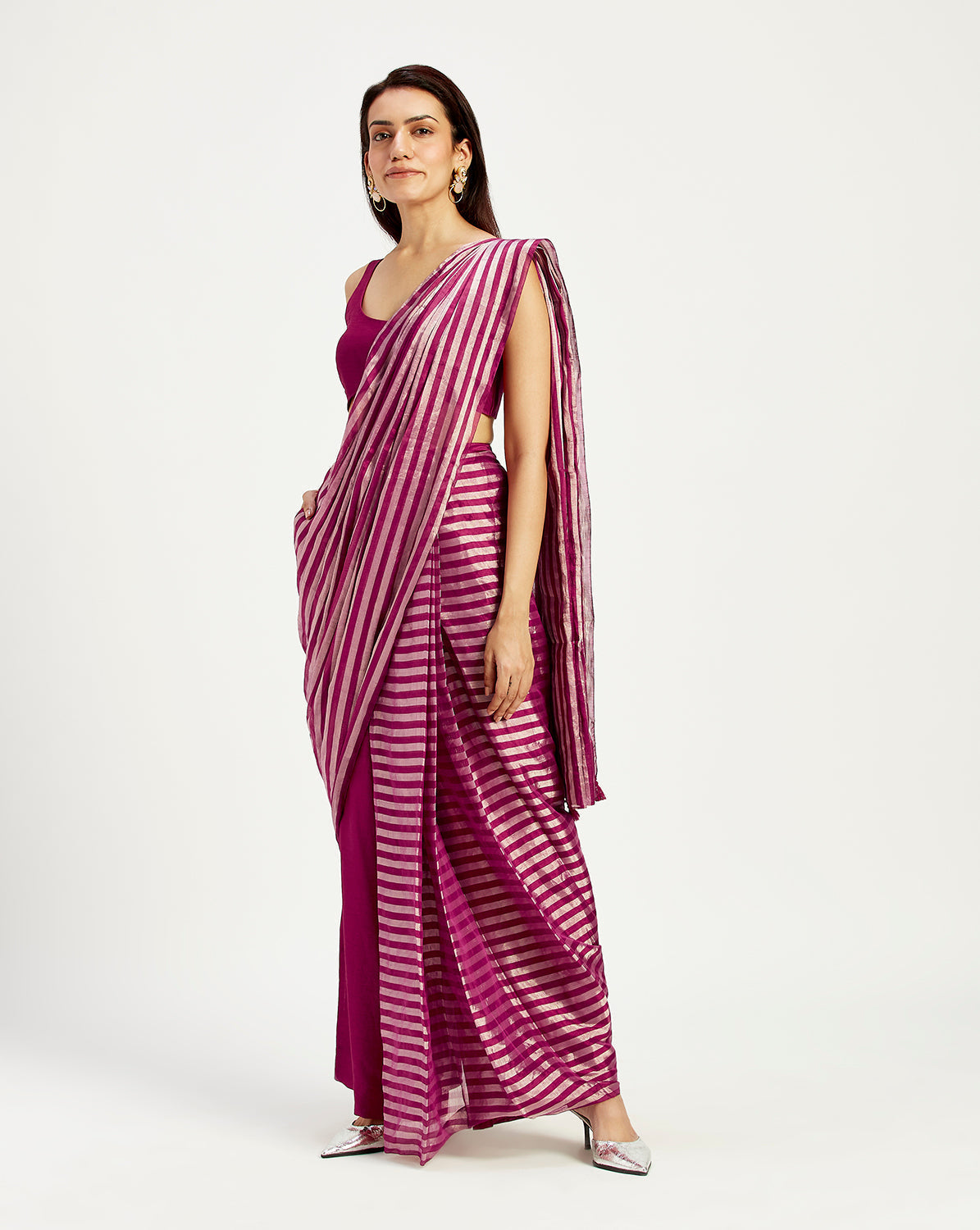 Unleash your inner goddess with Dani - a striking 3 piece techno Saree paired with sleek pants, and a blouse. Made from high-quality materials and expertly crafted, this set combines traditional and modern elements for a truly unique and luxurious look. Elevate your wardrobe and turn heads with Dani.