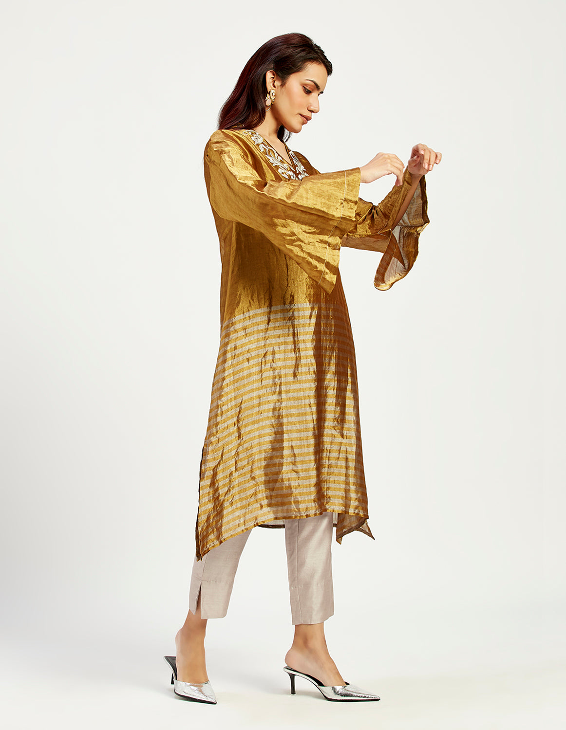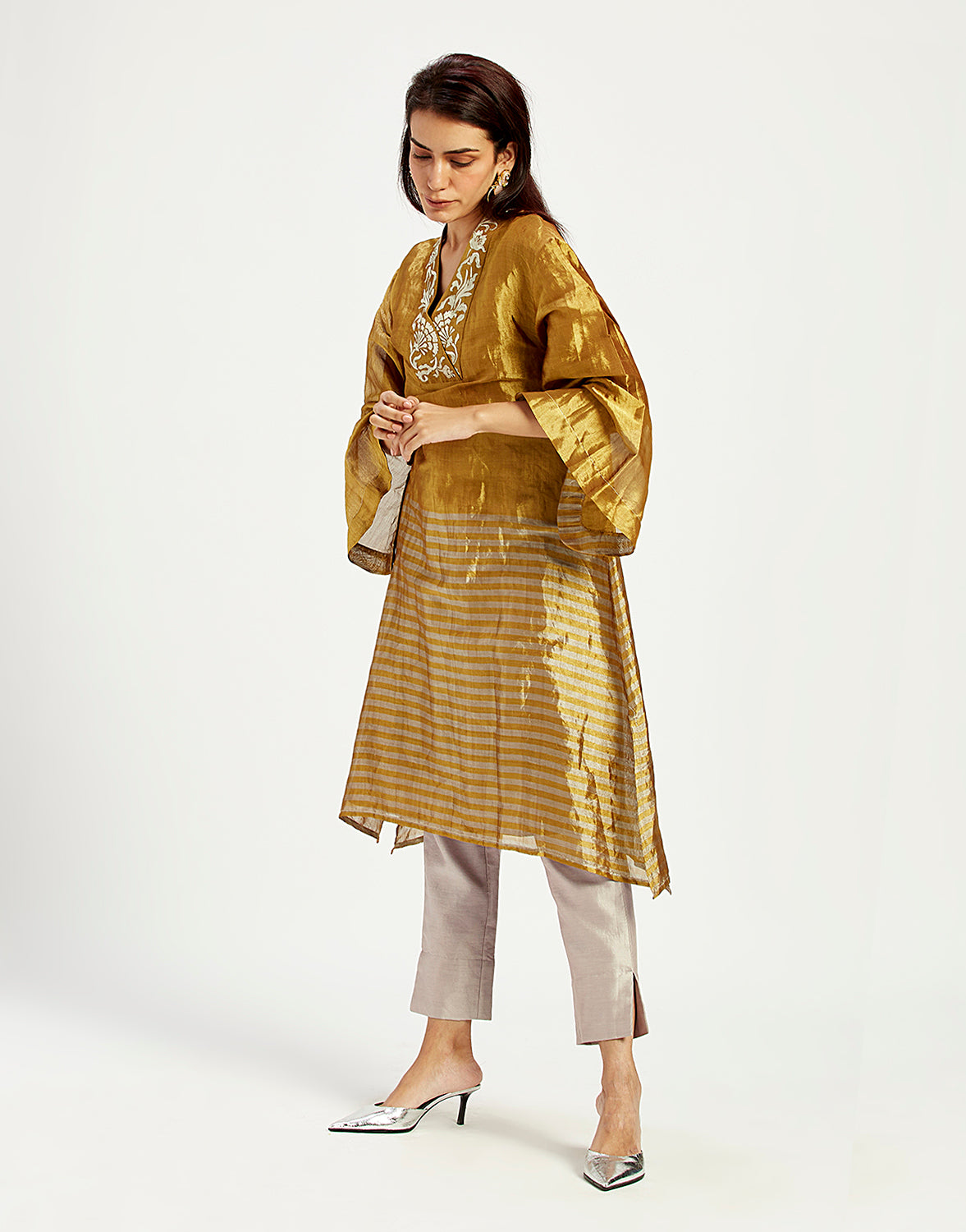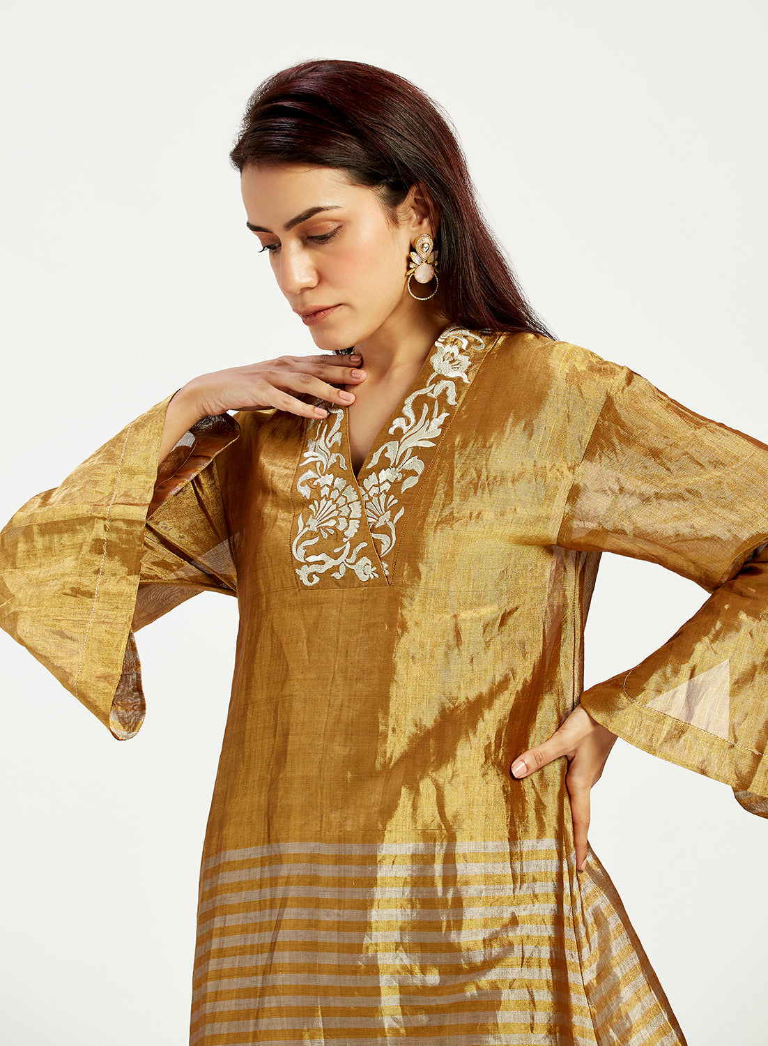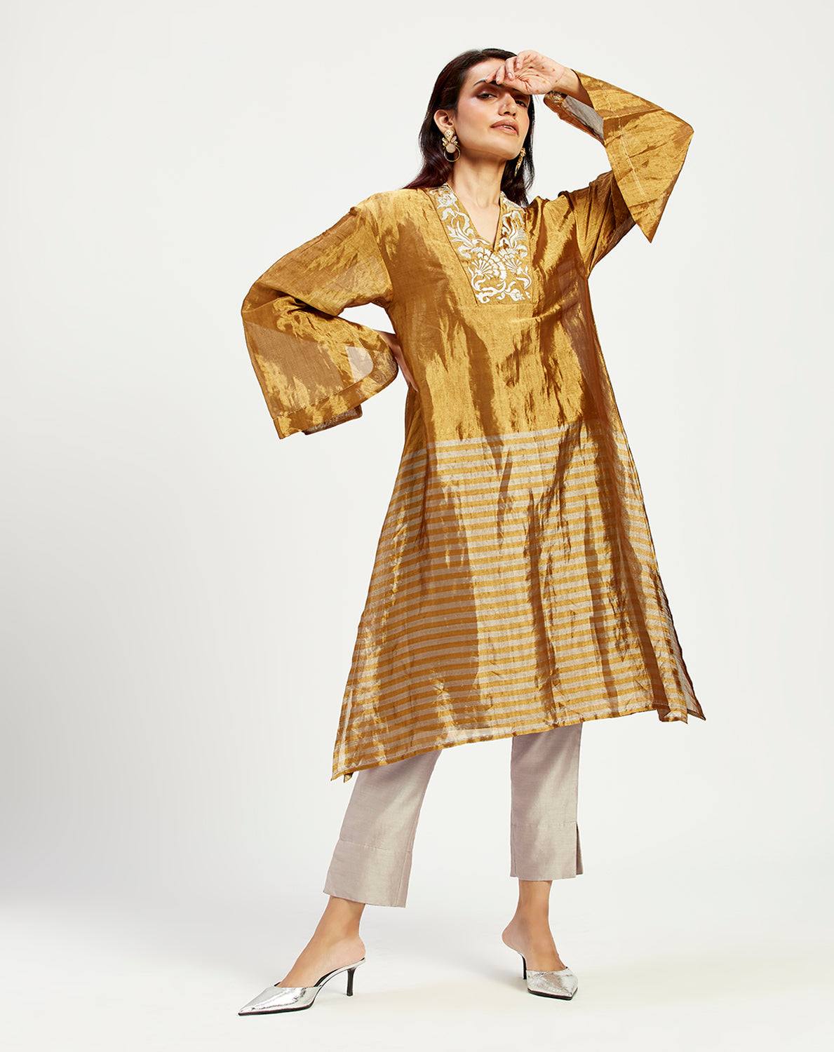 Introducing the Nambia - Golden Sun Elegant Tunic and Pants Set. Embrace elegance and luxury with this sophisticated set that features a golden sun design. Perfect for special occasions or elevated everyday wear. Step into a world of art and fashion with this exclusive set.