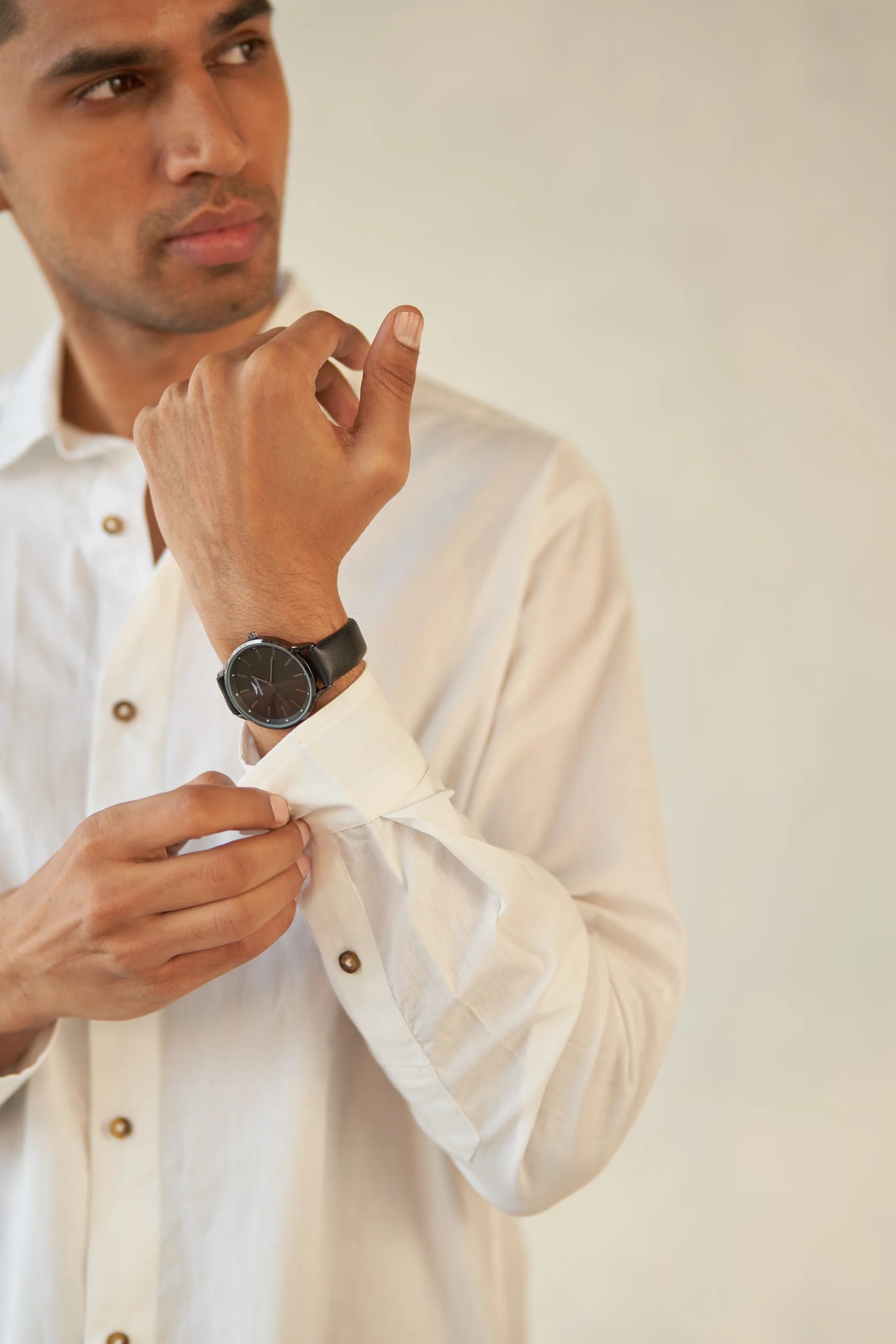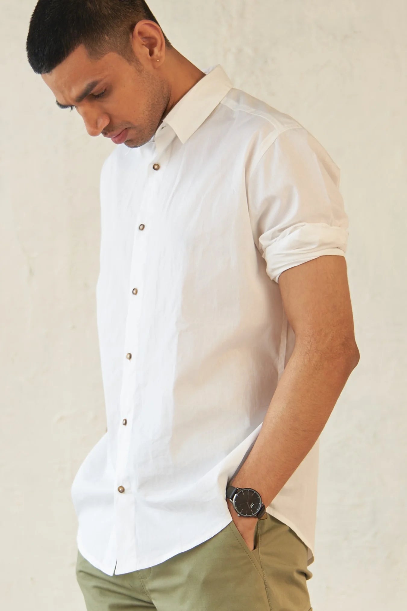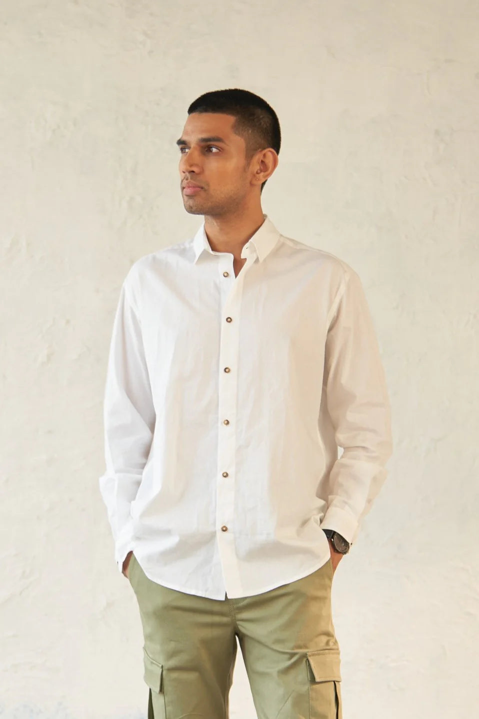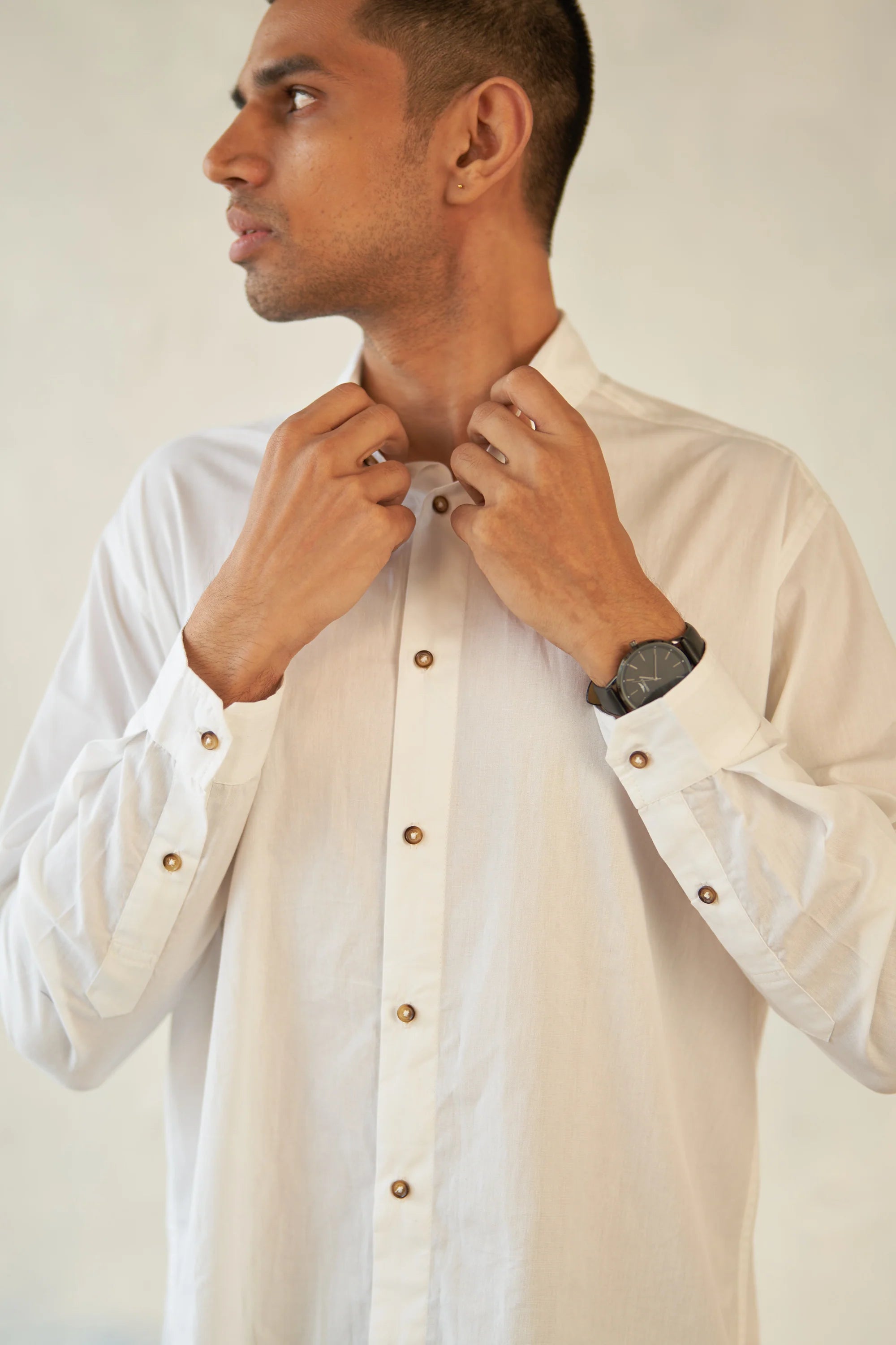 An everlasting white shirt is a perennial staple in any gentleman's wardrobe. Canoopi presents its own take on this classic essential, featuring a subtle twist with smaller size contrast color buttons, adding a unique touch for you to personalize your style. Crafted in a regular fit, this shirt boasts curved sides and hem. Embrace versatility and sophistication with this wardrobe essential from Canoopi.