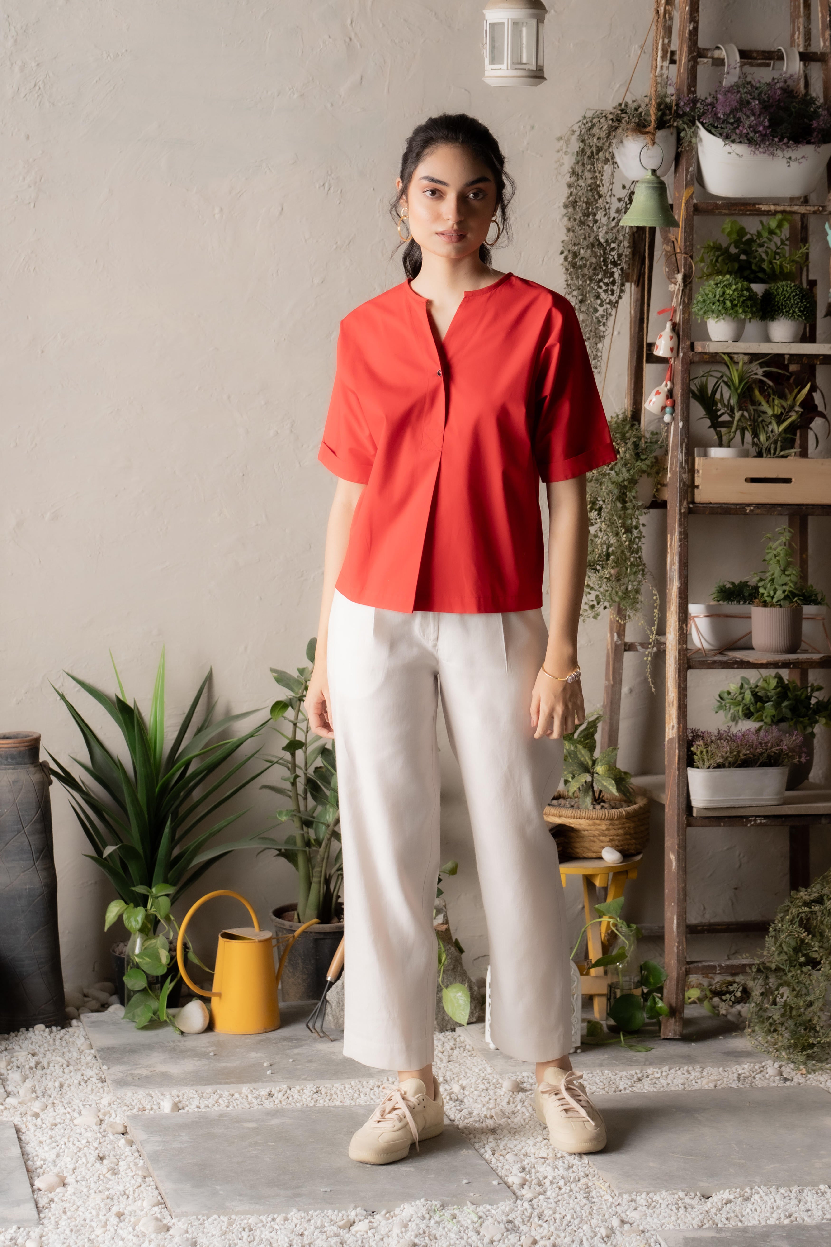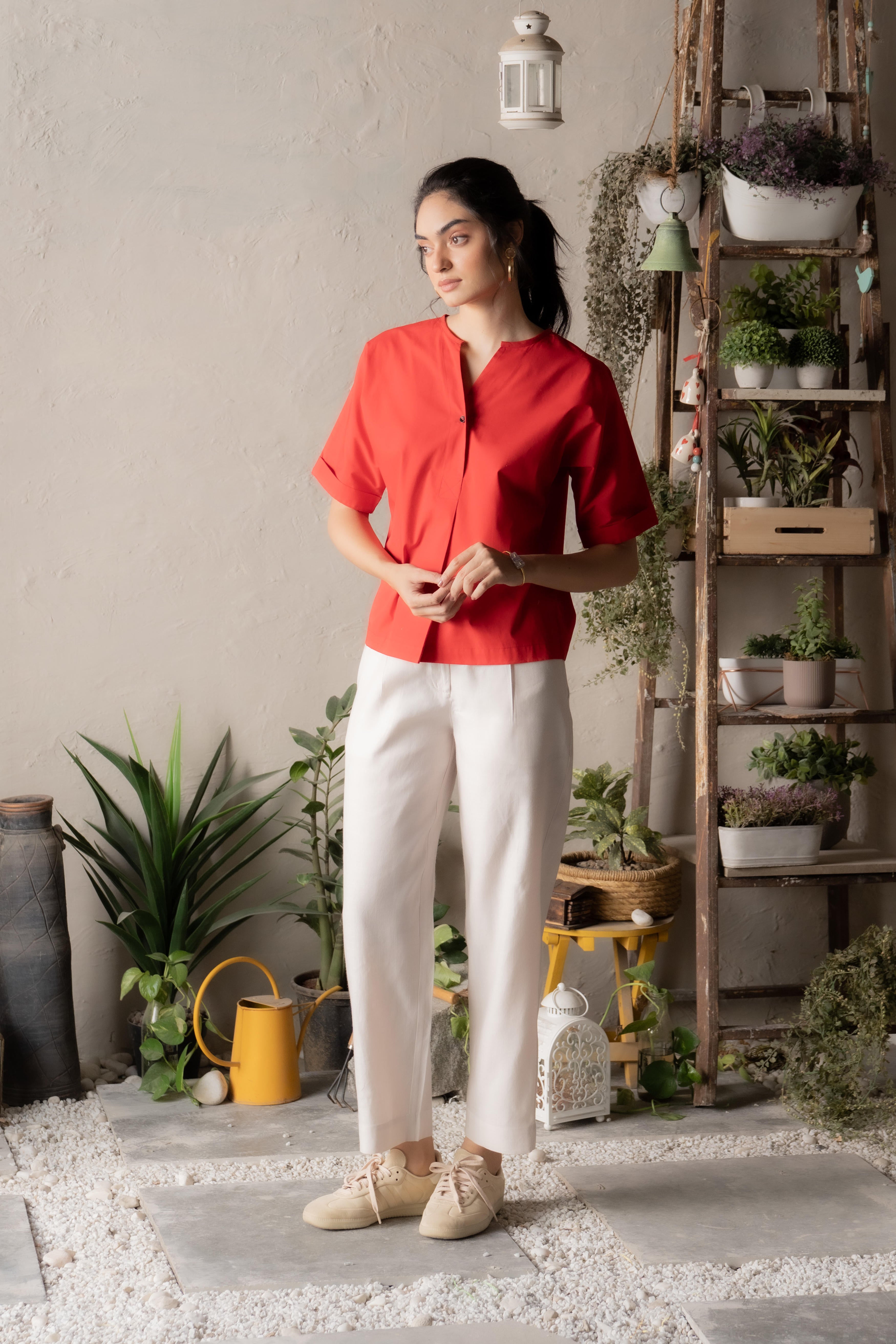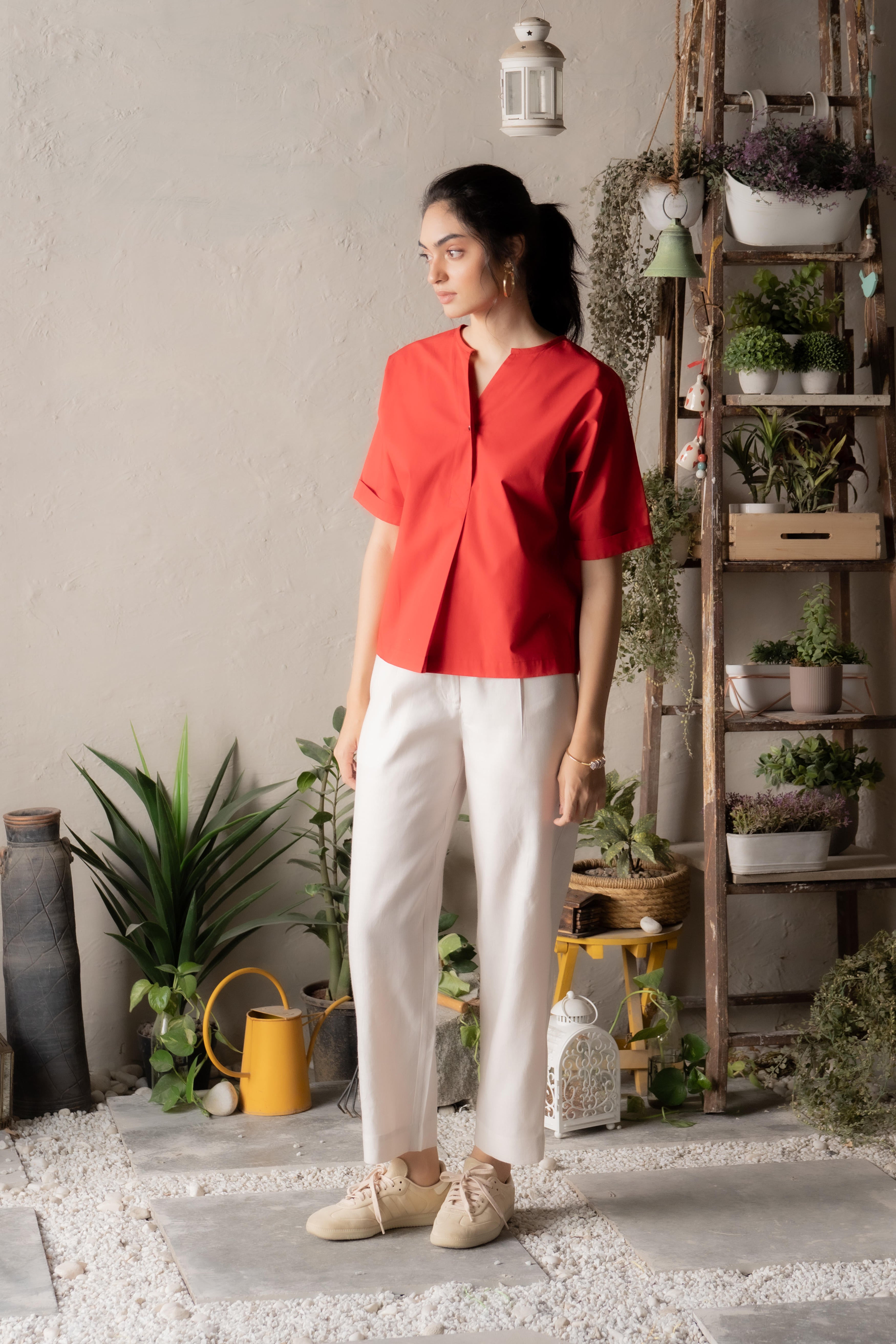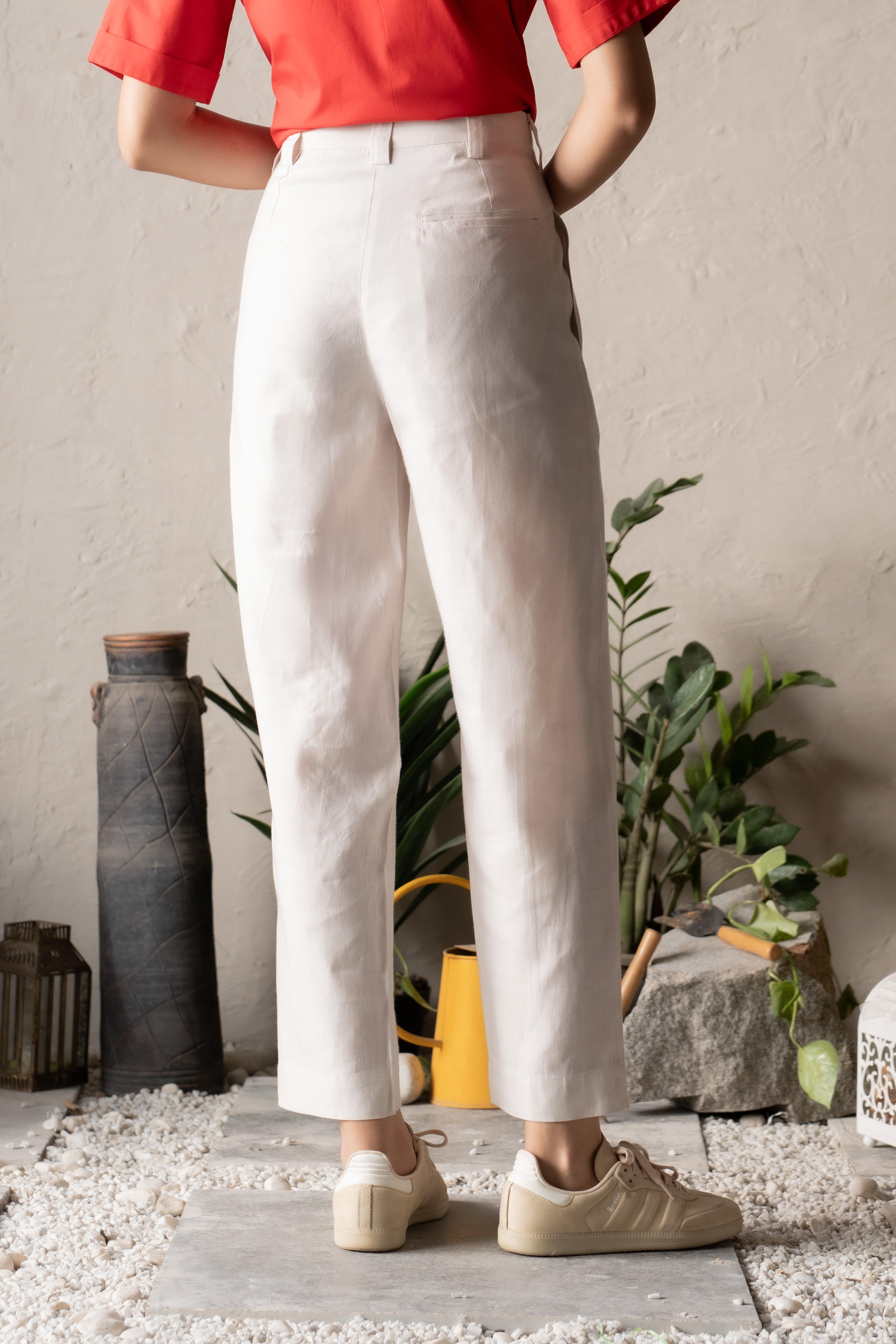 The Aurelia Glaze Set is a testament to refined everyday style. The top, crafted with a distinctive front box pleat detail, strikes the perfect balance between relaxed comfort and sophisticated charm. Paired with Glazed White Pleated Pants, designed in a crisp white hue with a subtle grey glaze, the ensemble exudes understated elegance. The high-waisted pants offer a flattering narrow fit, enhanced by polished pleated detailing and practical side pockets for added functionality. This set is ideal for both casual and semi-formal occasions, ensuring effortless style all day long.