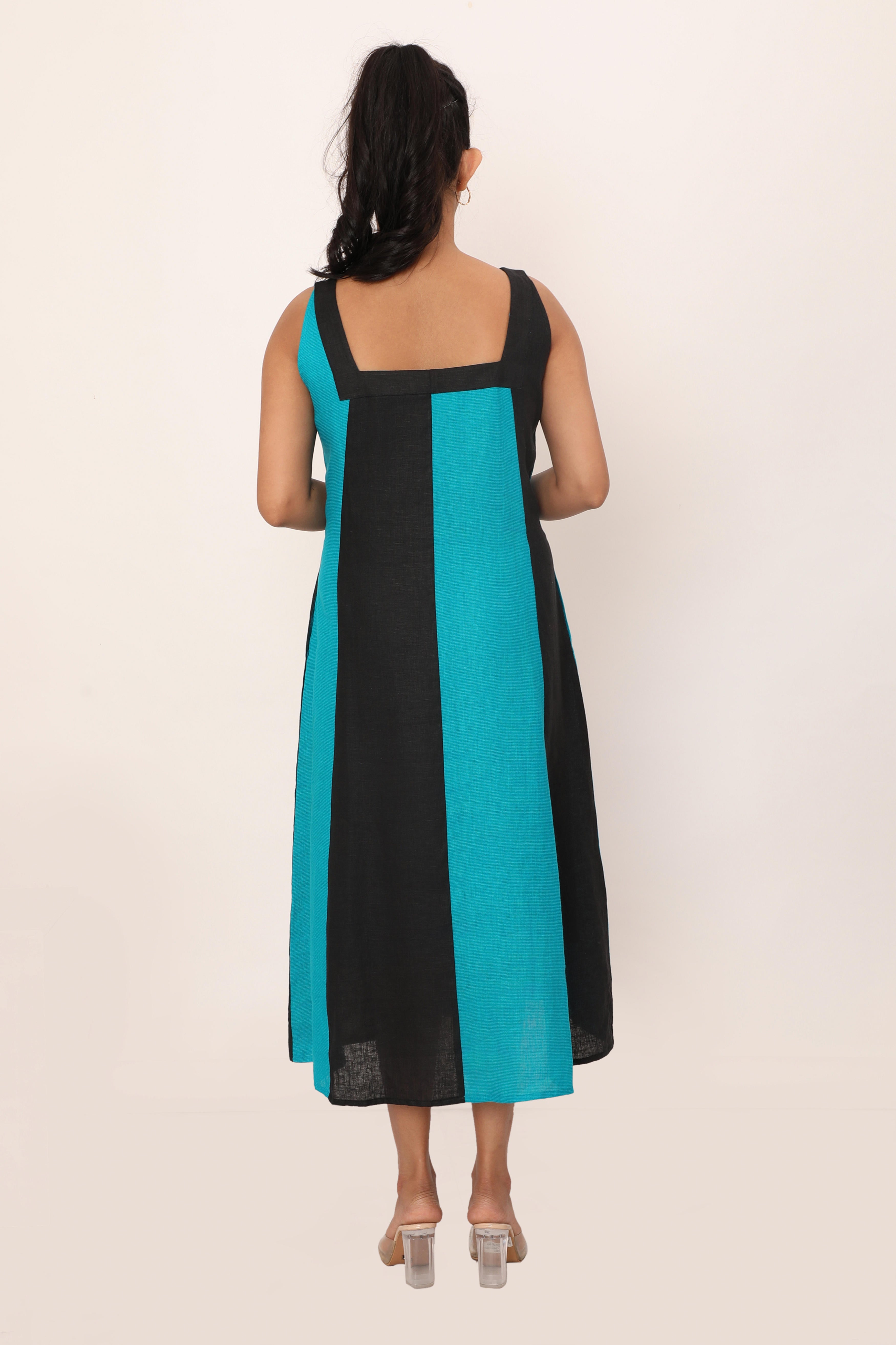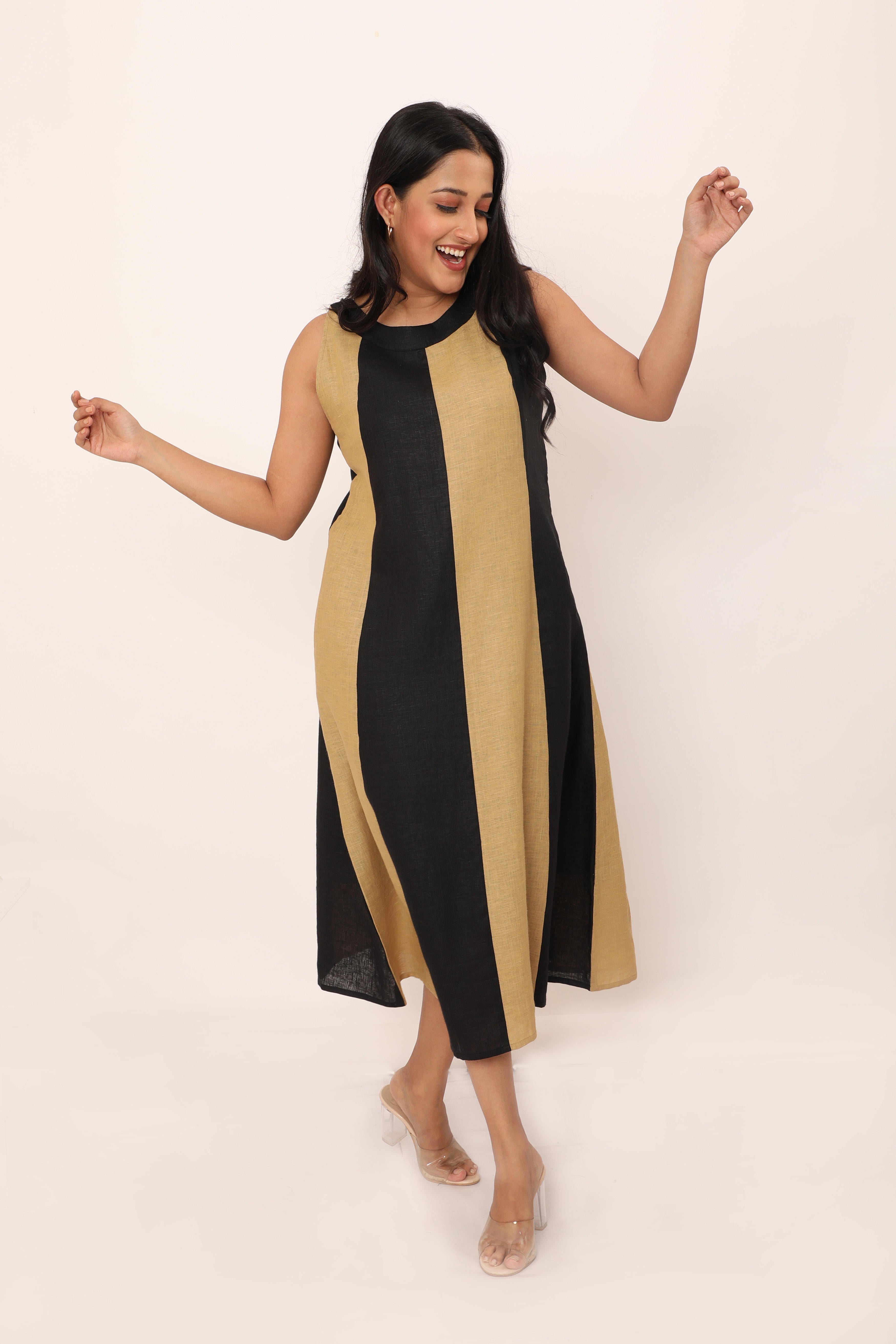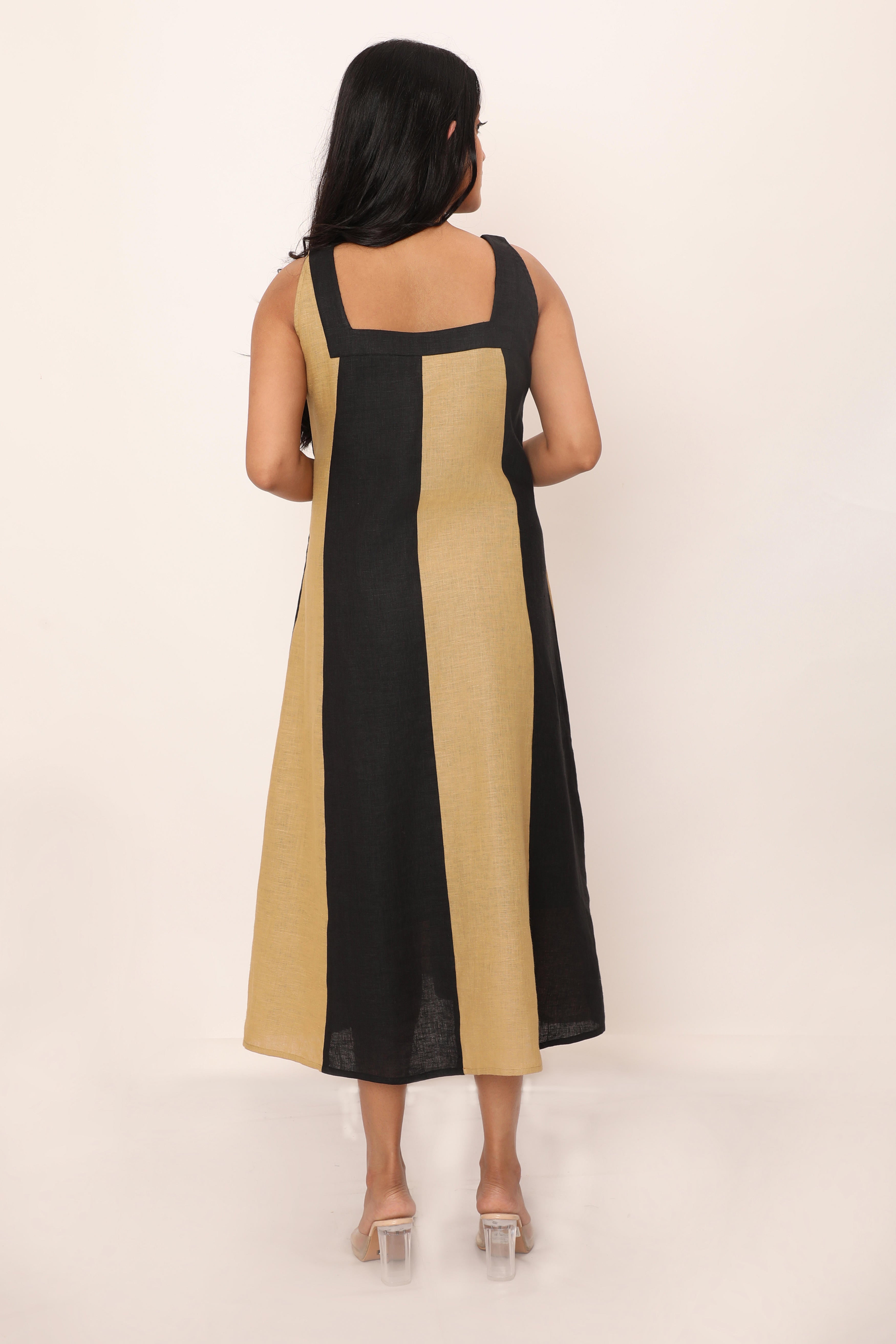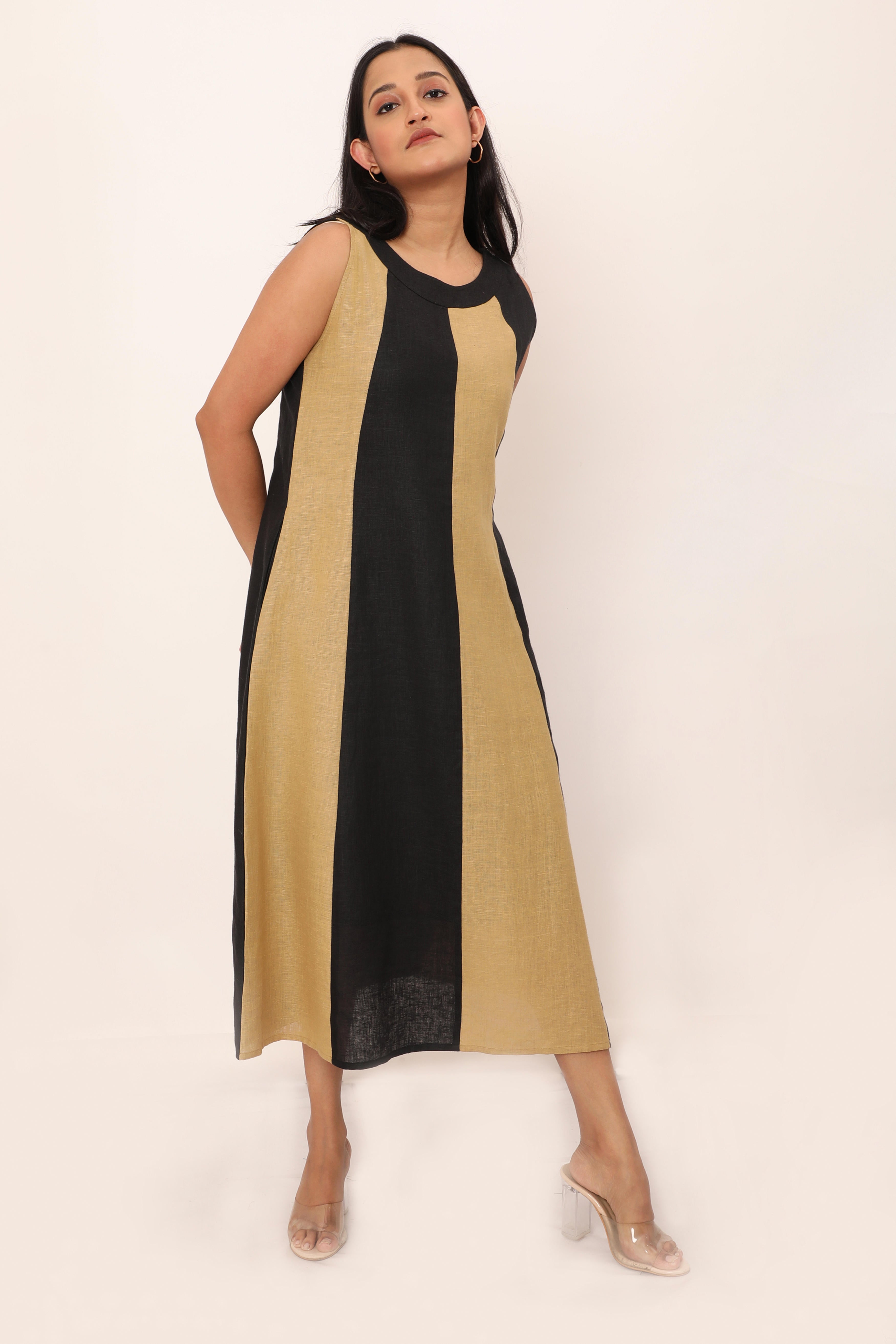 Our Aurora dress combines timeless elegance with a bold, modern flair. Its structured A-line silhouette is brought to life with striking colour-blocked panels that offer a flattering vertical design. Crafted in breathable, lightweight linen, this dress is perfect for those who appreciate both comfort and style. The sleeveless design and relaxed fit make it a versatile option for a range of occasions. Paired with statement heels or casual flats, Aurora effortlessly transitions from day to night, embodying confidence and simplicity in every step.