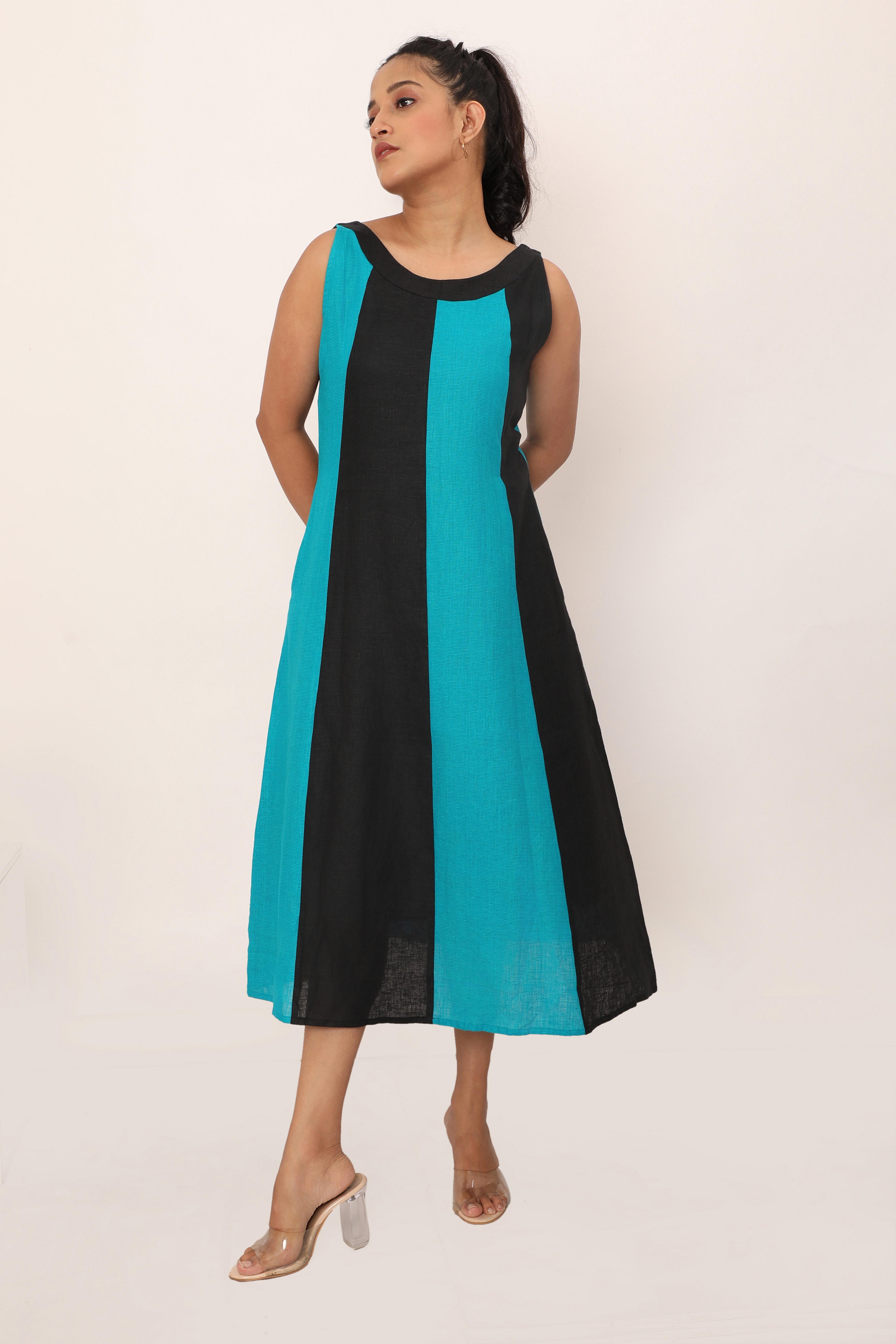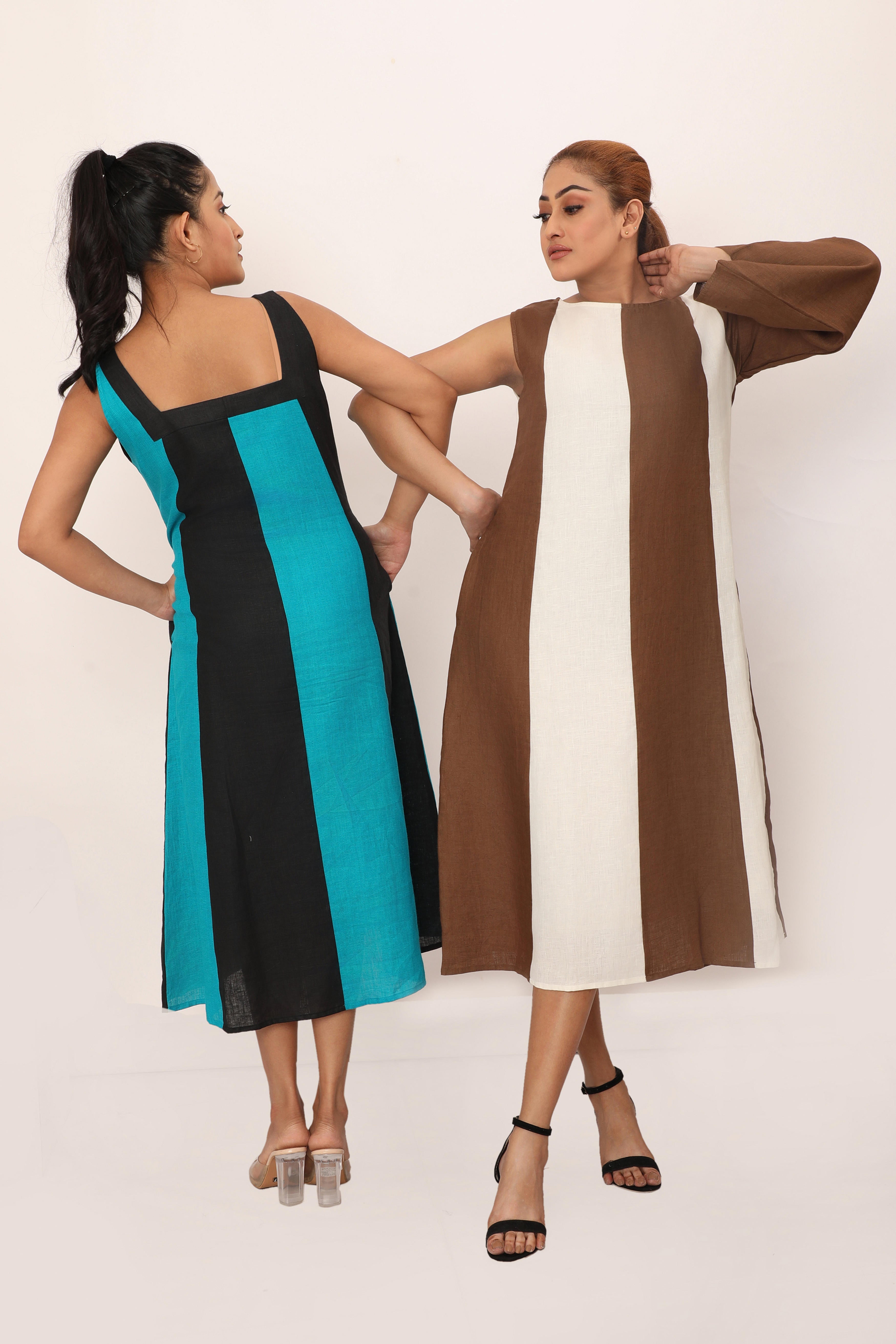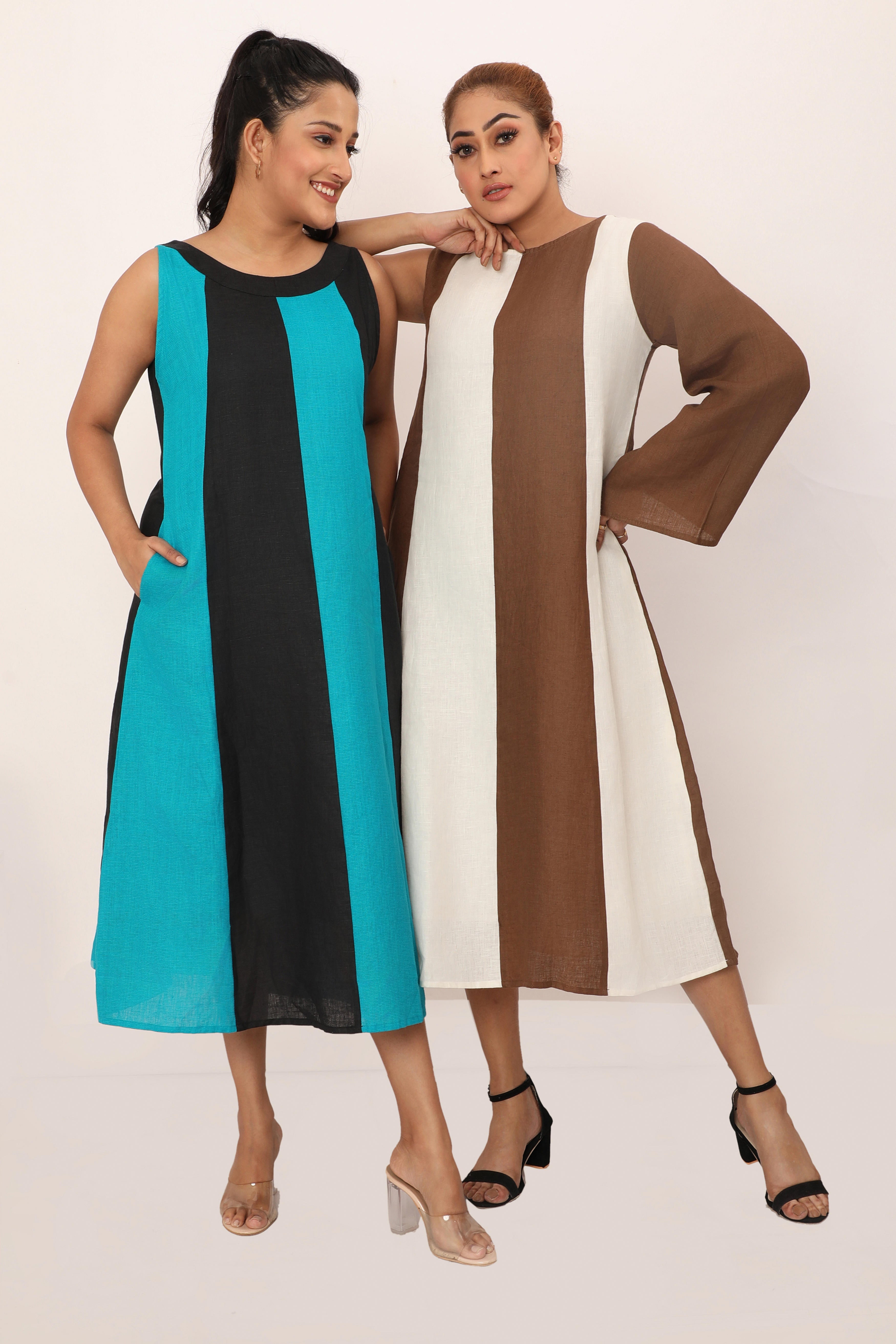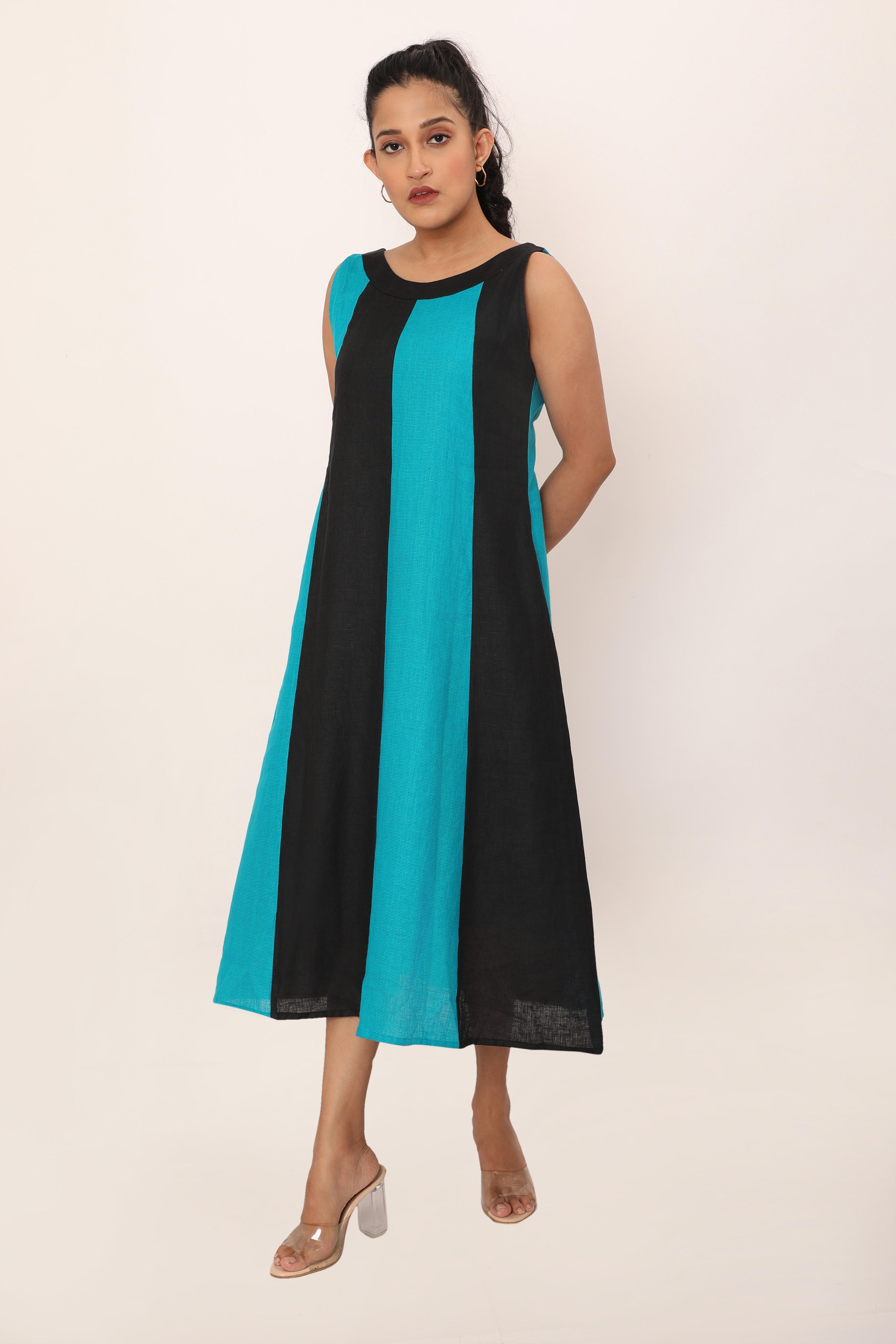 Our Aurora dress combines timeless elegance with a bold, modern flair. Its structured A-line silhouette is brought to life with striking colour-blocked panels that offer a flattering vertical design. Crafted in breathable, lightweight linen, this dress is perfect for those who appreciate both comfort and style. The sleeveless design and relaxed fit make it a versatile option for a range of occasions. Paired with statement heels or casual flats, Aurora effortlessly transitions from day to night, embodying confidence and simplicity in every step.