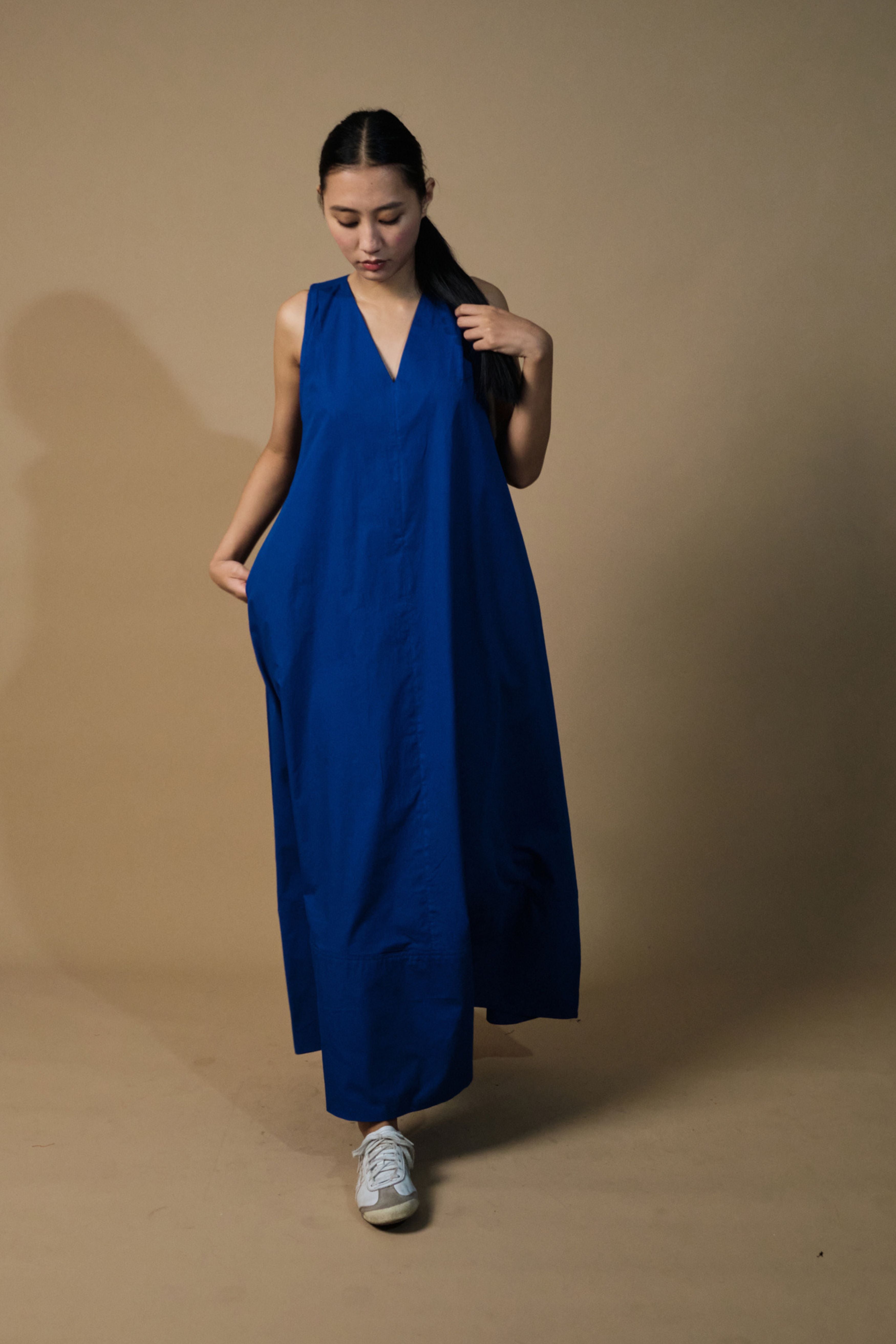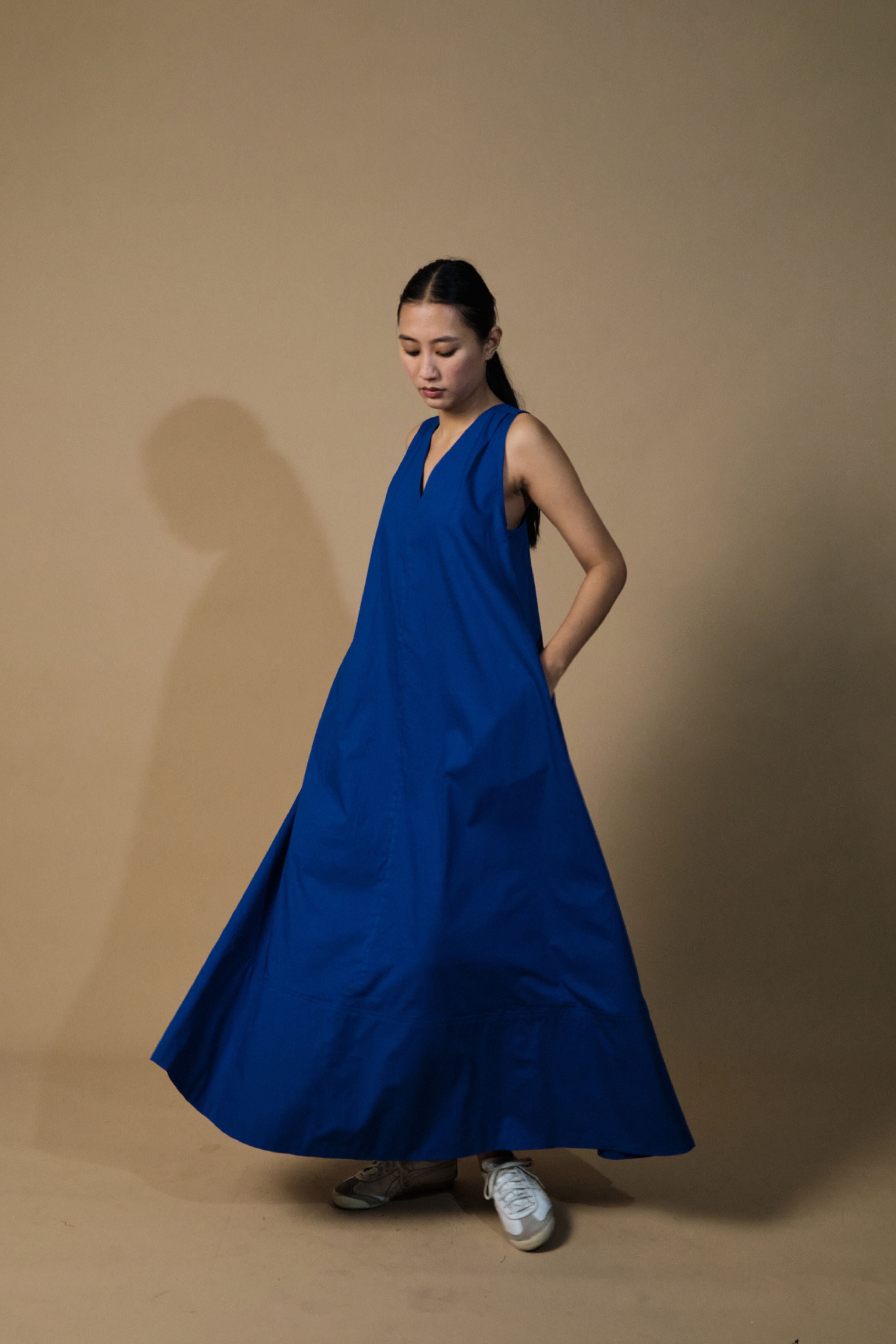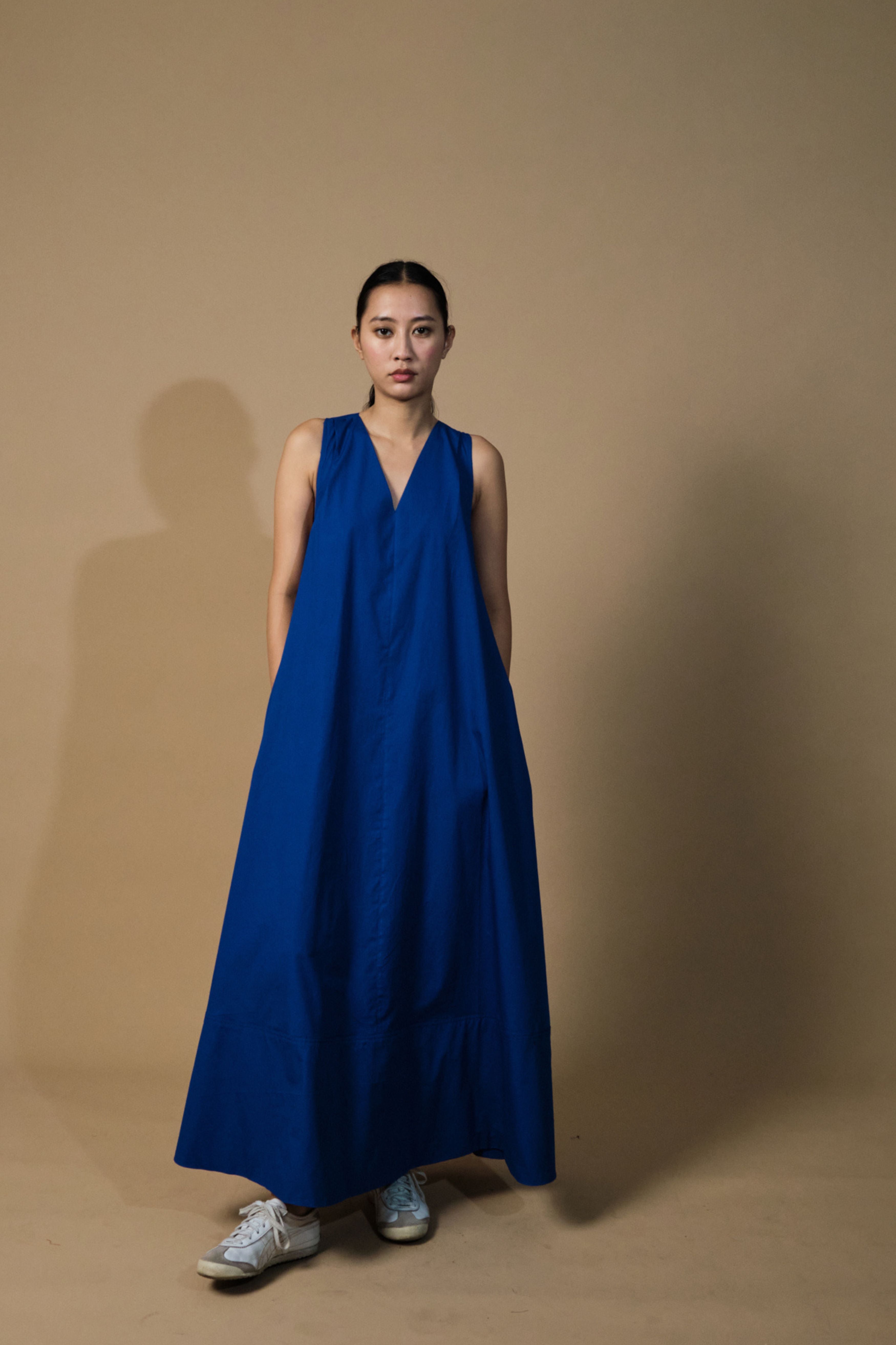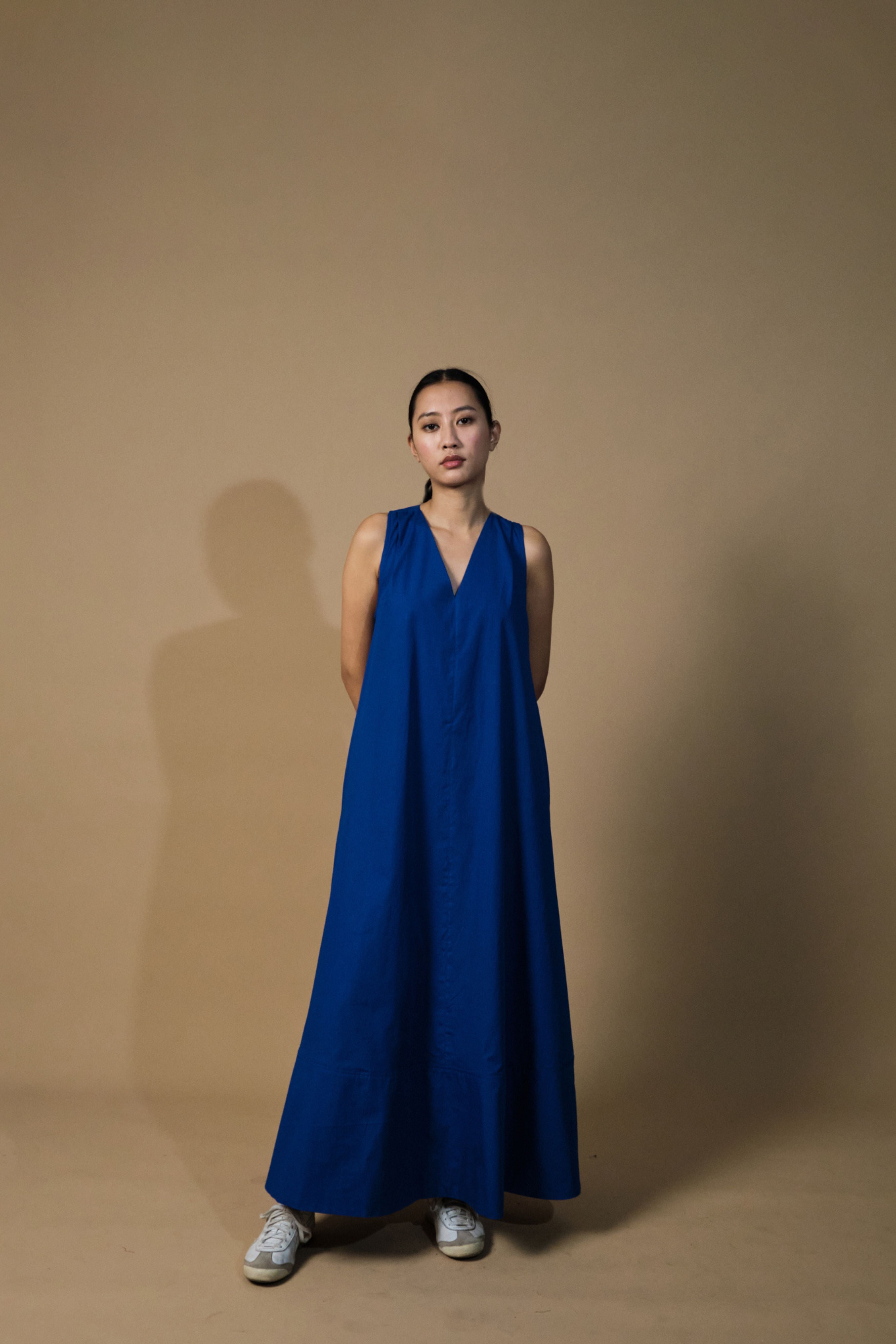 Handcrafted from poplin, this dress is comfortable, stylish and versatile. With a structured neckline, racerback, straight fit, &this is a must have this summer. Team it up with sneakers or dress it up with your heels and you're good to go. The model is 5 feet 7 inches tall and wearing size XS.