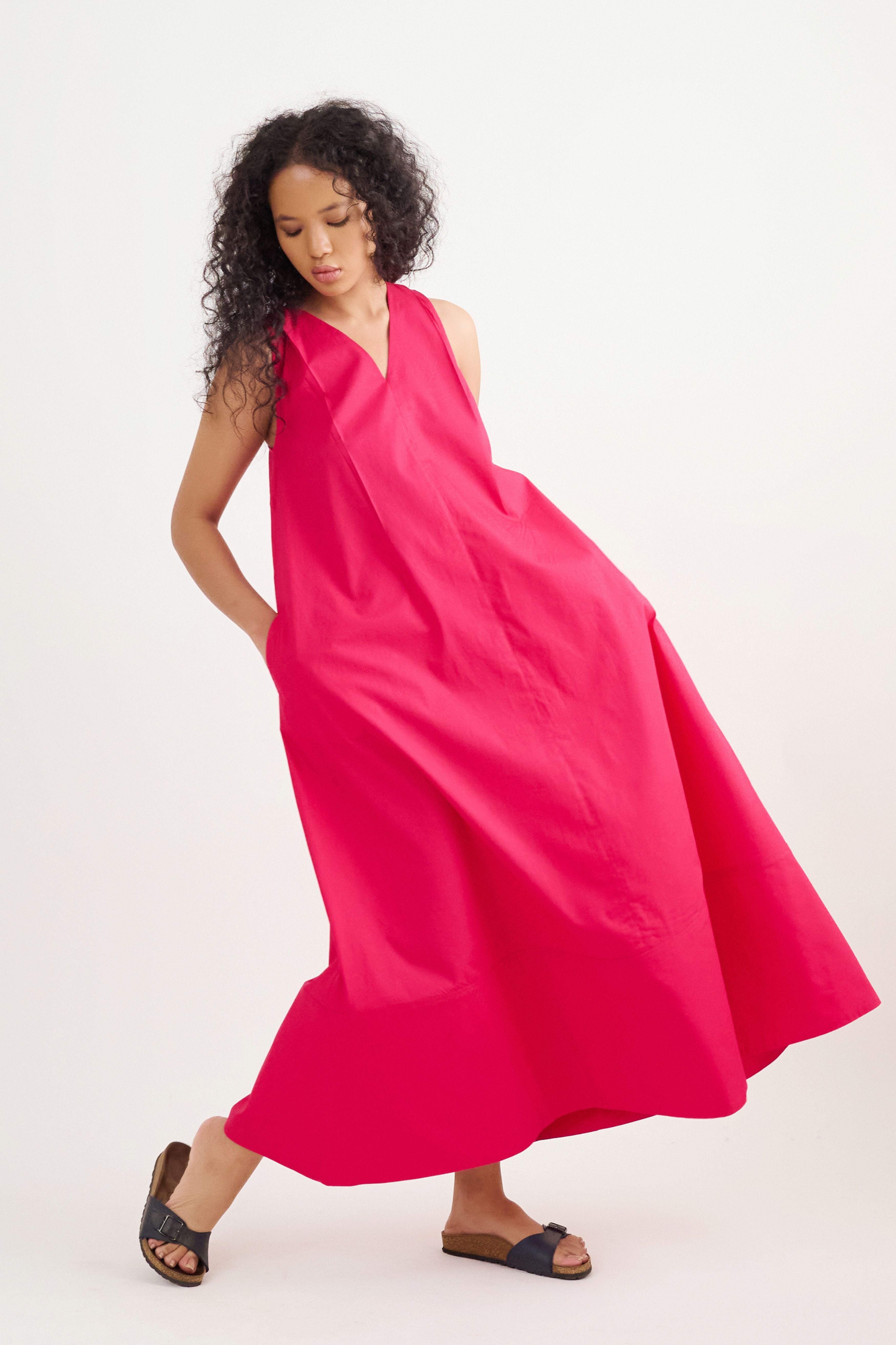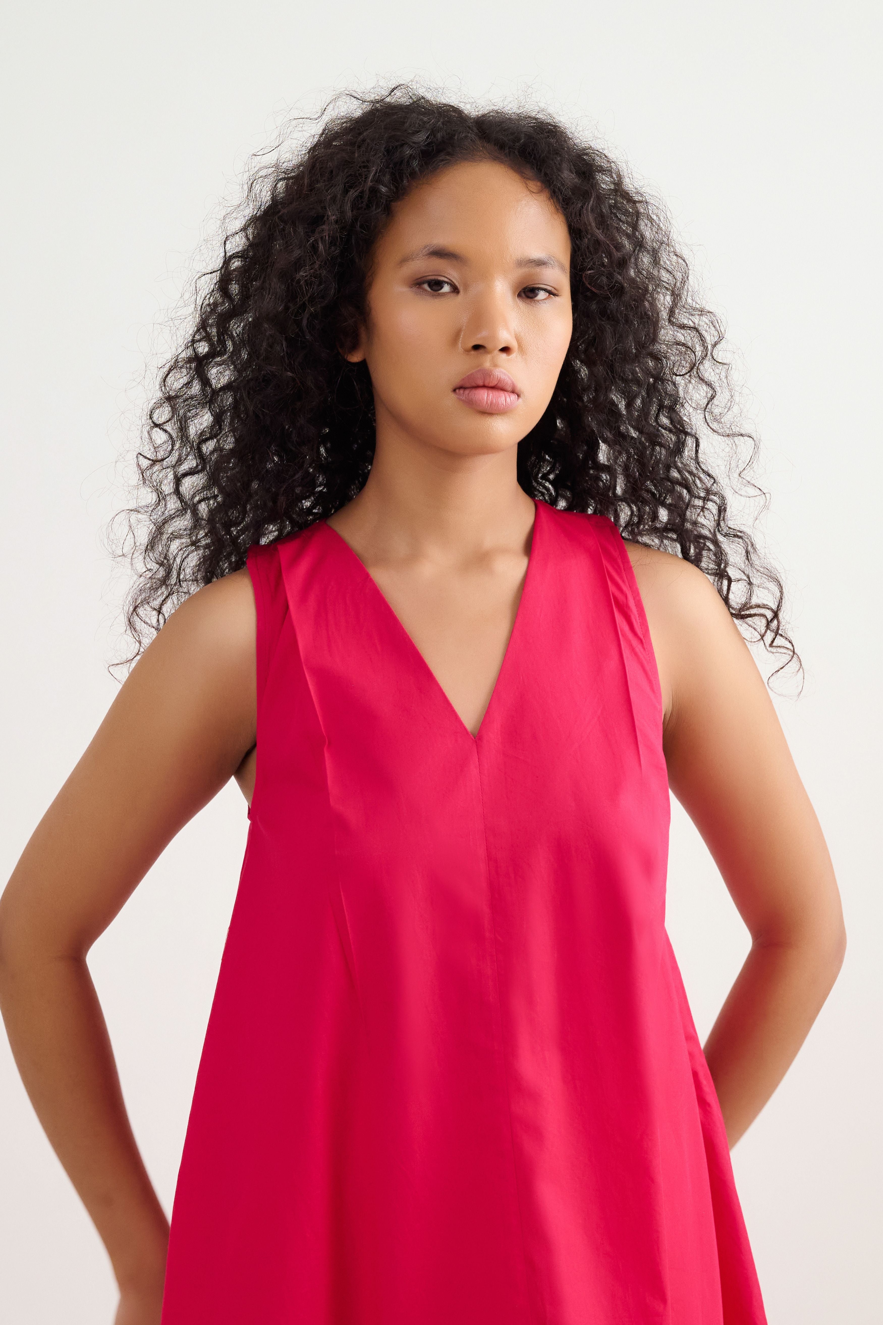 Handcrafted from poplin, this dress is comfortable, stylish and versatile. With a structured neckline, racerback, straight fit, &this is a must have this summer. Team it up with sneakers or dress it up with your heels and you're good to go. The model is 5 feet 7 inches tall and wearing size XS.