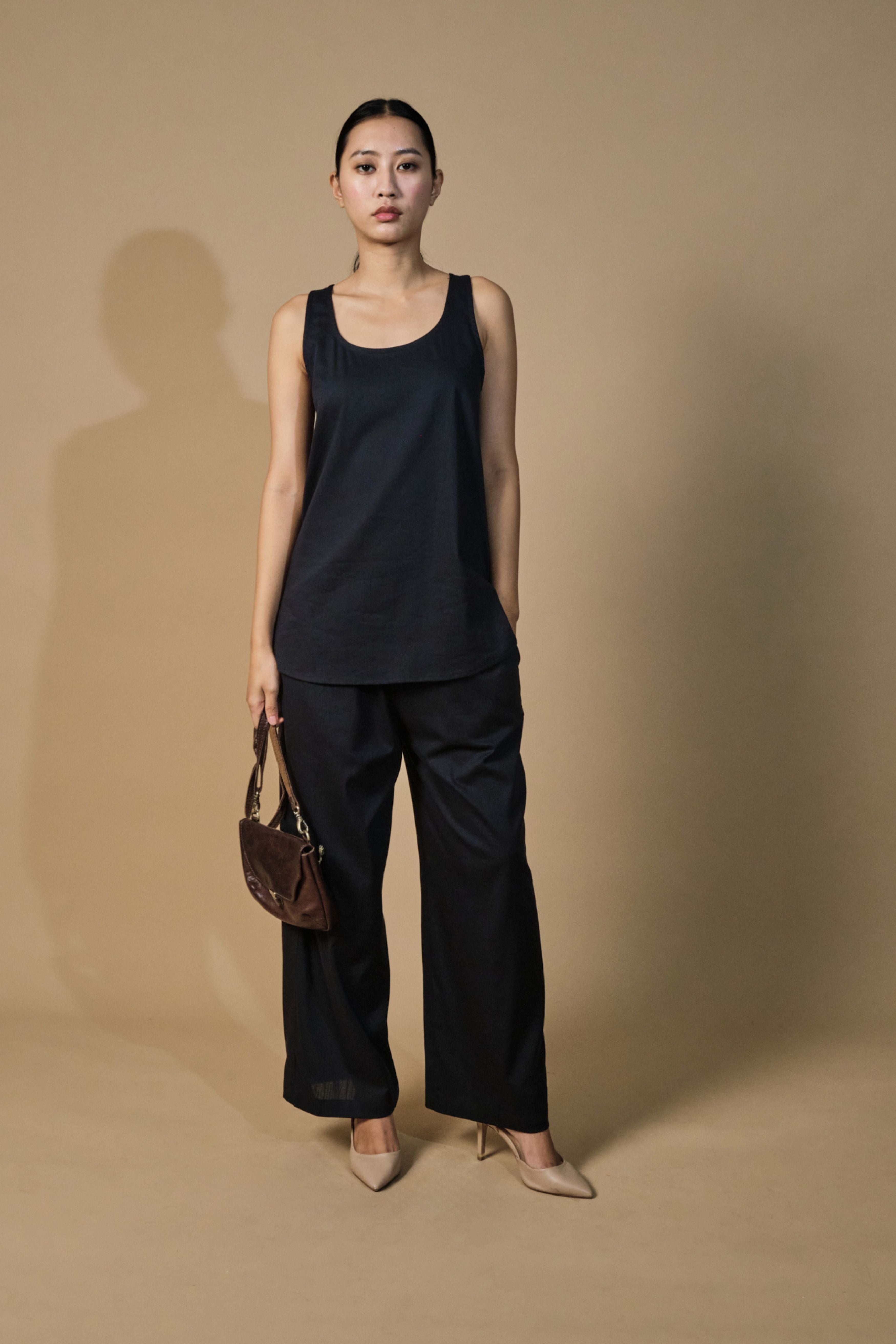 Handcrafted from tencel cotton, this 2 piece co-ord is so versatile. The top has easy fit, racer back and side slits. The pants are elasticated and loose fitting. This is a must have. Dress it up or down, its always a winner. The model is 5 feet 7 inches tall and wearing size XS.
