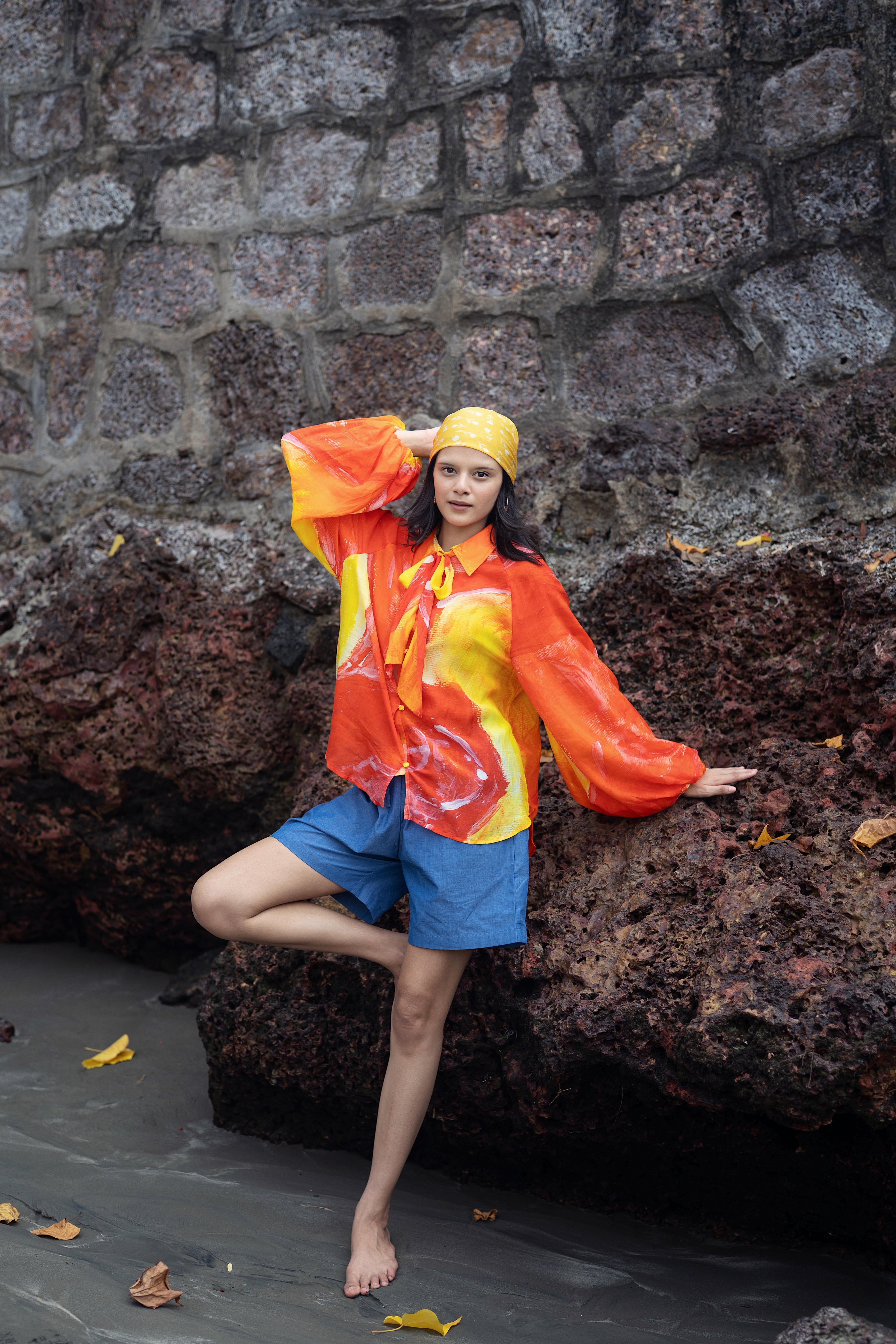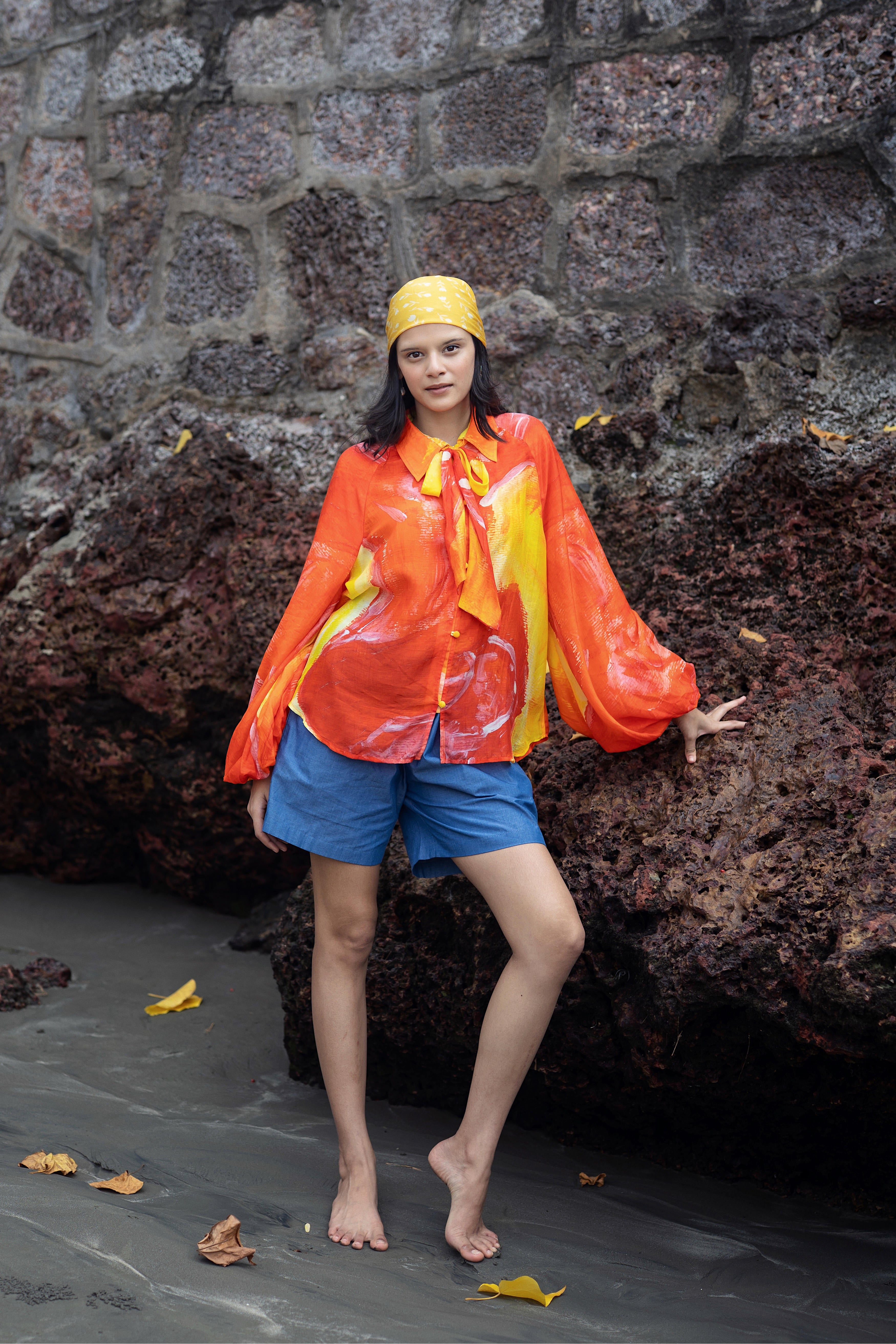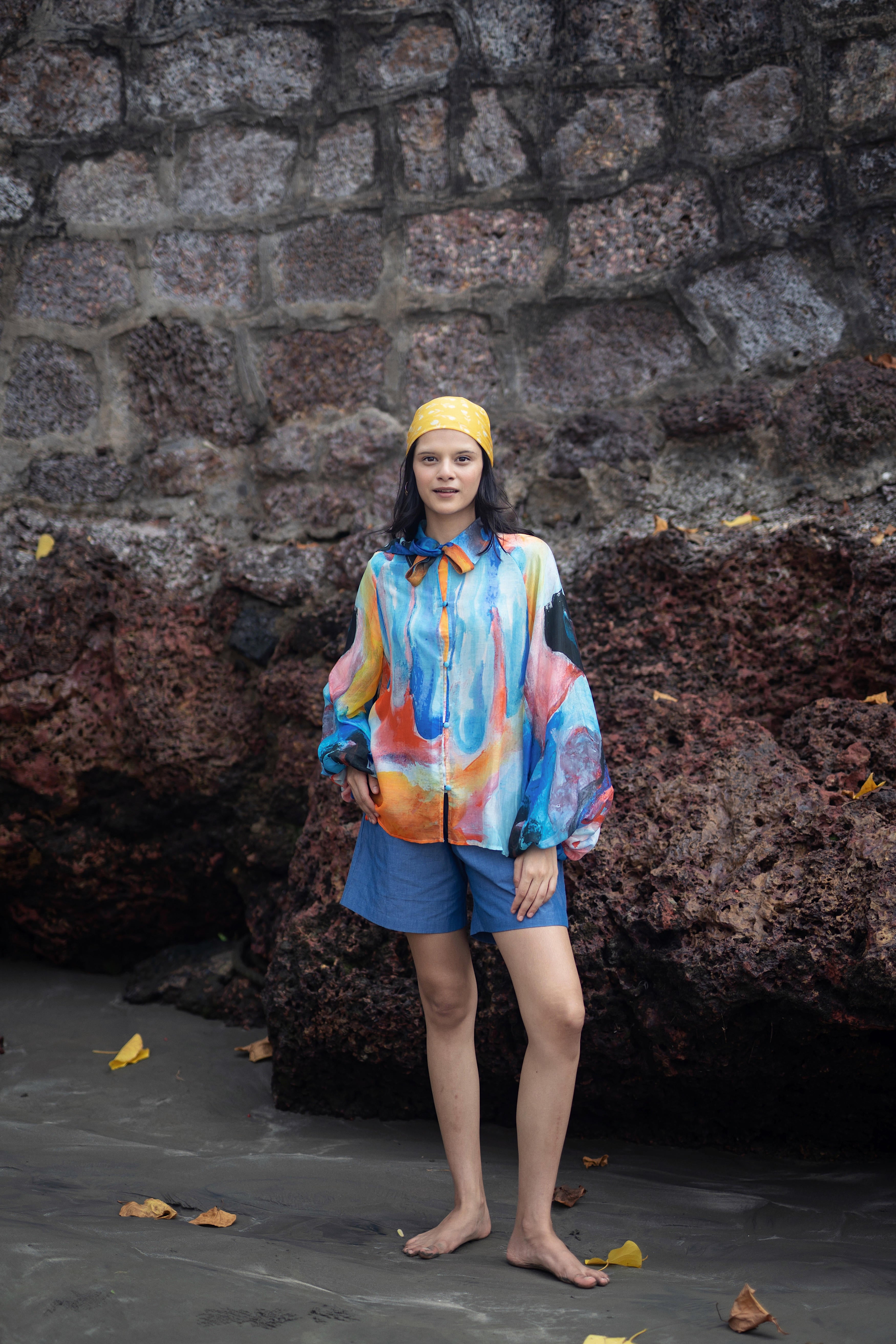 The beach shorts is made from our cotton chambray fabric. It give a complete denim look but it is as soft as any cotton fabric with a premium feel of denim.