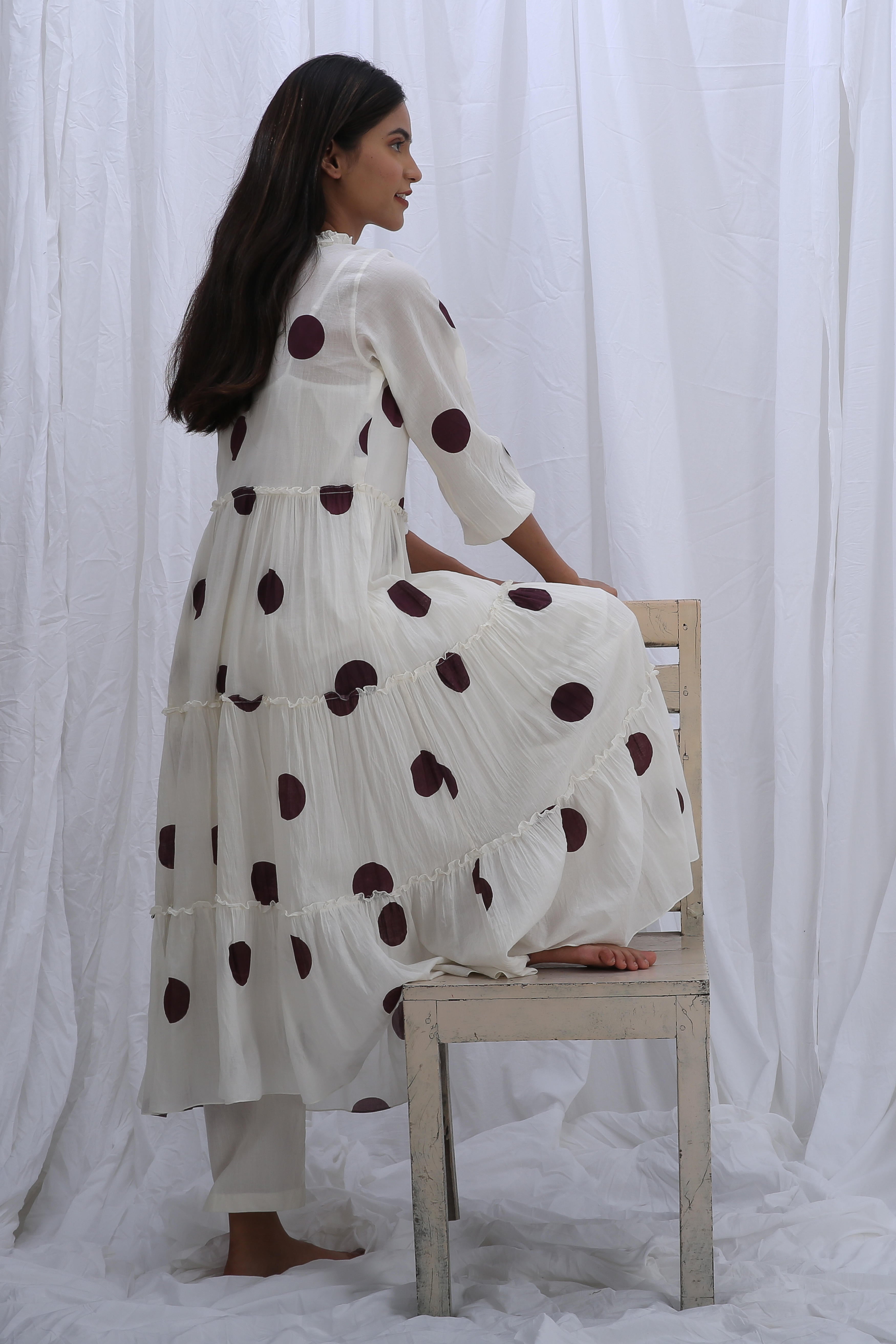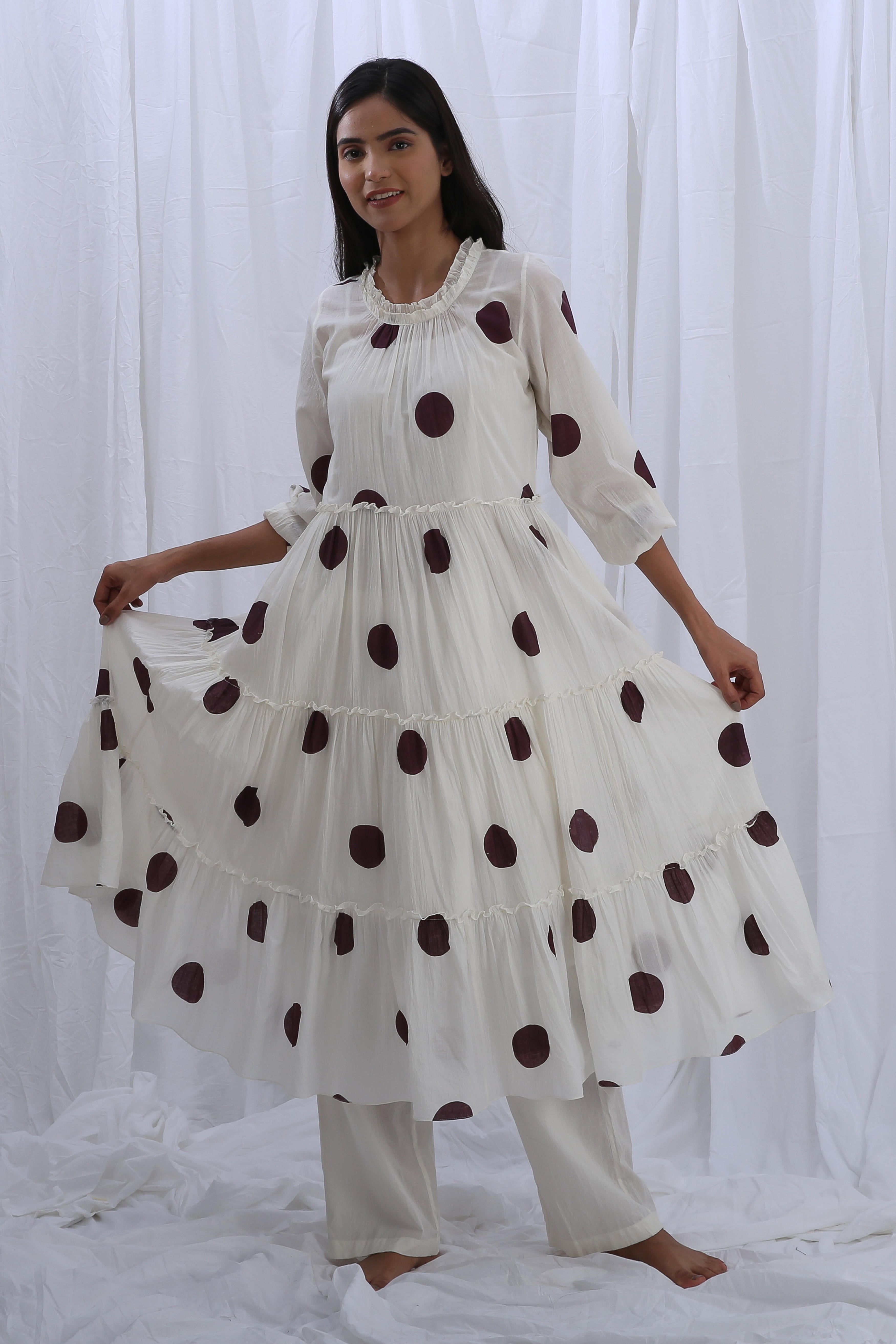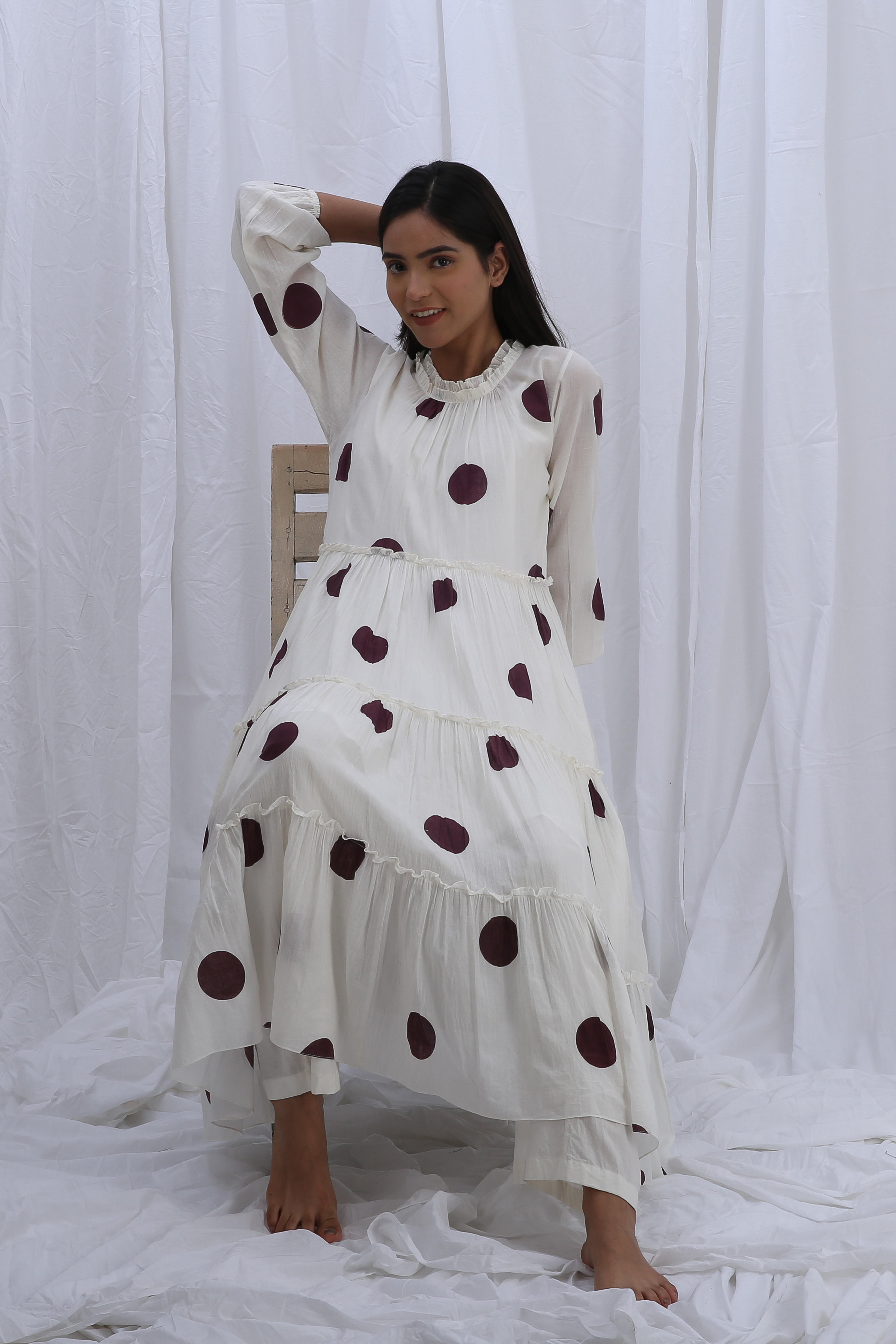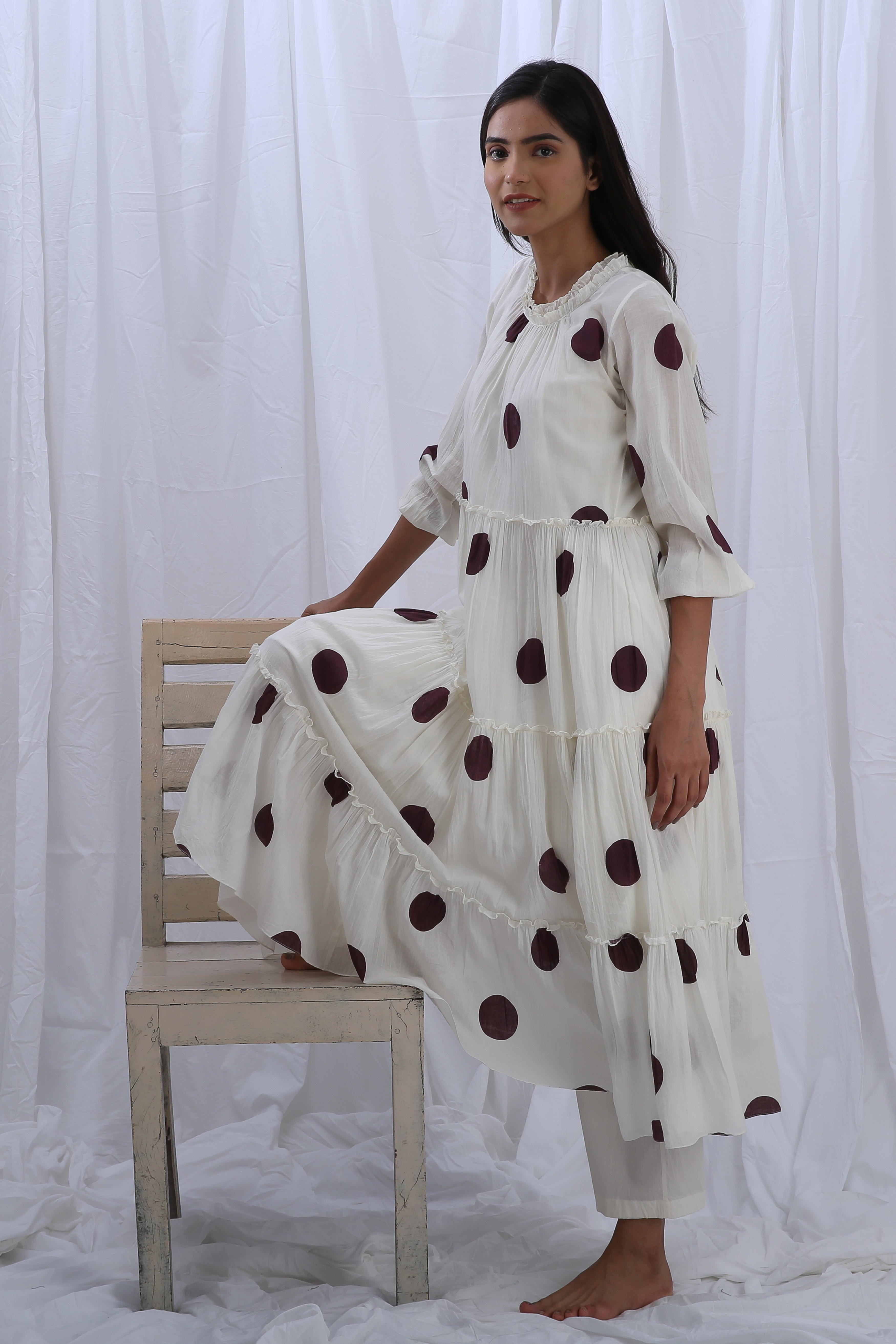 This elegant Handloom Cotton Bright White and Berry Polka Turtle set is designed to impress. The Dress Length is 44 inches, and the Bottom Length is 38 inches, making it a perfect choice for both casual and formal occasions. The set includes a Slip for added comfort and style. Our model, standing at 5'8", is wearing a size S.