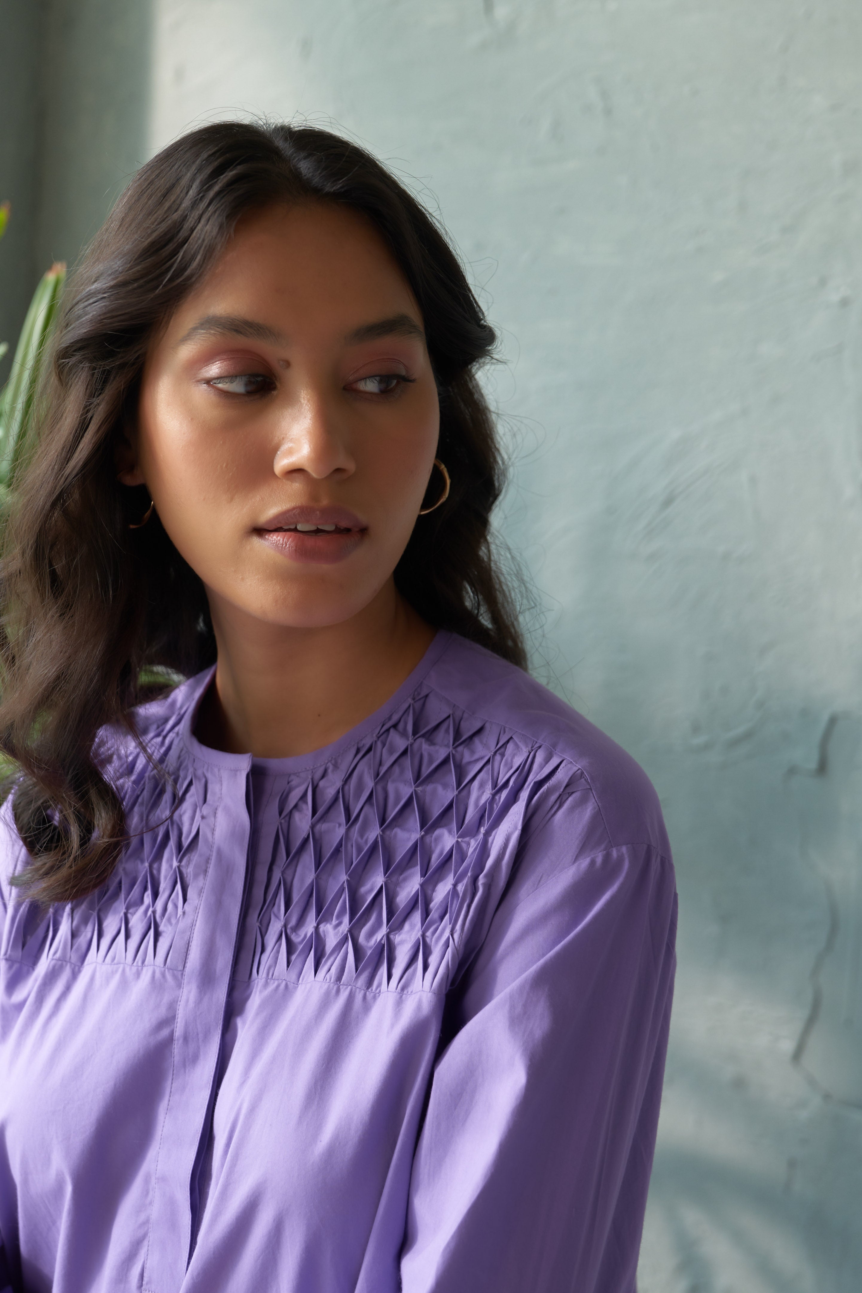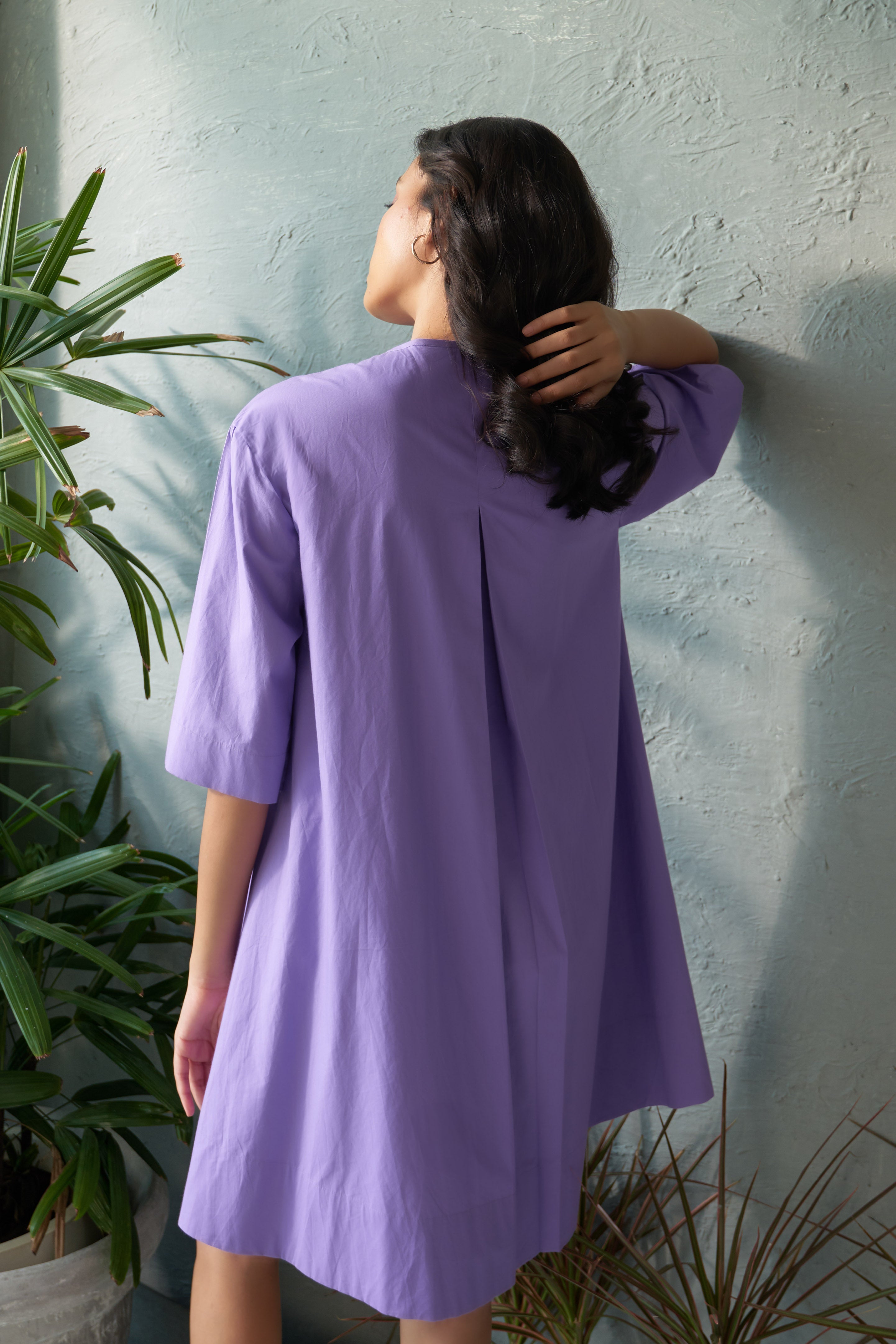 This Lavender hue knee-length dress effortlessly combines comfort with style. The soft smocking across the bodice adds texture and charm, while the round neckline and knee-length silhouette offer a classic, flattering fit. Designed for versatility, this dress is perfect for casual outings, work events, or laid-back weekend plans. Its easy-to-wear design ensures all-day comfort without compromising on style, making it a must-have staple for your wardrobe