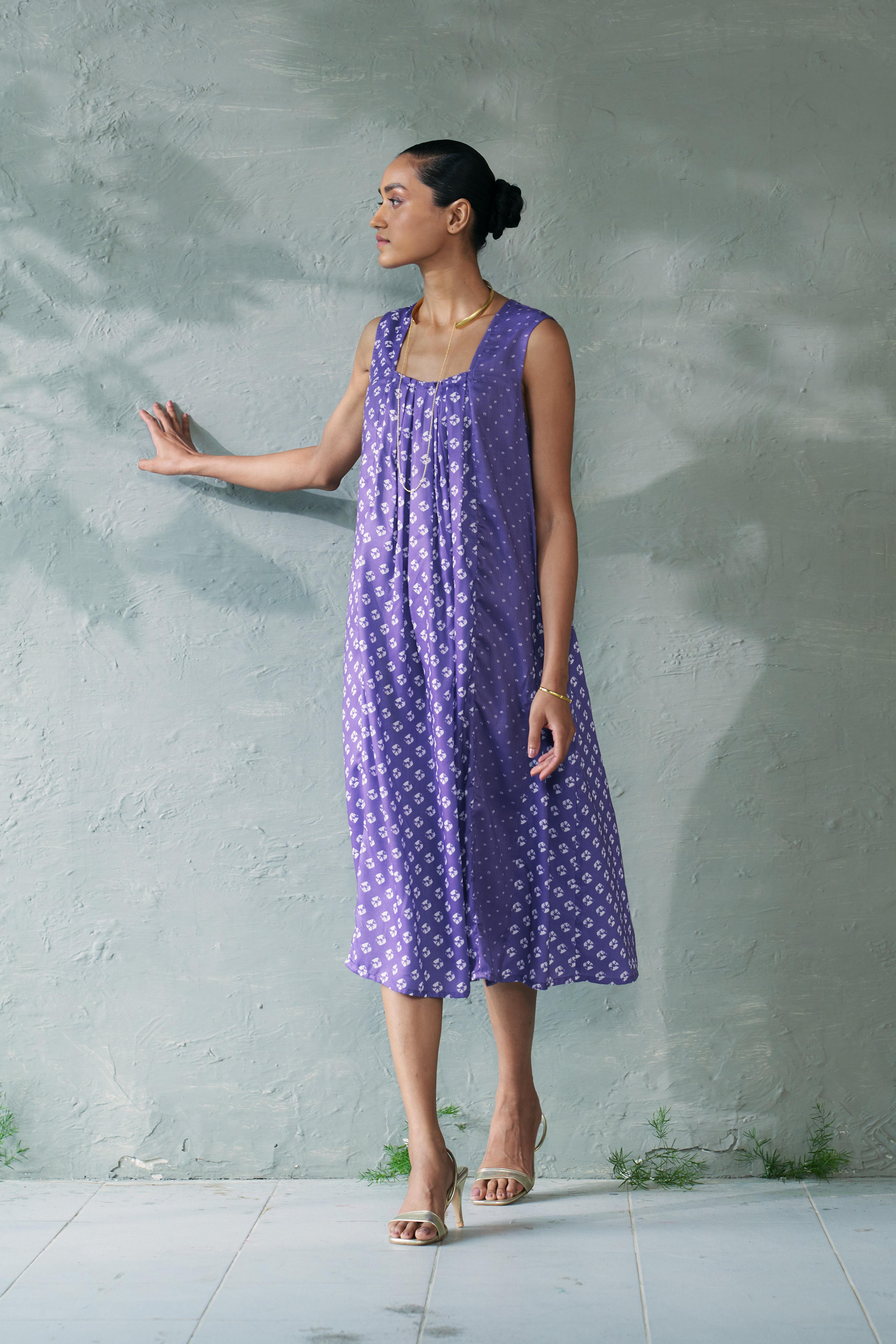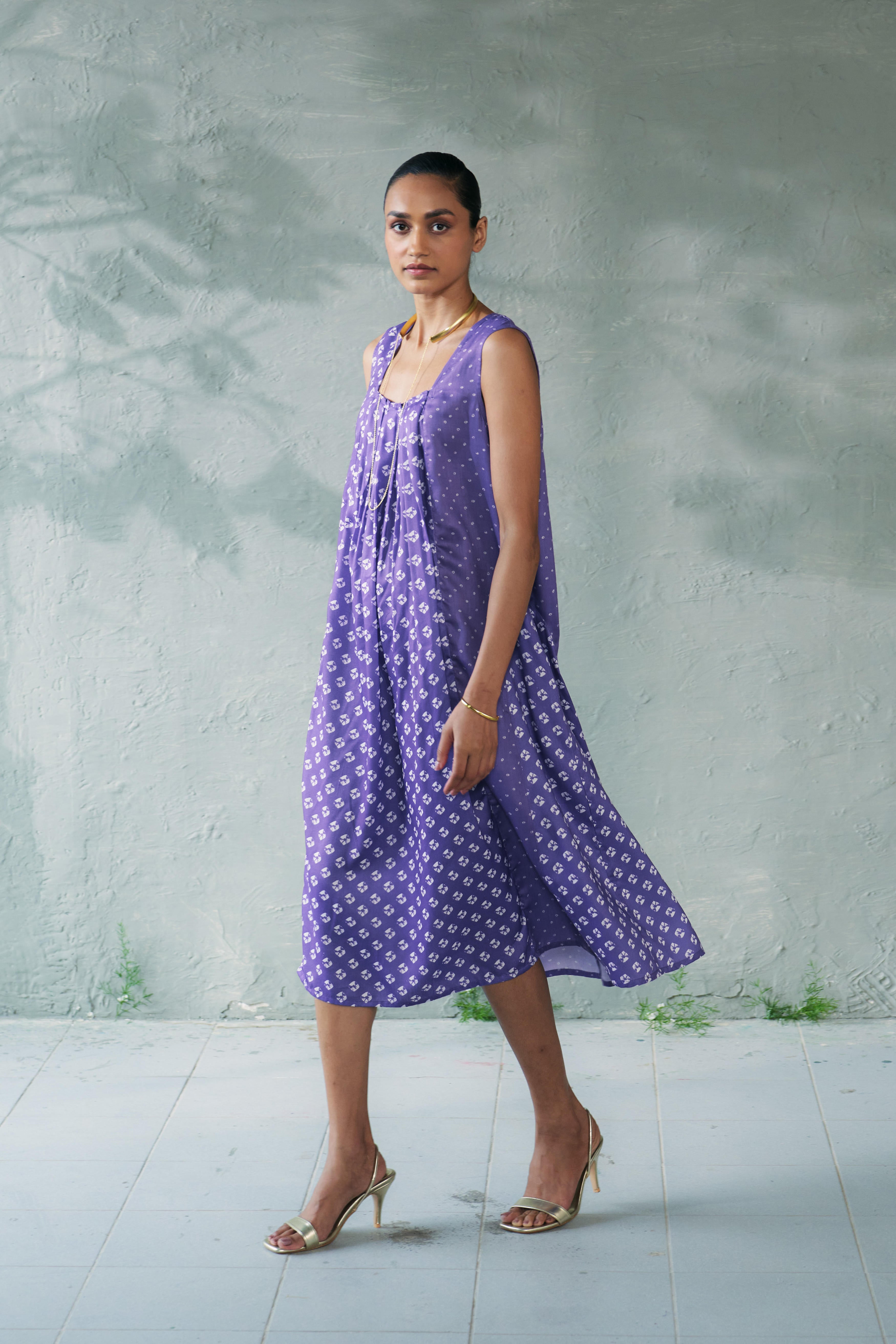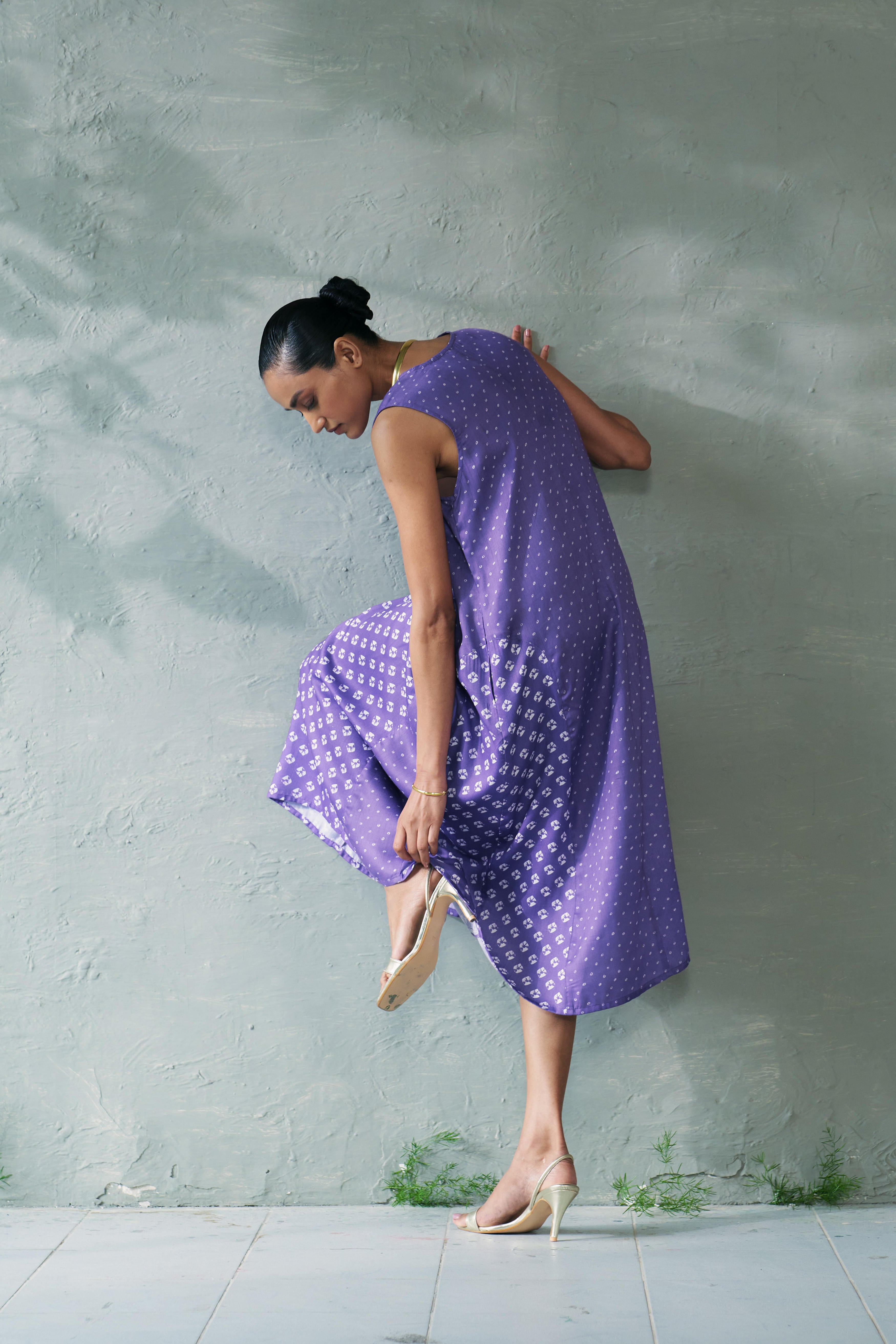 A quiet blend of ease and elegance, the Bindu Sleeveless Dress plays with the charm of Bandhani in a unique patchwork layout. Designed in a semi-casual silhouette, it features a gathered yoke at the neckline and a centre panel that adds soft volume. Thoughtfully placed side pockets offer comfort and practicality. Perfect for relaxed evenings or semi-formal settings where you want to feel effortlessly put together.