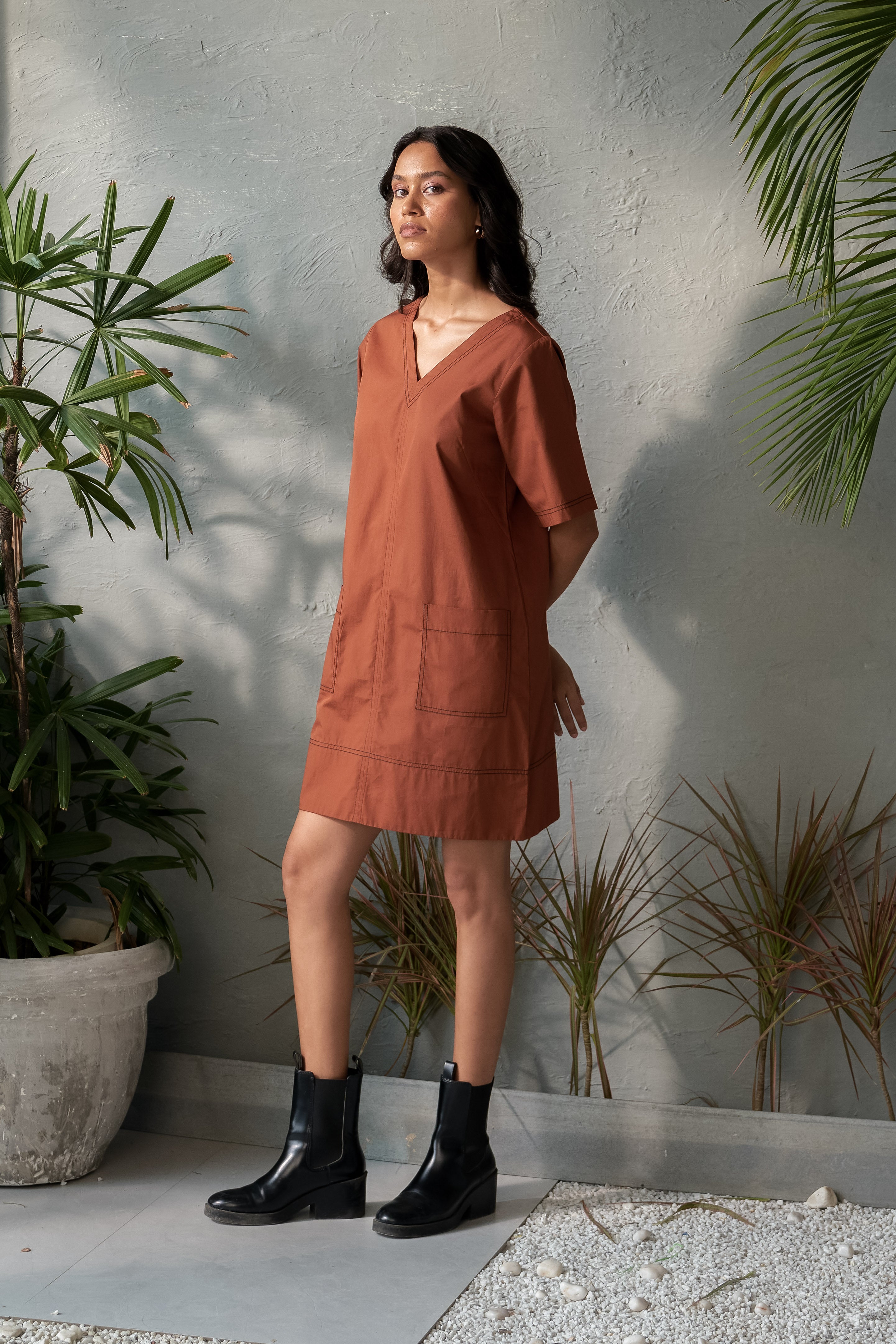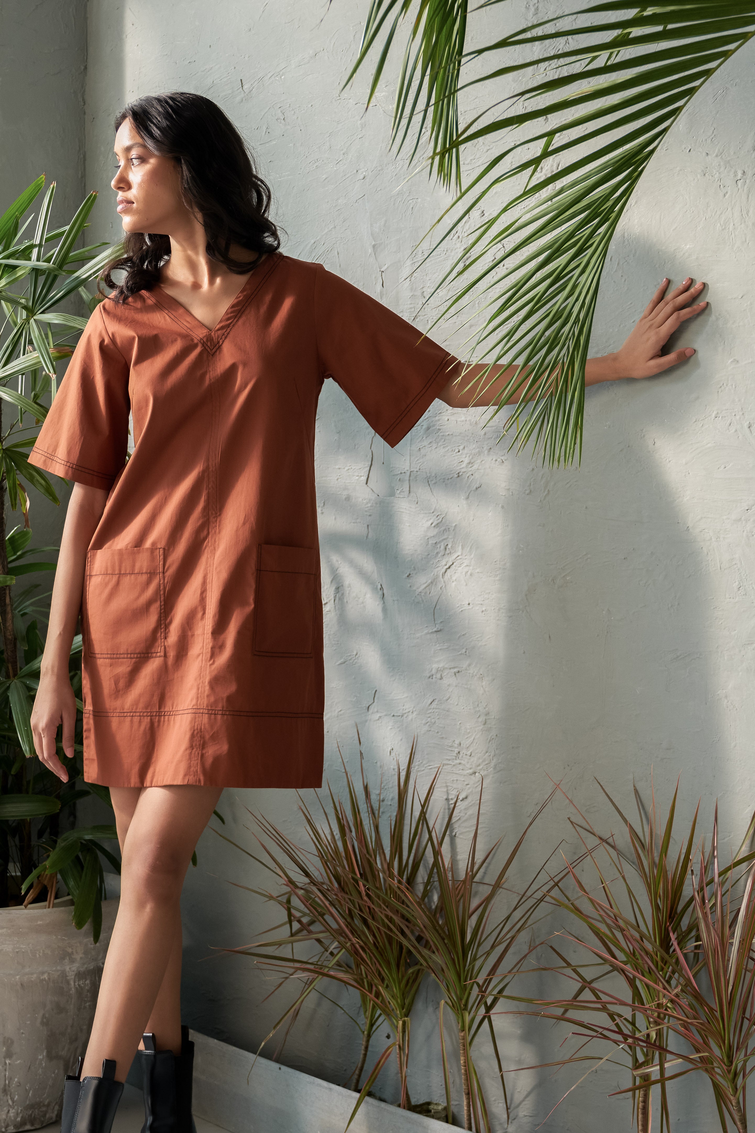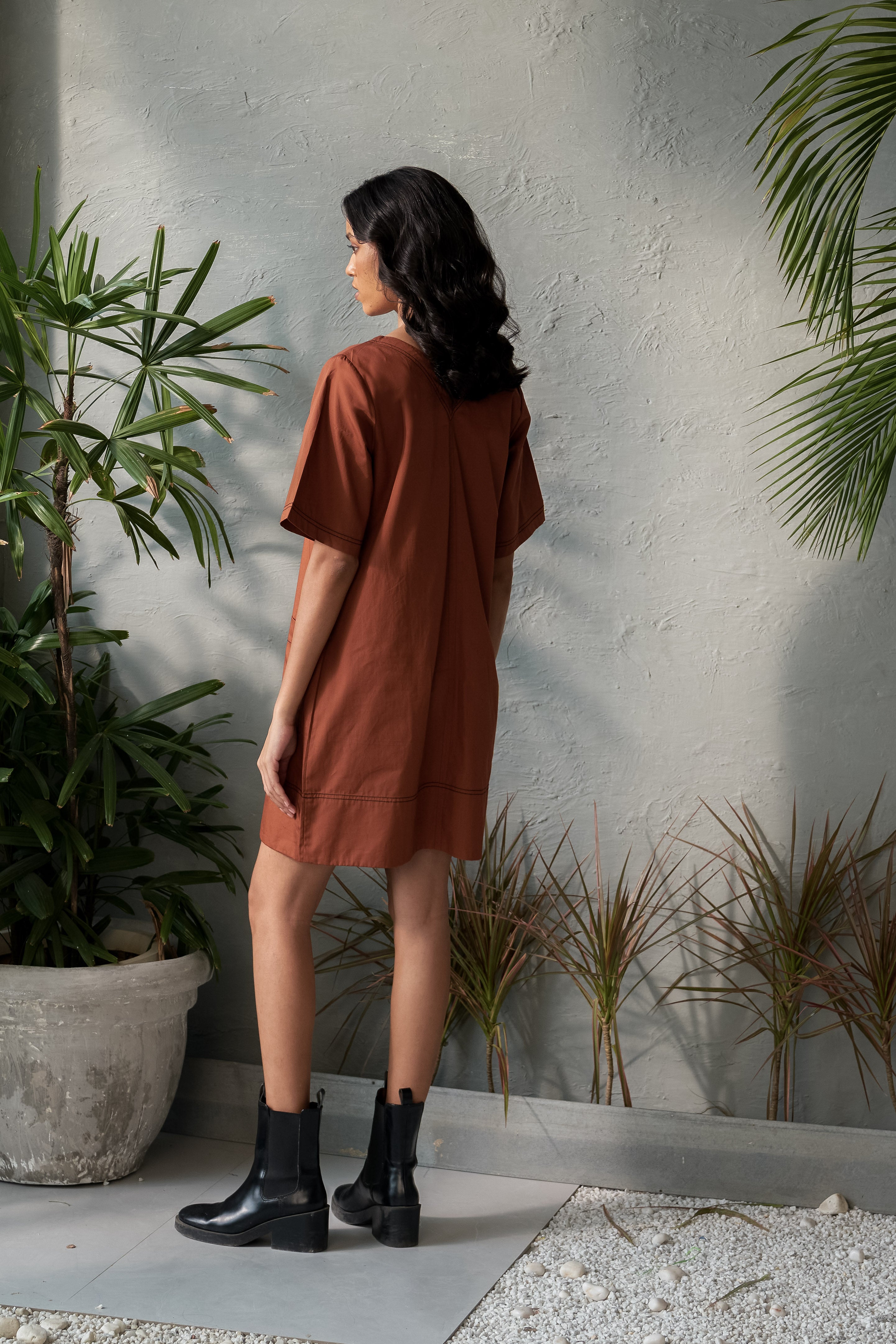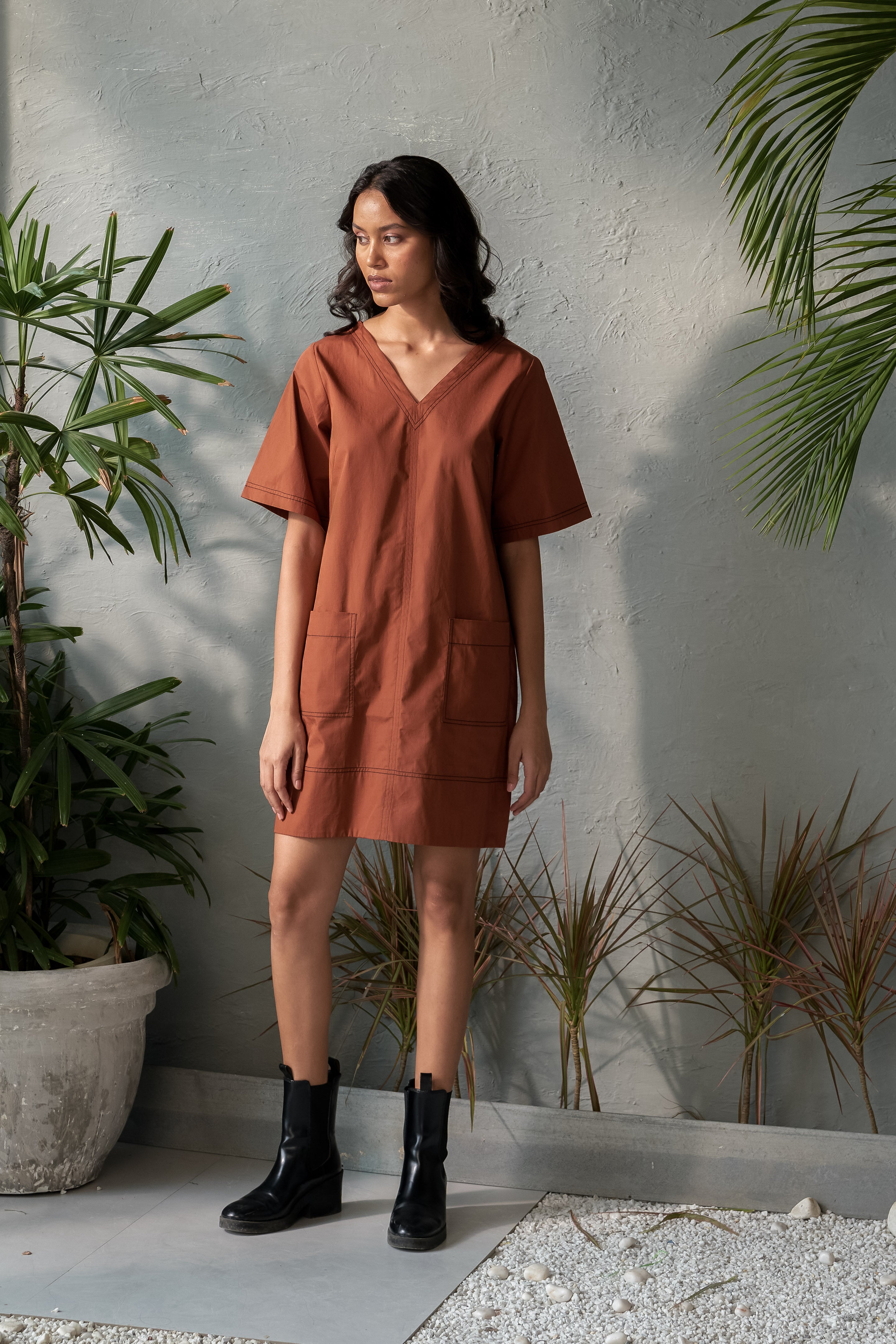 This biscotti short dress is a stylish blend of casual charm and contemporary design. Featuring contrast stitch detailing, the dress adds a subtle yet striking visual element, while the front pockets offer both practicality and a playful touch. Its easy-fit silhouette ensures comfort without compromising on style, making it perfect for everyday wear or casual outings. Whether paired with sandals, sneakers or boots, this dress brings effortless style to any wardrobe.