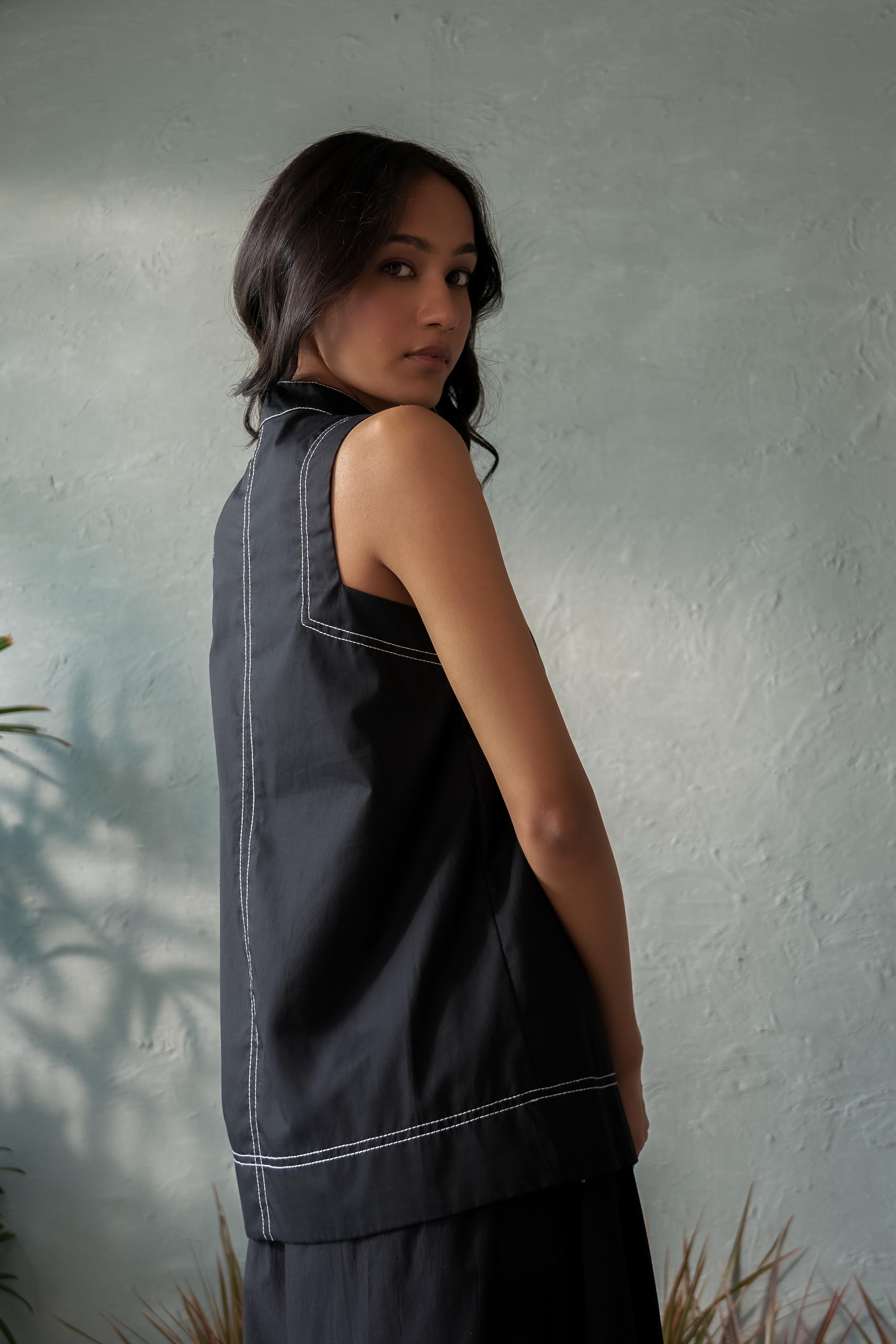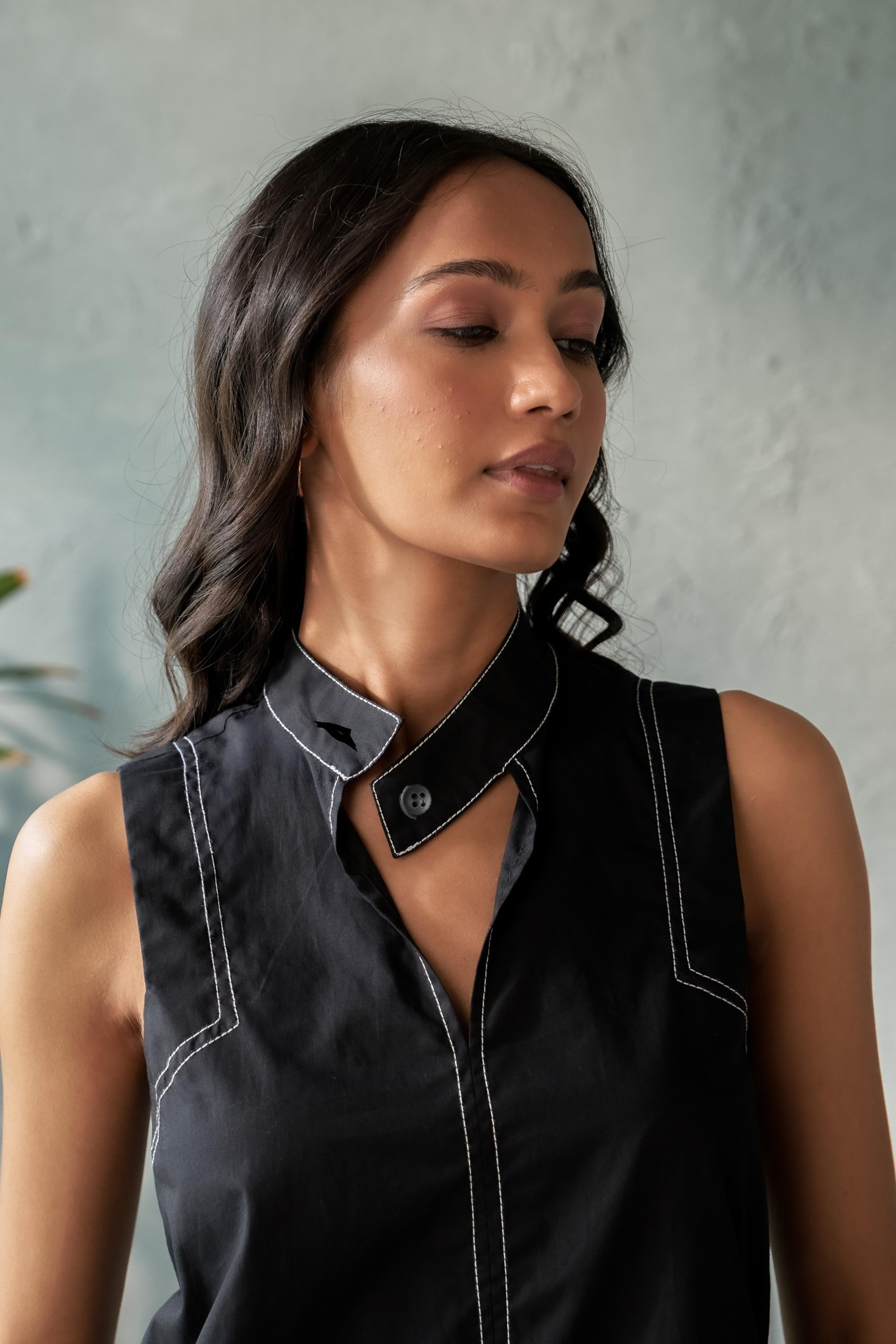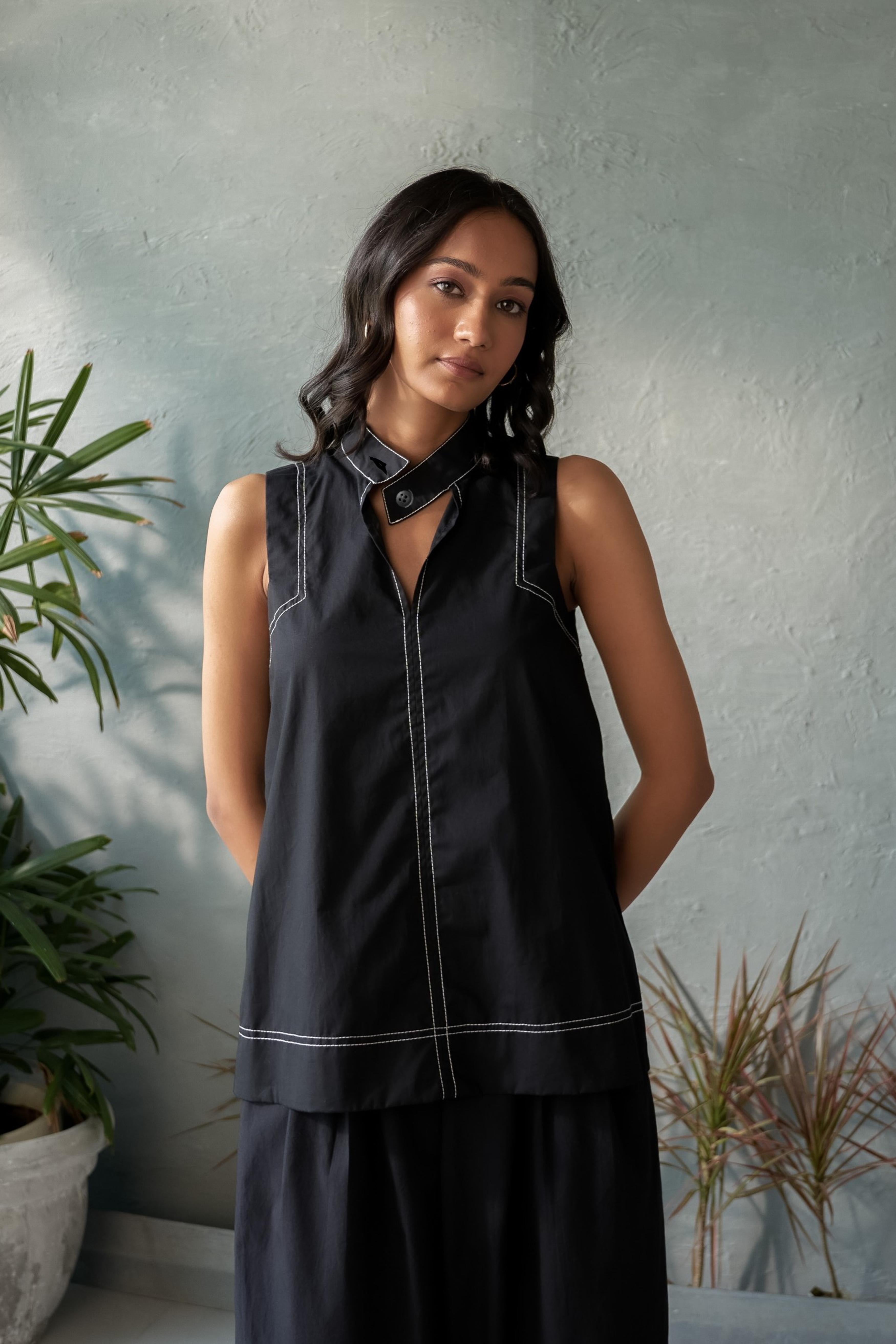 Elevate your everyday style with this chic Neck Band Top crafted in premium black poplin. Featuring intricate stitch detailing along the neckline, this top combines classic elegance with modern sophistication. The sleek neck band adds a subtle yet distinct flair, making it perfect for both casual outings and dressier occasions. Crafted from soft, breathable fabric, this versatile piece can be paired effortlessly with your favorite denims, pants, skirts, or overlays for a stylish and comfortable look.