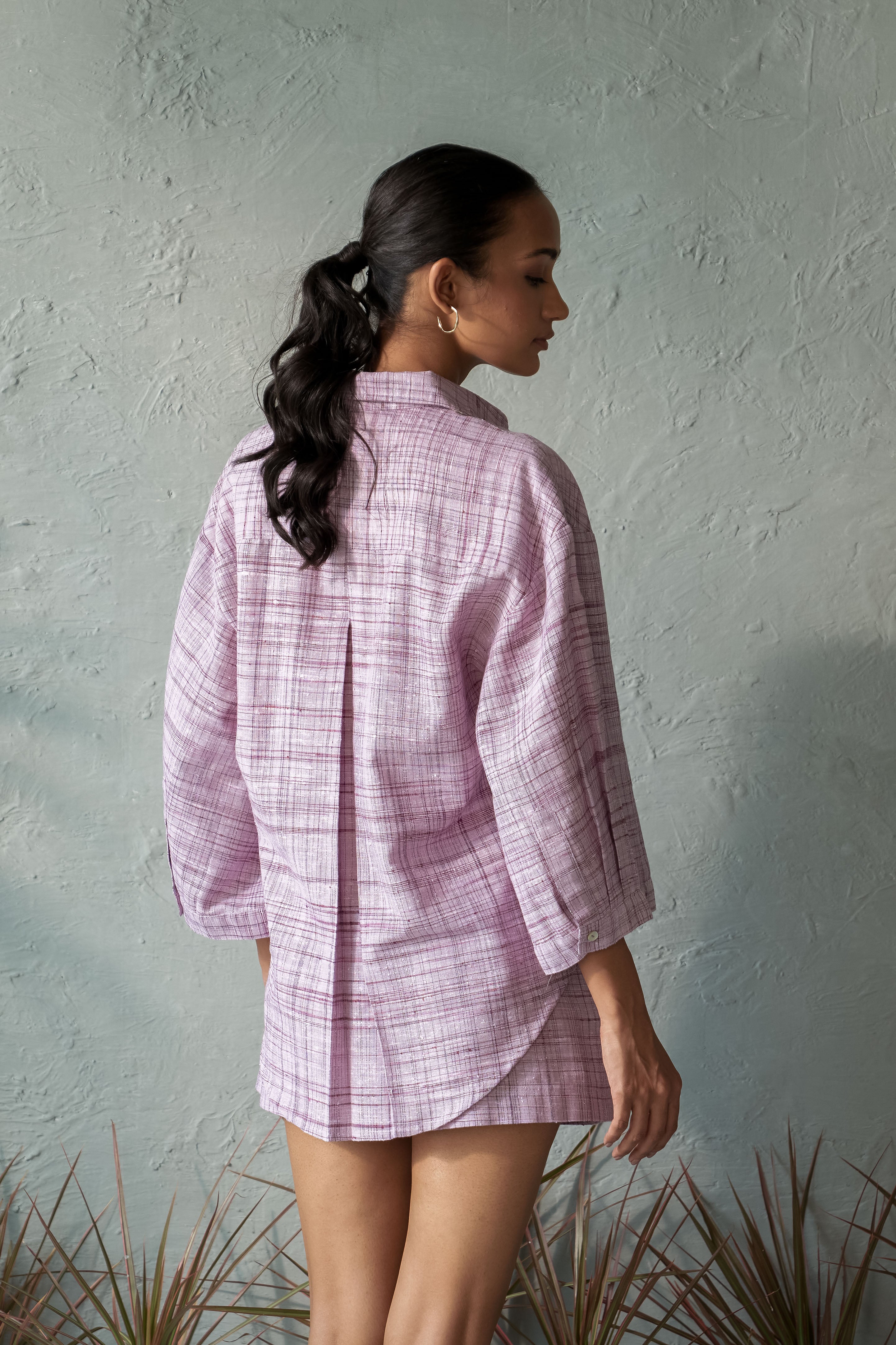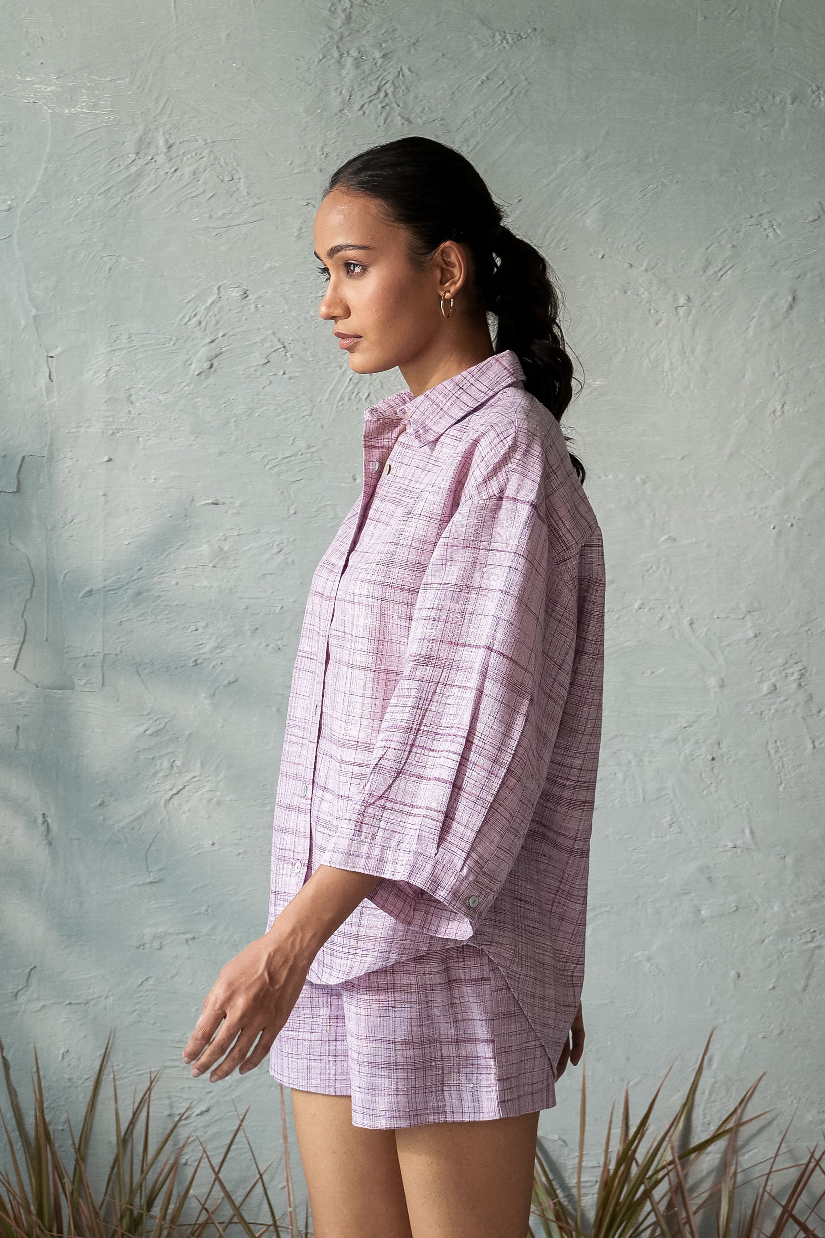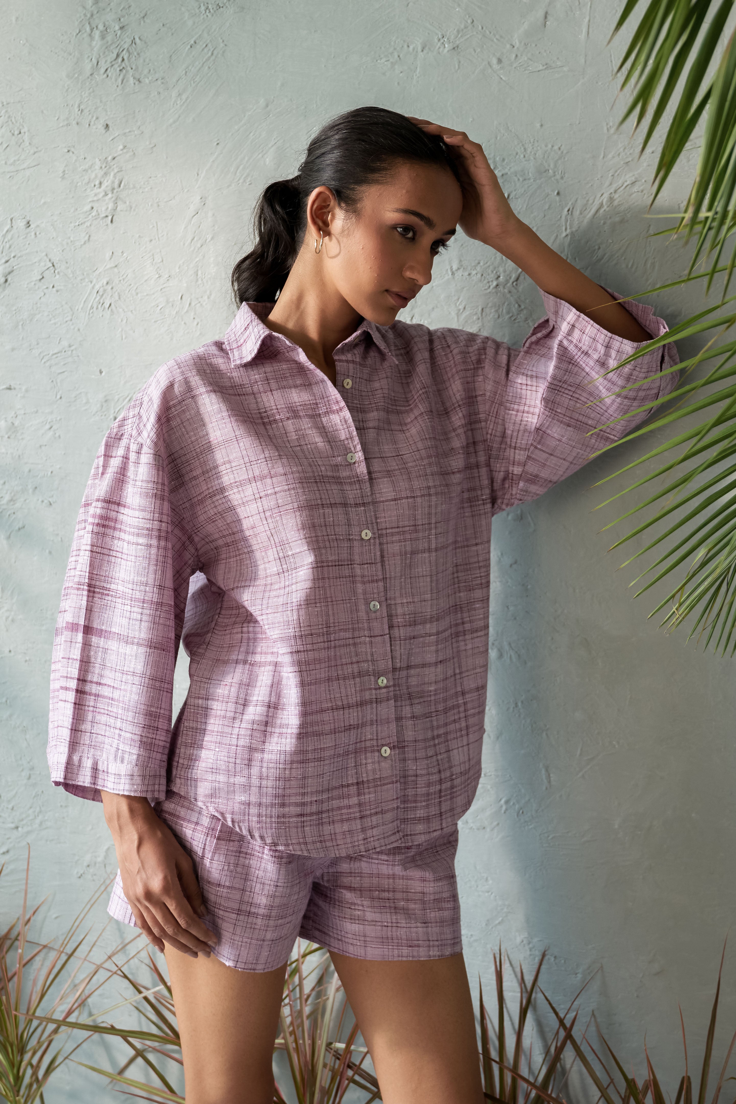 Elevate your wardrobe with our GRAPE textured Cotton Shirt featuring stylish loose 3/4th pleated sleeves. Crafted from breathable cotton, this shirt combines comfort and elegance, making it perfect for both casual and semi-formal occasions. The soft light purple hue adds a fresh touch to any outfit, while the pleated sleeves bring a trendy element to the classic shirt design. Whether paired with jeans or tailored pants, this versatile shirt is a must-have for your collection.