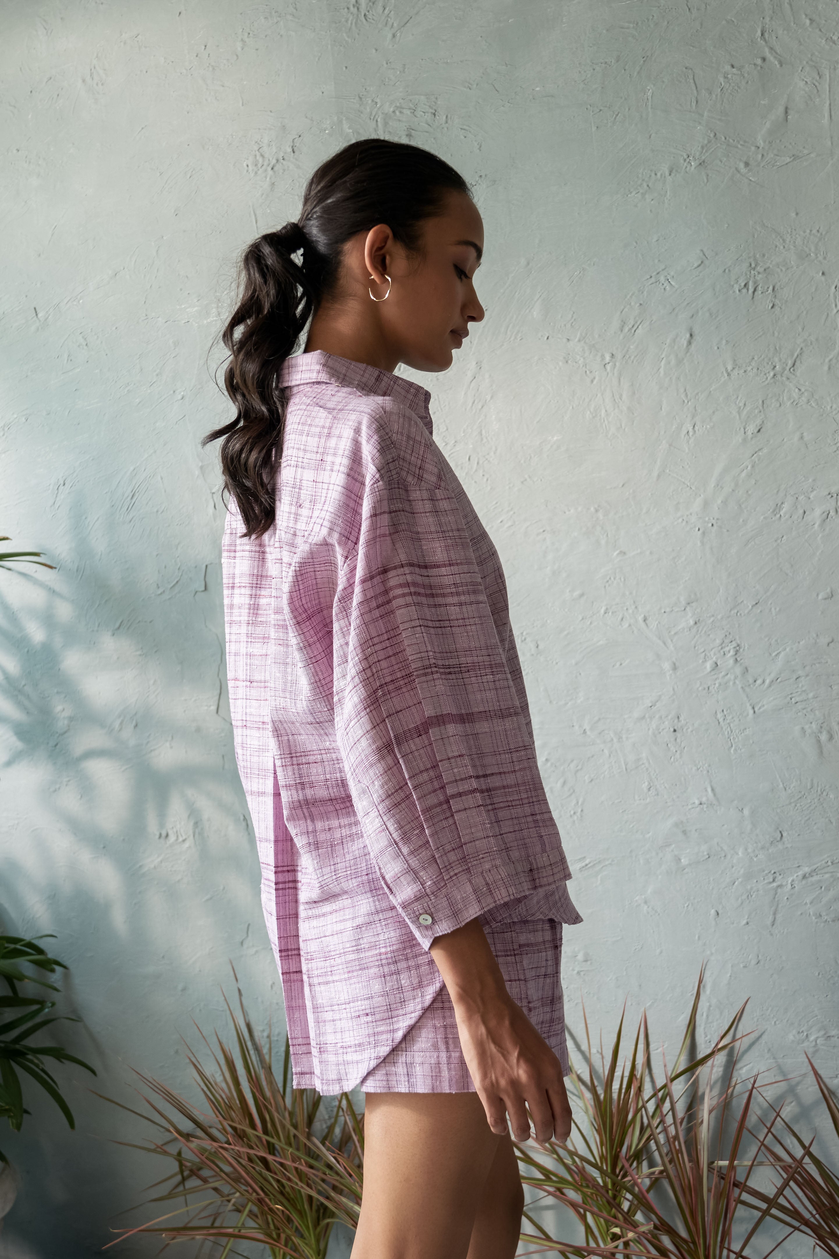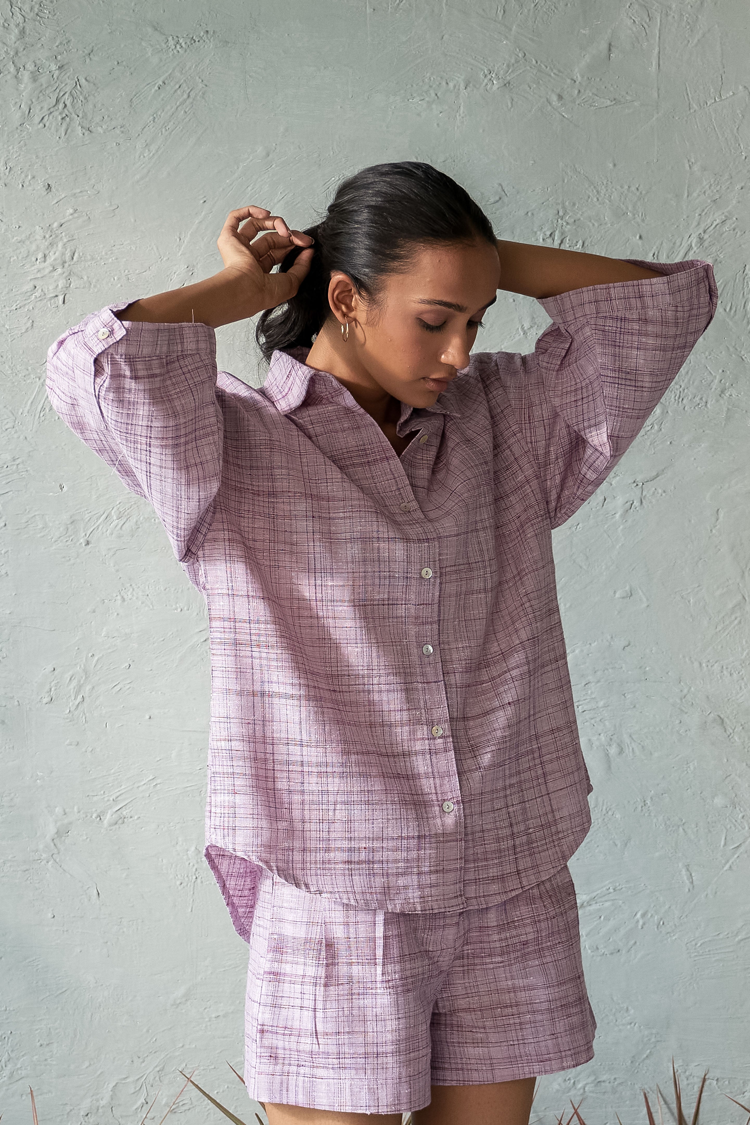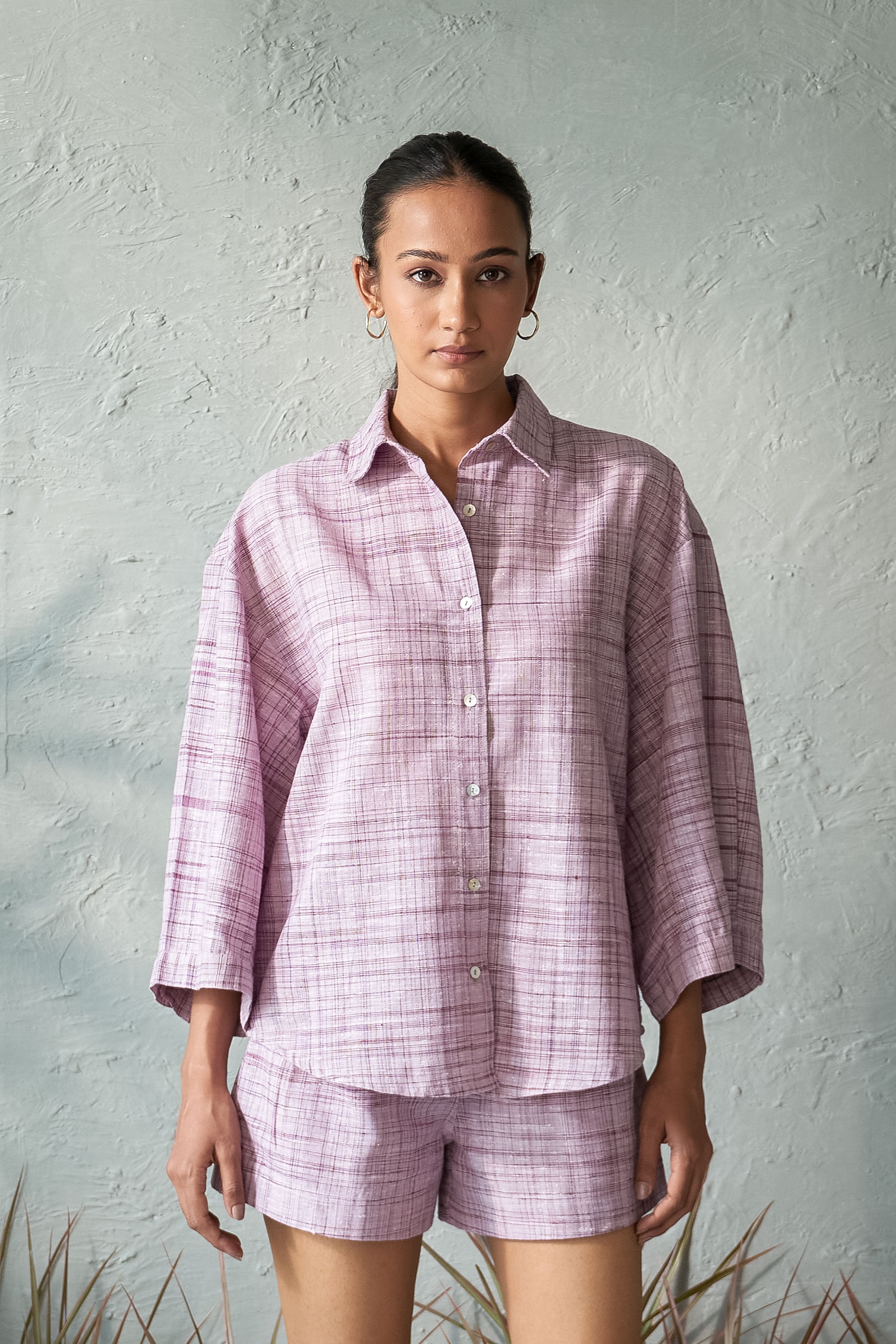 Elevate your wardrobe with our GRAPE textured Cotton Shirt featuring stylish loose 3/4th pleated sleeves. Crafted from breathable cotton, this shirt combines comfort and elegance, making it perfect for both casual and semi-formal occasions. The soft light purple hue adds a fresh touch to any outfit, while the pleated sleeves bring a trendy element to the classic shirt design. Whether paired with jeans or tailored pants, this versatile shirt is a must-have for your collection.