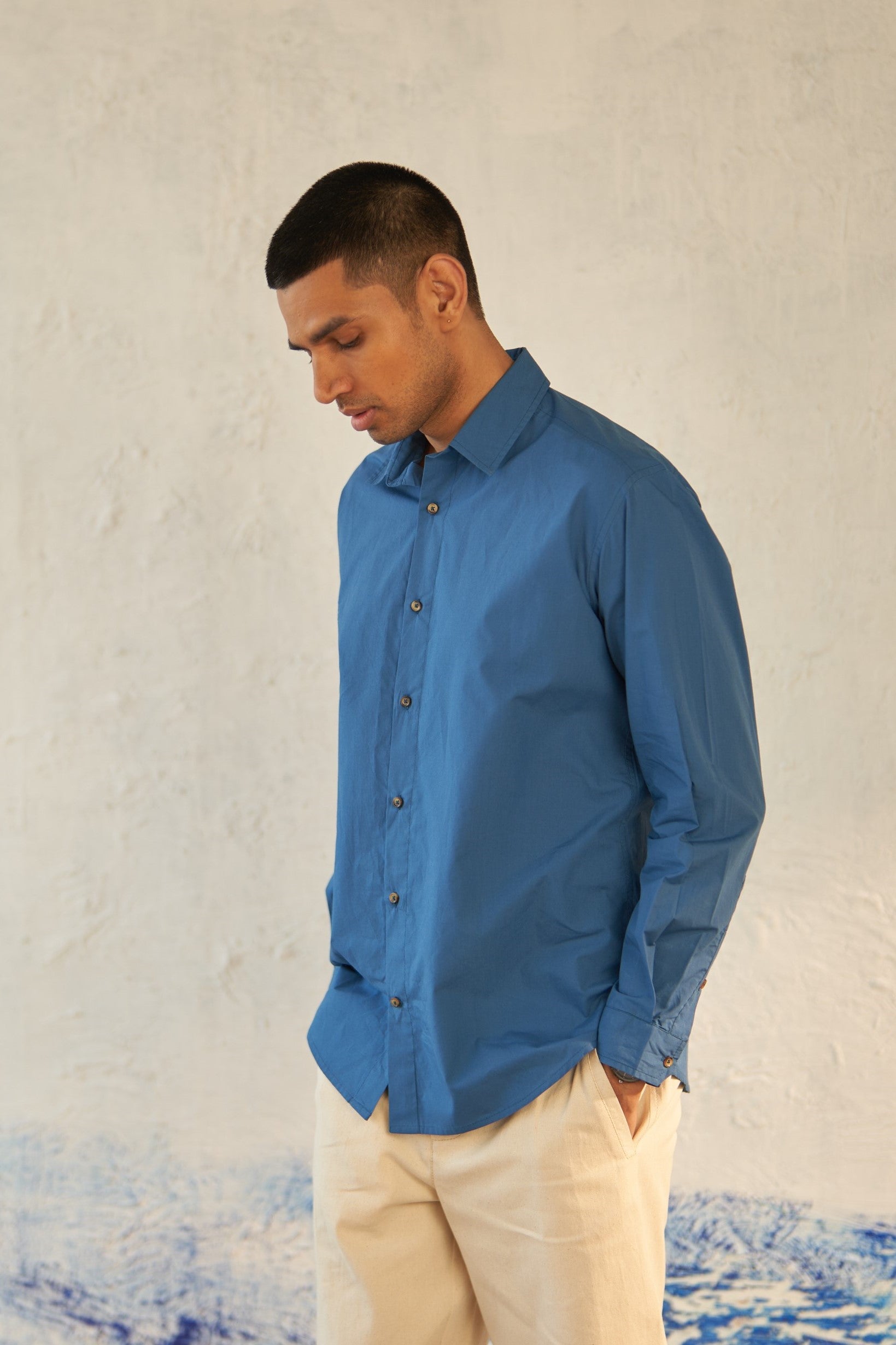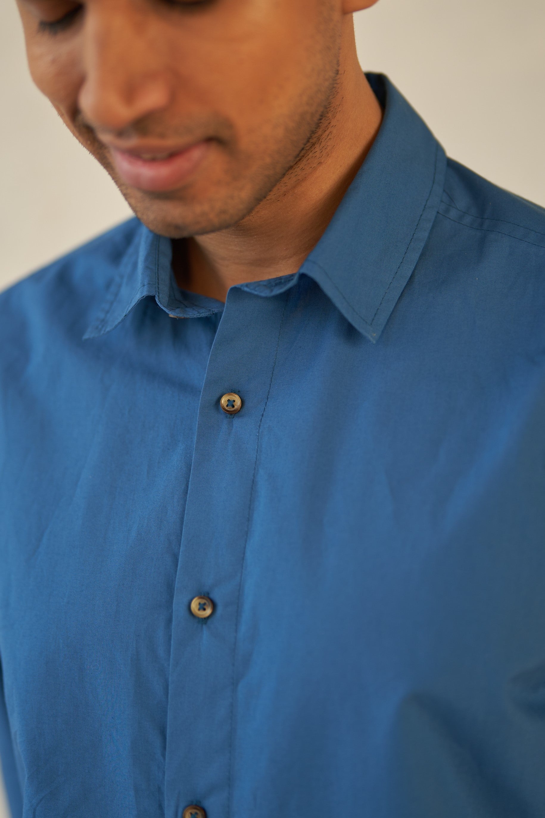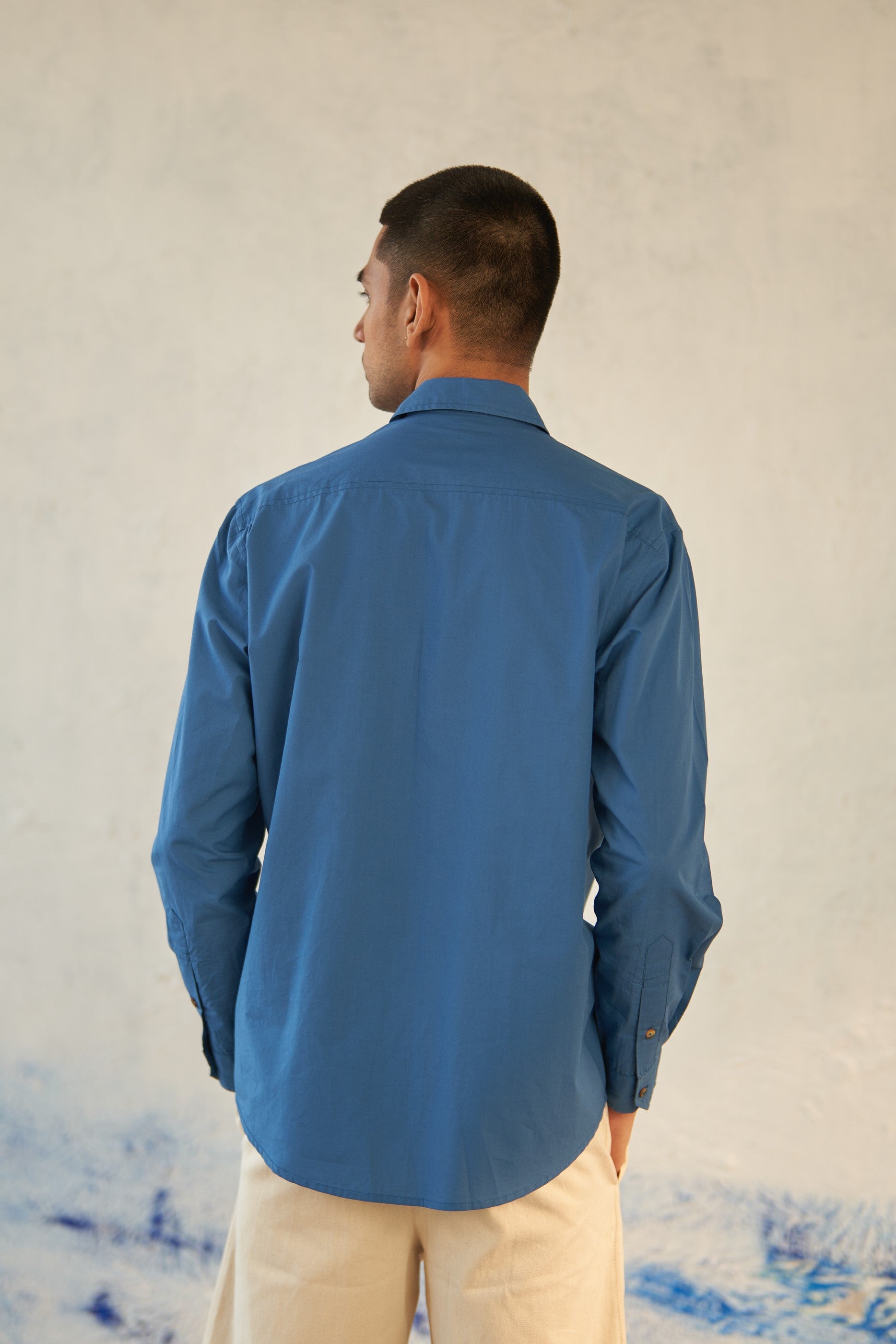 A gentleman's must-have shirt in the timeless shade of blue. Crafted in a regular fit, this shirt features curved sides and hem, ensuring both comfort and style. Perfect for city life and everyday discoveries, it's a standard choice for the modern man's wardrobe.