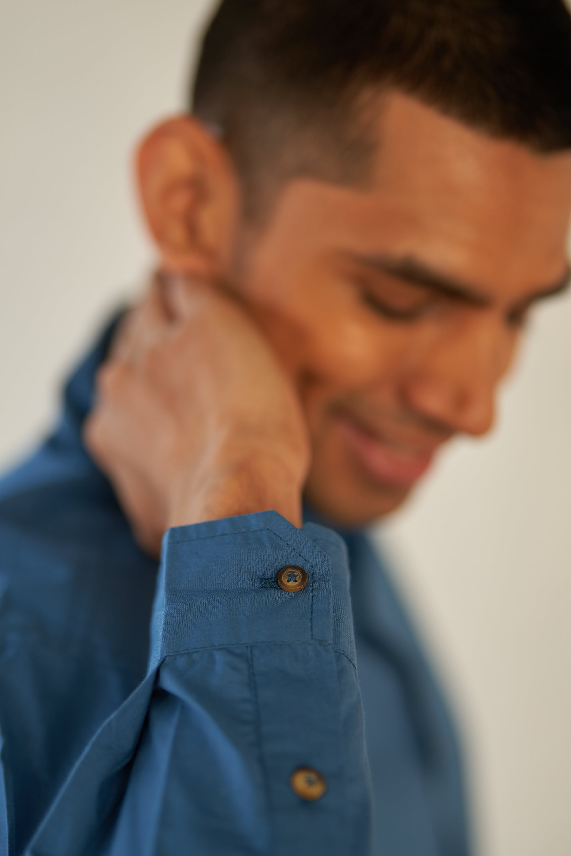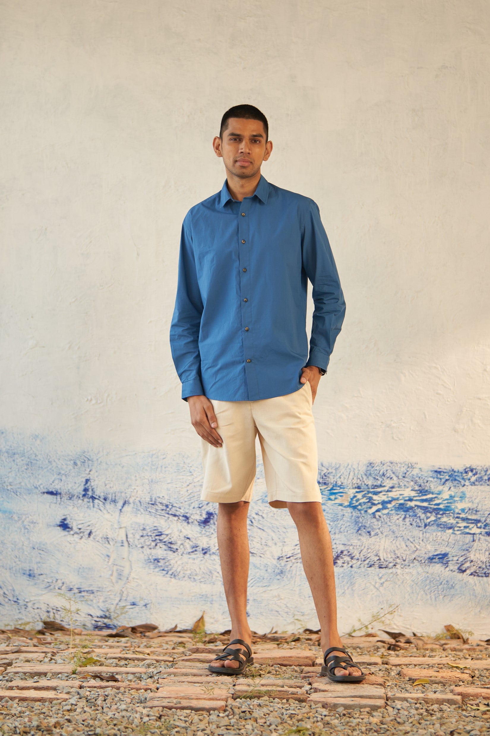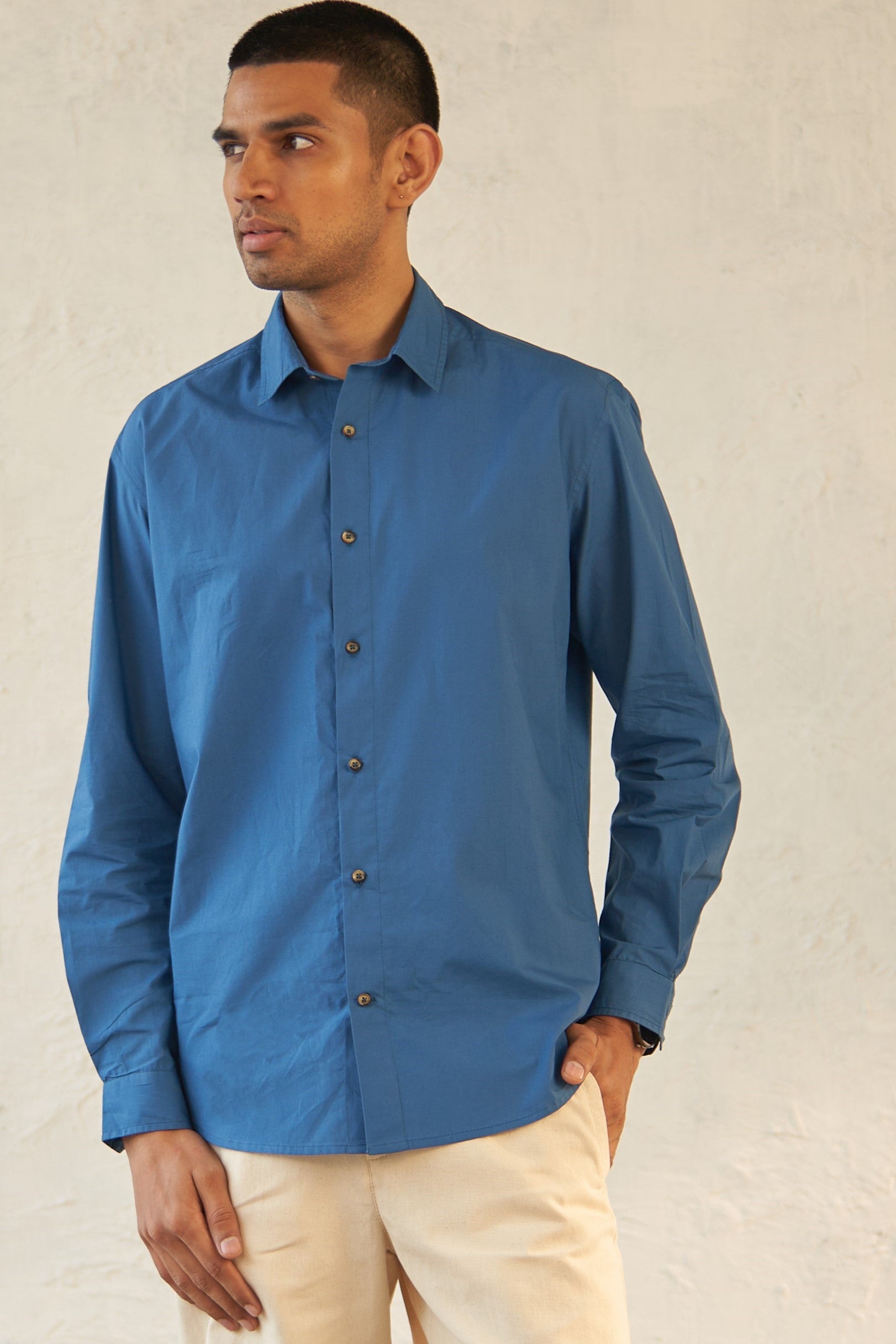 A gentleman's must-have shirt in the timeless shade of blue. Crafted in a regular fit, this shirt features curved sides and hem, ensuring both comfort and style. Perfect for city life and everyday discoveries, it's a standard choice for the modern man's wardrobe.