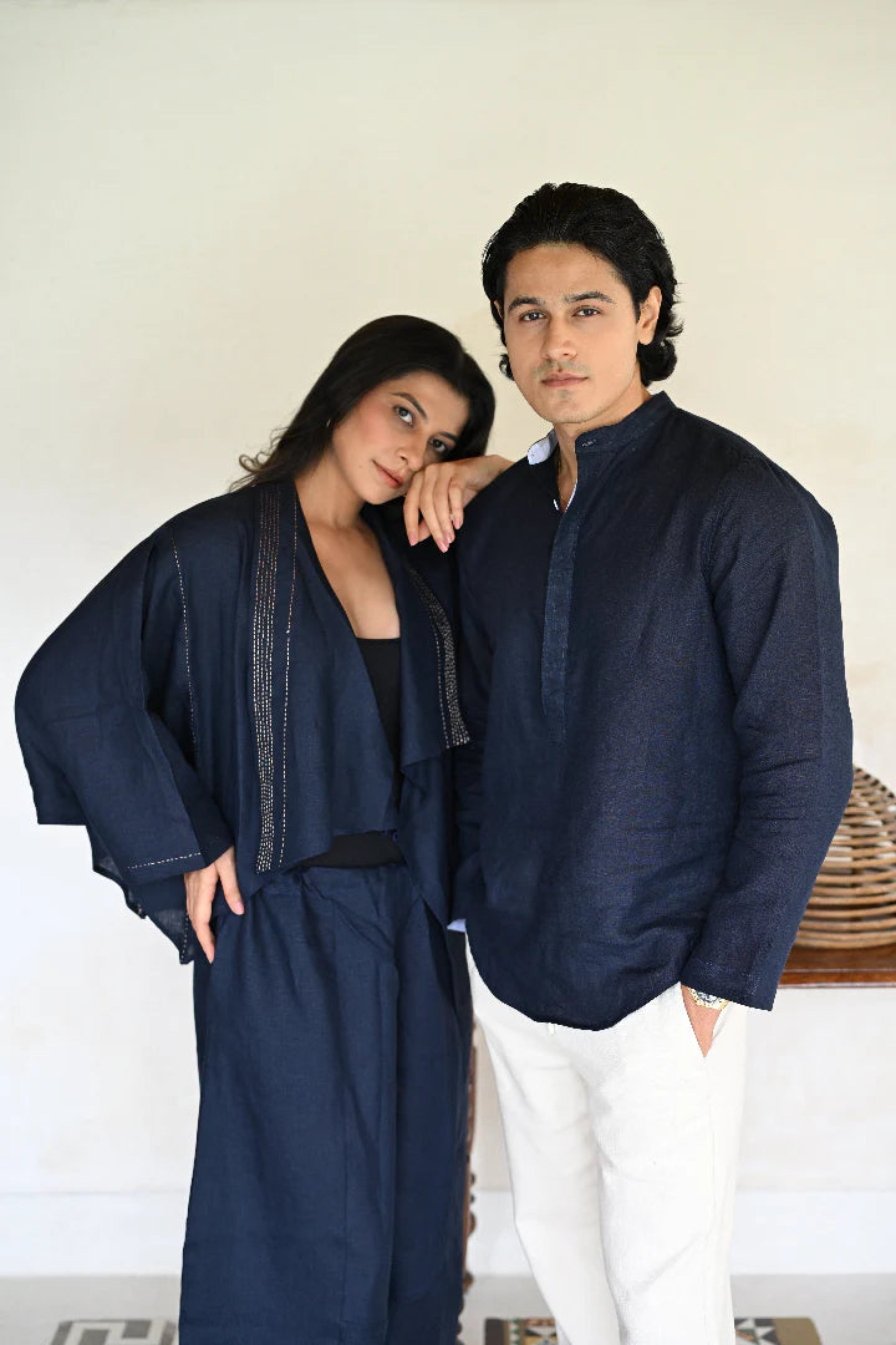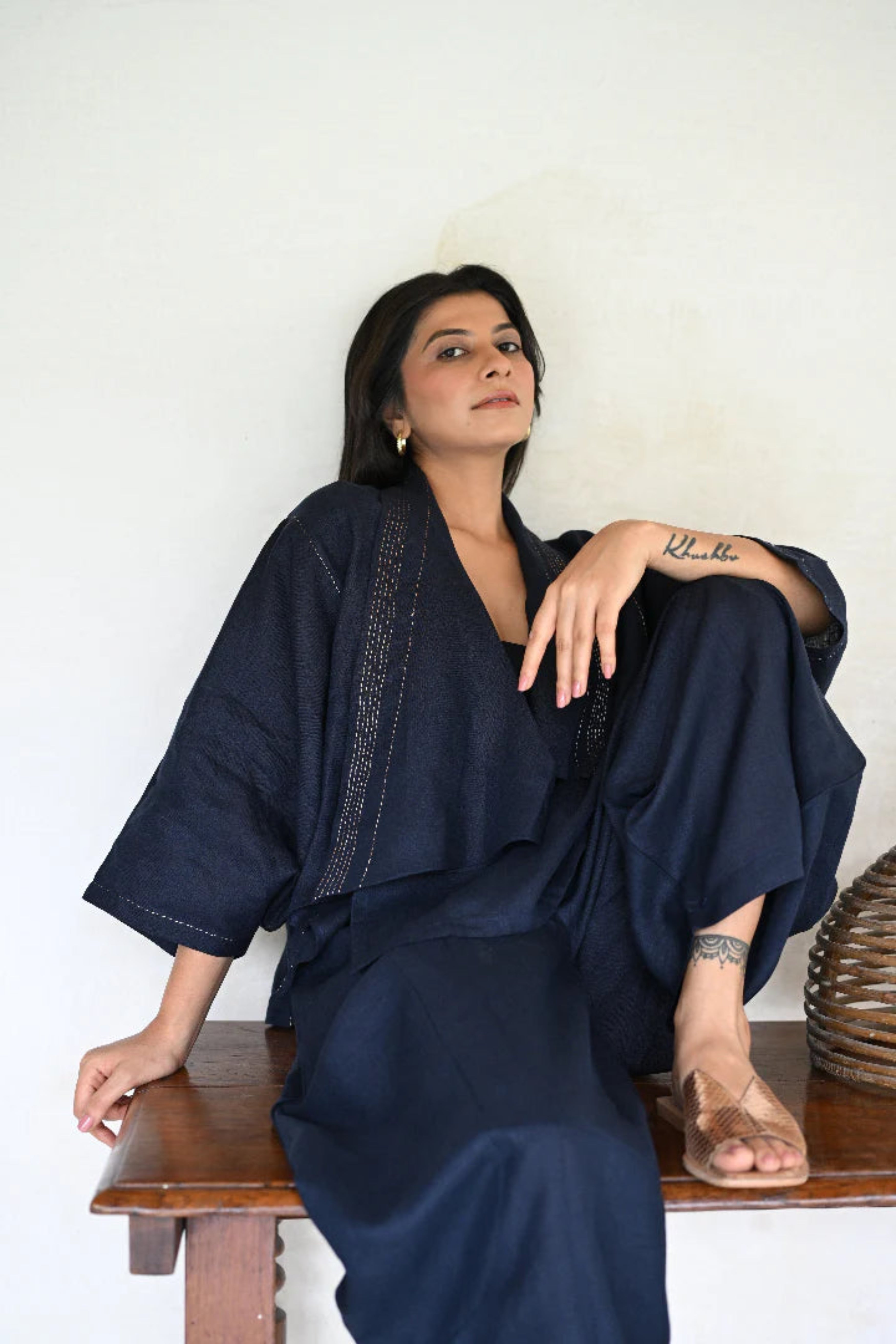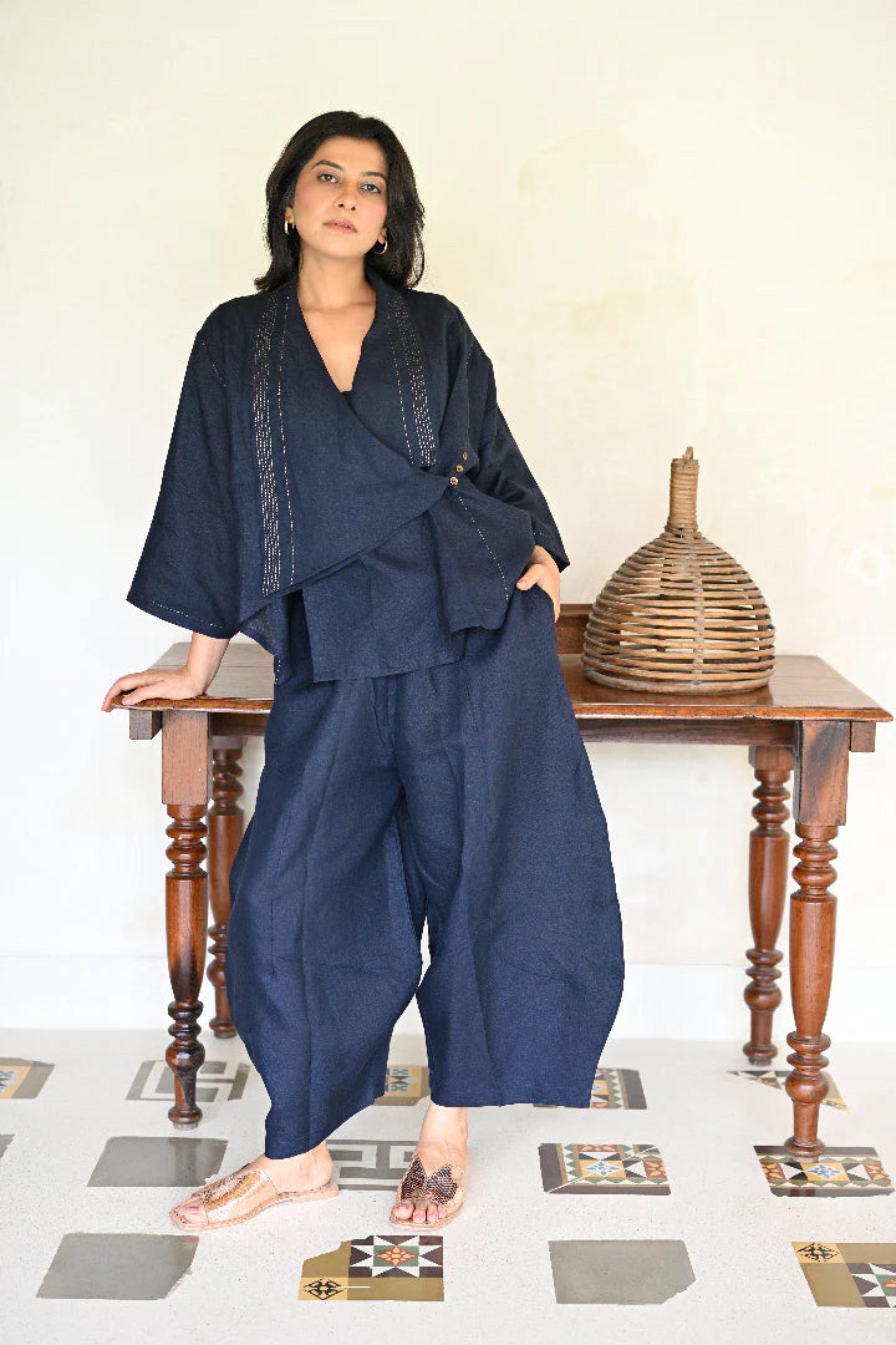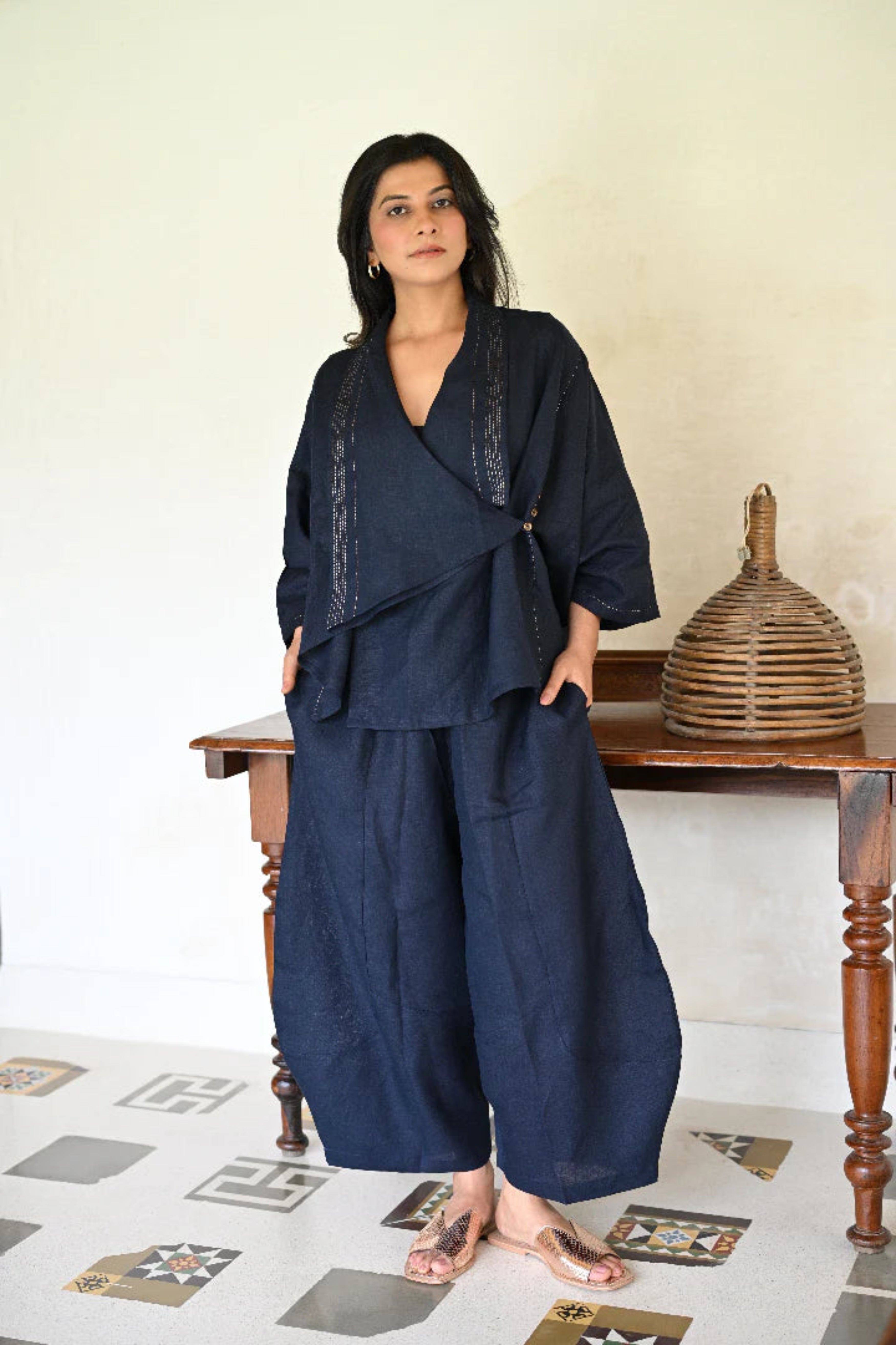 Our free size indigo Yoko pants are a perfect blend of comfort and elegance. Made from organic linen, they feature an effortlessly relaxed fit. A true wardrobe essential, these pants elevate everyday style with their refined simplicity.