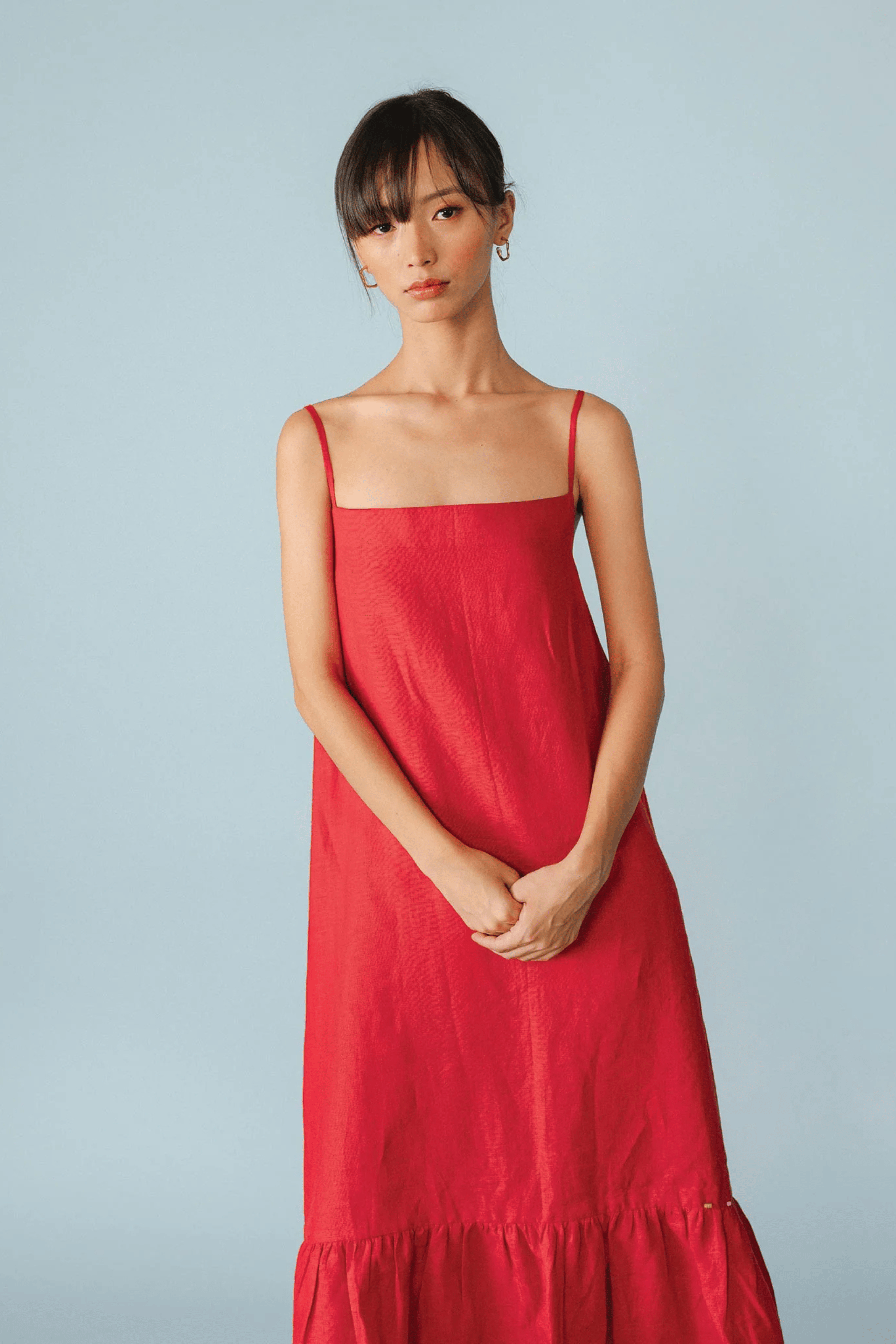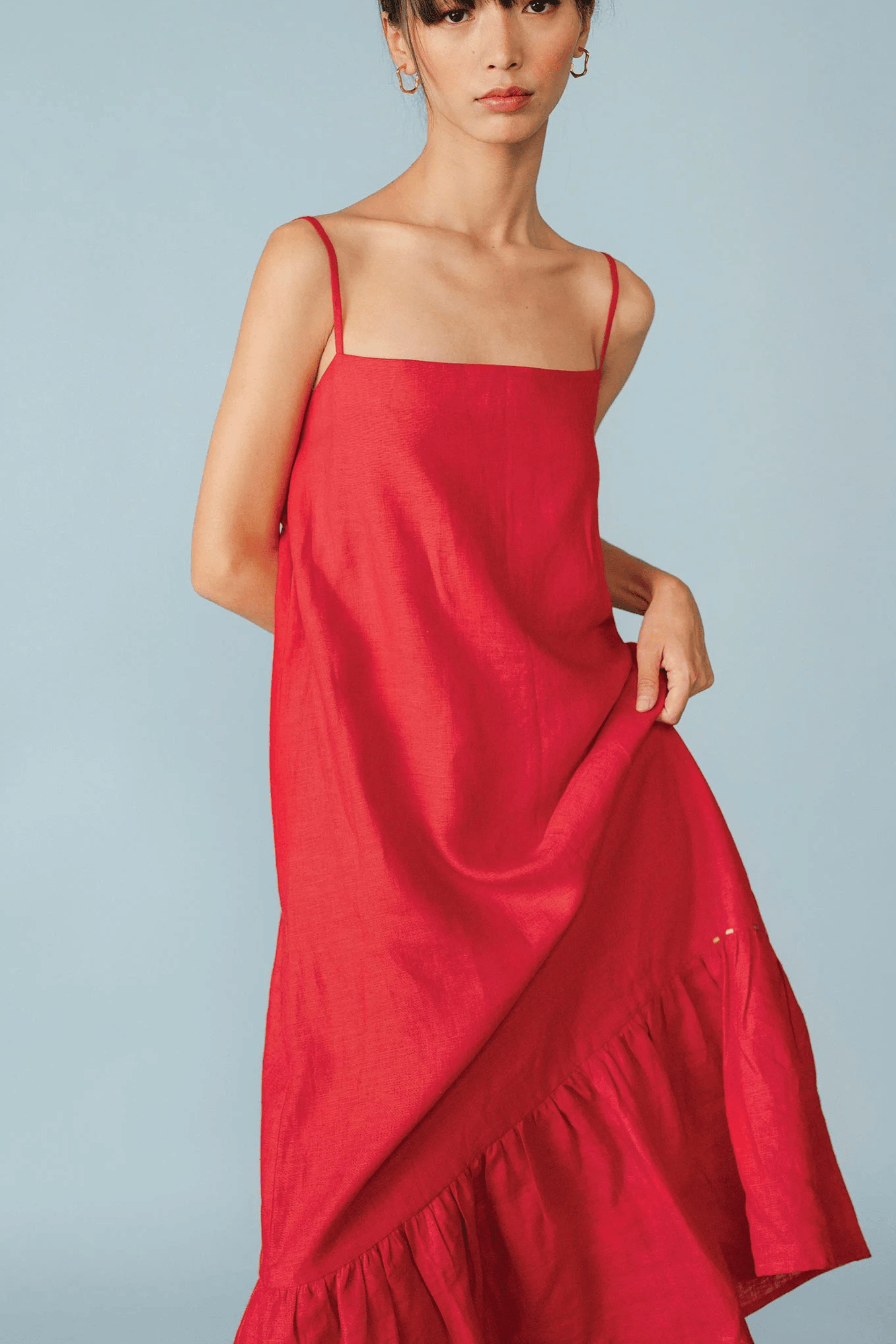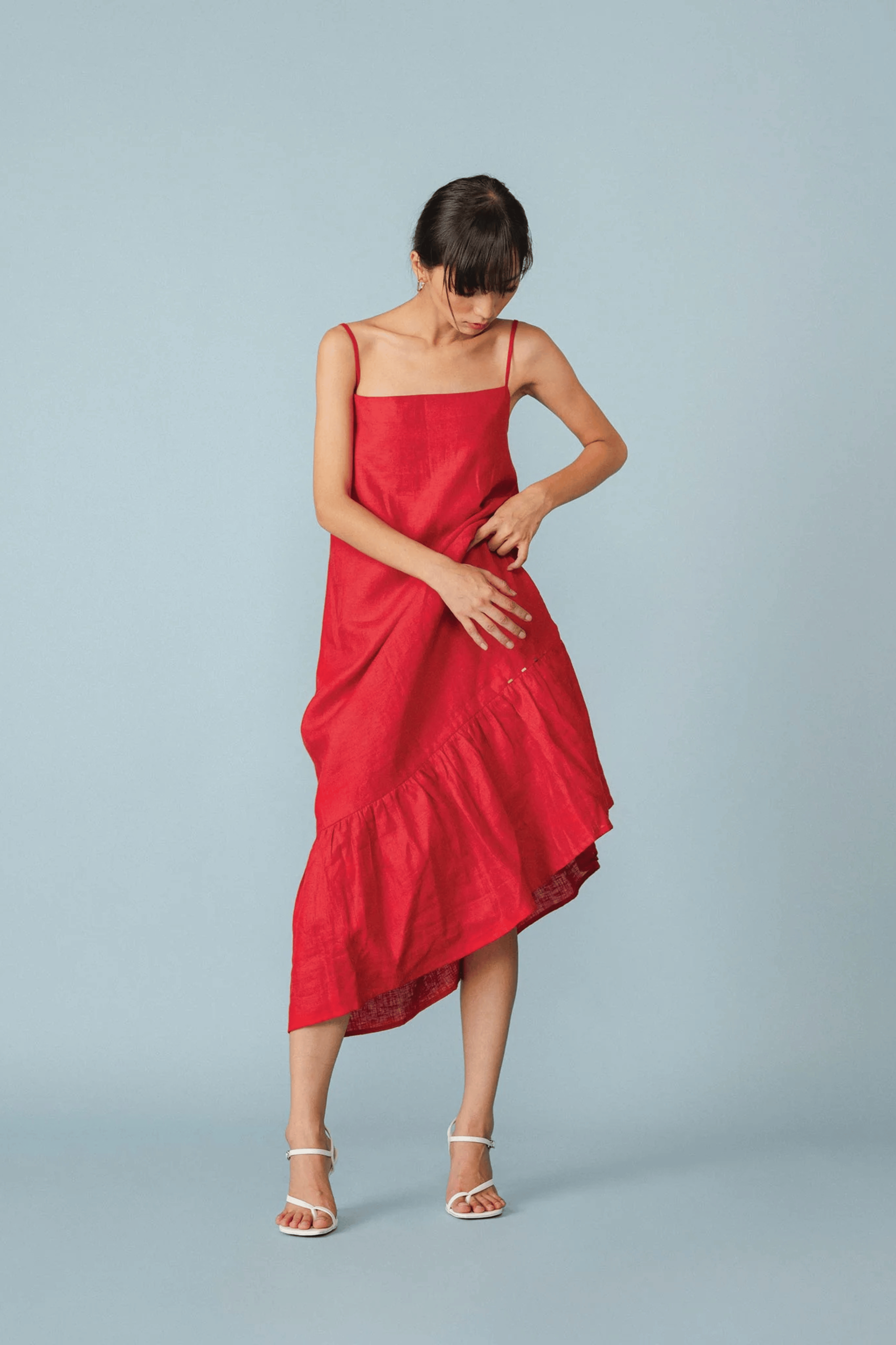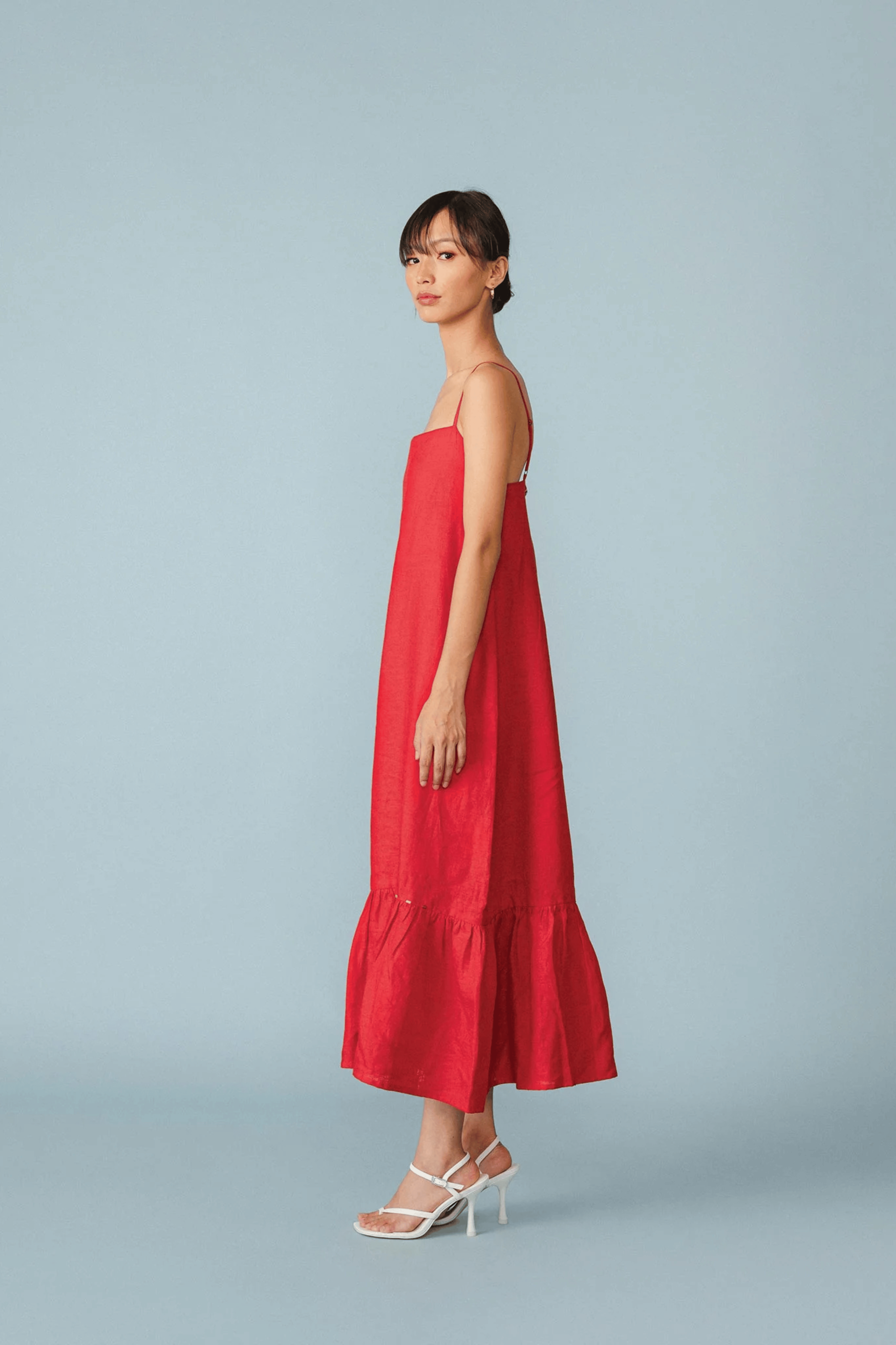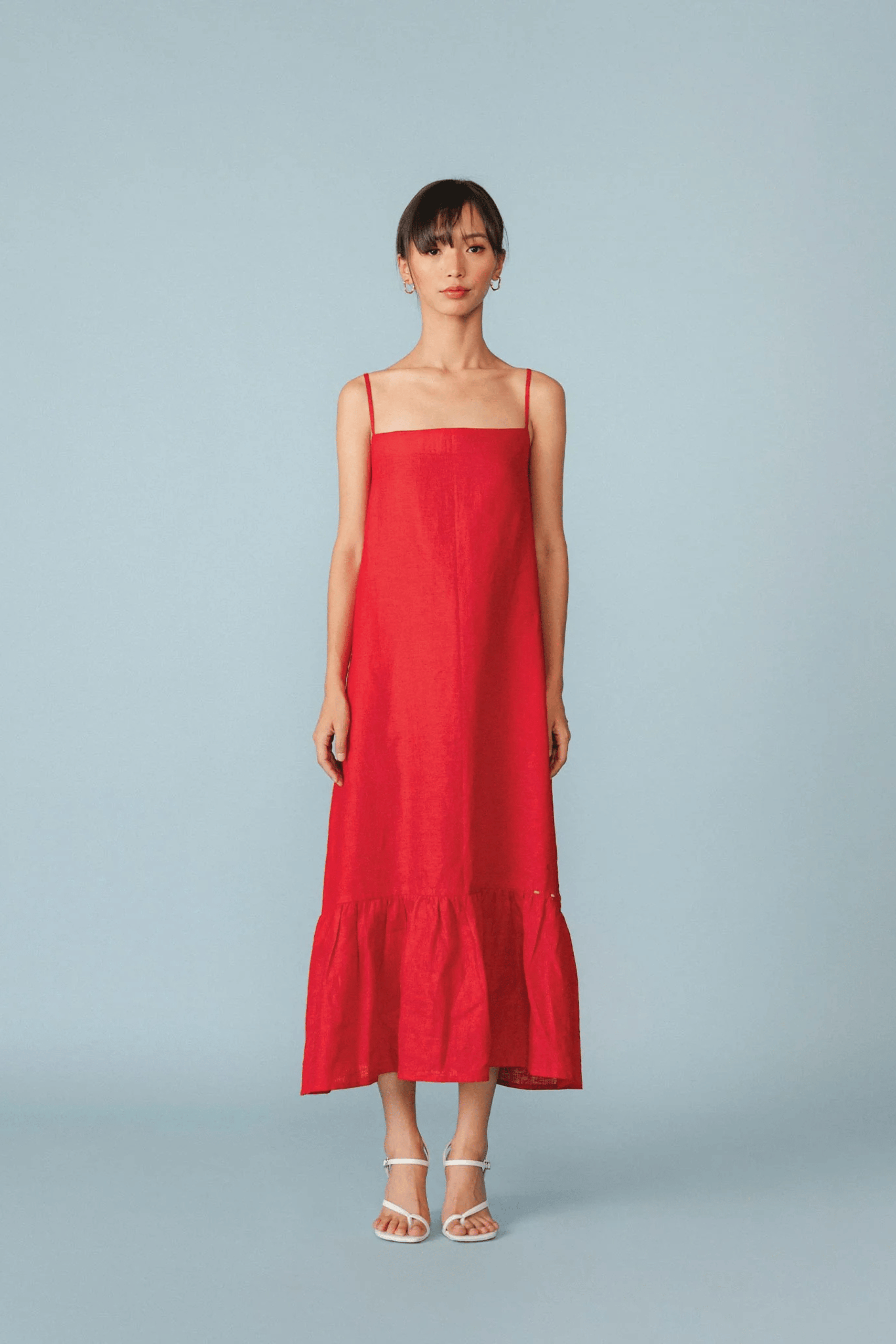 The dress is patterned with cutout on the waist and attached in the front and stunning open back. It is detailed with round neckline and embroidery on the skirt. The dress is perfect piece to take you from day to night.