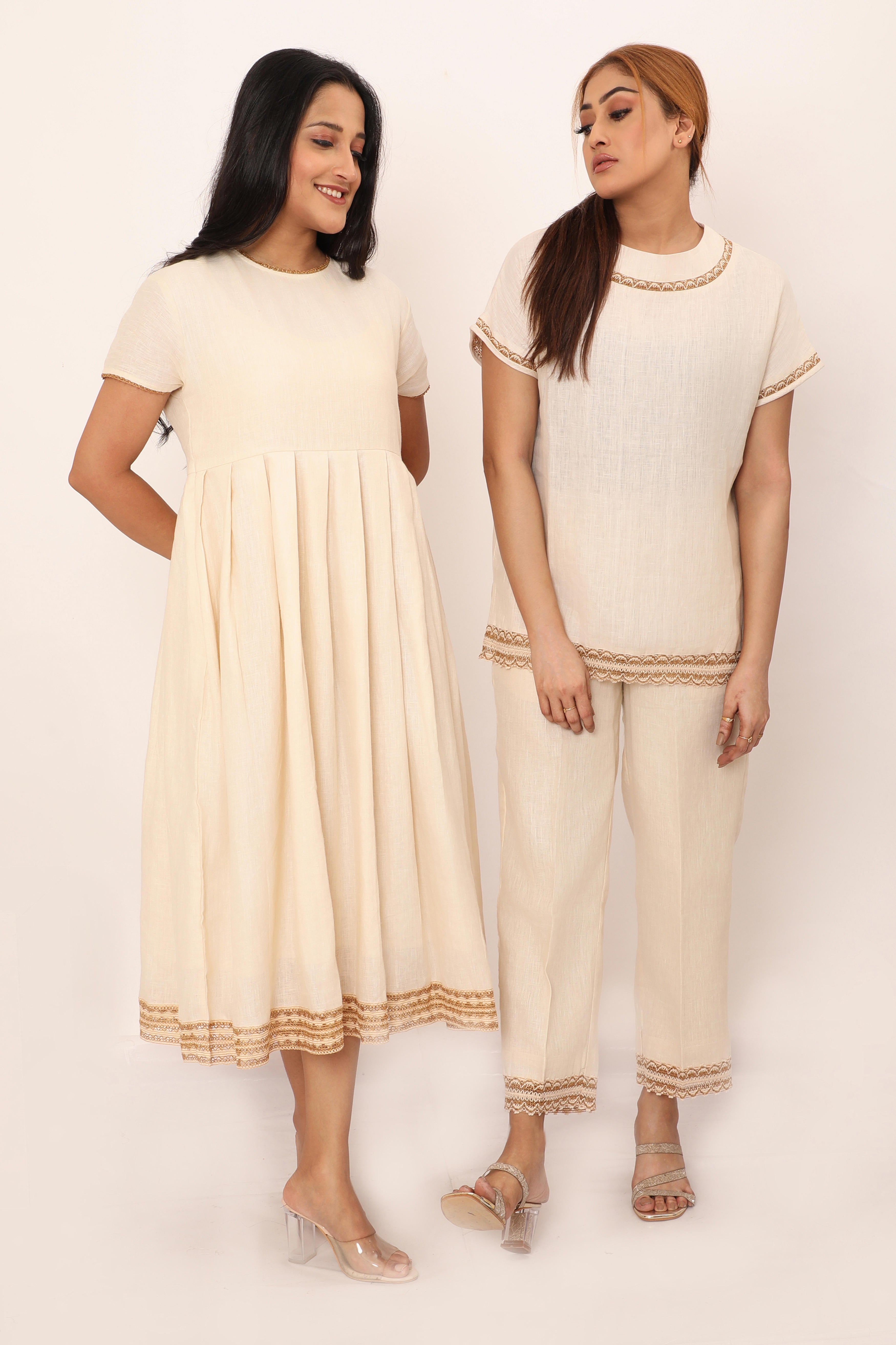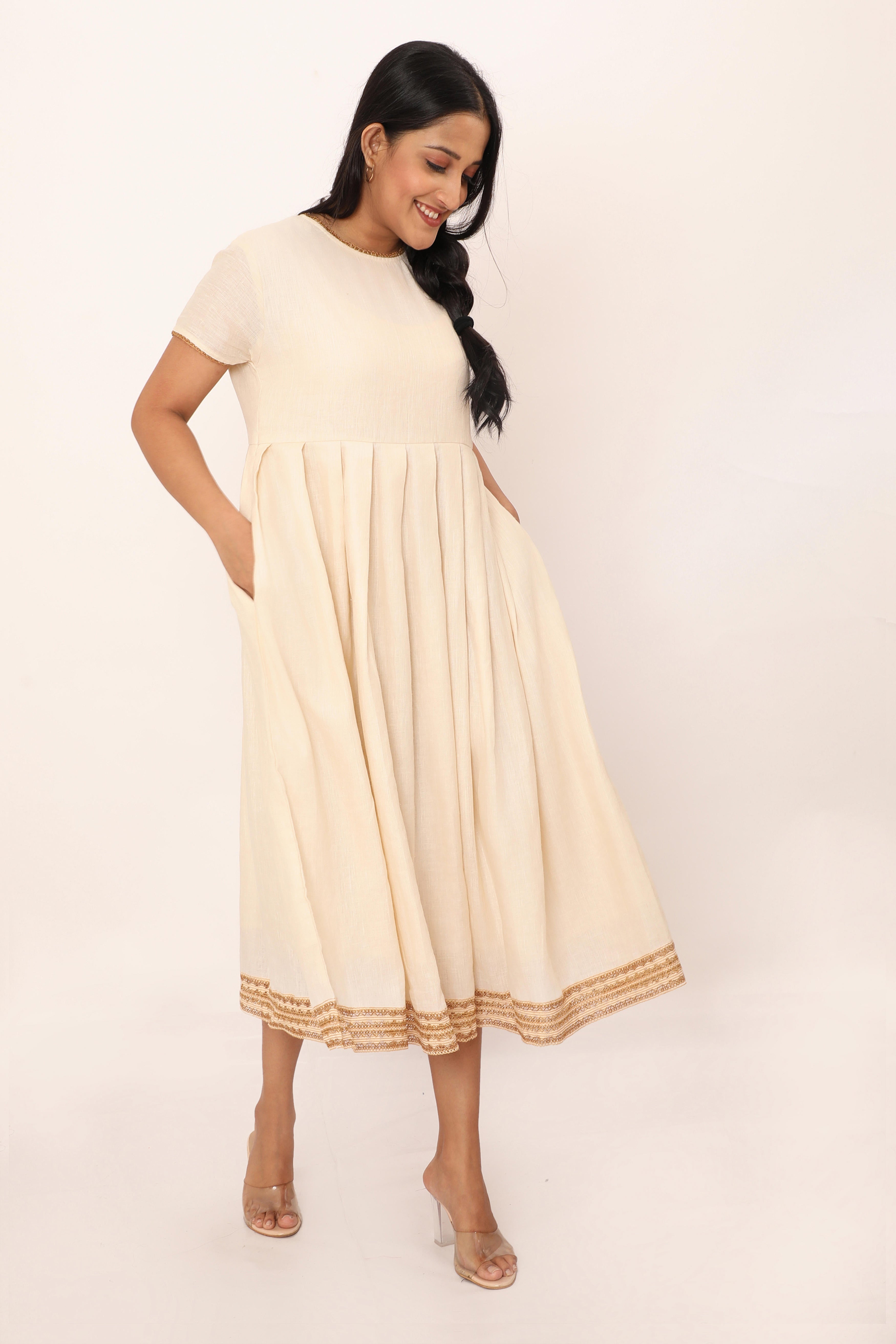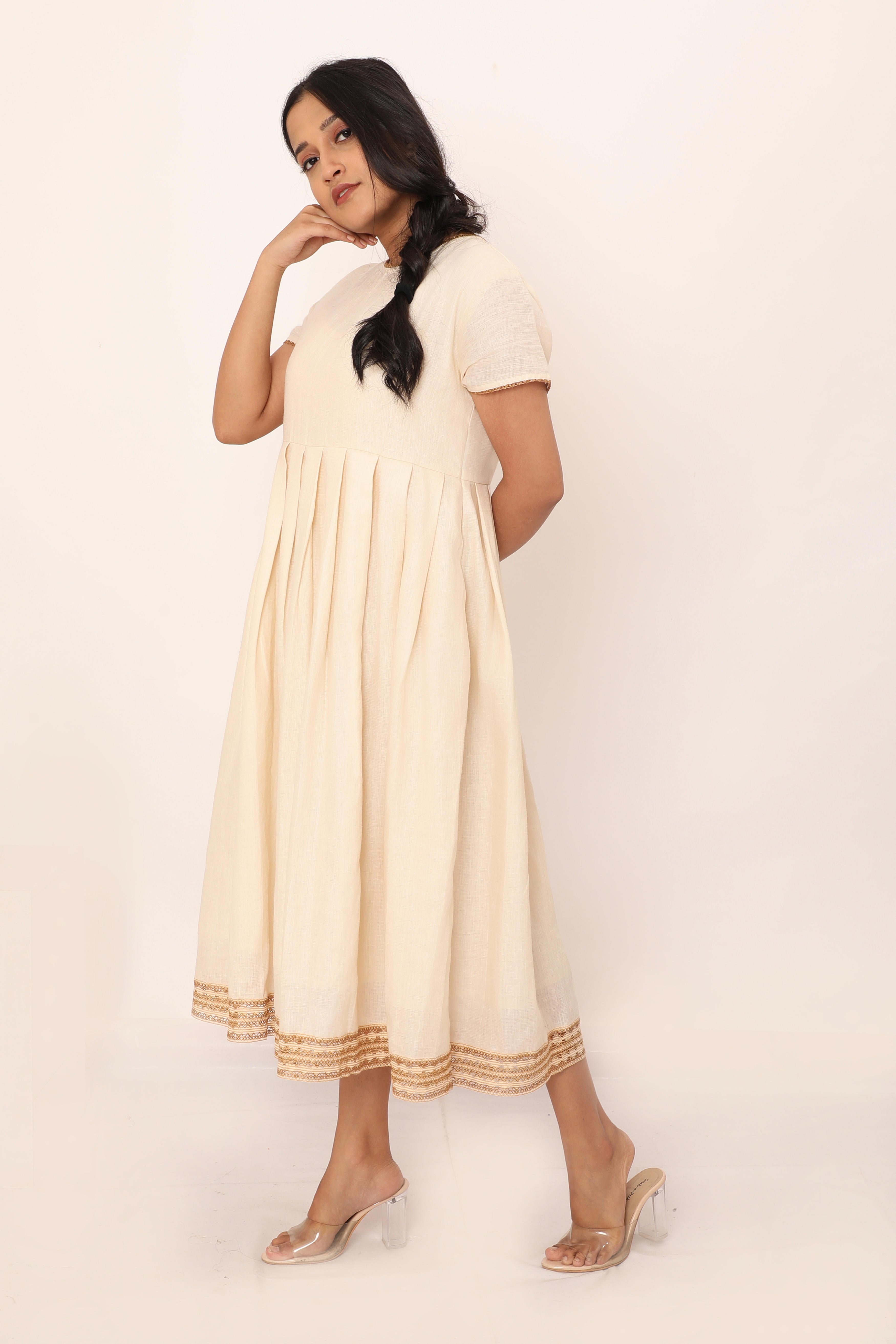 The Celeste dress is the perfect blend of elegance and simplicity. With its flattering pleats and delicate detailing, this dress offers a relaxed yet polished look. Whether you?e dressing up for a special occasion or enjoying a leisurely day, Celeste ensures you stay comfortable while looking effortlessly chic. The thoughtful craftsmanship and timeless design make it a versatile addition to your wardrobe, sure to be a favorite for years to come.