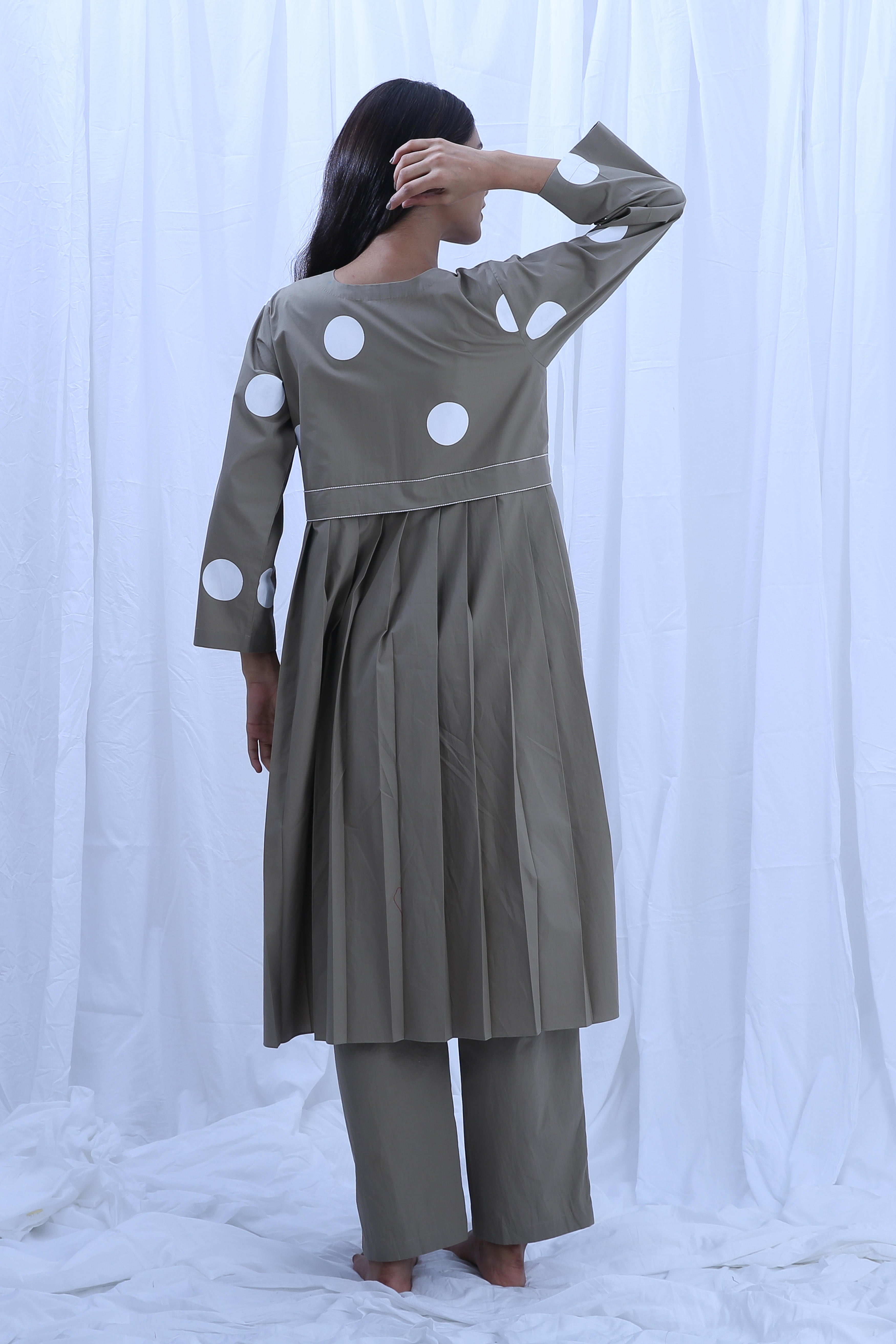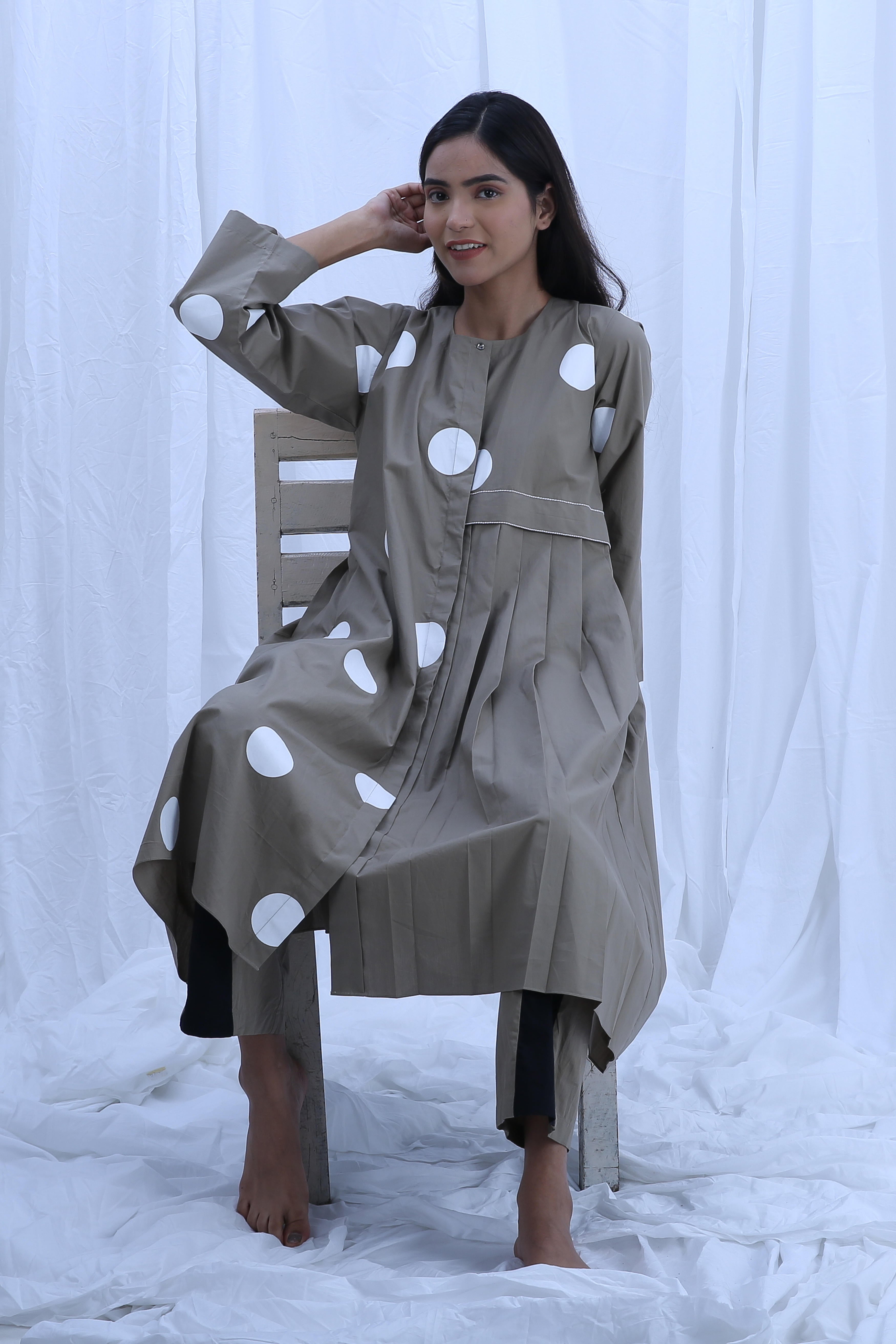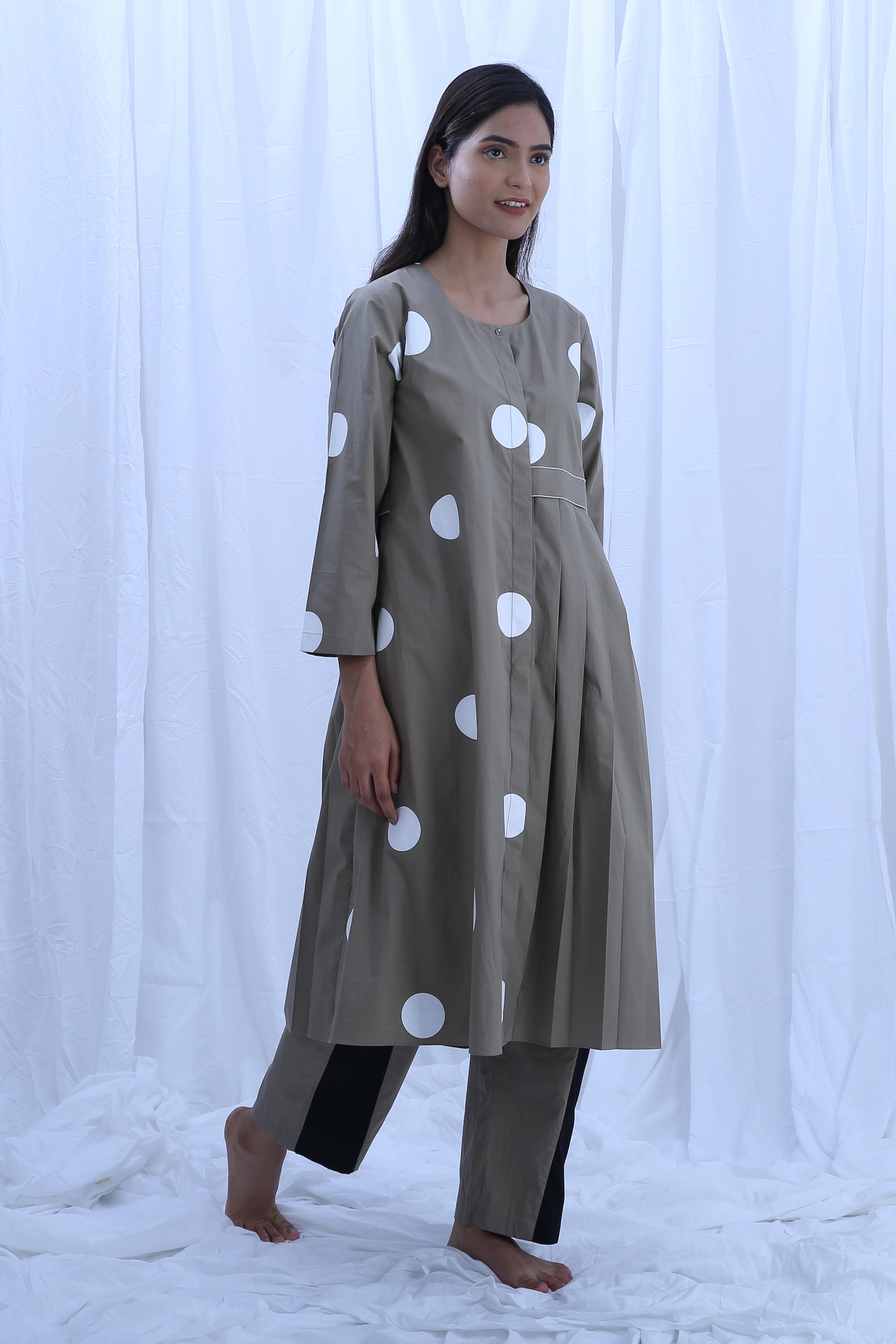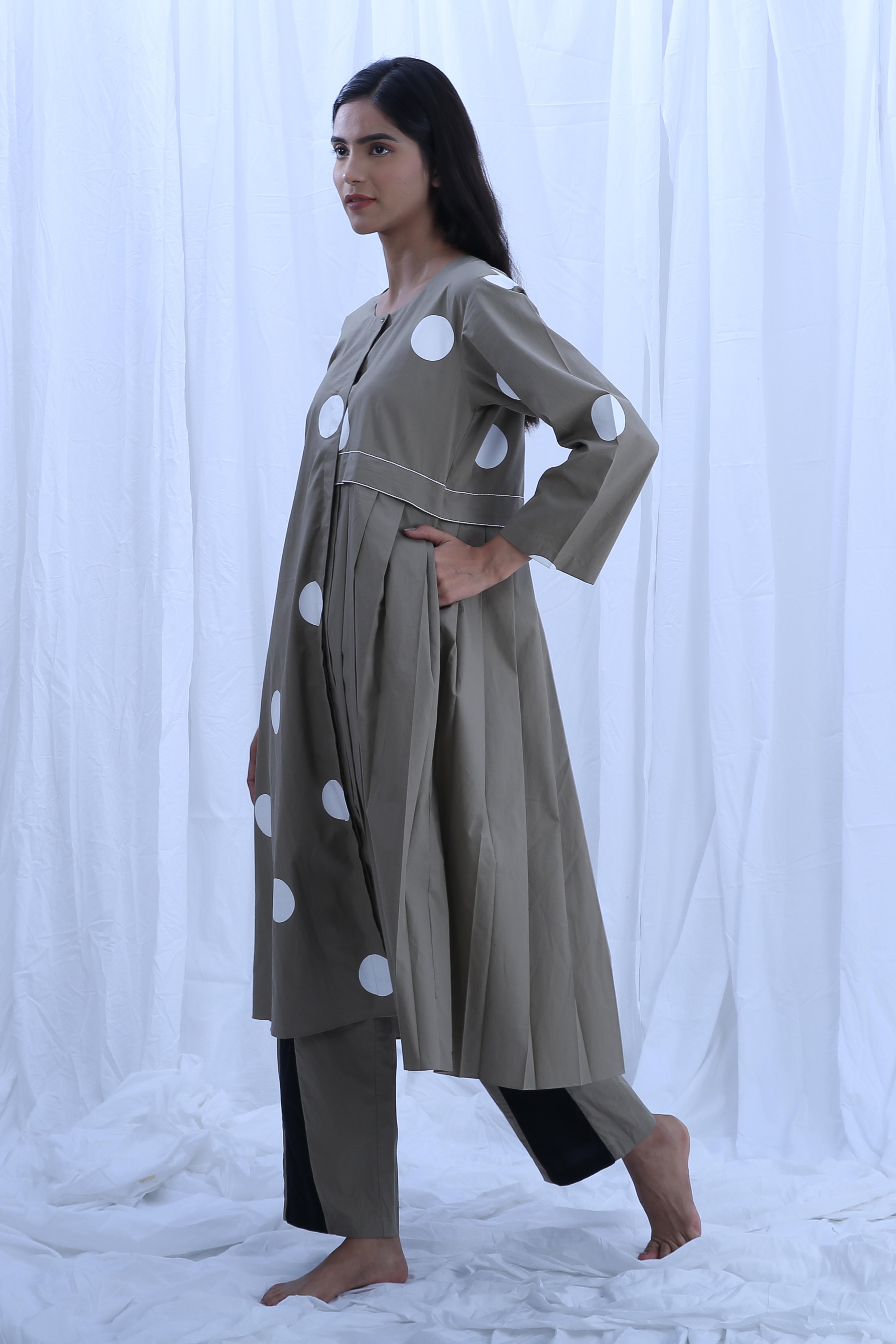 This elegant Poplin Cotton set in Clary Sage is perfect for any occasion. The Dress Length is 44 inches, and the Bottom Length is 38 inches, offering a flattering silhouette. Our model, standing at 5'8", is wearing a size S.