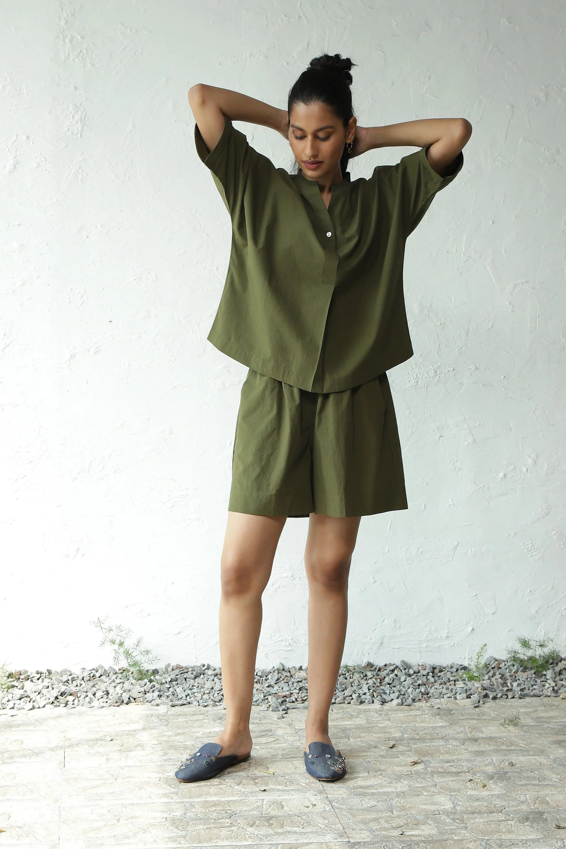 EaseVenture' Comfortable Cotton Shorts - Crafted for Comfort and Style. Made from lightweight and breathable cotton, these shorts feature a relaxed and breezy shape. The elasticated waistband and practical pockets enhance convenience. These versatile shorts effortlessly pair with tank tops, shirts, or blouses, making them a go-to choice. For a great exploration trip, complete the look with our matching top. Enjoy your journey in utmost comfort.