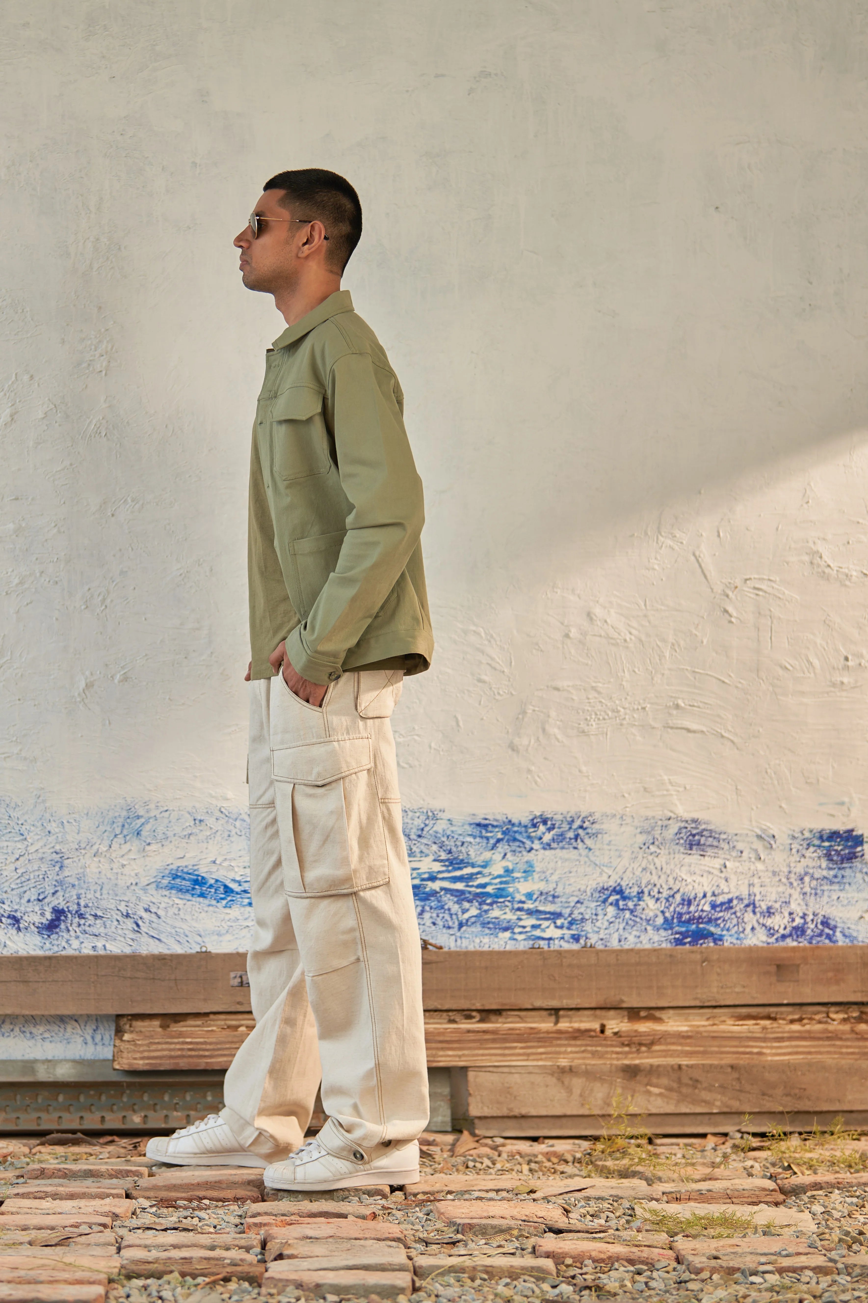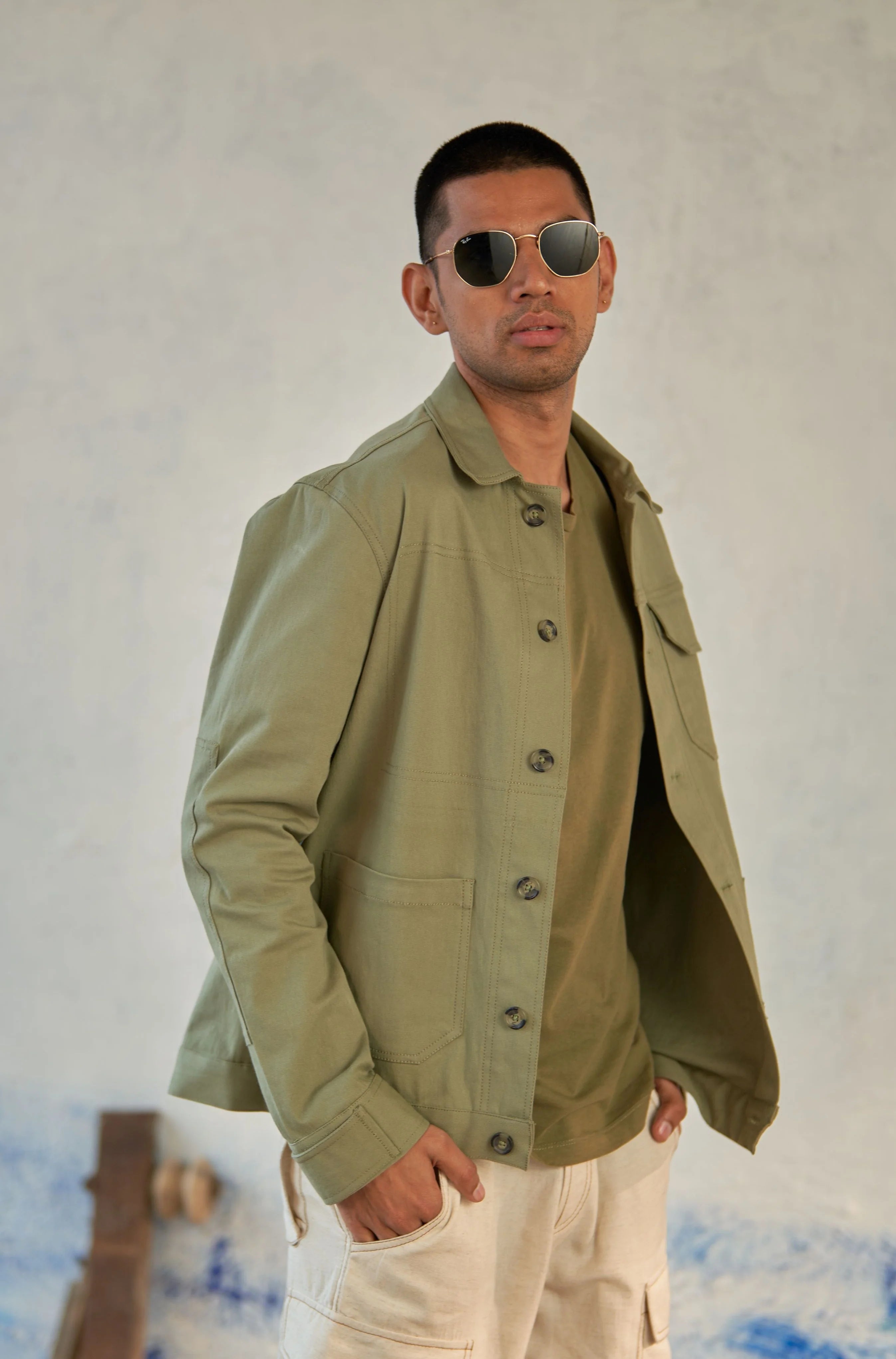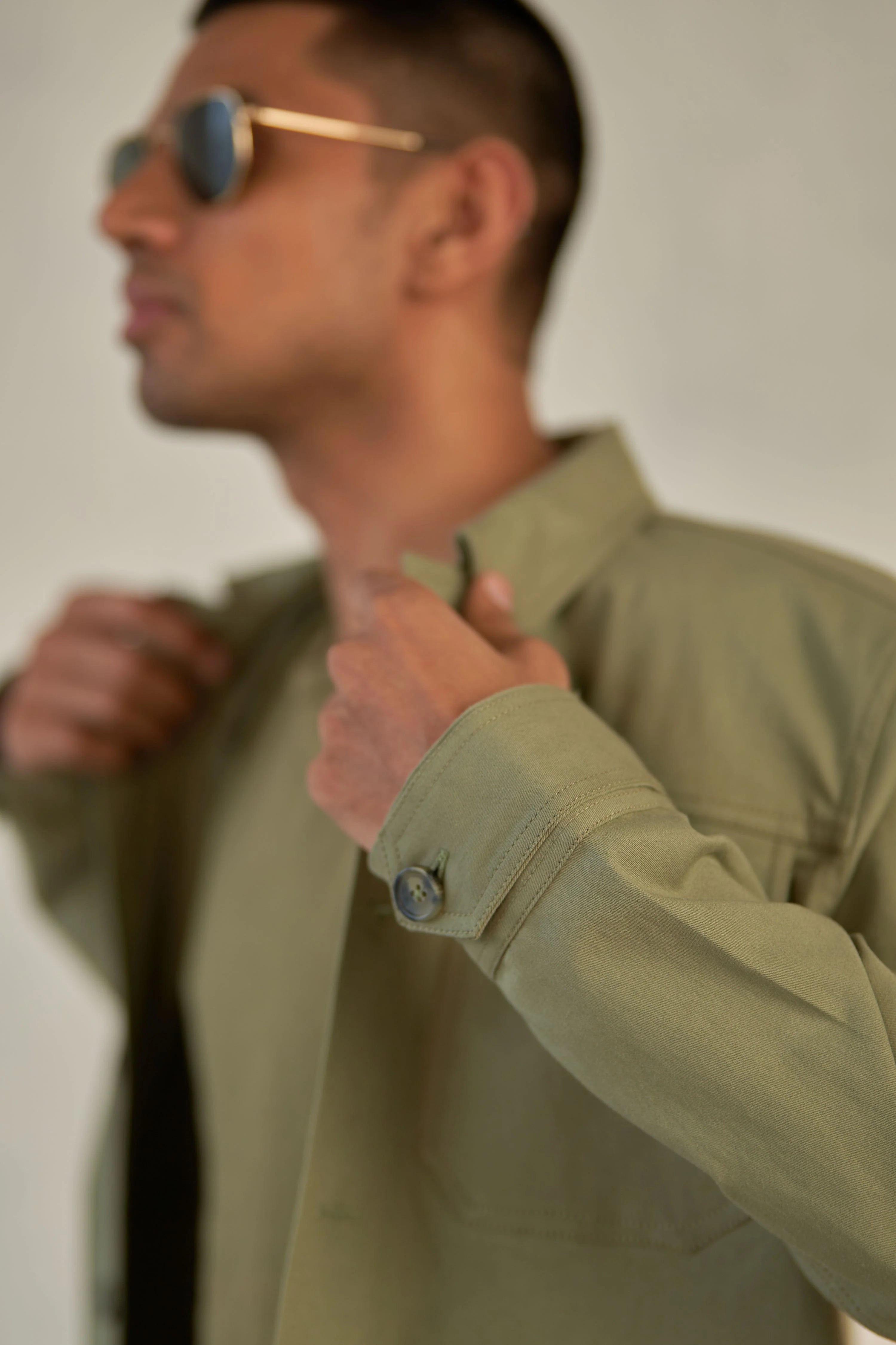 Crafted from a cotton stretch twill fabric, this overshirt boasts a loose and oversized fit, adorned with intricate threadwork detailing. It features patch pockets and a buttoned front placket, adding to its rugged charm. With an elongated elbow patch and adjusted buttoned loop cuffs, it exudes effortless style and versatility. Perfect for pairing with a tee or wearing as a standalone piece, whether you're strolling through the city streets or enjoying a casual brunch.