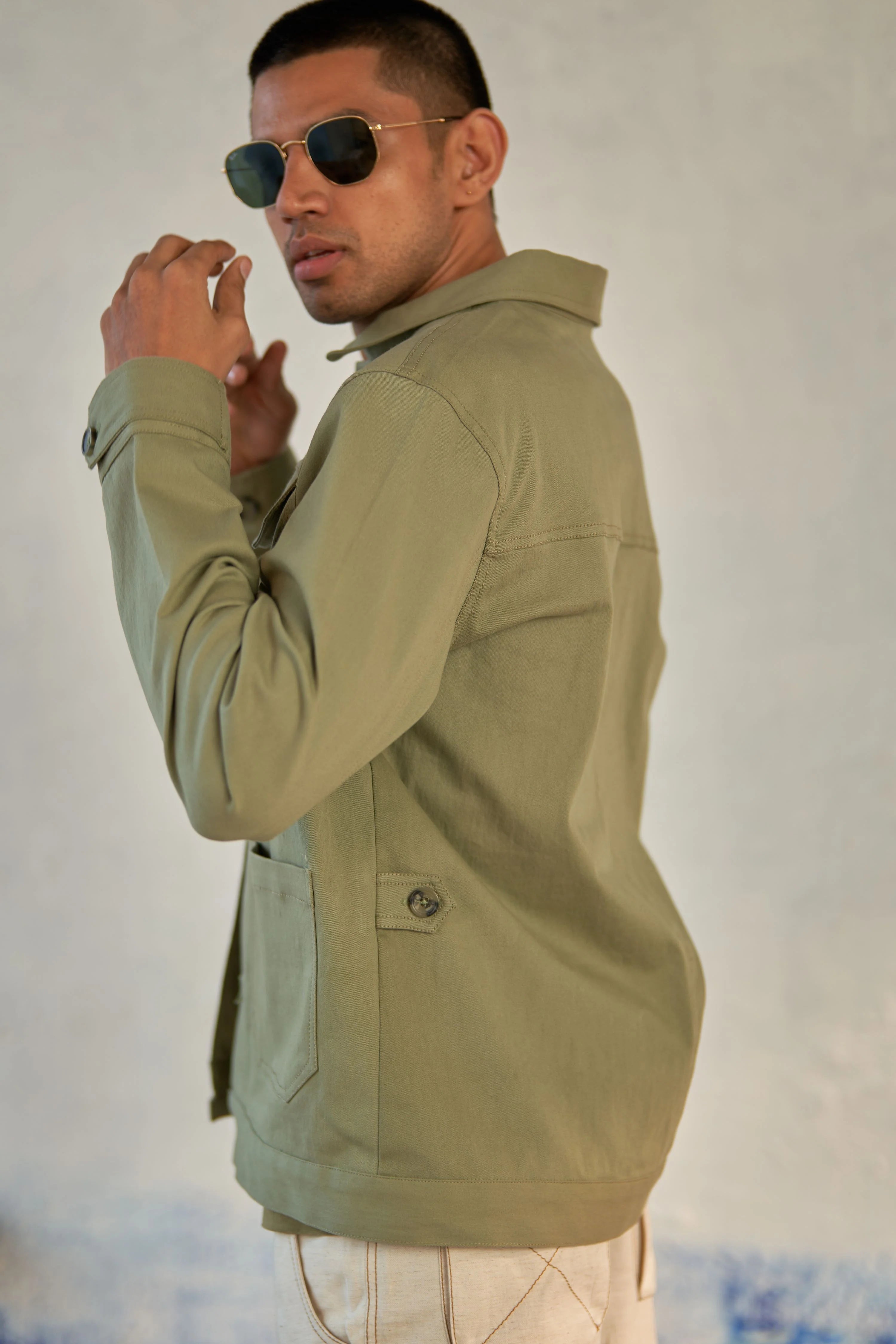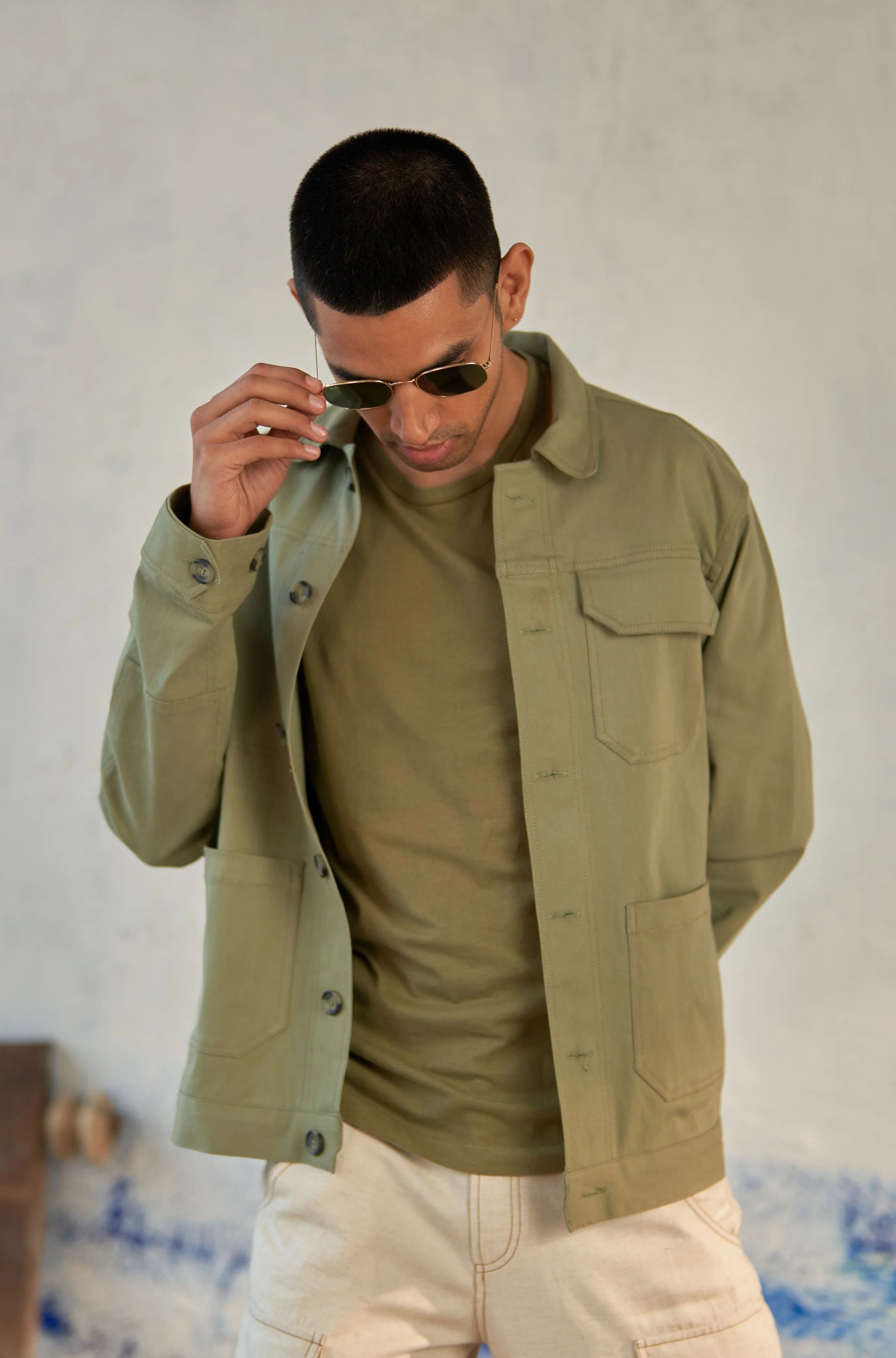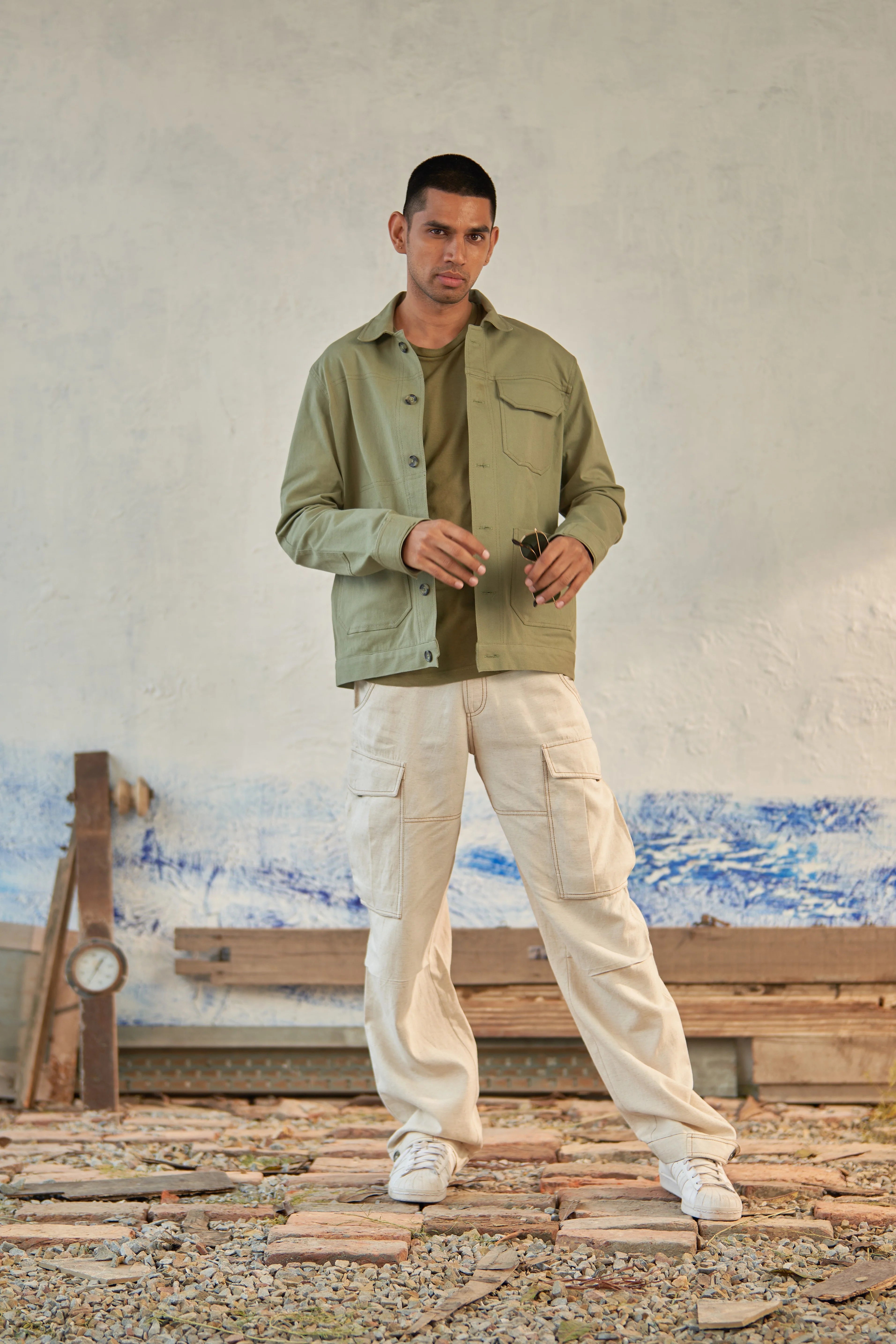 Crafted from a cotton stretch twill fabric, this overshirt boasts a loose and oversized fit, adorned with intricate threadwork detailing. It features patch pockets and a buttoned front placket, adding to its rugged charm. With an elongated elbow patch and adjusted buttoned loop cuffs, it exudes effortless style and versatility. Perfect for pairing with a tee or wearing as a standalone piece, whether you're strolling through the city streets or enjoying a casual brunch.