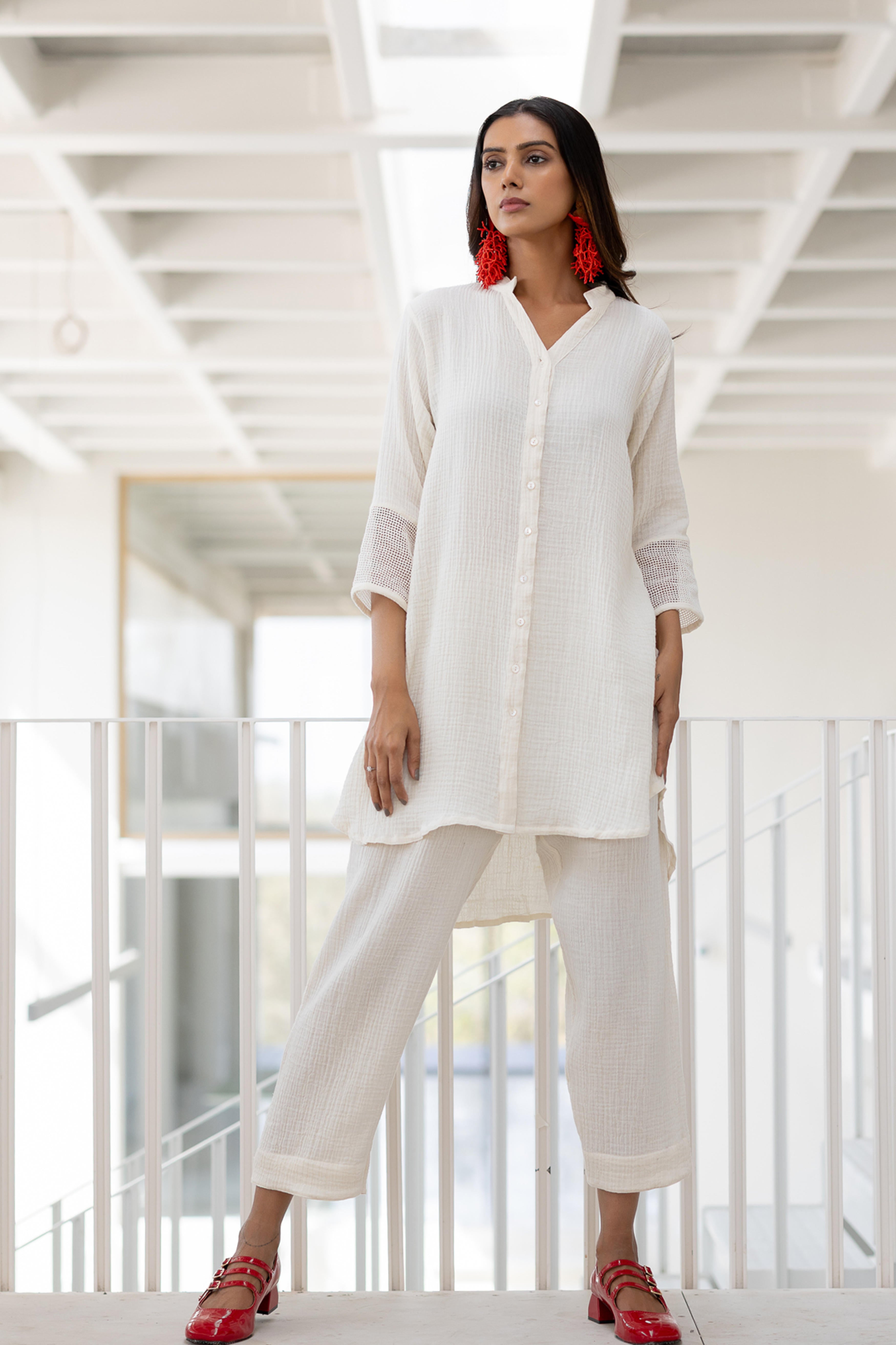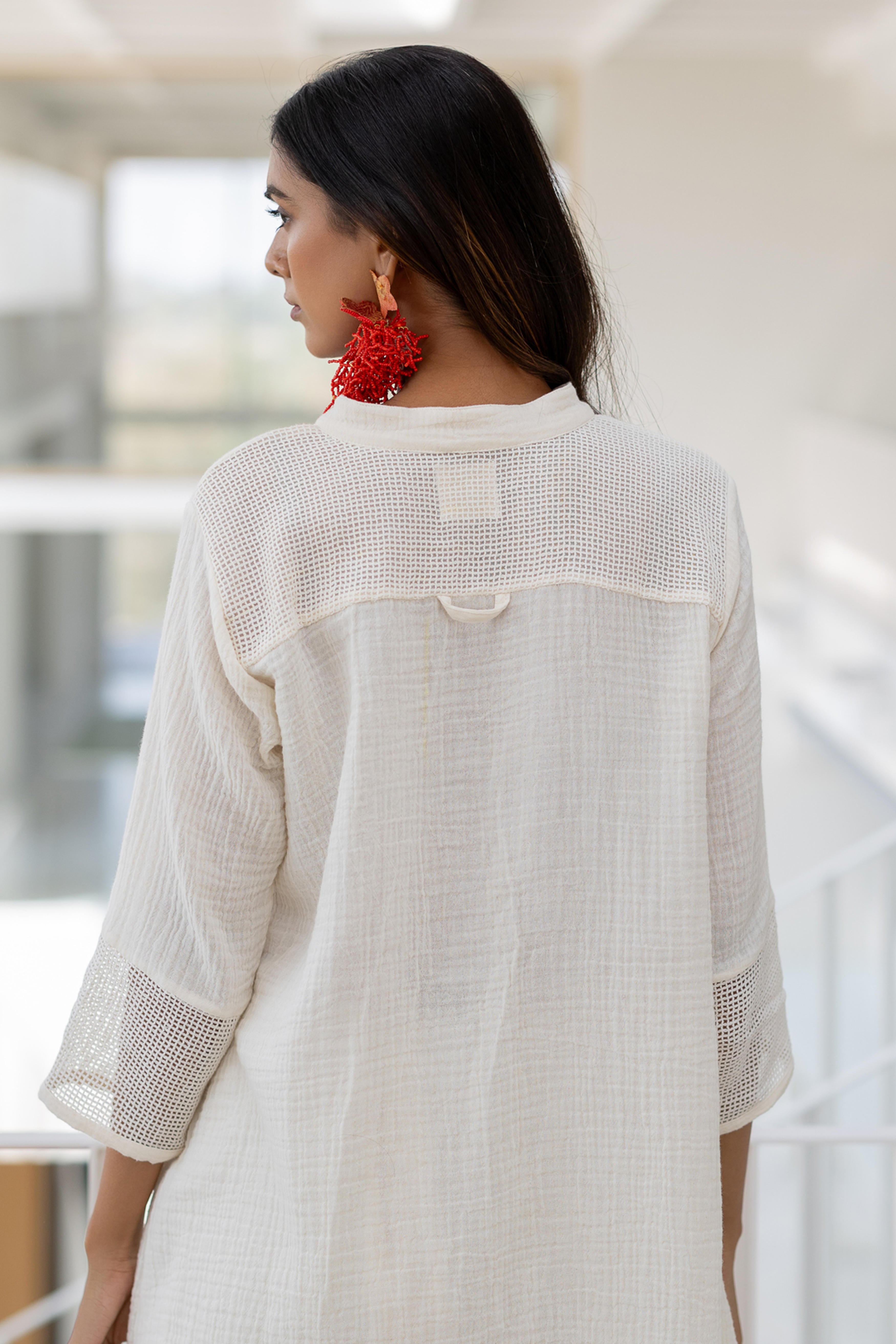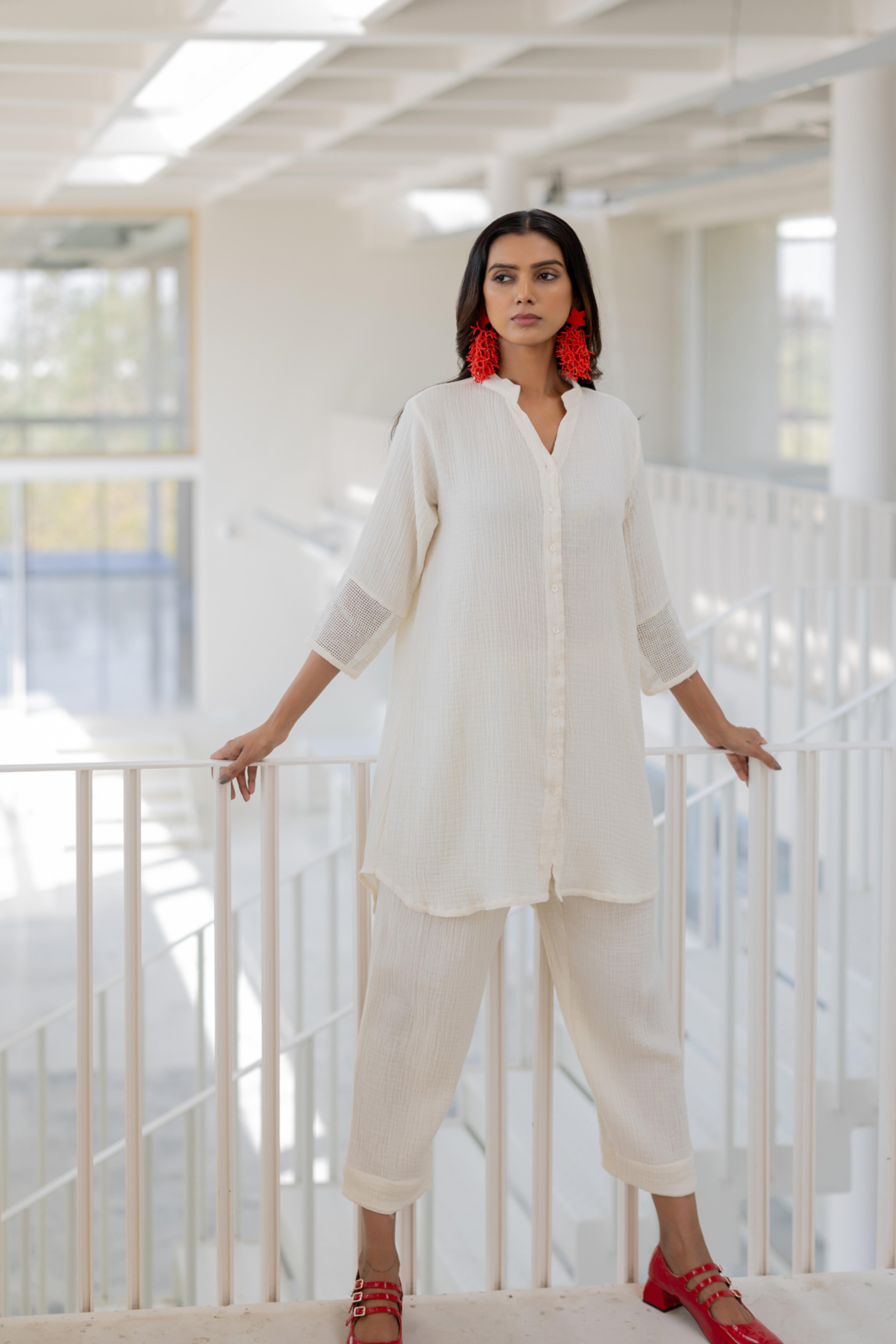 Minimalism meets elegance with the Vanilla Mist Tunic, a sophisticated piece crafted for effortless grace. This tunic features a relaxed button-down design with delicate detailing on the sleeves, adding a touch of subtle texture. Perfectly versatile, it’s an ideal choice for casual outings, workwear, or elevated evening wear.