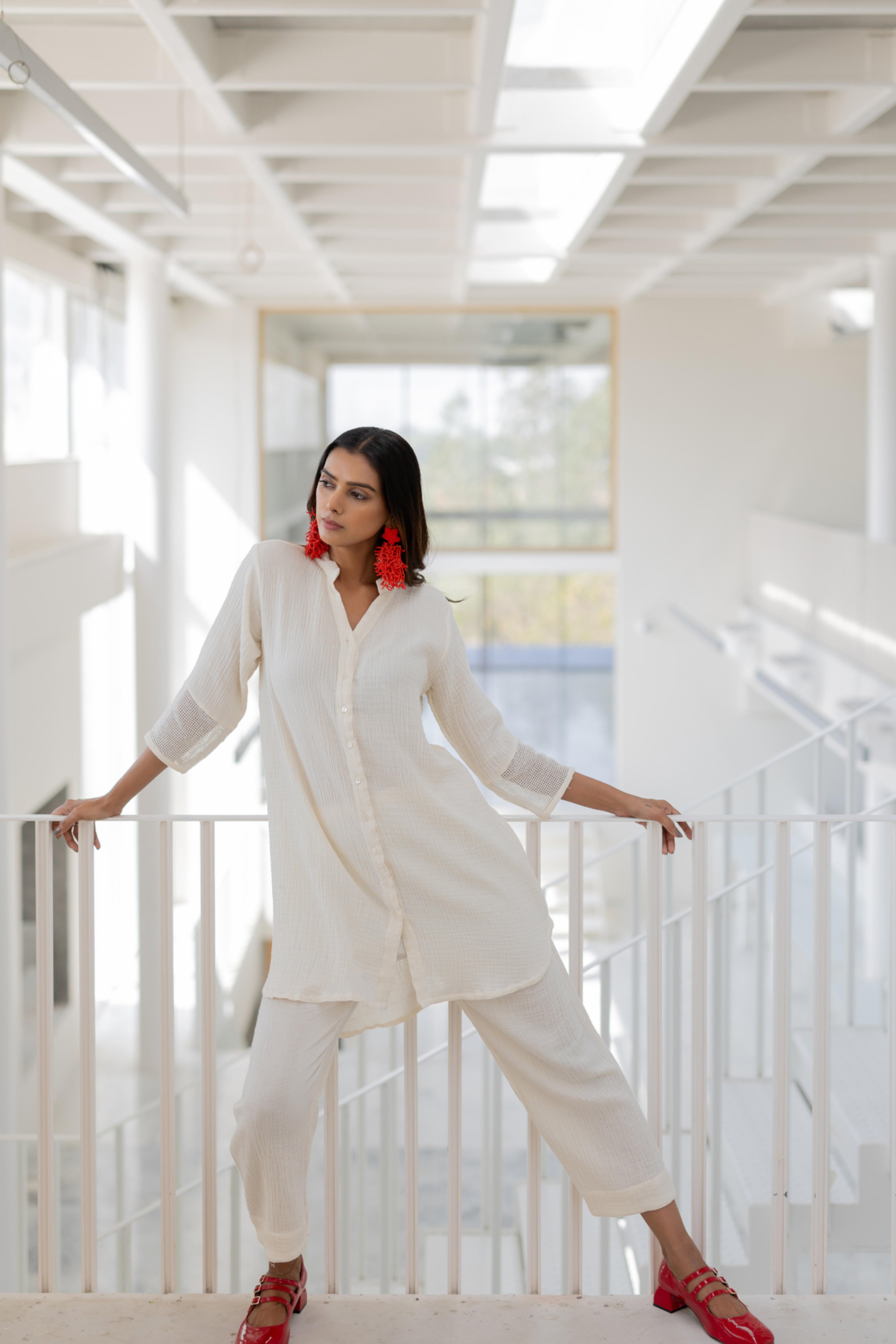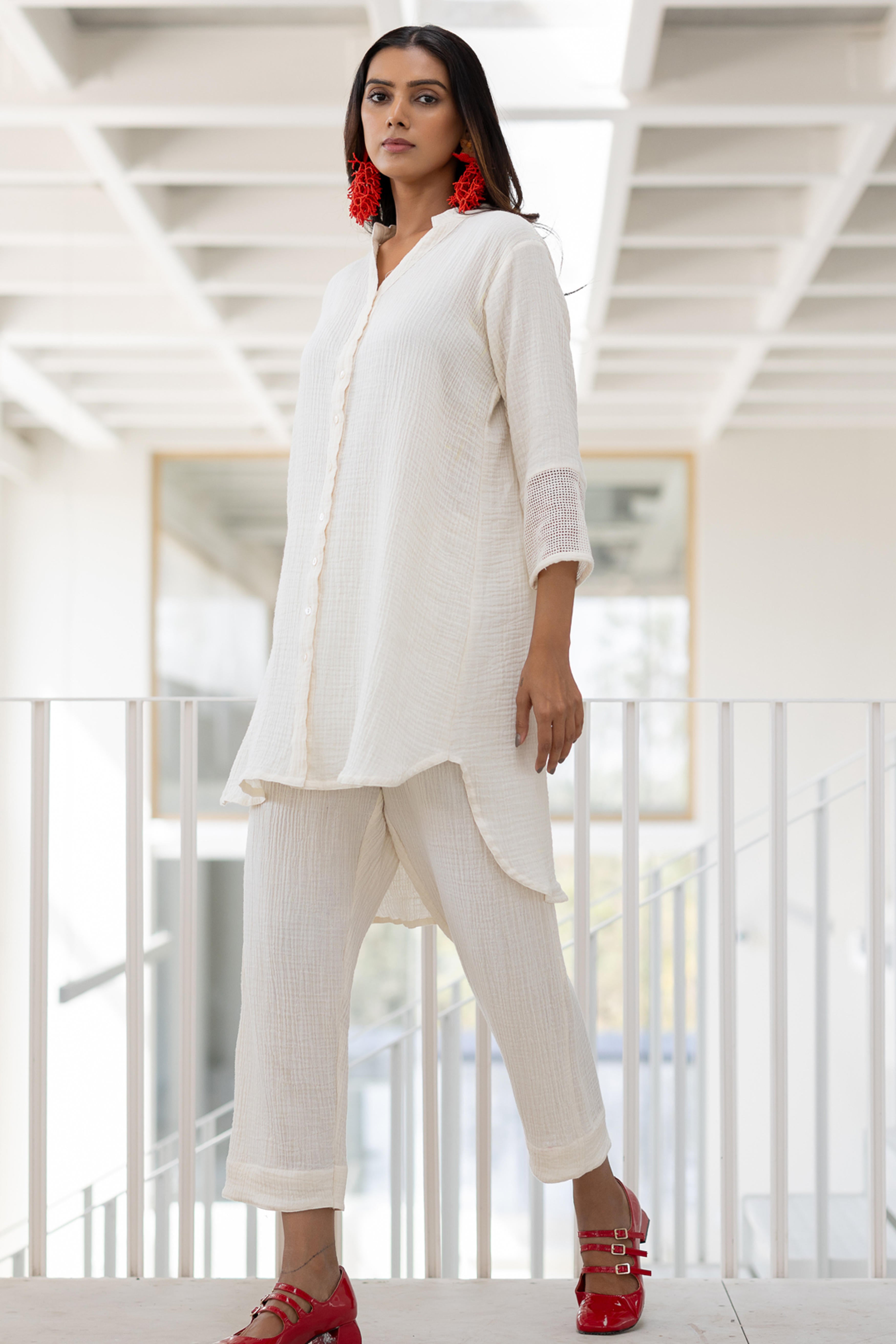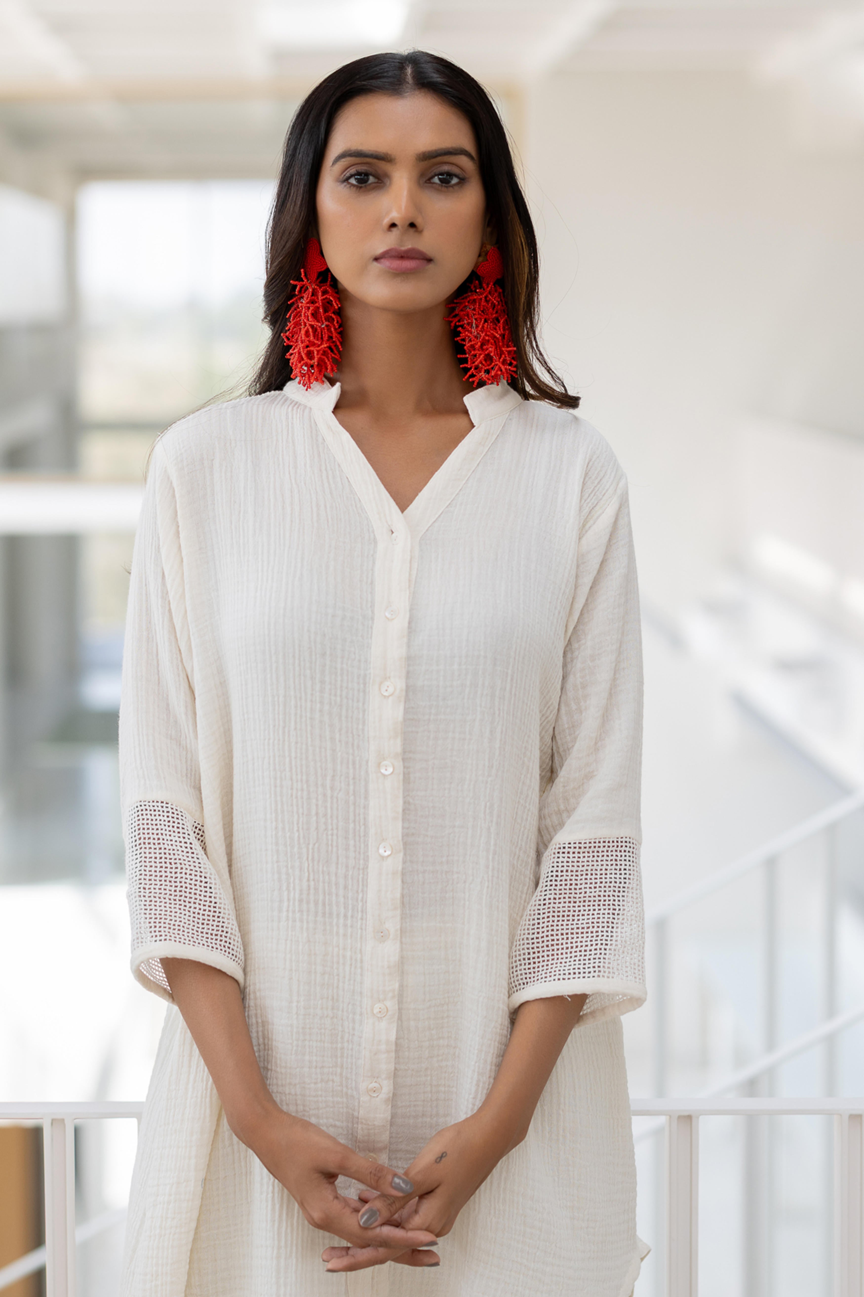 Minimalism meets elegance with the Vanilla Mist Tunic, a sophisticated piece crafted for effortless grace. This tunic features a relaxed button-down design with delicate detailing on the sleeves, adding a touch of subtle texture. Perfectly versatile, it’s an ideal choice for casual outings, workwear, or elevated evening wear.