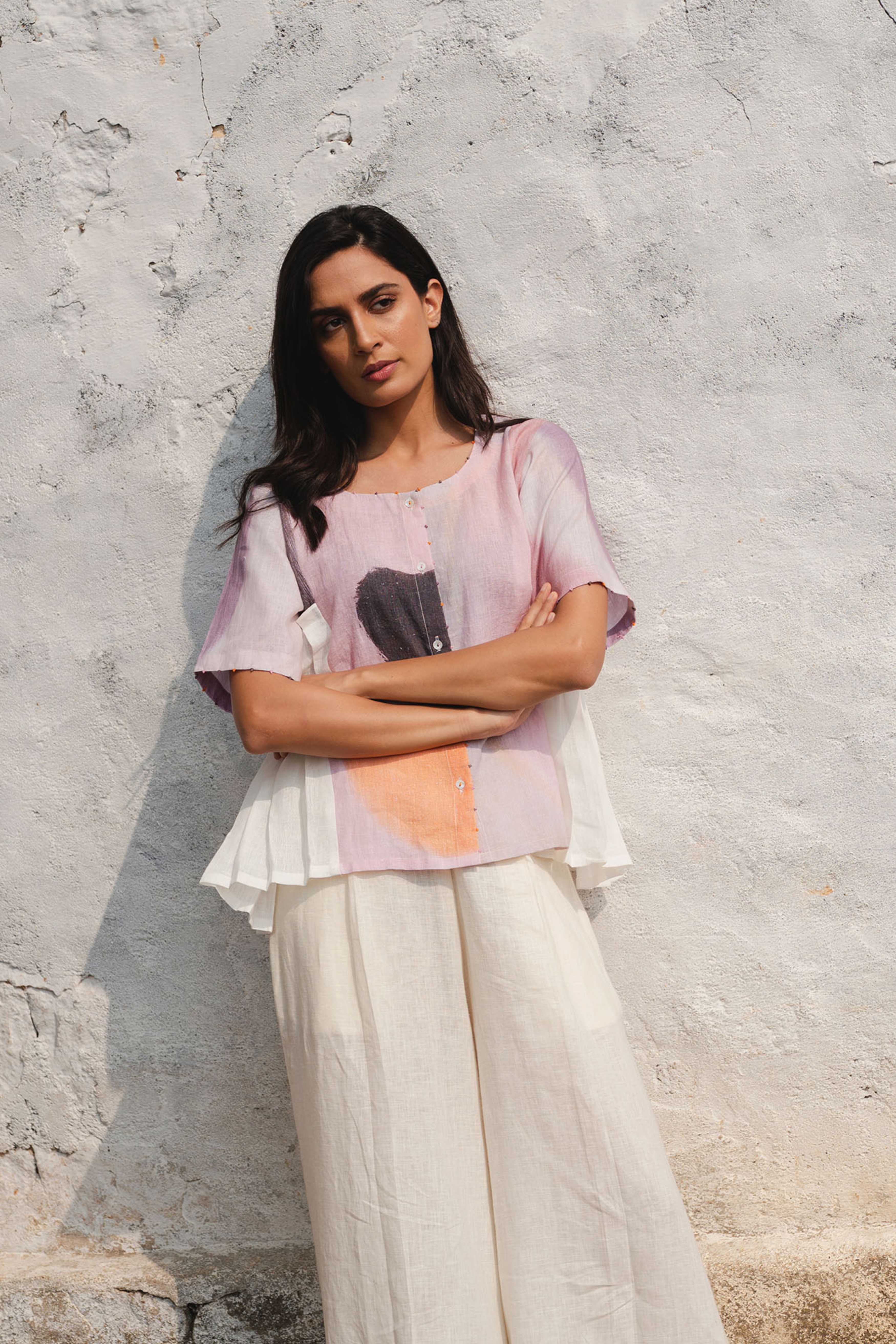 The Azul top is designed with a relaxed boxy fit in mind. The strategically pleated paneling provides the top with breathable space, making it easy to wear over any trousers or jeans.