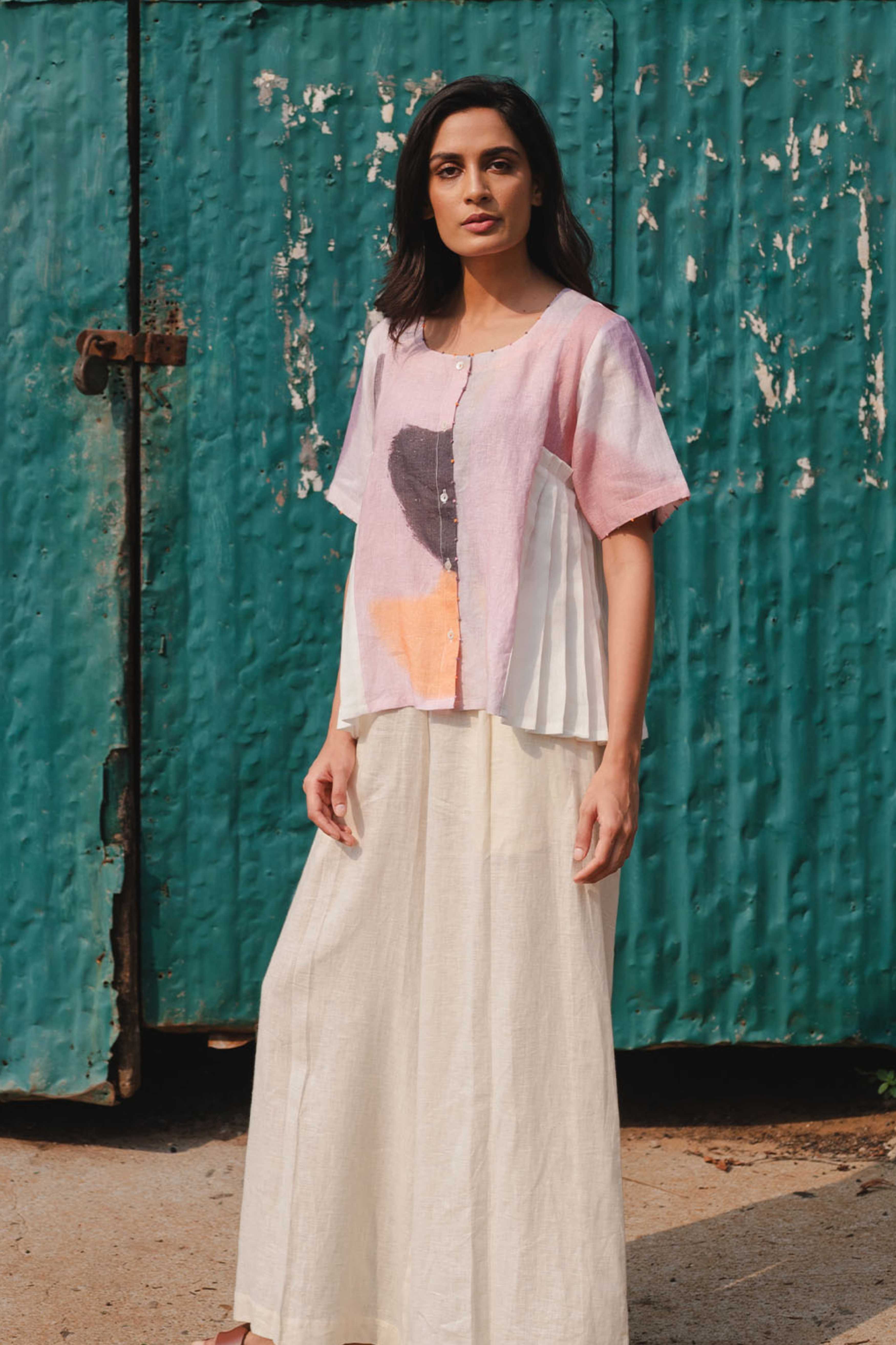 The Azul top is designed with a relaxed boxy fit in mind. The strategically pleated paneling provides the top with breathable space, making it easy to wear over any trousers or jeans.