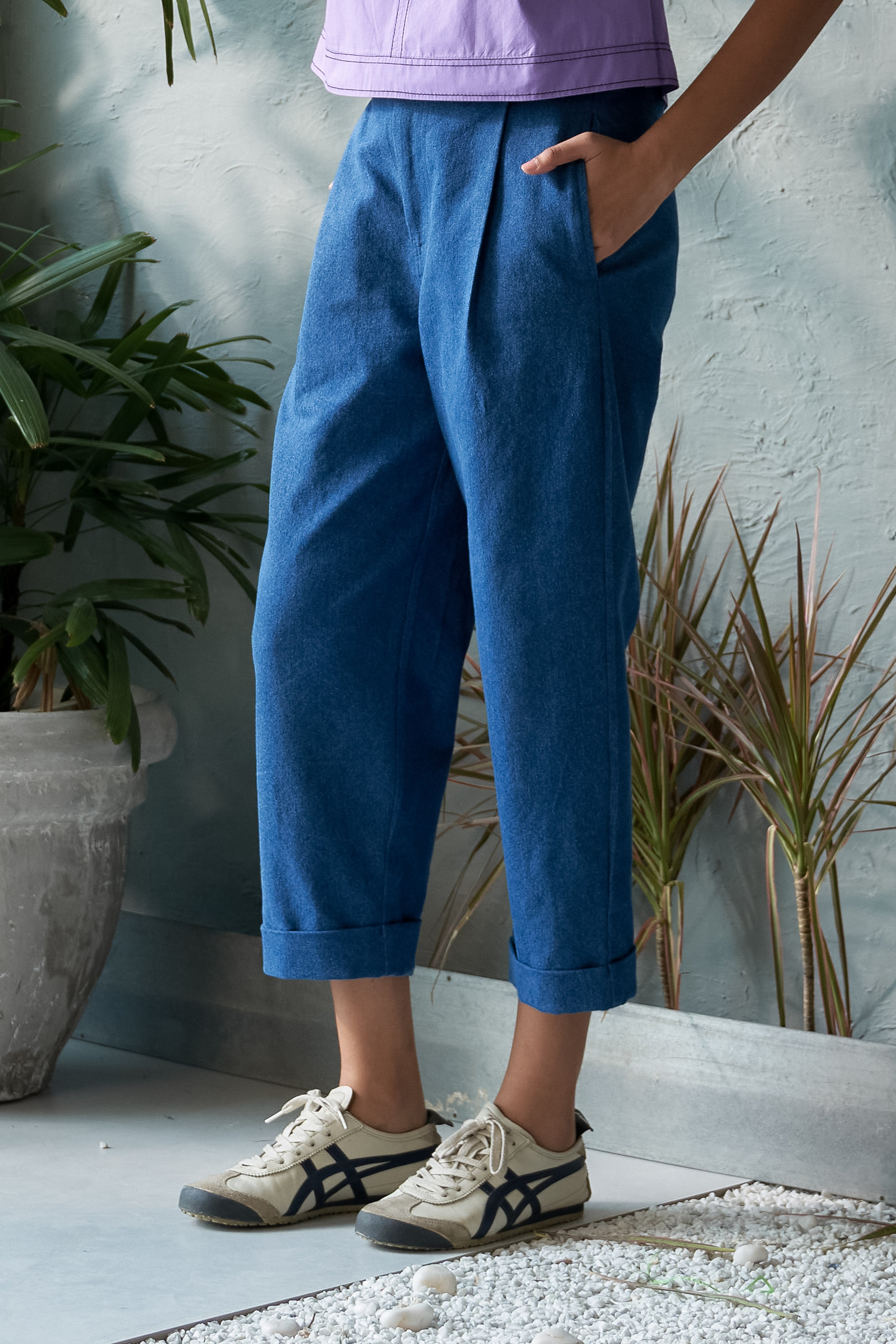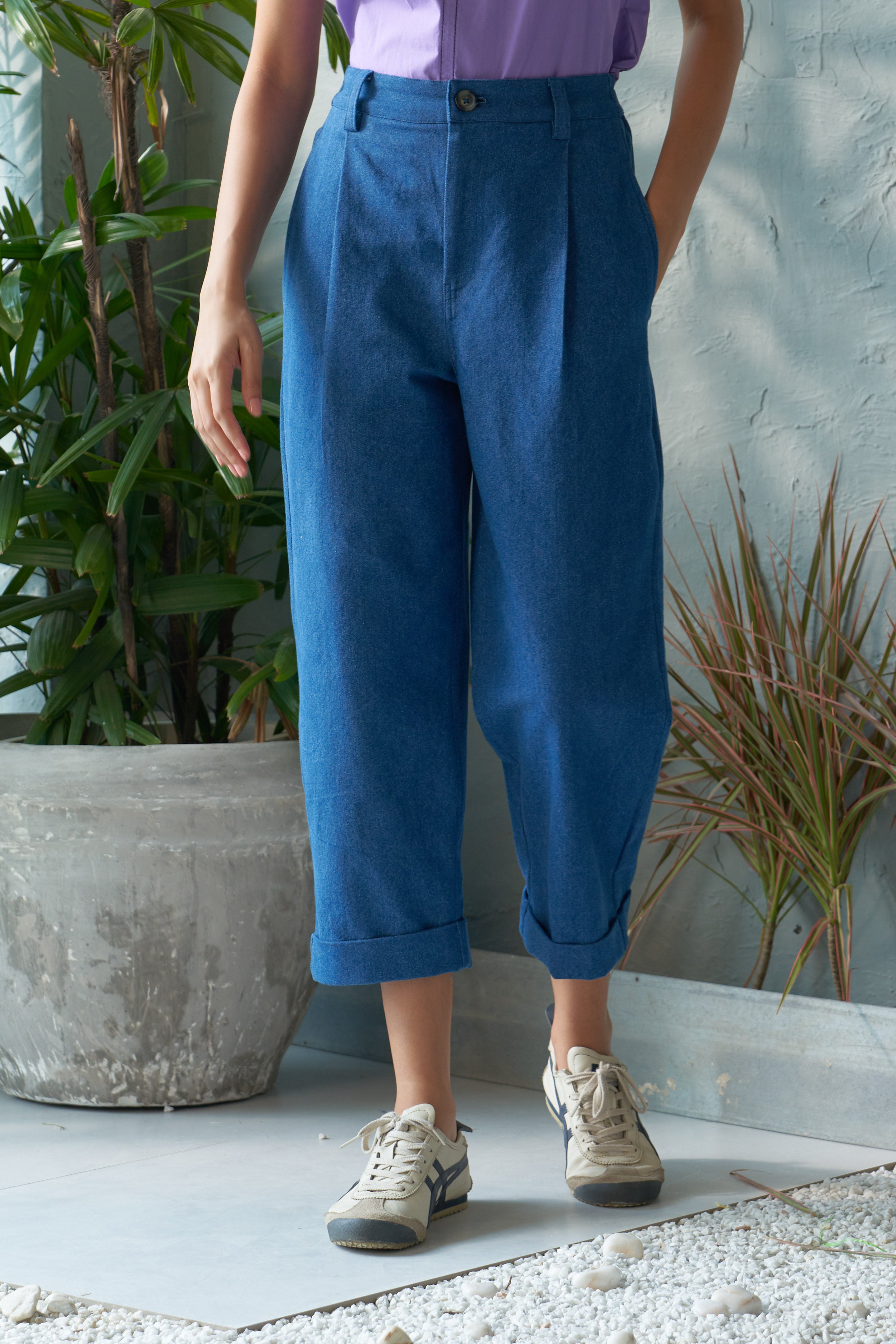 A bottom fold denim pant is a stylish take on classic denim, featuring folded hems at the ankles for a casual yet polished look. Made from soft medium-weight 100% cotton denim. This design adds a modern twist to traditional jeans, making them perfect for casual wear or even dressed-up occasions. The bottom fold detail can be subtle or exaggerated, depending on the style preference, and the pants can be paired with anything from sneakers to heels for versatile styling.