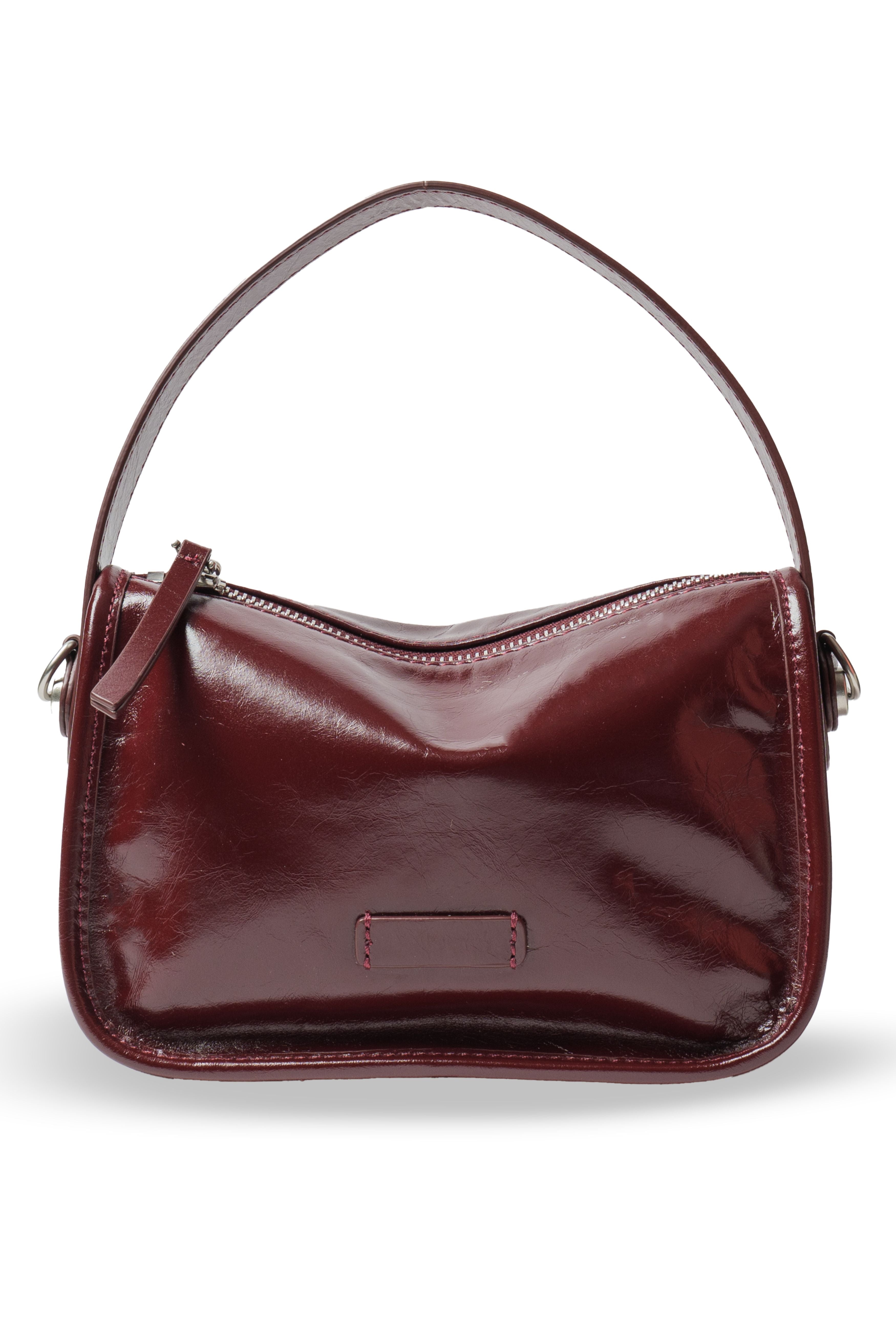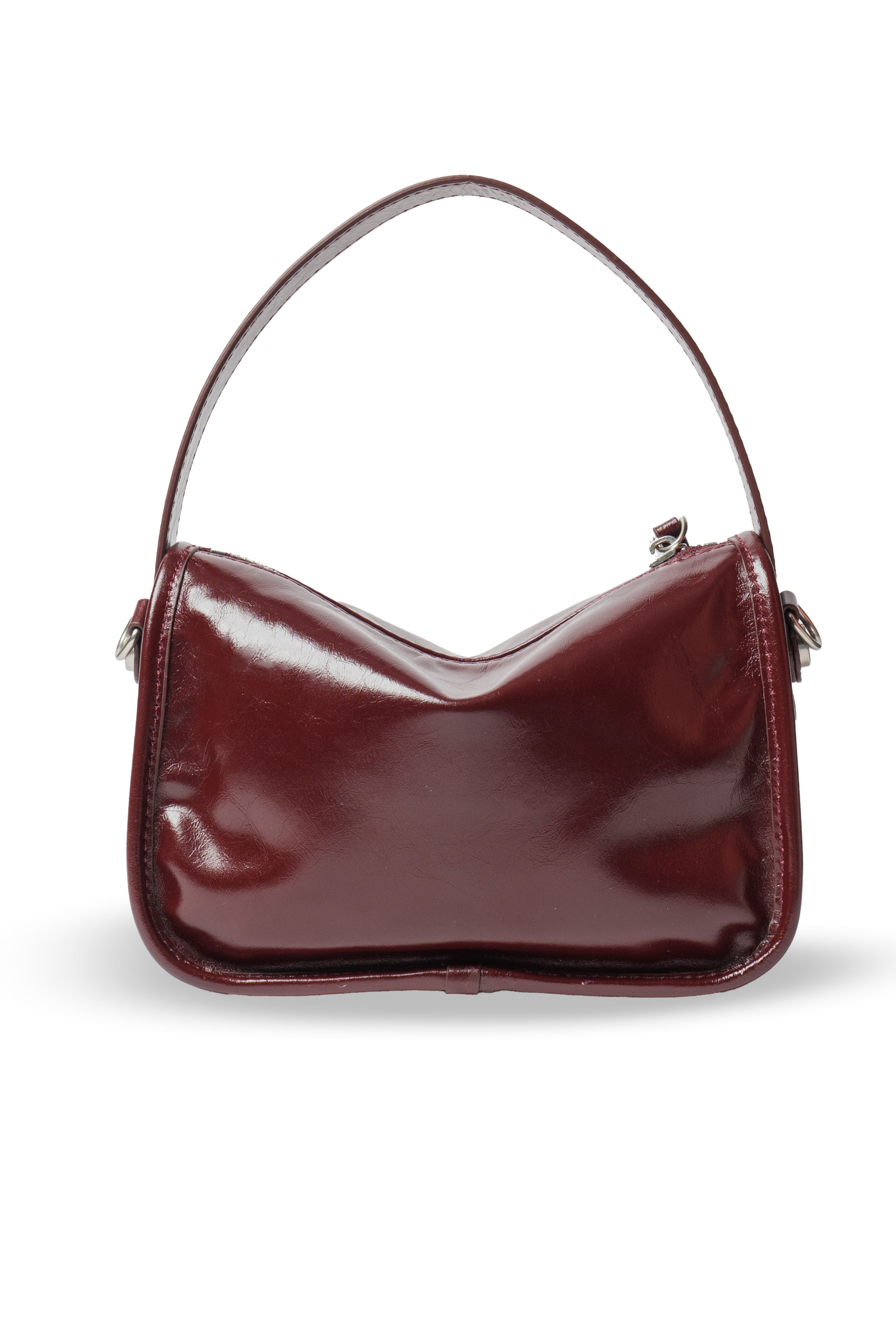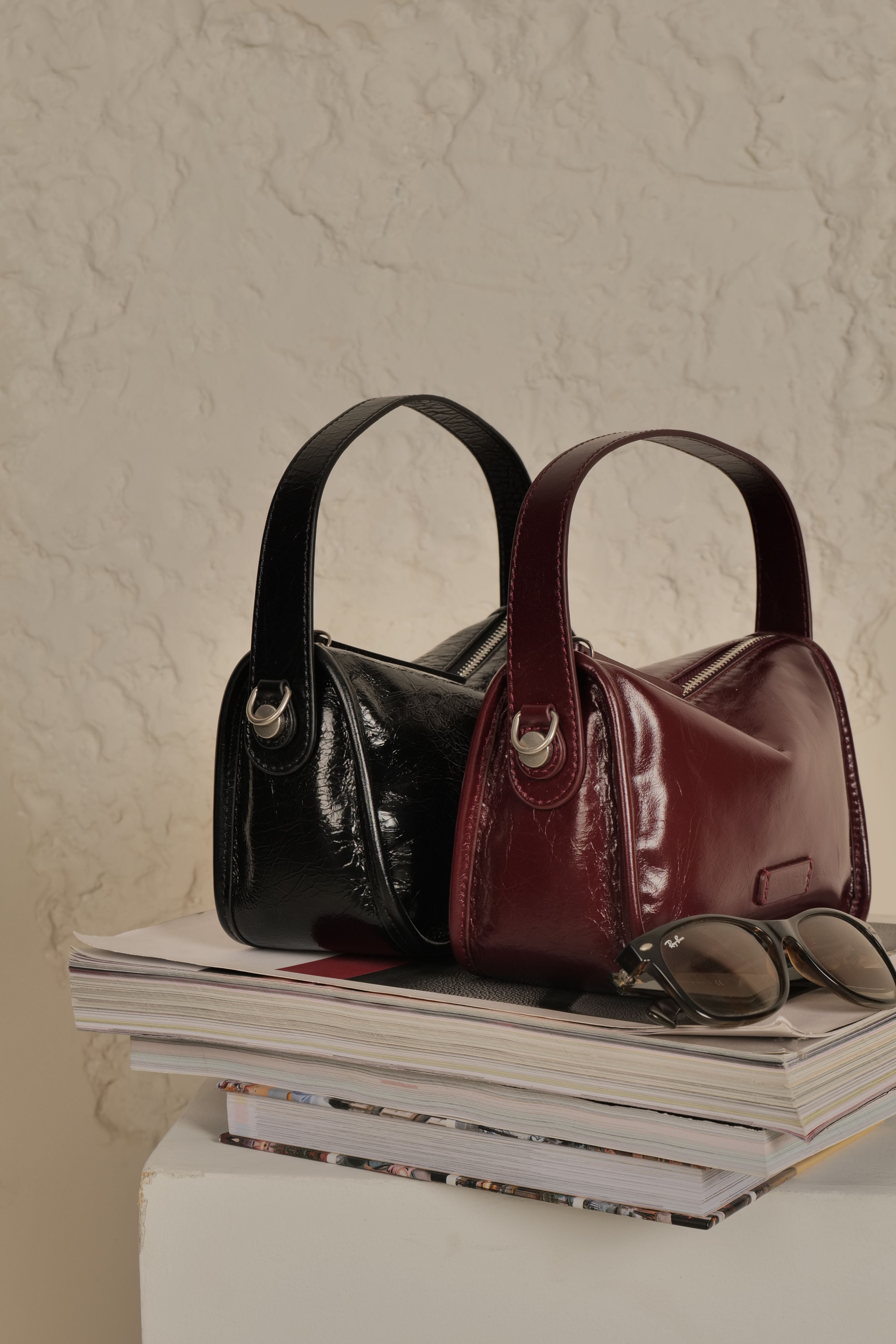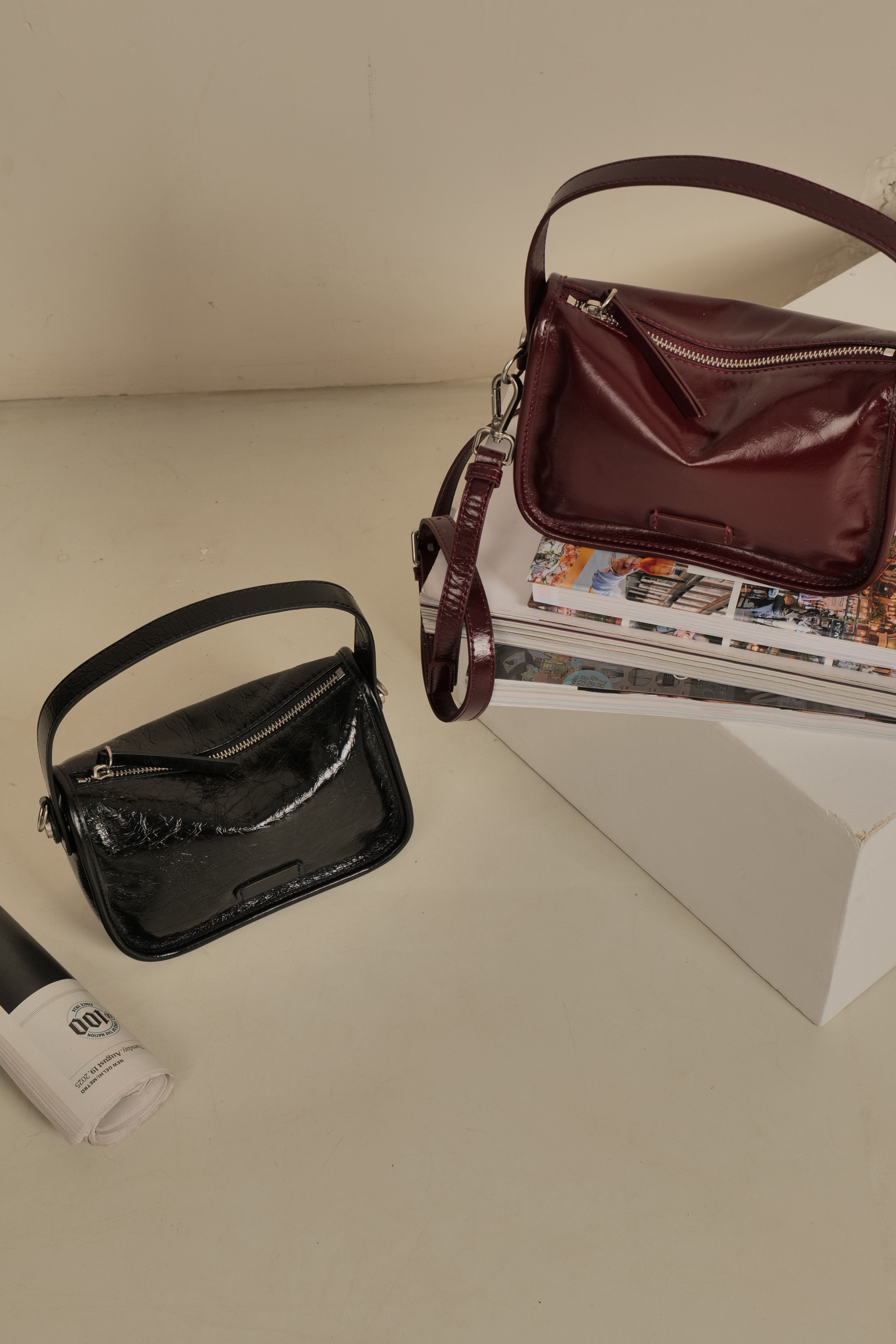 This genuine leather handbag, Emily features a luxurious shiny crackle finish that adds a modern edge to timeless finish. It offers - 1. The versatile top handle slips into a loop at the bottom, instantly transforming the bag into a sleek clutch for evenings out. 2. A detachable long sling lets you carry it cross-body for hands-free convenience. 3. Secure Closure: A smooth metal zipper with matching leather puller. 4.Compact yet Spacious Interior: Single compartment design with a zipper pocket and open pocket for smart organisation. 5. Dust Bag: Comes with a cotton dust bag to preserve the handbag’s quality and elegance when not in use.