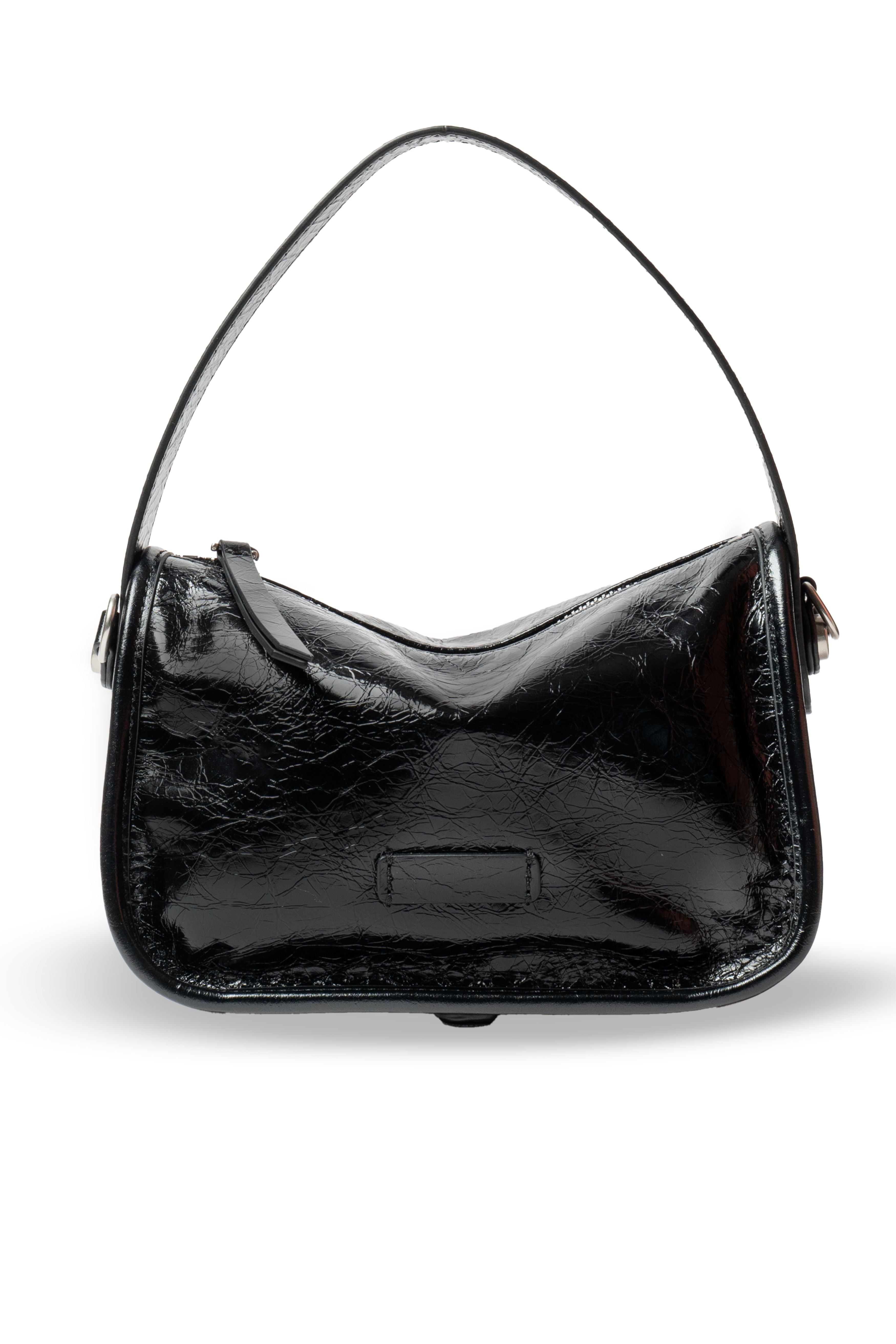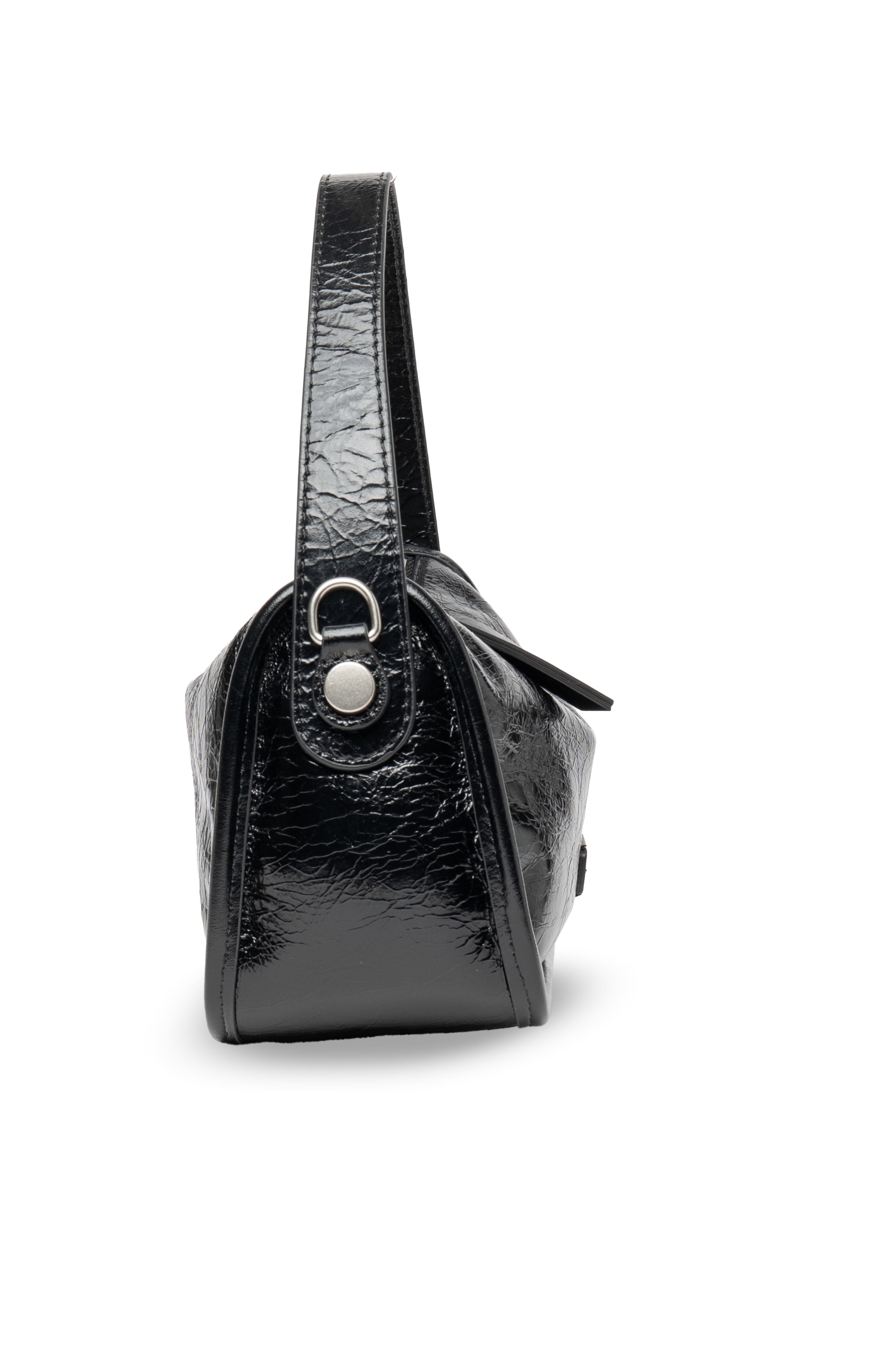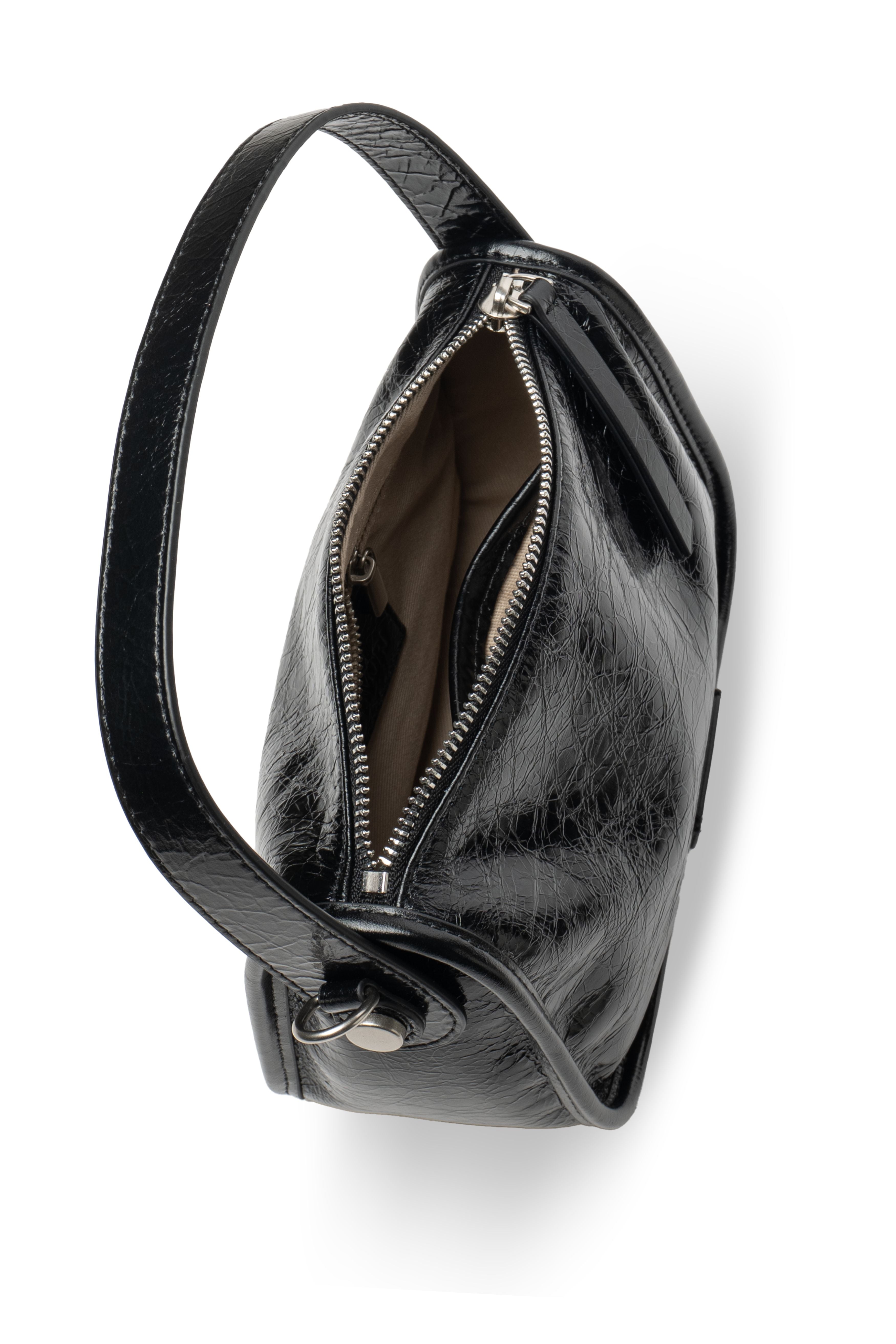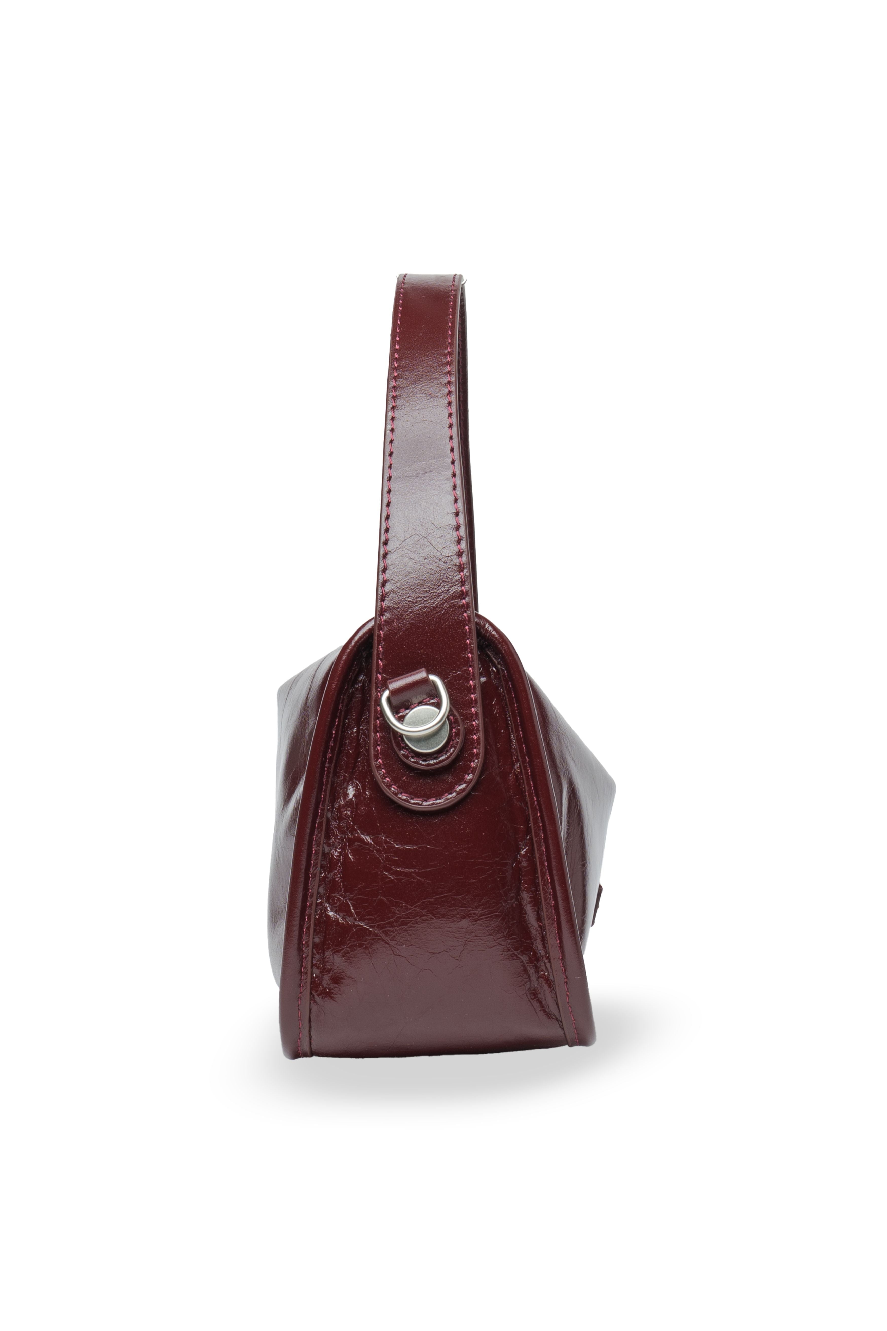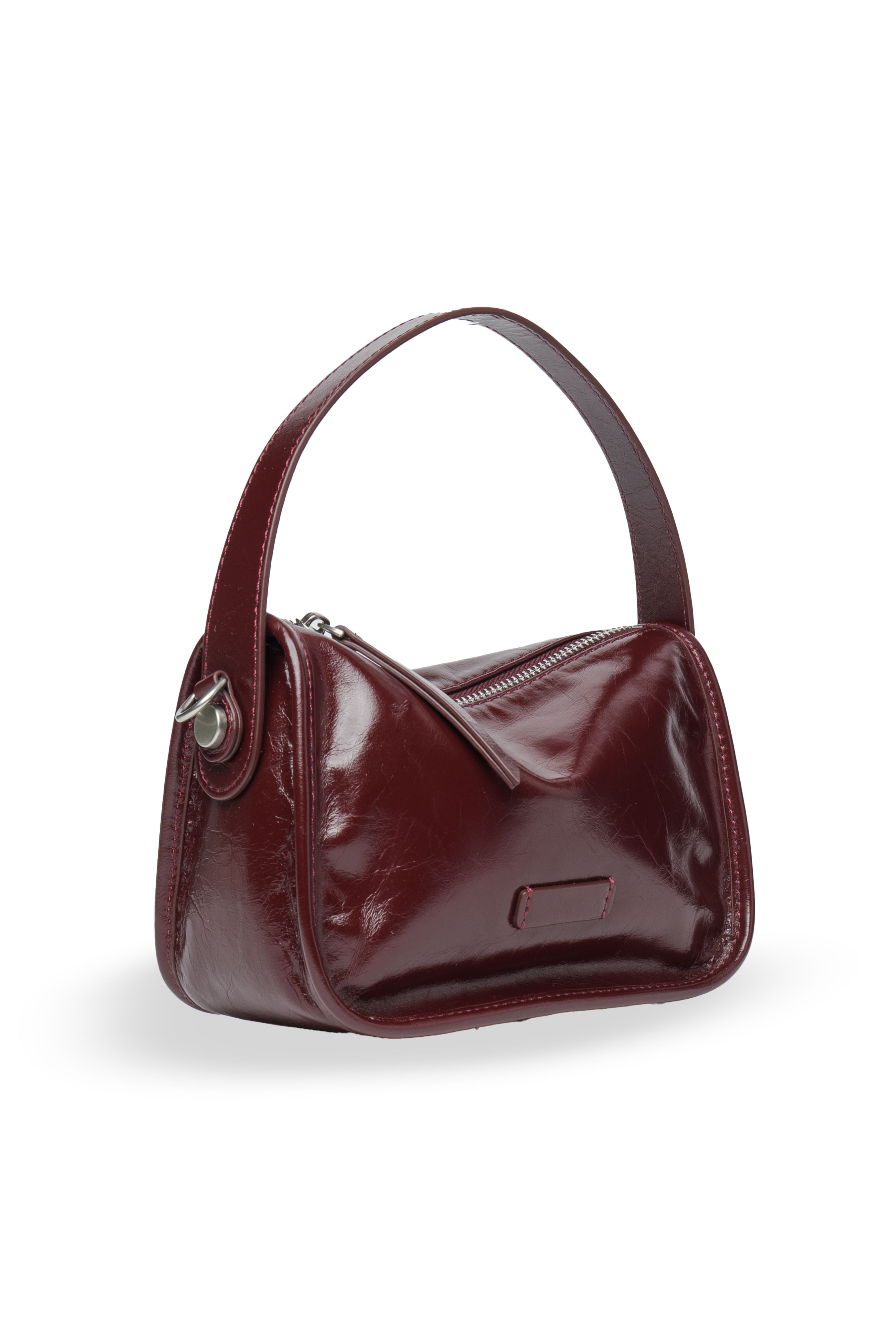 This genuine leather handbag, Emily features a luxurious shiny crackle finish that adds a modern edge to timeless finish. It offers - 1. The versatile top handle slips into a loop at the bottom, instantly transforming the bag into a sleek clutch for evenings out. 2. A detachable long sling lets you carry it cross-body for hands-free convenience. 3. Secure Closure: A smooth metal zipper with matching leather puller. 4.Compact yet Spacious Interior: Single compartment design with a zipper pocket and open pocket for smart organisation. 5. Dust Bag: Comes with a cotton dust bag to preserve the handbag’s quality and elegance when not in use.