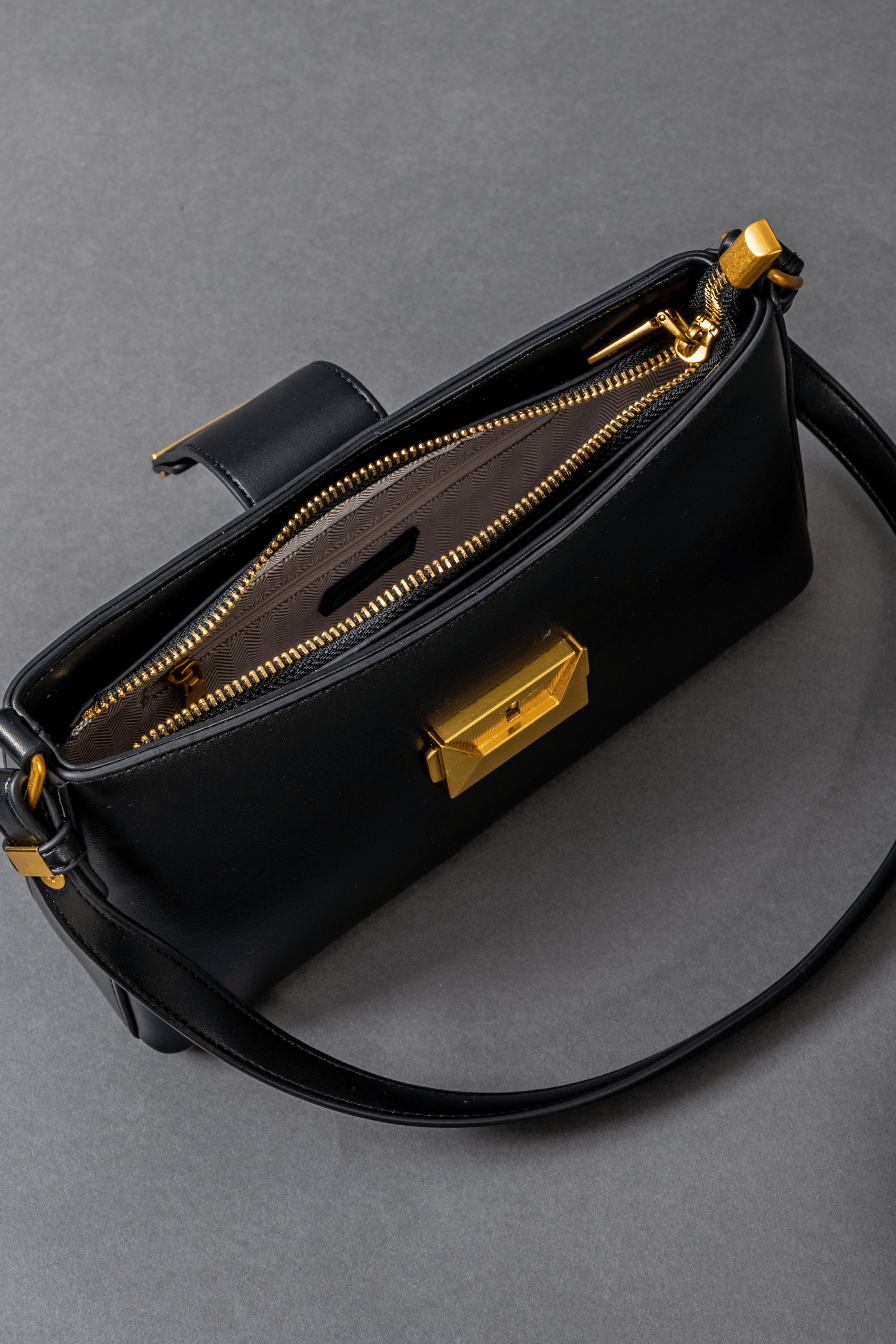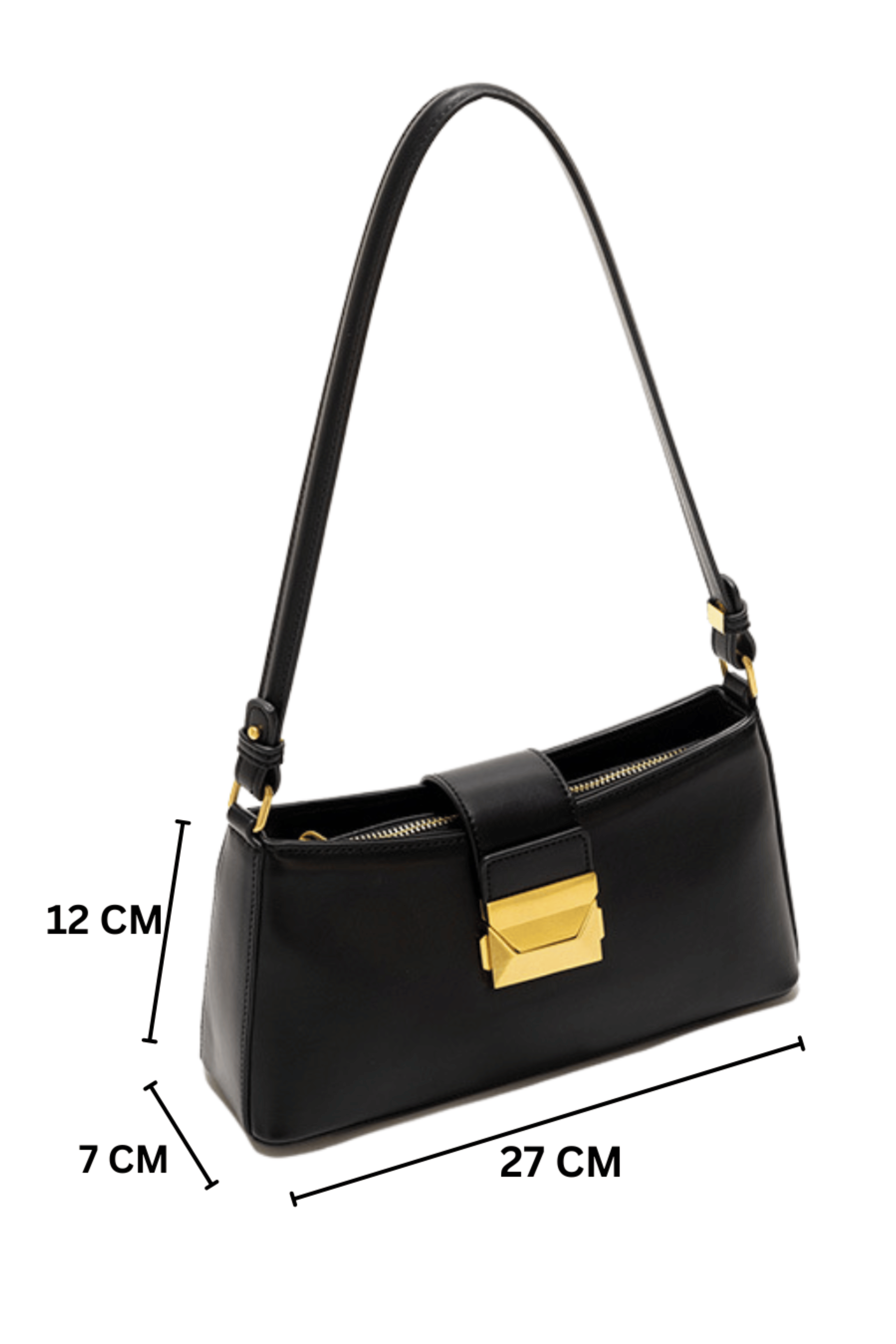 Upgrade your accessory collection with our Baguette Bag, Felice designed for the modern woman who values both style and practicality. 1. High quality : Made from high-quality faux leather, offering a sleek and polished look that’s cruelty-free and durable. 2. Elegant Gold Accents: Features a gold buckle lock at the front and a smooth gold-finish metal zipper, adding a touch of sophistication. 3. Classic Interior Design: Lined with a textured fabric interior, it includes two pockets—one open and one with a zipper—for organized storage of your essentials. 4. Versatile Carrying Options: Comes with two detachable straps—a short handle for a chic handheld style and a long adjustable strap for crossbody or shoulder wear. 5. Protective Metal Feet: Equipped with metal feet at the bottom to keep your bag clean and maintain its structure. 6. Dust Bag - comes with a cotton dust bag for storing when not in use.