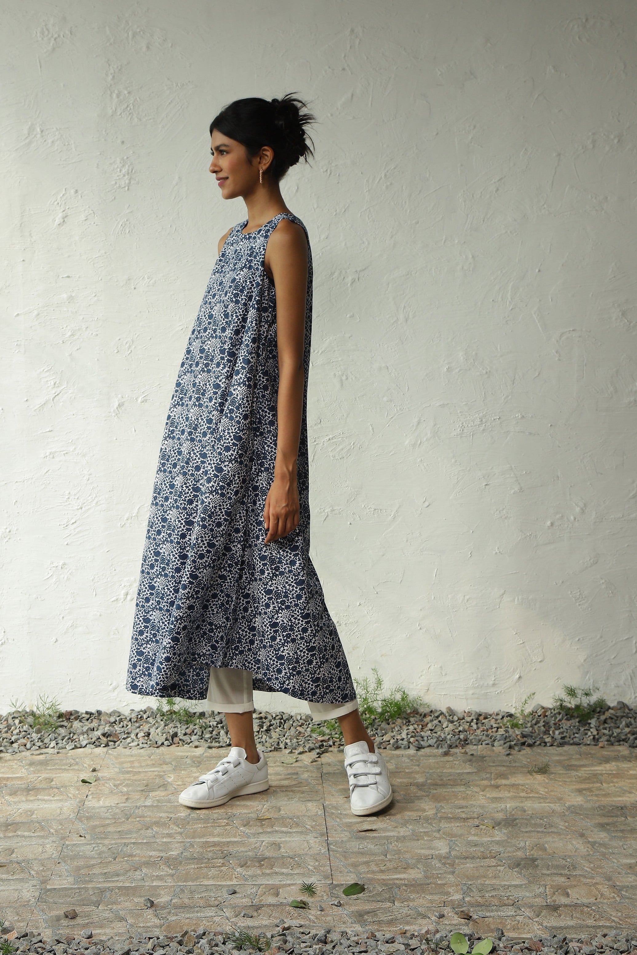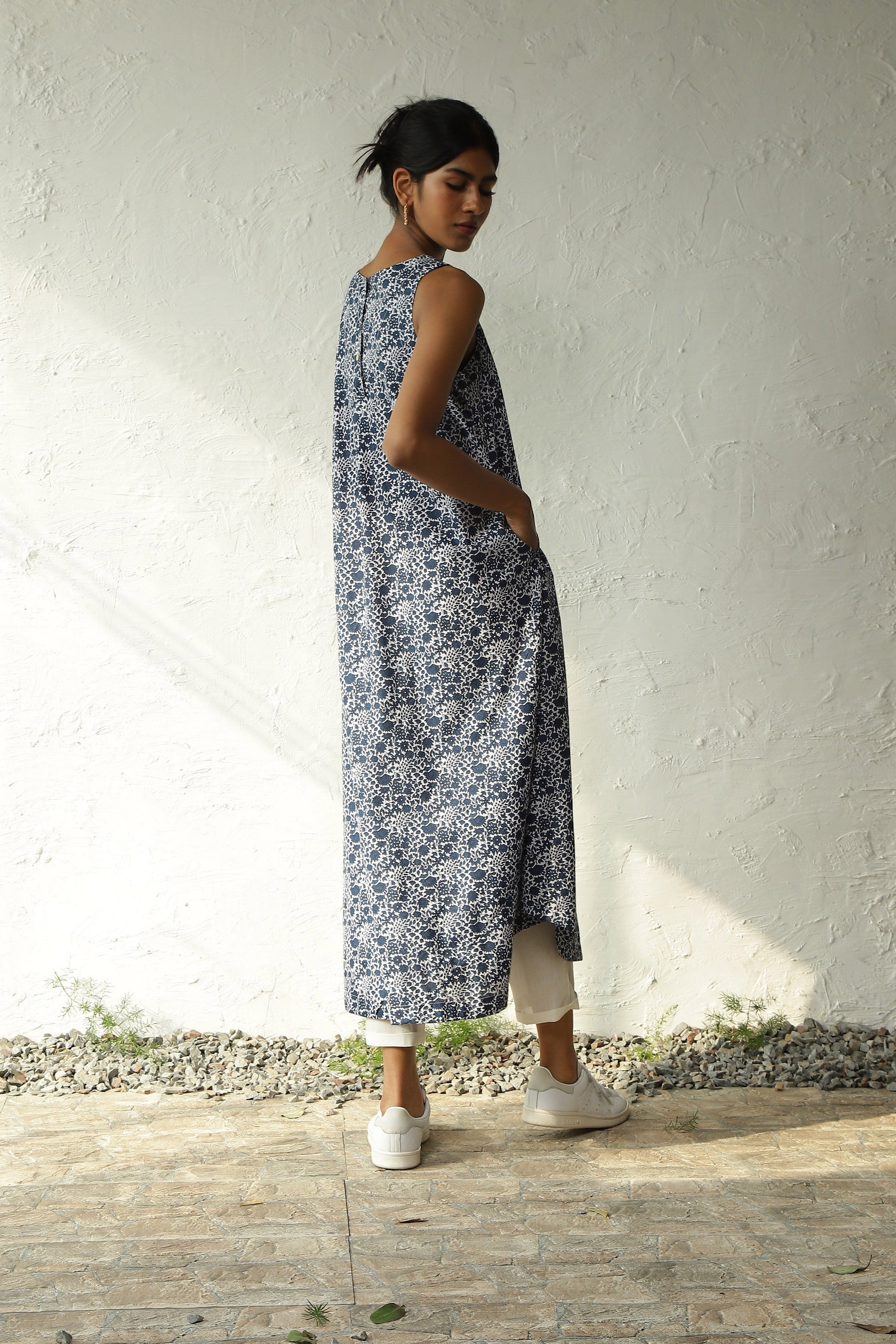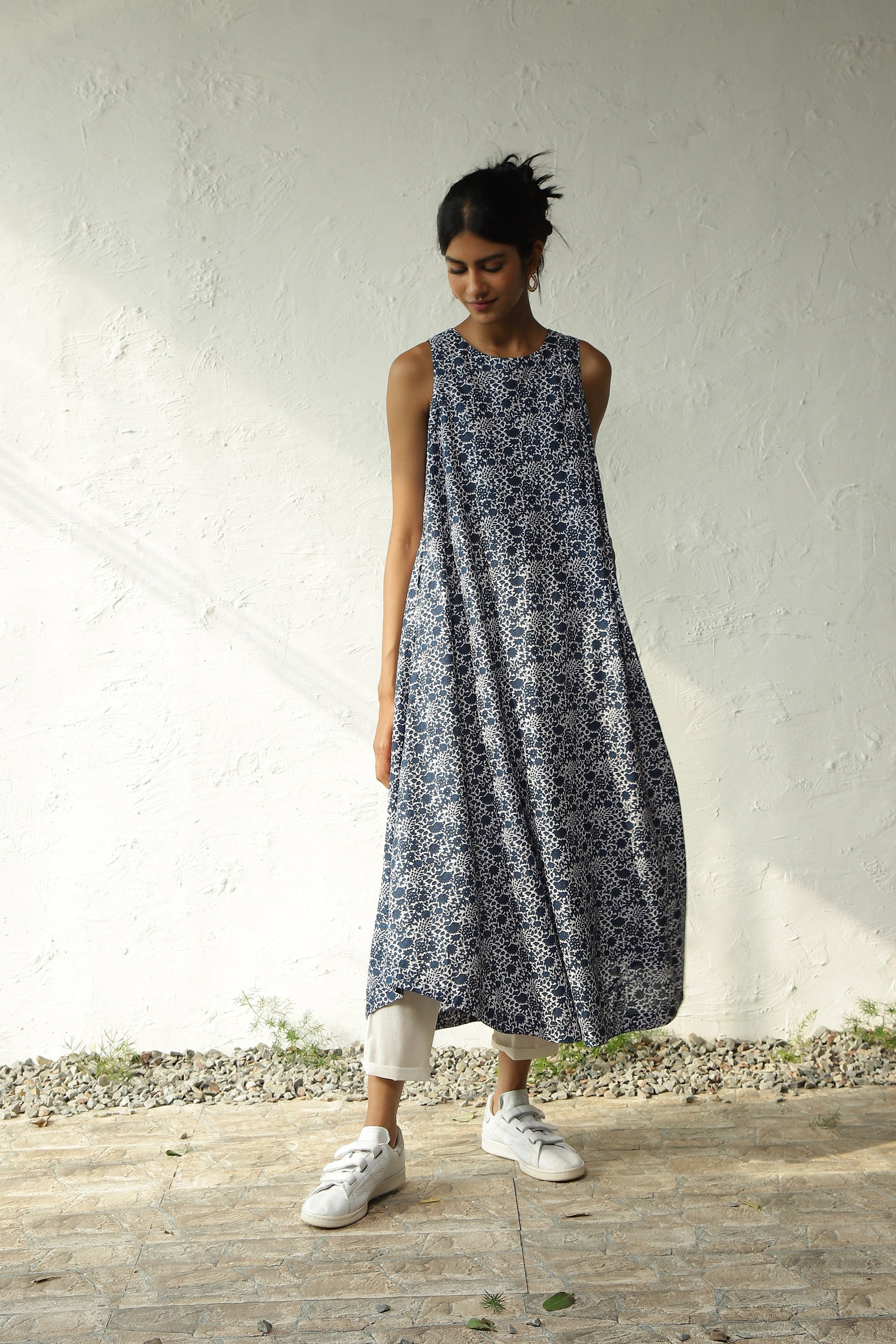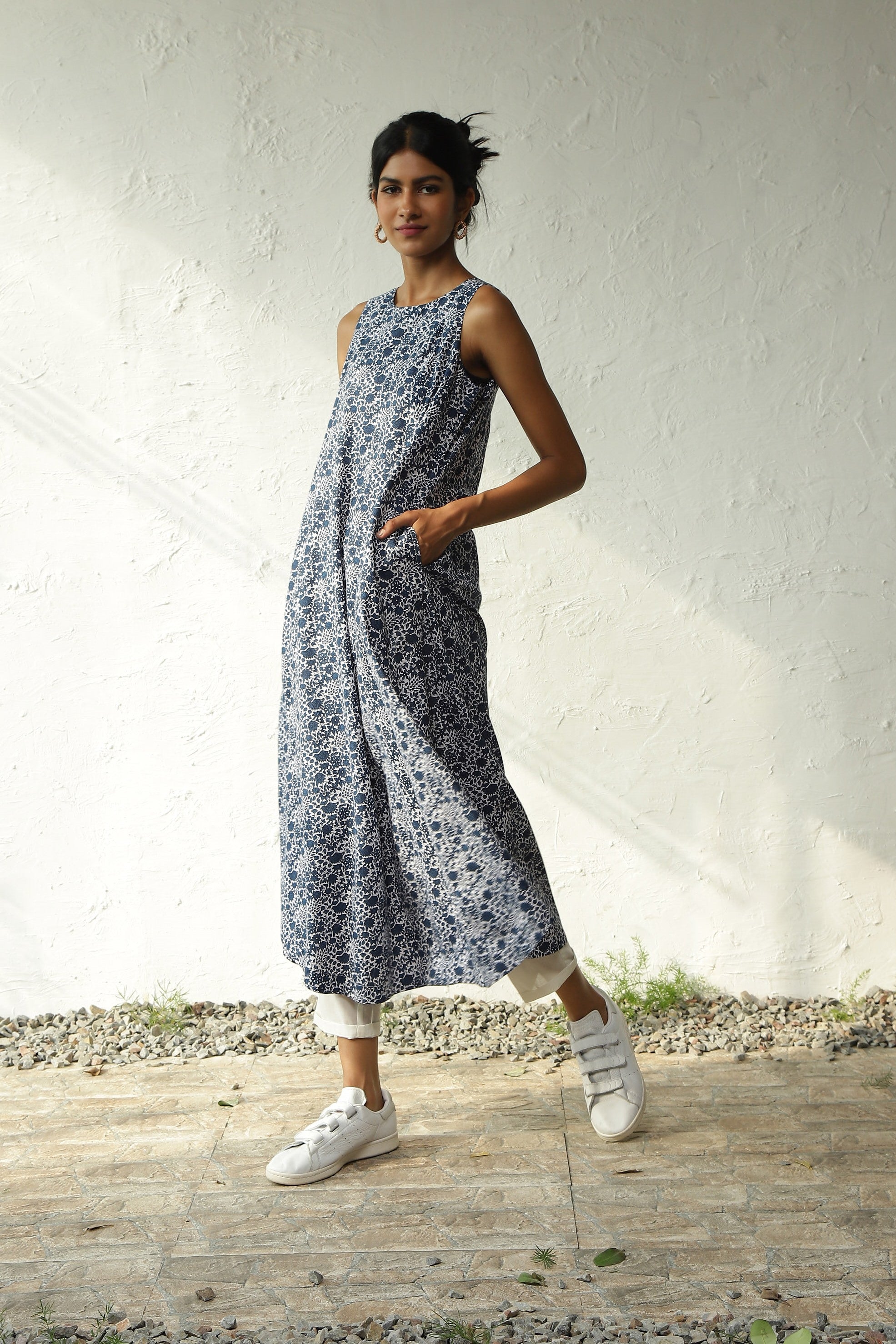 Spring up your style with this captivating floral print long co-ord set. Designed from Lightweight Cotton Fabric, it complements all body types with a Round Neckline, Deep Shoulder Cuts, and a U-Shaped Hemline. Paired seamlessly with Straight Narrow Pants featuring an Elasticated Waist and Drawstring. The top offers versatility as it can also be worn as a dress, enhancing your wardrobe options.