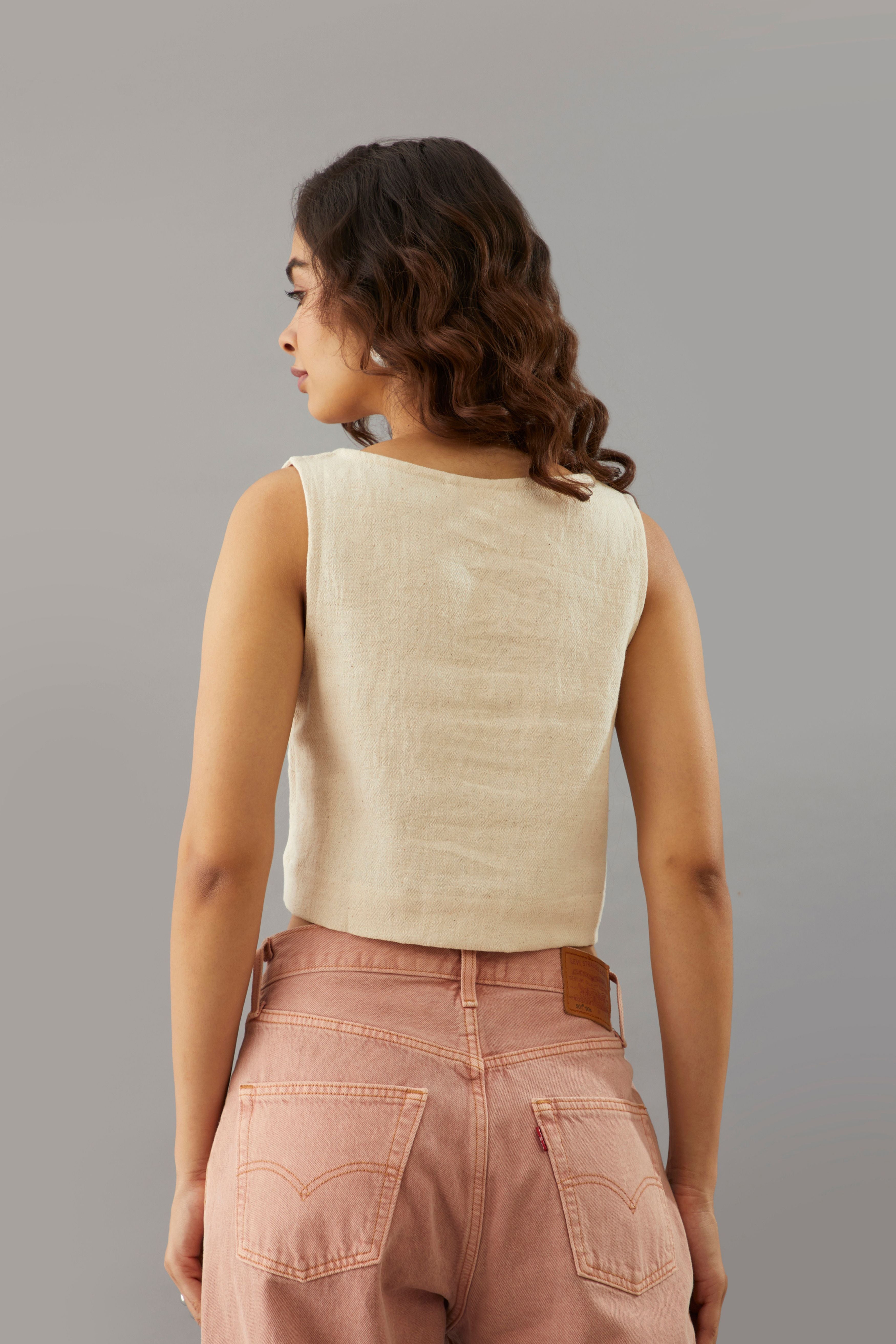 The Sia Crop Top blends minimal elegance with everyday comfort. Crafted from handwoven organic cotton in a natural kora self-weave, it offers a breathable, lightweight feel with a touch of texture. The smart cut flatters the frame, making it a versatile piece that pairs effortlessly with both casual and dressy ensembles.