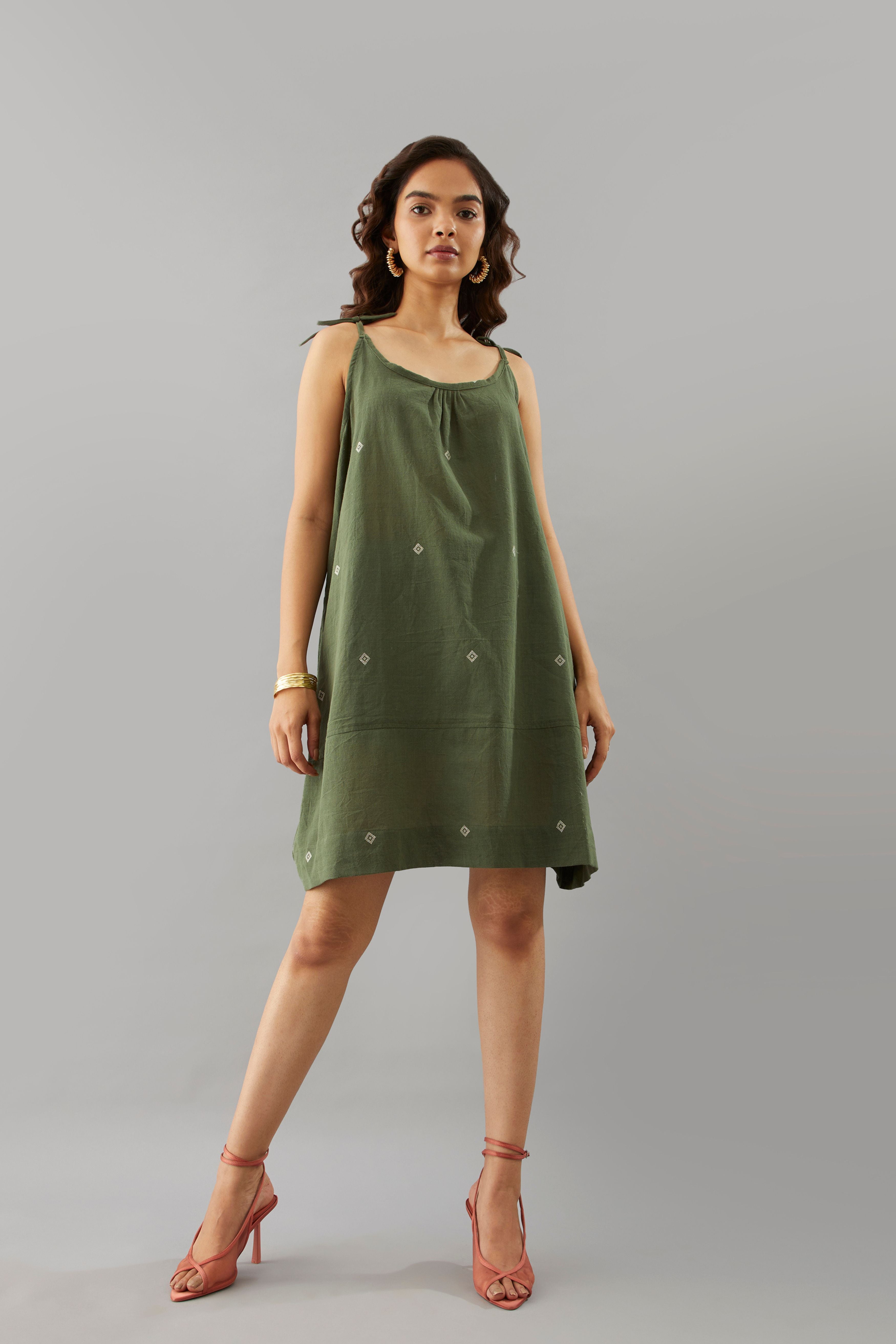 The Wakana String Dress is crafted from handwoven organic cotton, offering a soft, breathable feel that’s perfect for all-day wear. Designed in a rich military green shade, it features a relaxed, flowy silhouette with a smart cut that flatters while allowing ease of movement. The adjustable shoulder ties add a touch of charm and versatility, making it ideal for layering or wearing on its own. A timeless piece that combines comfort, sustainability, and effortless style.