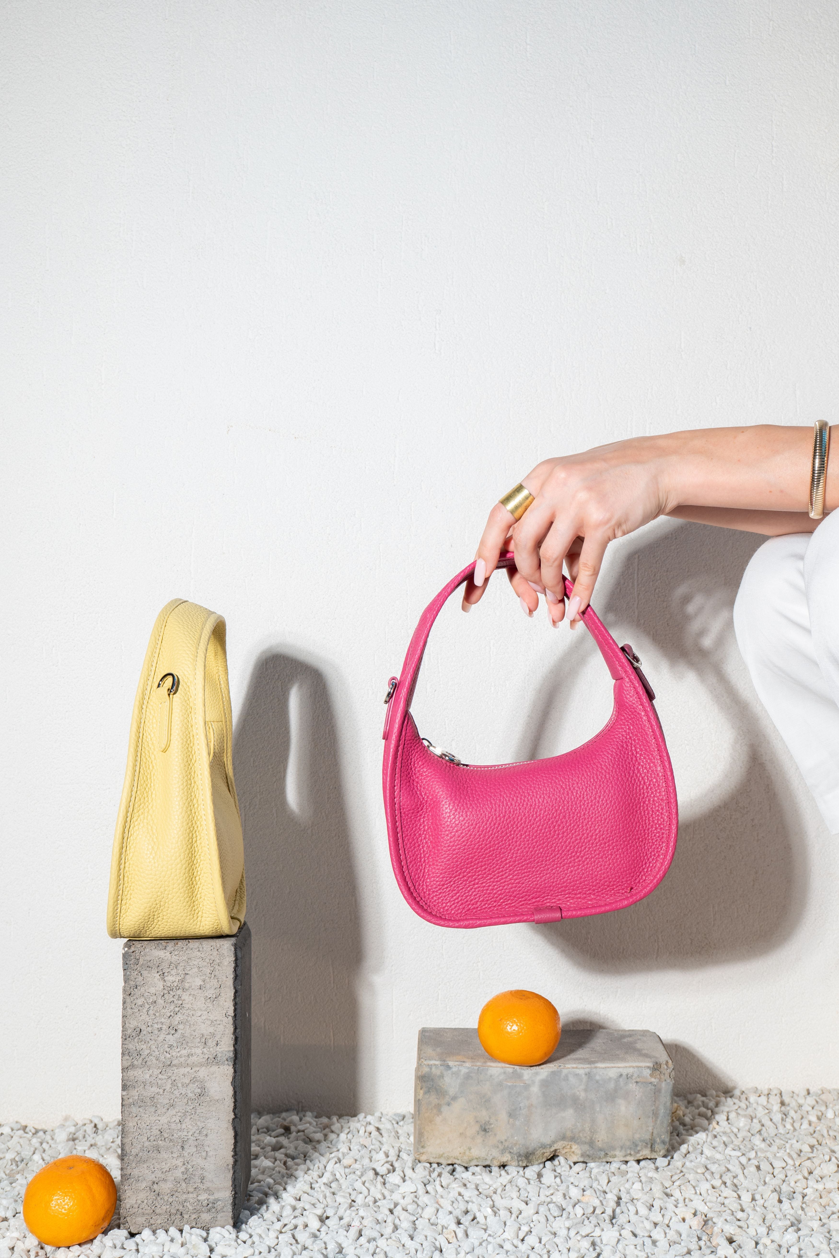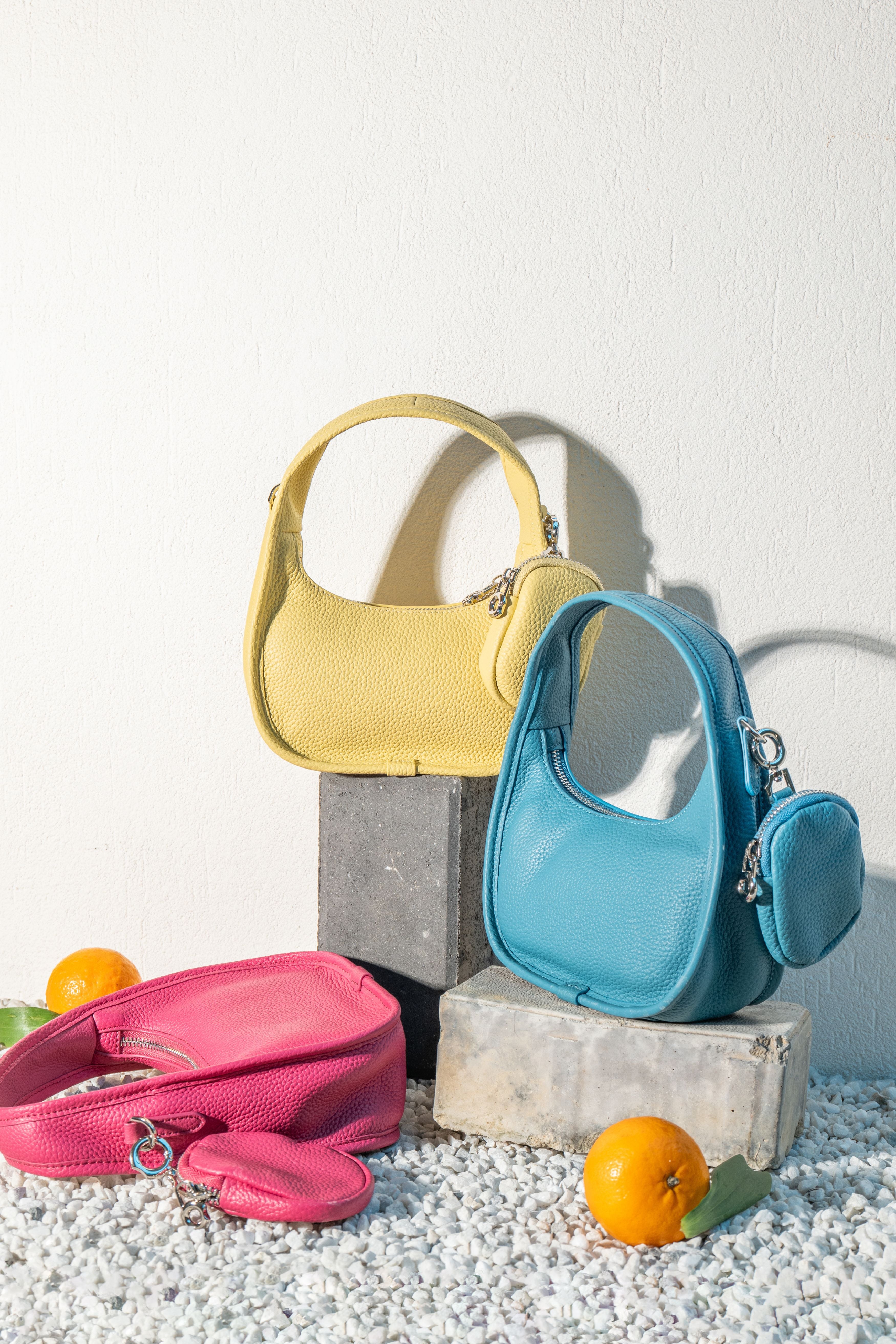 Meet our newest obsession, Jolie - the candy pop Leather Hobo Bag, designed for women who love their everyday accessories bold, functional, and full of personality. Highlights: 1. Soft, durable pebble grain leather in vibrant candy tones 2. Cute hanging Air Pods case included 3. One zippered and one open inside pocket 4. Detachable sling for versatile styling 5. Comes with our signature cotton dust bag