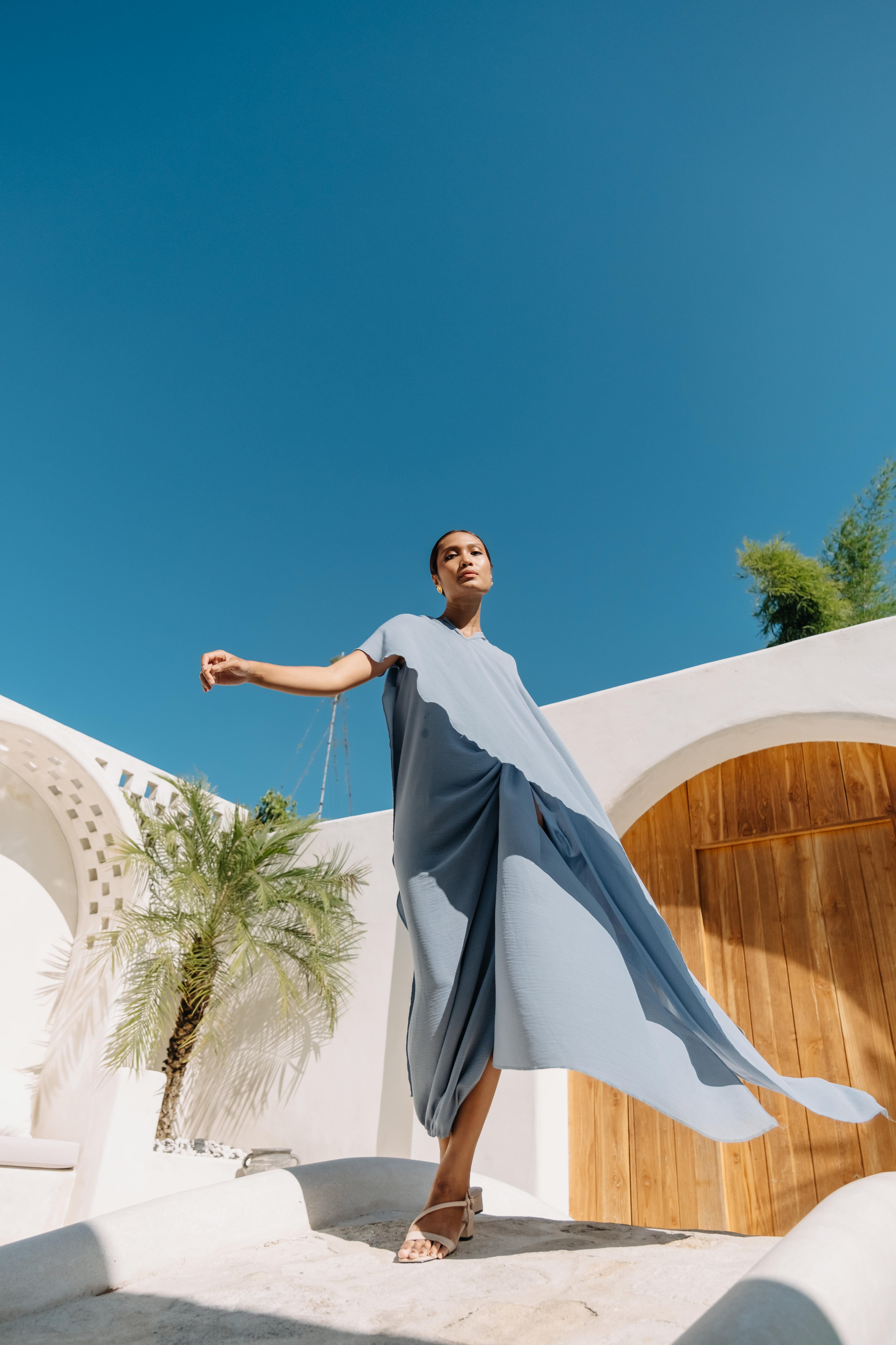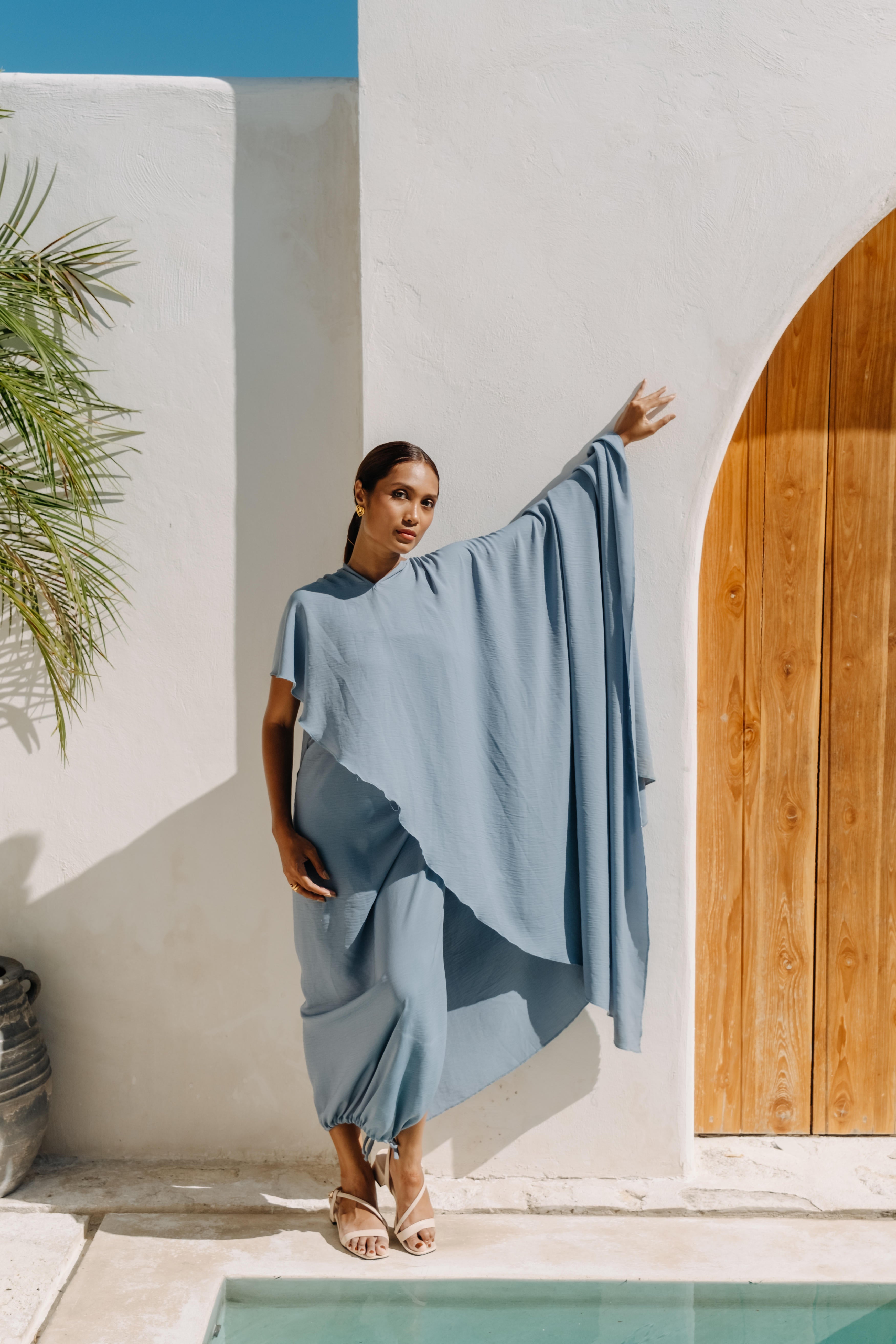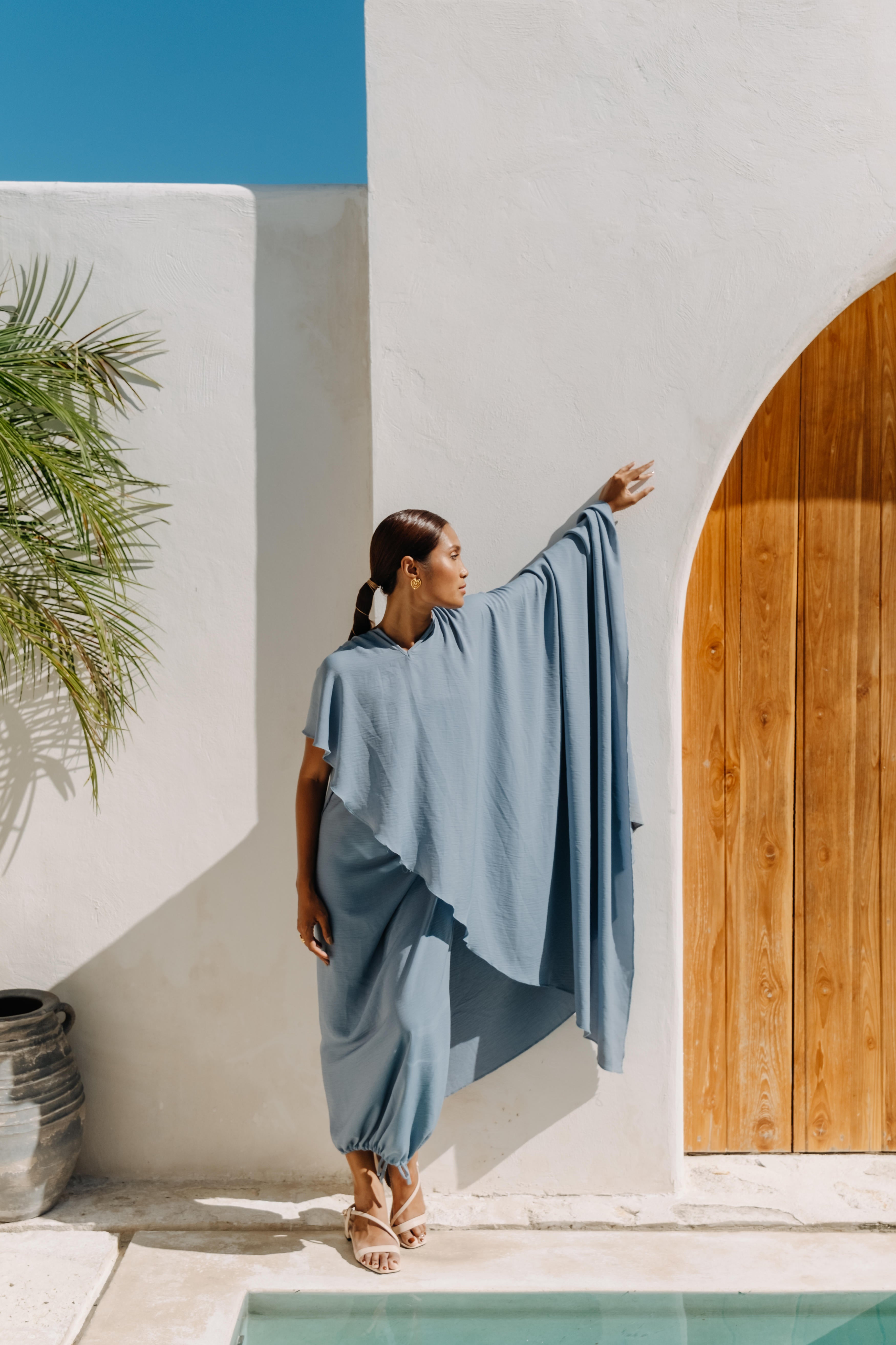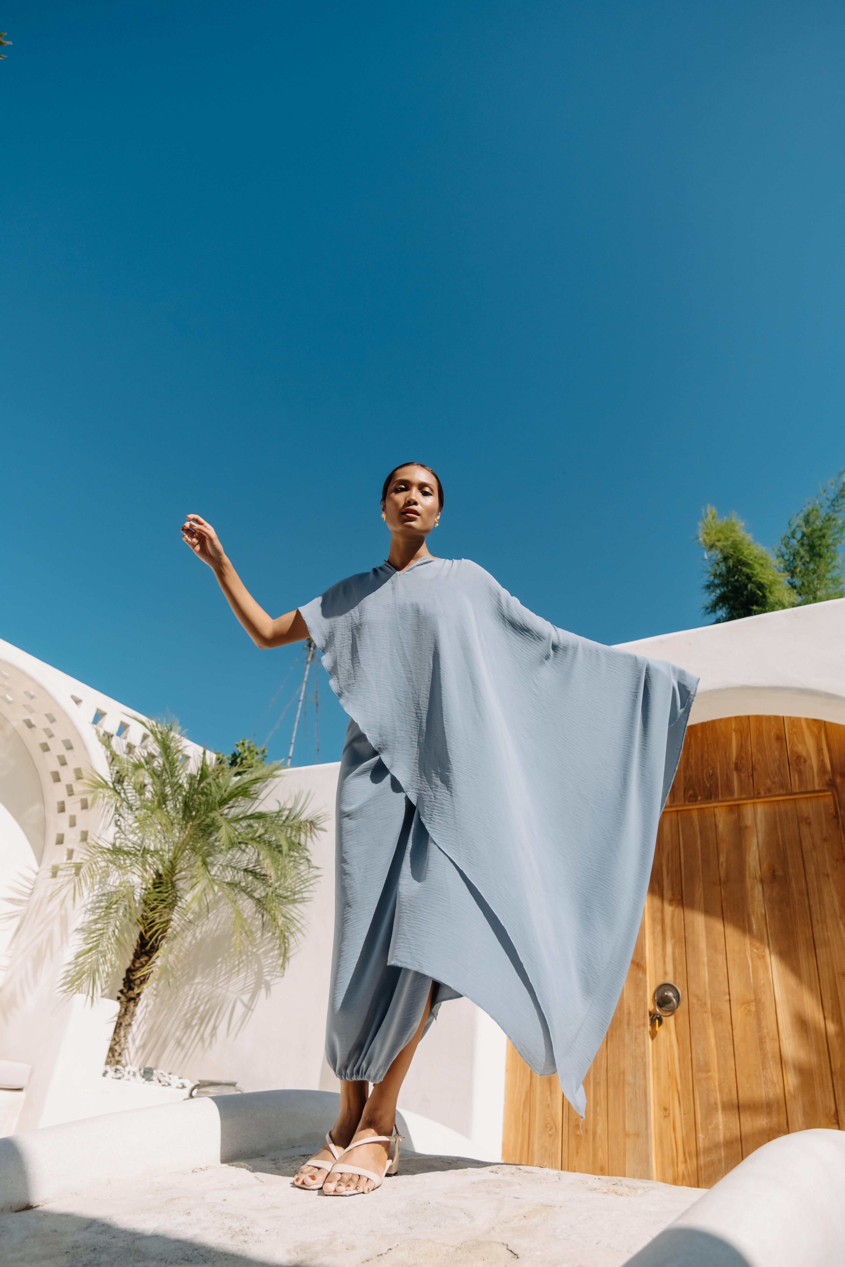 A two piece set featuring classic tube dress which is hand draped, comes with an asymmetric long cape for a touch of elegance. This product will be exclusively handcrafted for you, making the pattern/texture/color slightly vary from the image shown, due to multiple artisan led techniques and processes involved. Color may also slightly vary due to photographic lighting sources. Dress Length - 44" Cape Length - 60"