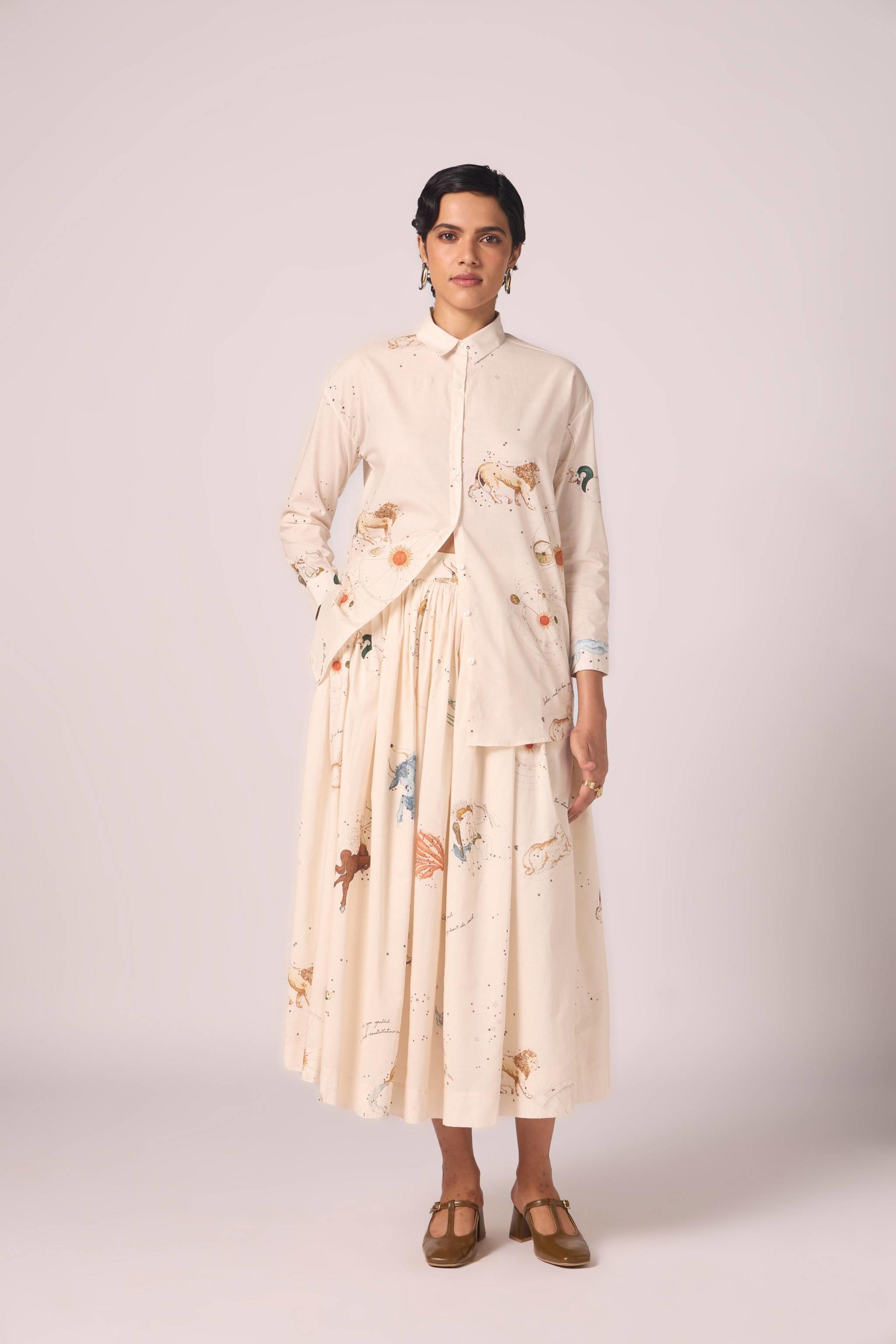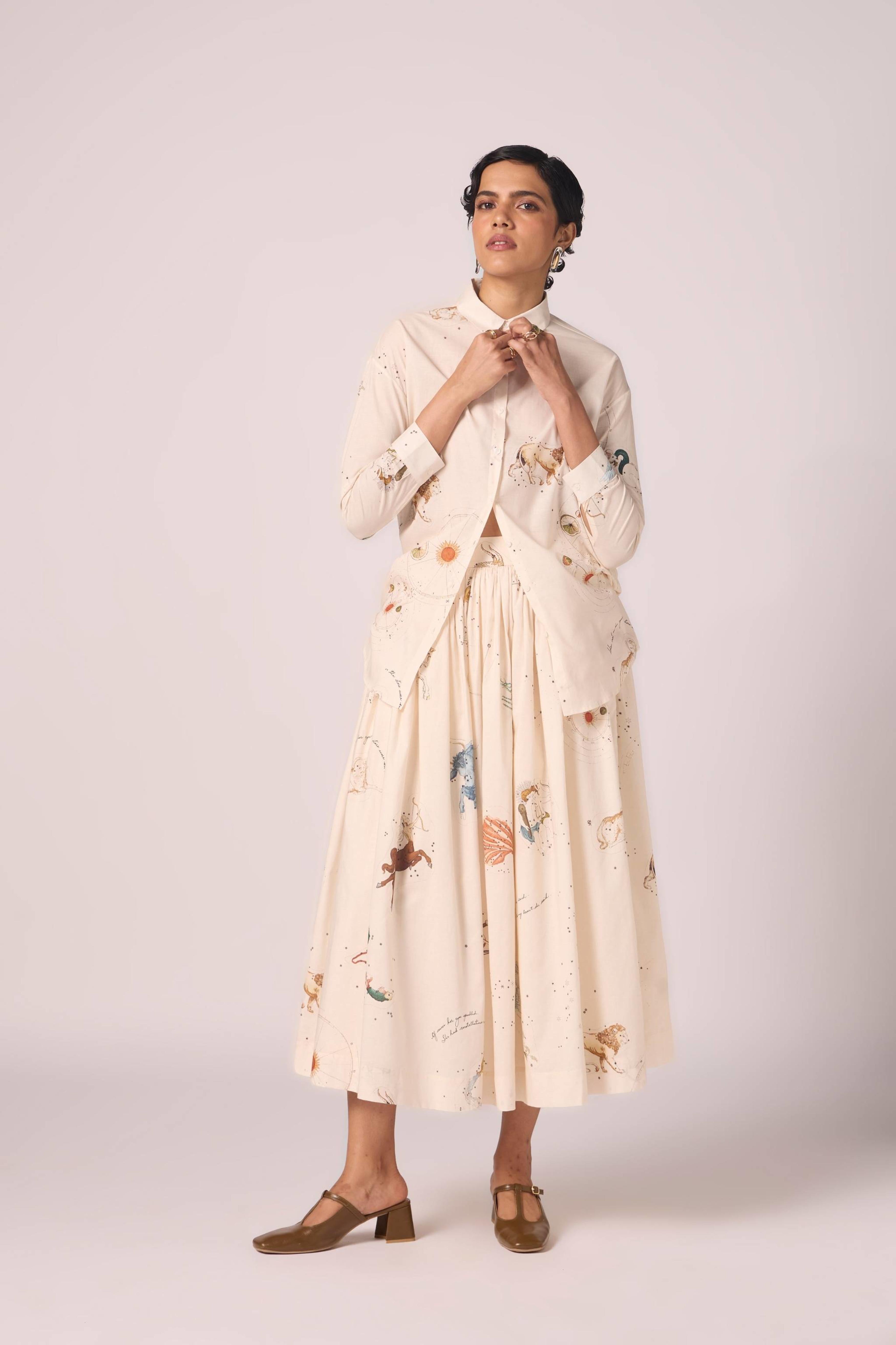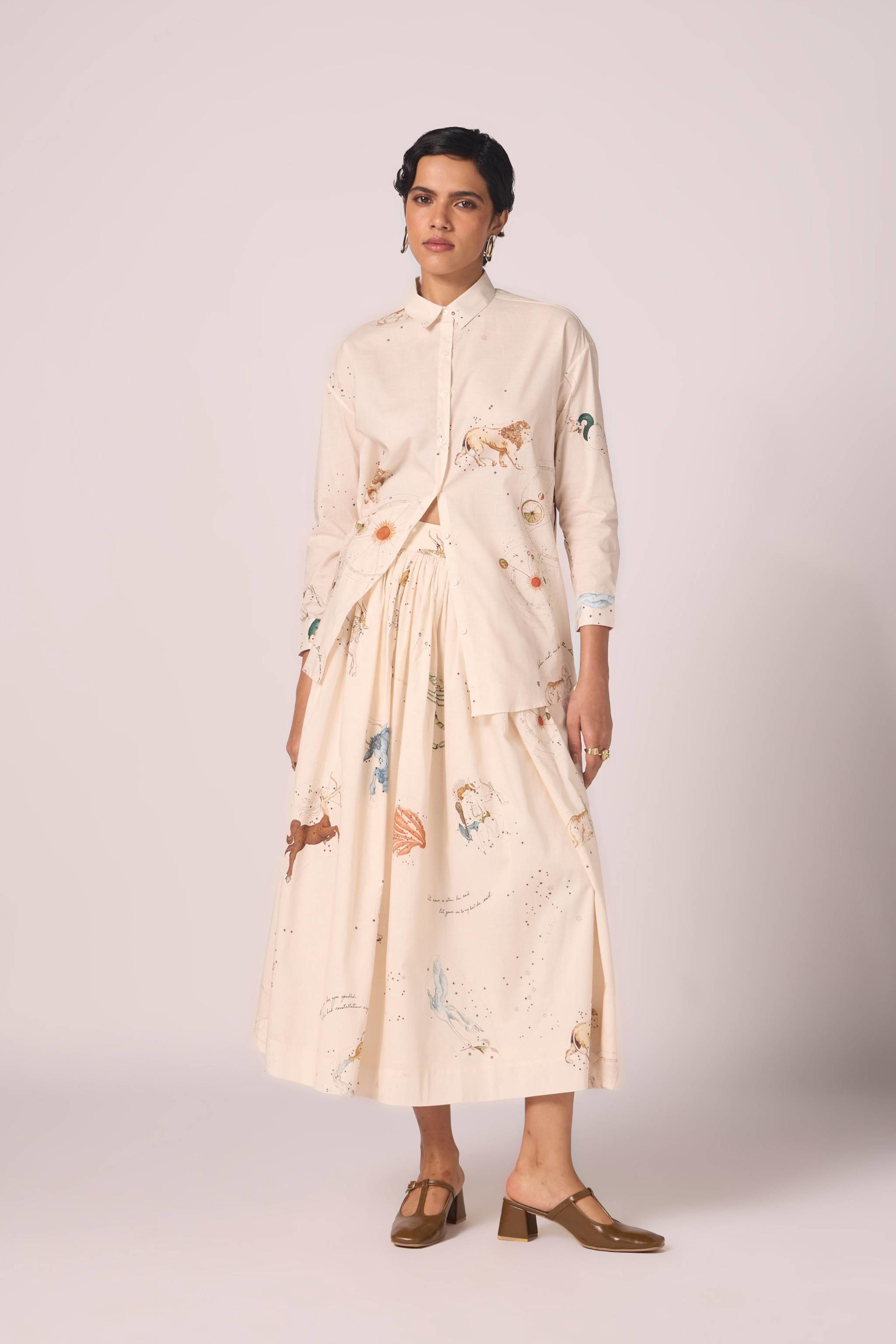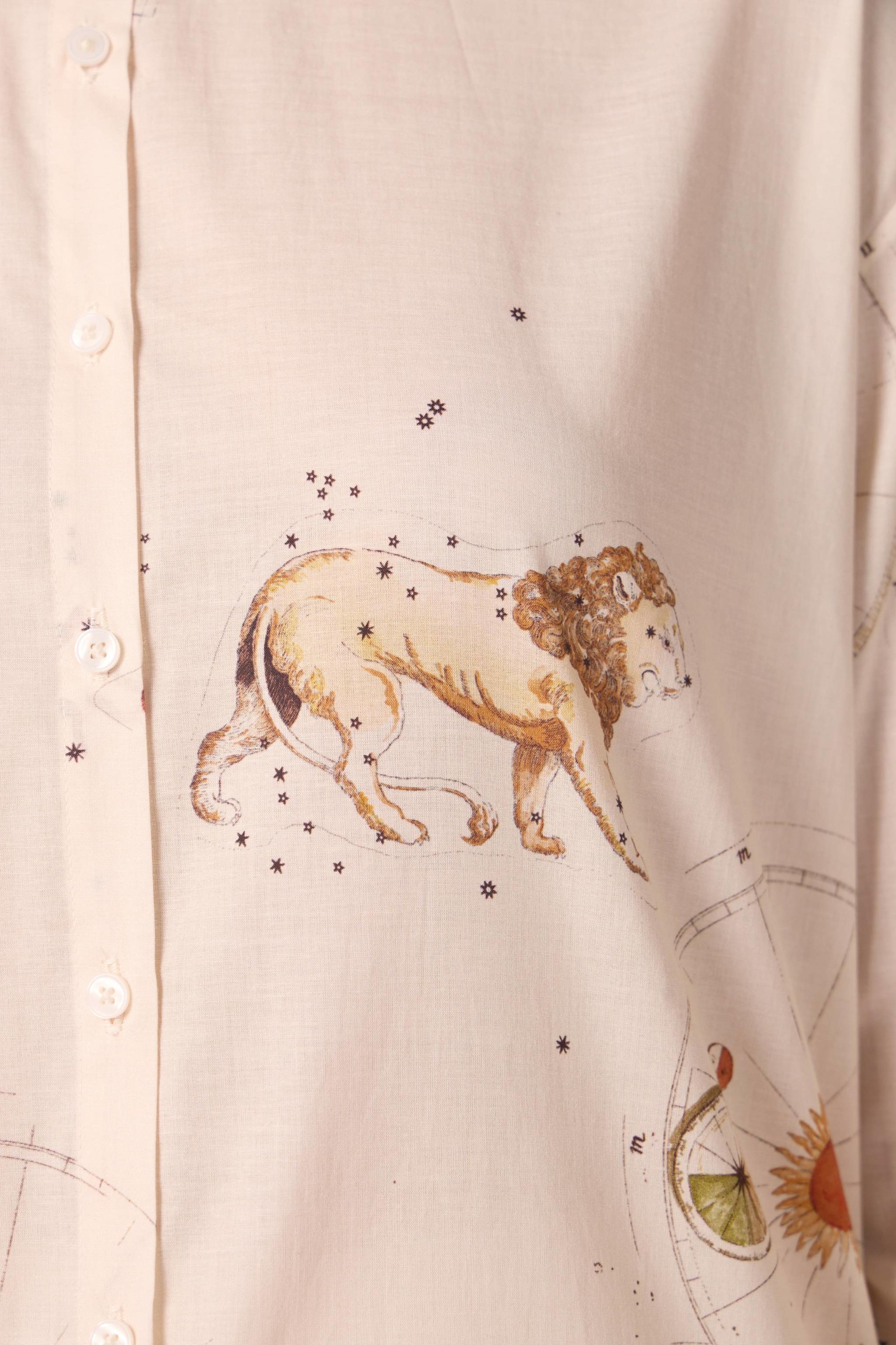 A timeless favorite, the Joyce Shirt returns in a signature studio print. Designed with a slightly oversized silhouette, it balances ease with polish. The slim collar and full-length sleeves with cuffs add a touch of tailored refinement, making it an effortless piece for everyday wear. - Regular Fit - Anushka is 5'8 and wearing XS . Her body measurements are Bust: 32", Waist: 29", Hips: 36" - Crafted in a signature studio print - Slightly oversized fit for relaxed comfort - Slim collar with a clean finish - Full-length sleeves with buttoned cuffs -Versatile styling for work or leisure