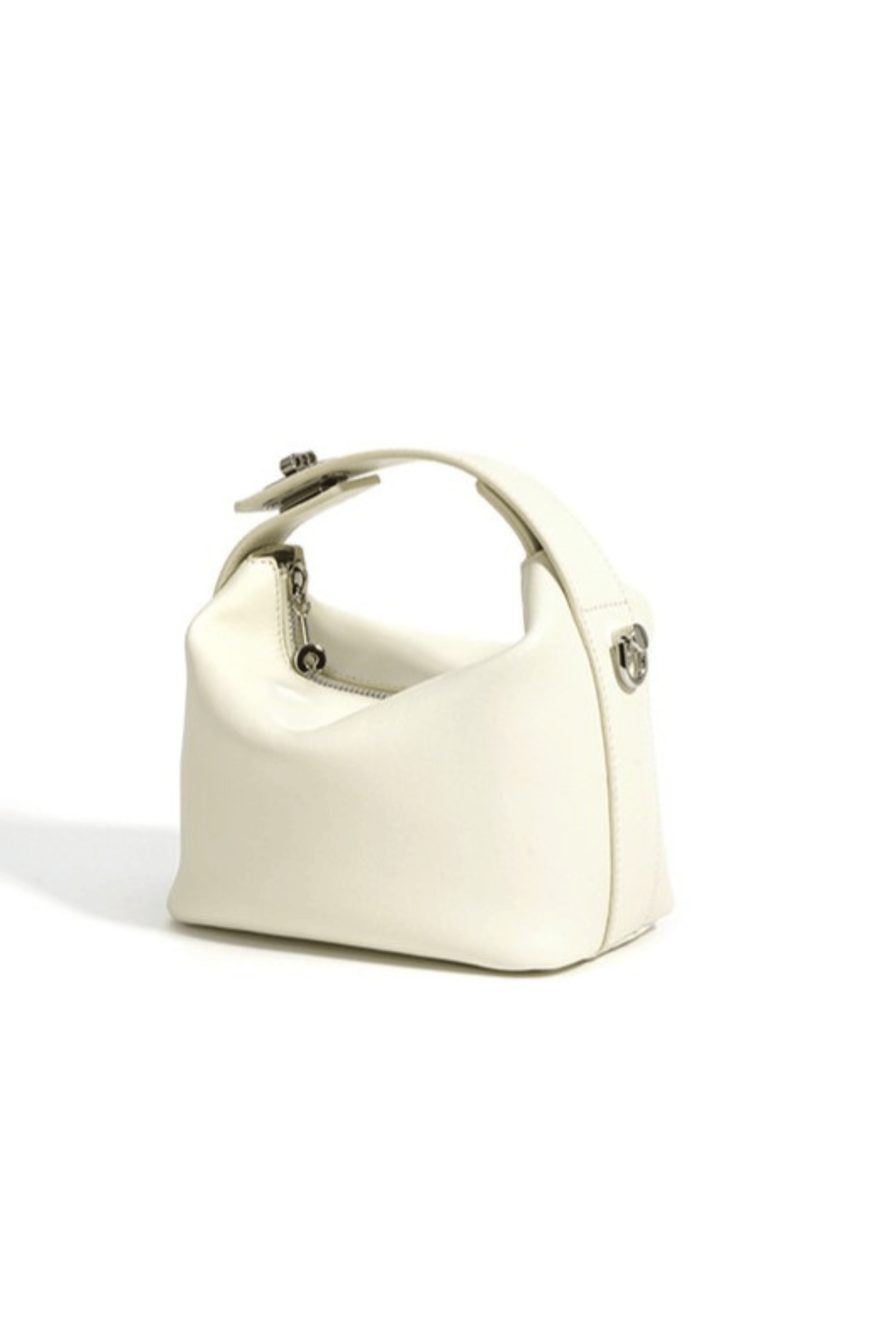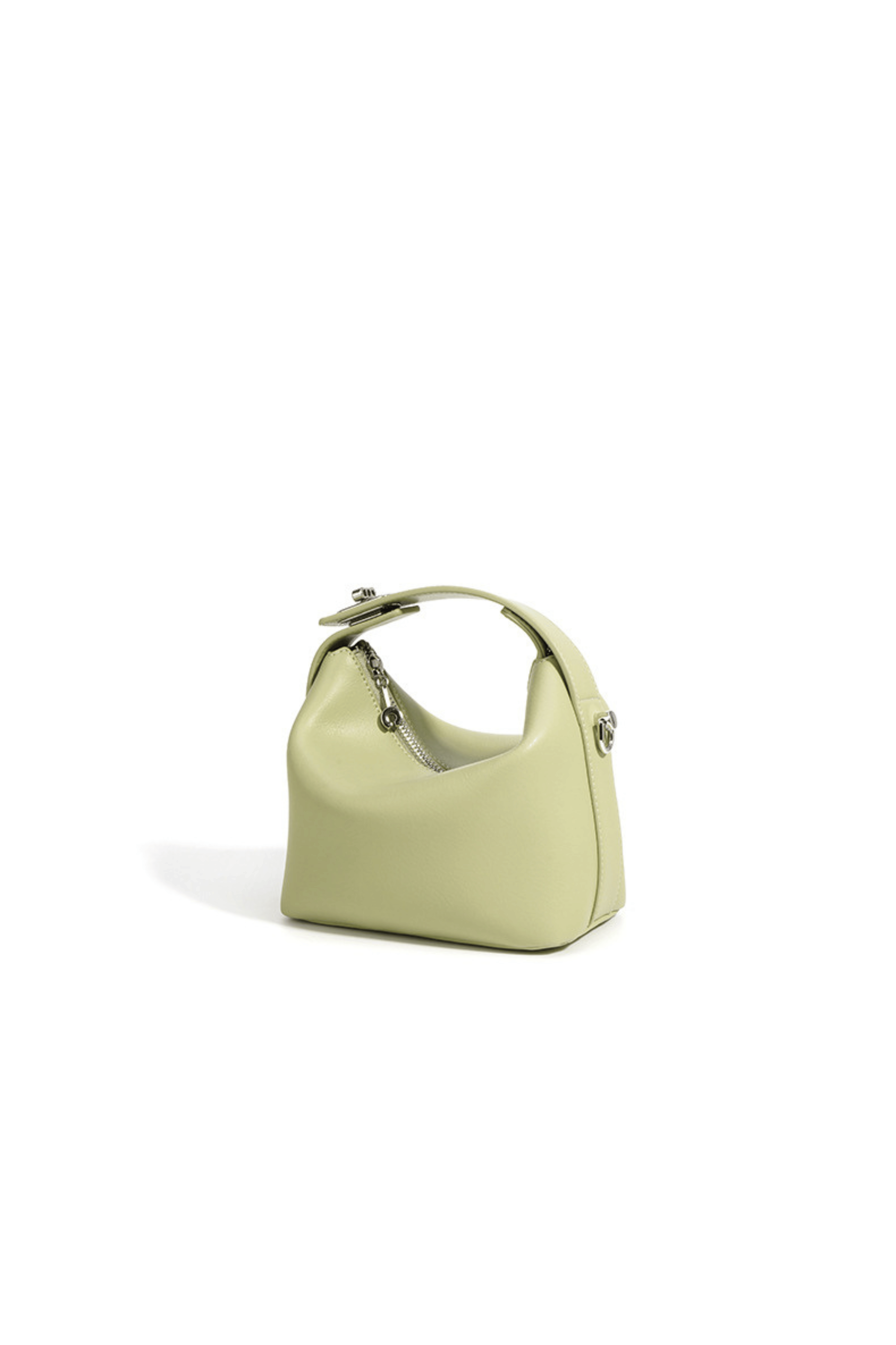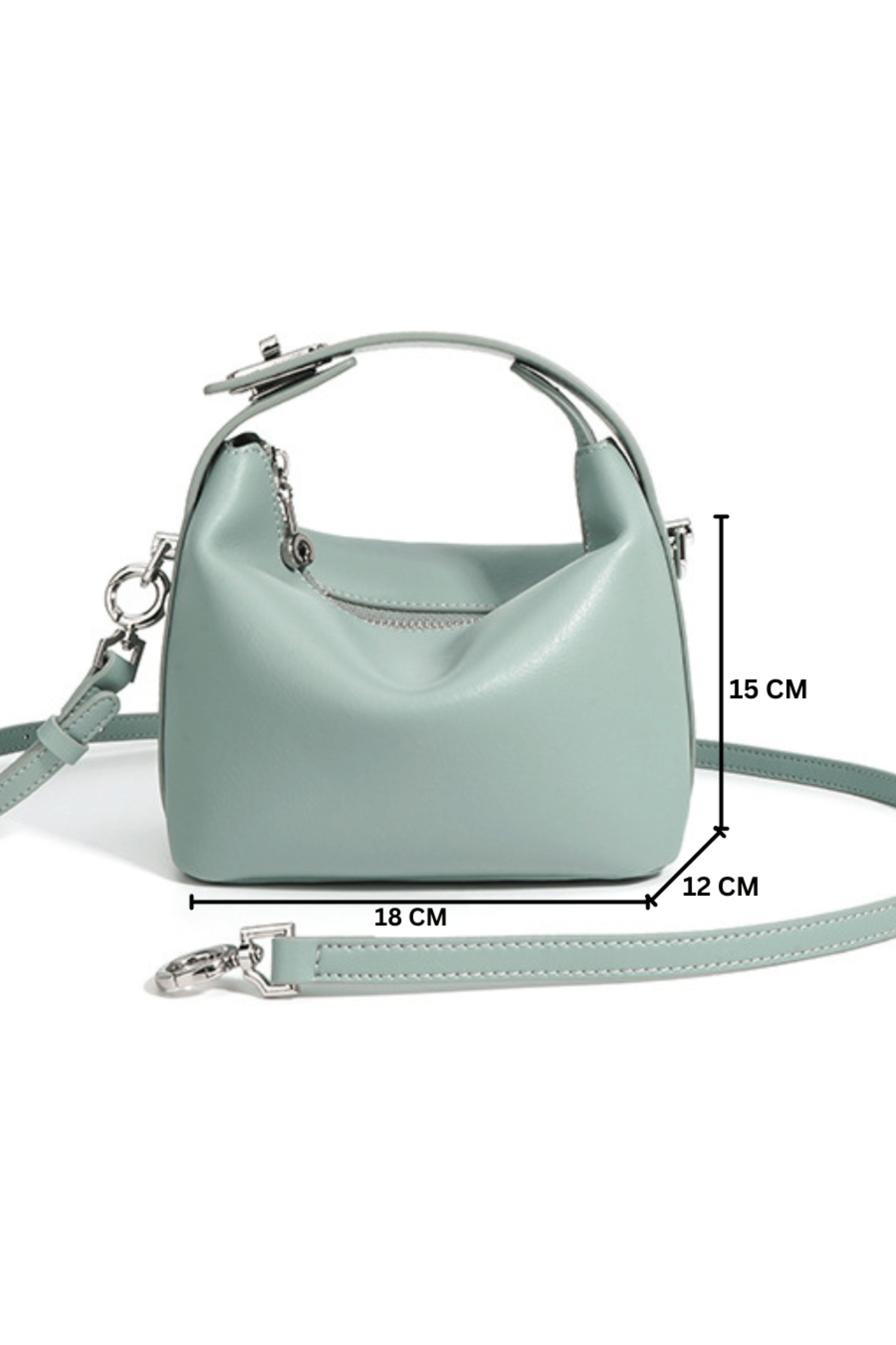 Add a touch of elegance to your collection with our Small Top Handle Bag, Liora crafted from genuine leather and available in four dreamy pastel shades—Illusion Blue, Ivory, Avocado Green, and Smoke Powder. Features you'll love: 1. Timeless Design: Compact yet stylish, perfect for both day and evening looks. 2. Secure Closure: Metal zipper with a sleek puller ensures your belongings stay safe. 3. Organized Interior: A single spacious compartment with a zipper pocket and an open pocket for easy organization. 4. Versatile Carrying Options: Comes with a detachable and adjustable leather strap, allowing you to wear it as a crossbody or carry it as a chic top-handle bag. 5. Dust Bag: Comes in a cotton dust bag for storing when not in use.