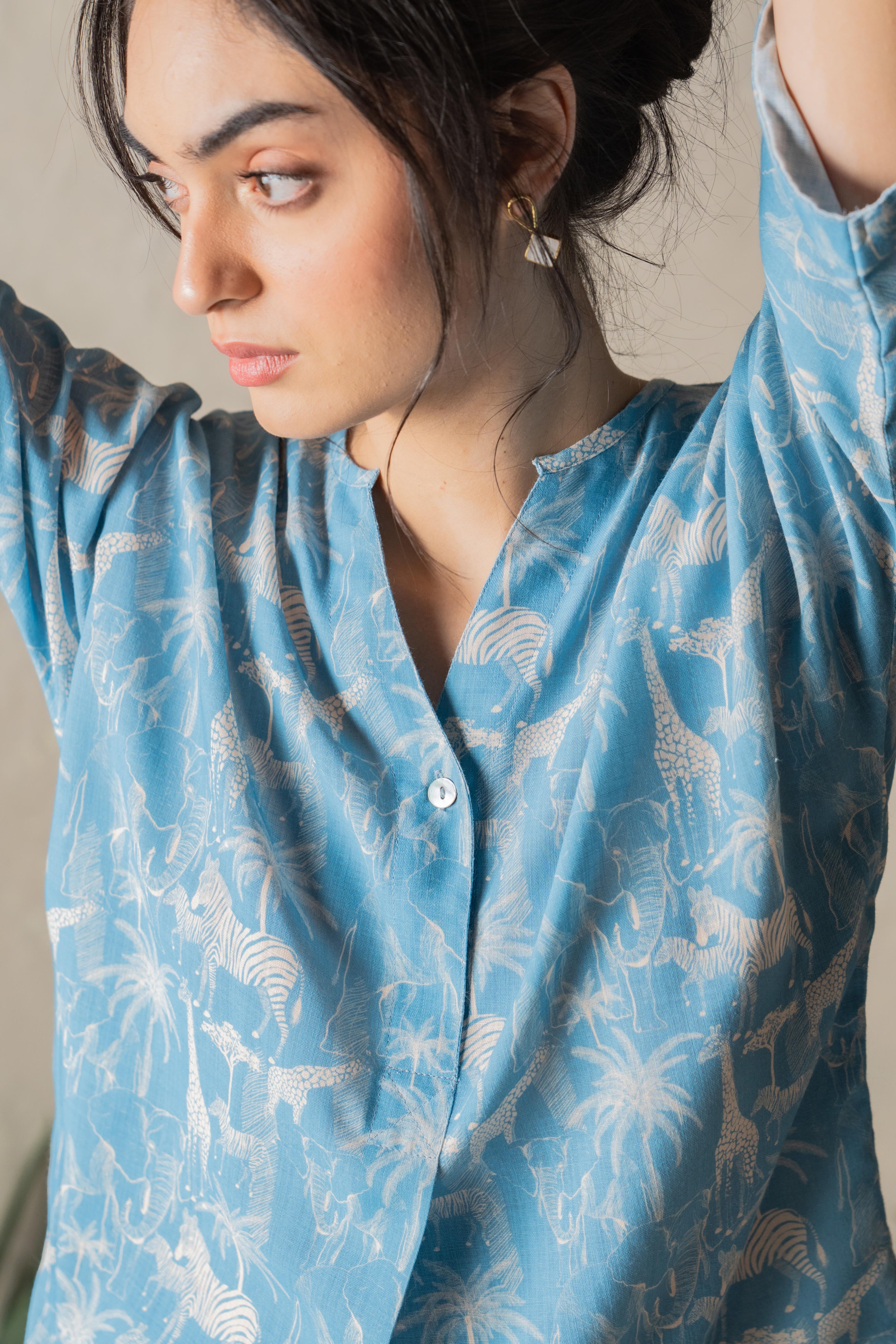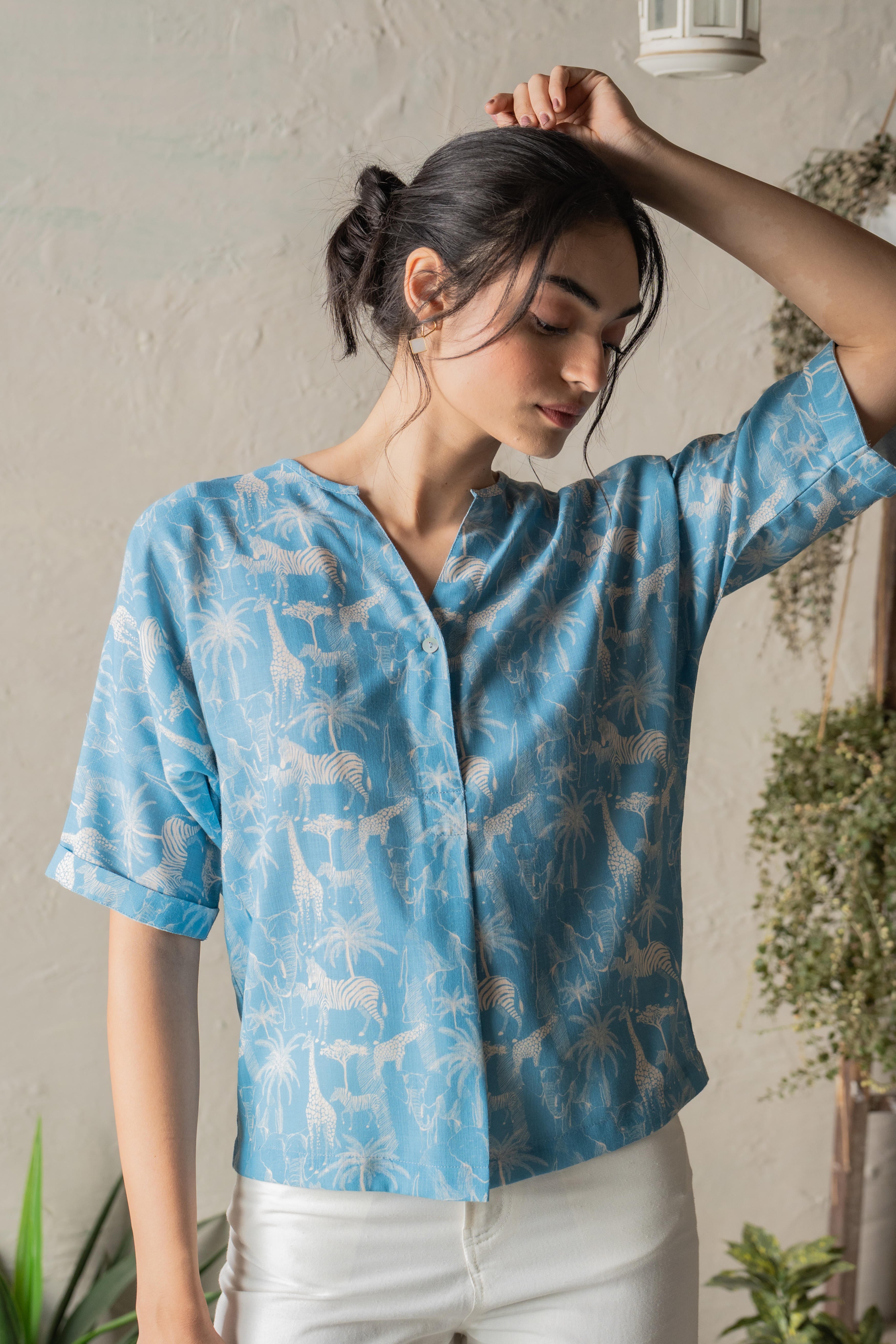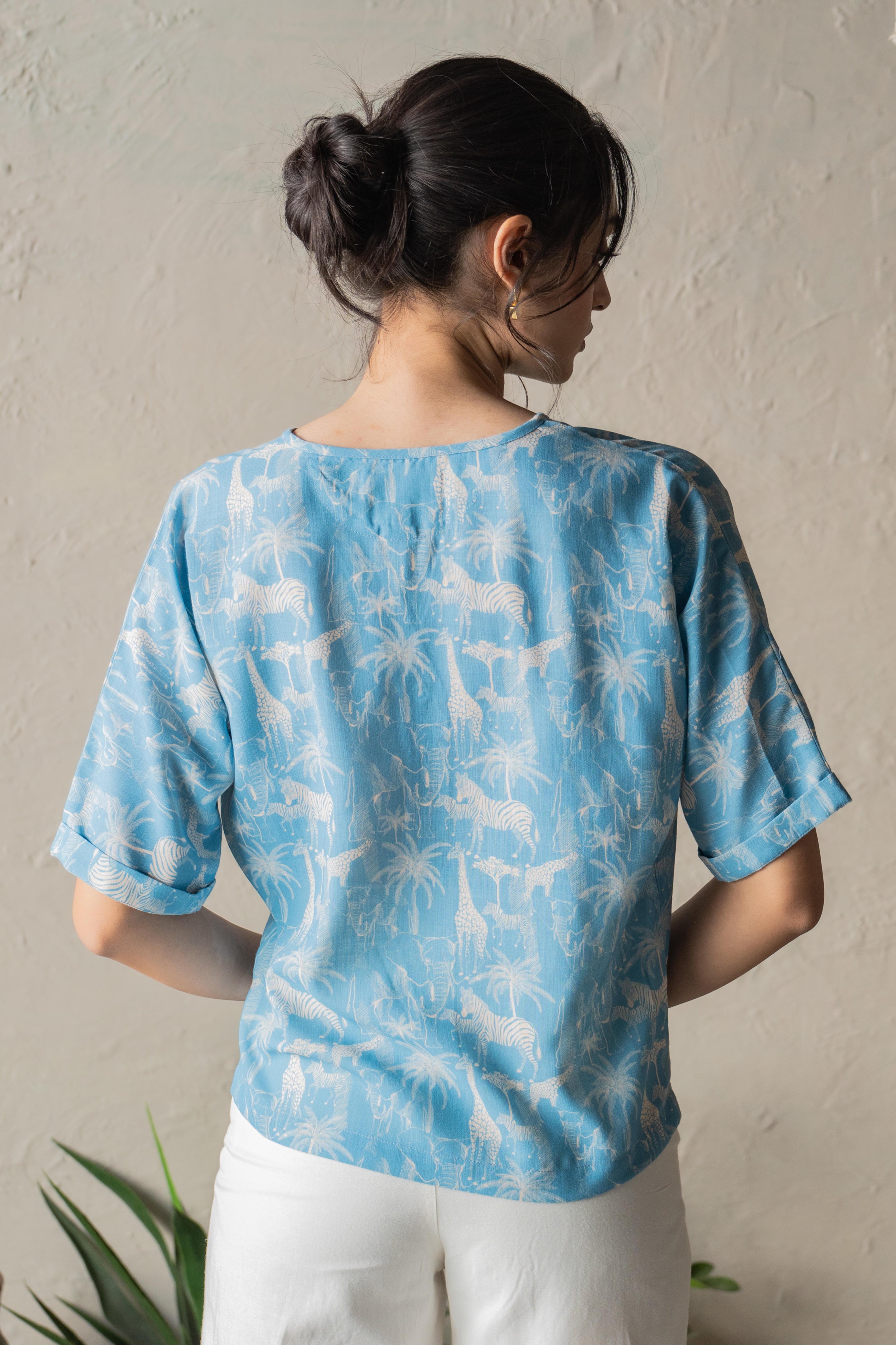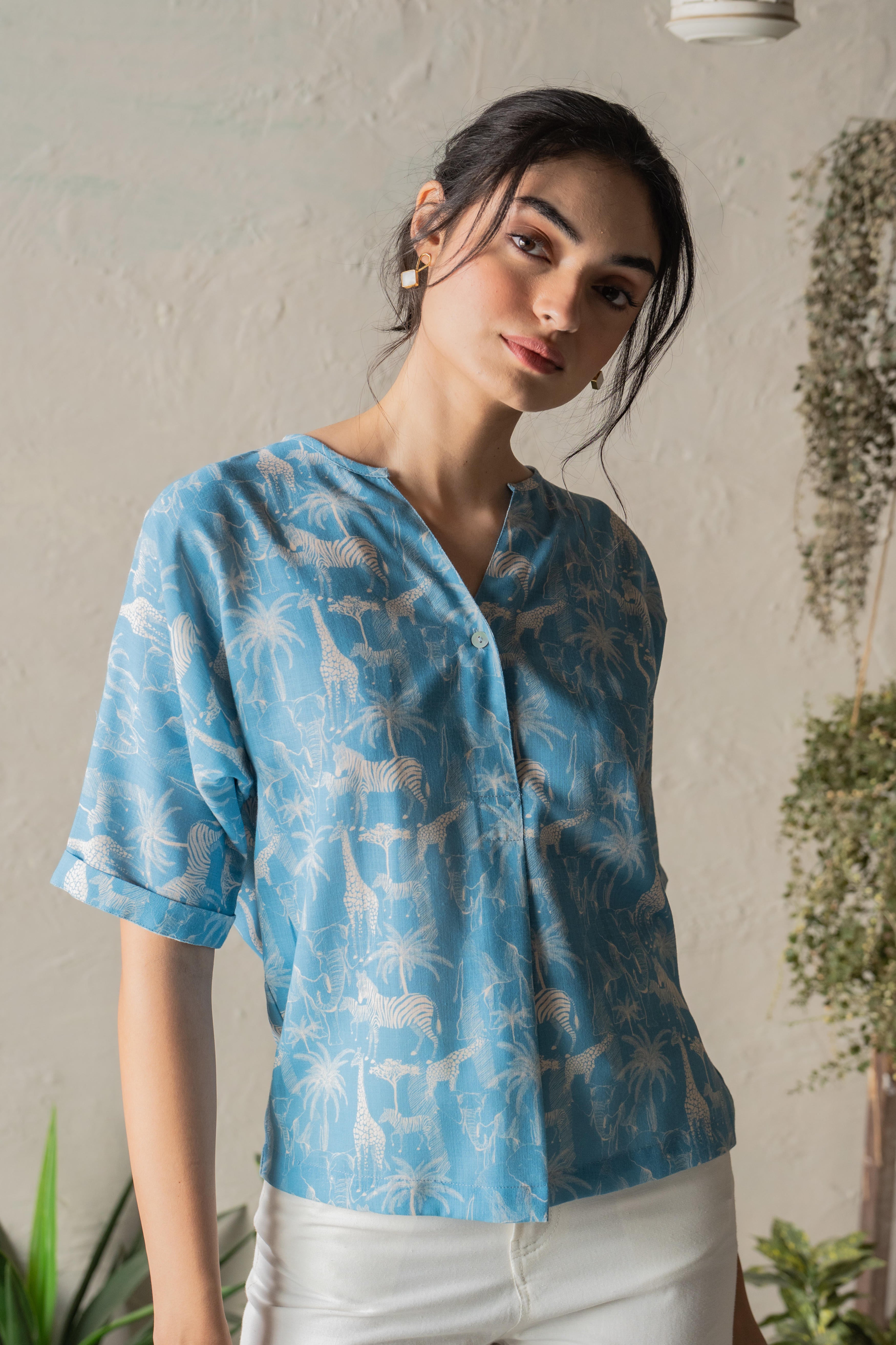Elevate your wardrobe with the Maasai Mara Top, inspired by the untamed elegance of nature. Crafted from breathable cotton, this top effortlessly blends sophistication with modern charm. Its breezy silhouette is complemented by a distinctive front box pleat detail, adding a refined yet relaxed touch to any ensemble. Perfect for casual outings or spontaneous adventures, this top is a versatile addition to your collection.