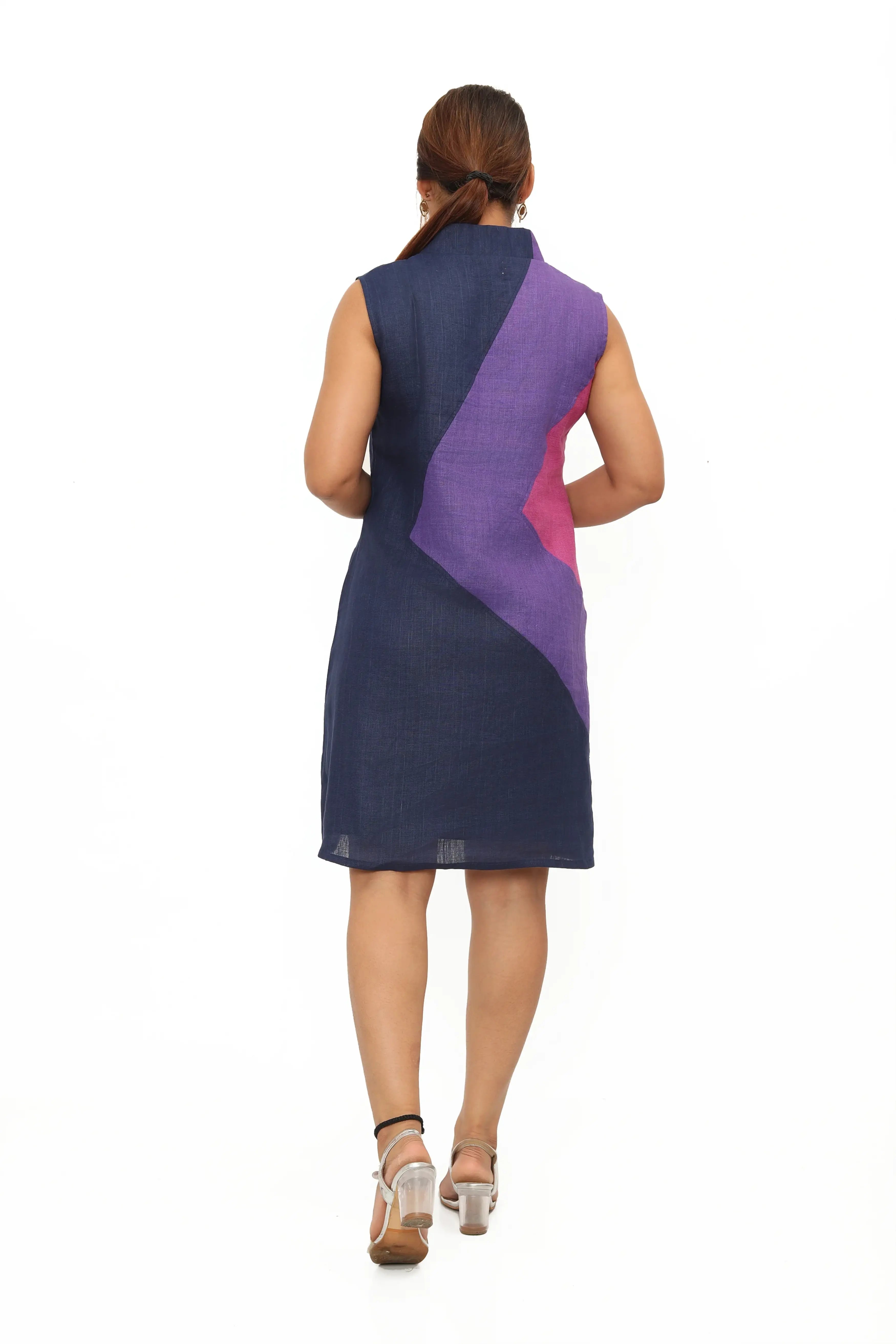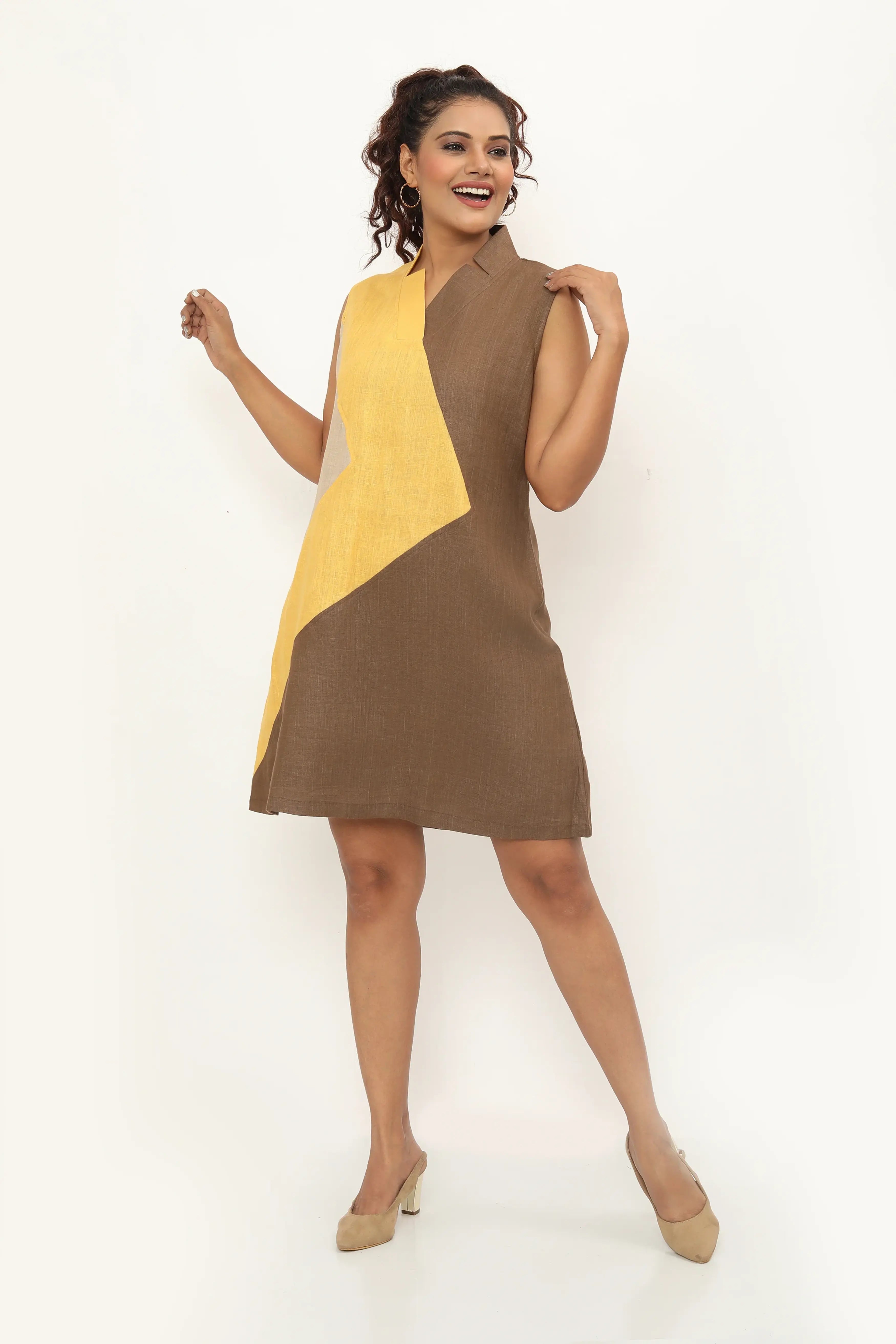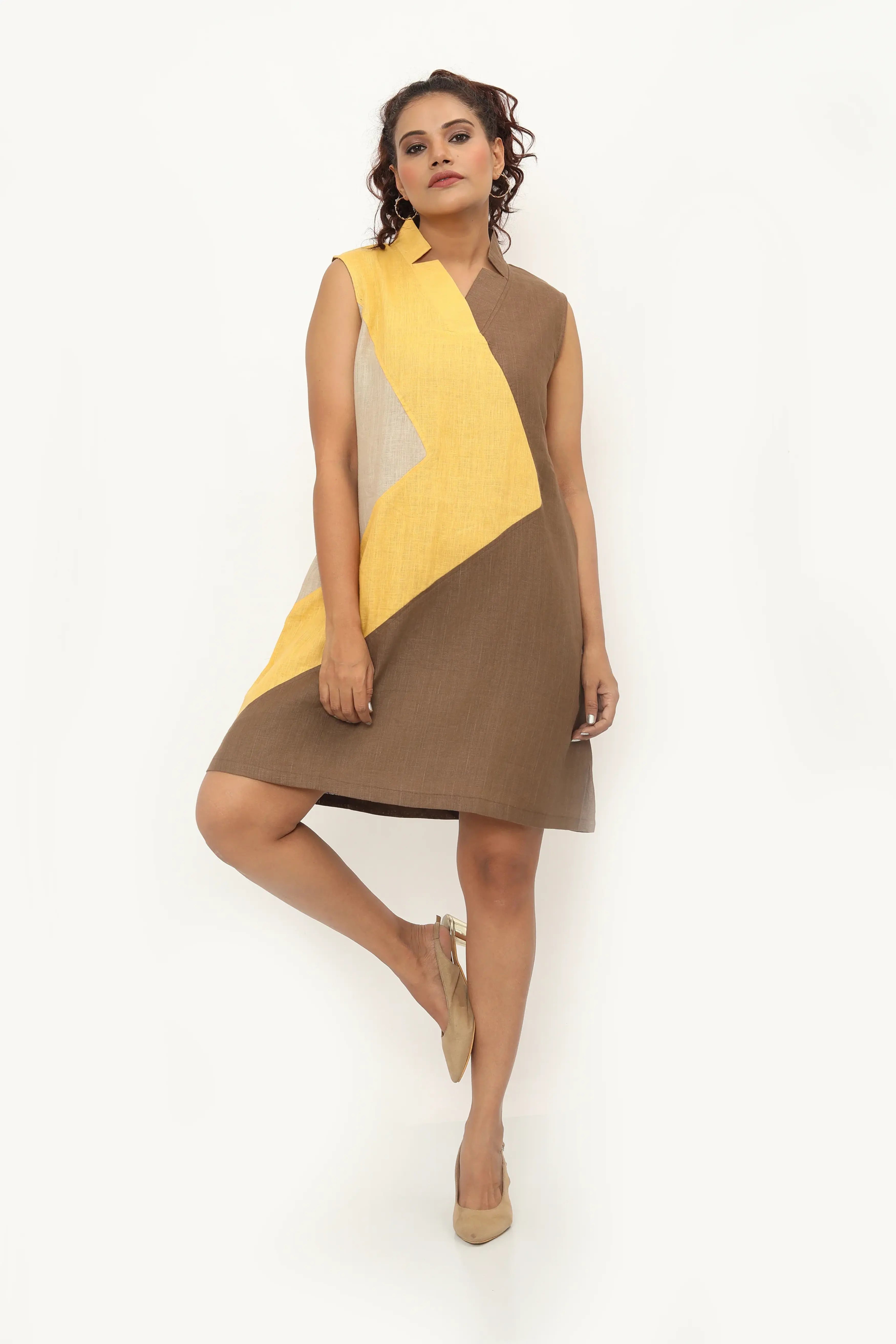 Introducing the Melrose Dress – a fusion of sophistication and contemporary charm. Featuring a sleek collar with a stylish slit, this knee-length dress radiates understated elegance. Large colour-blocked joints on the sides add a modern touch and visual interest to the design. Sleeveless and versatile, the Melrose Dress is perfect for any occasion, offering effortless style and comfort. Step out in confidence and make a statement with this chic addition to your wardrobe.