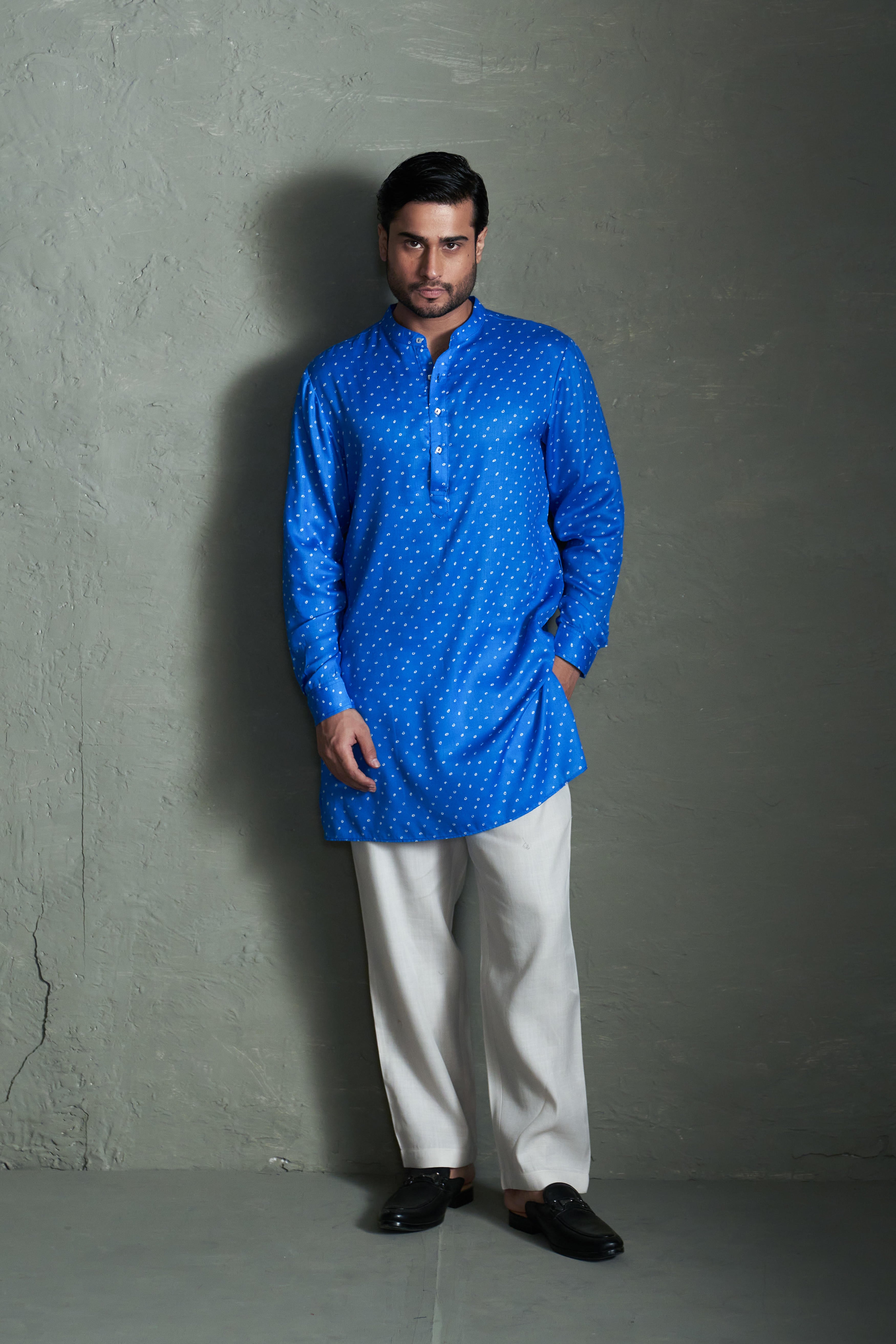Subtle yet striking, this black long kurta features a delicate Bandhani micro-print that lends quiet charm. Designed for comfort with clean lines and a timeless cut — for everyday discoveries and weekend unwinds.