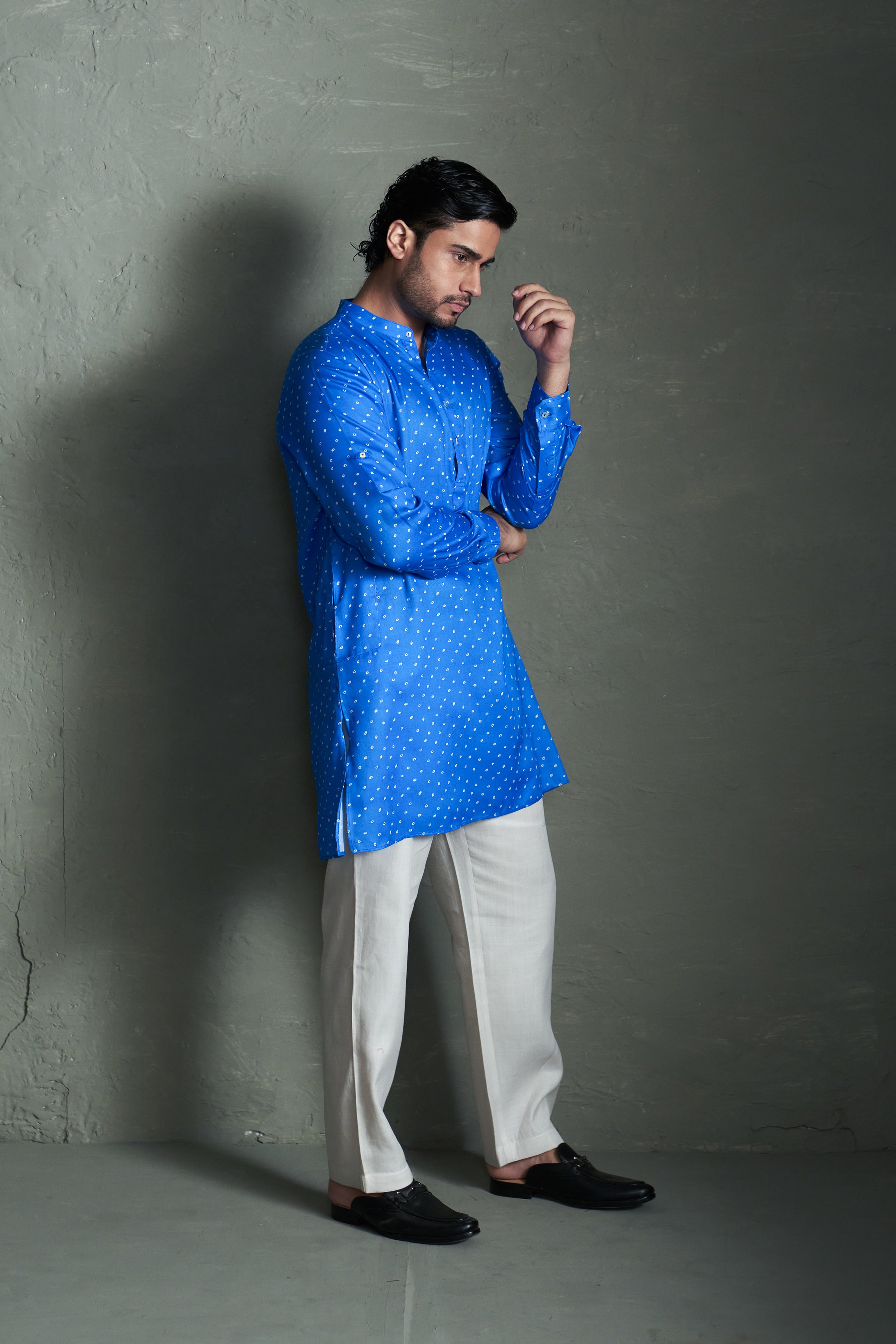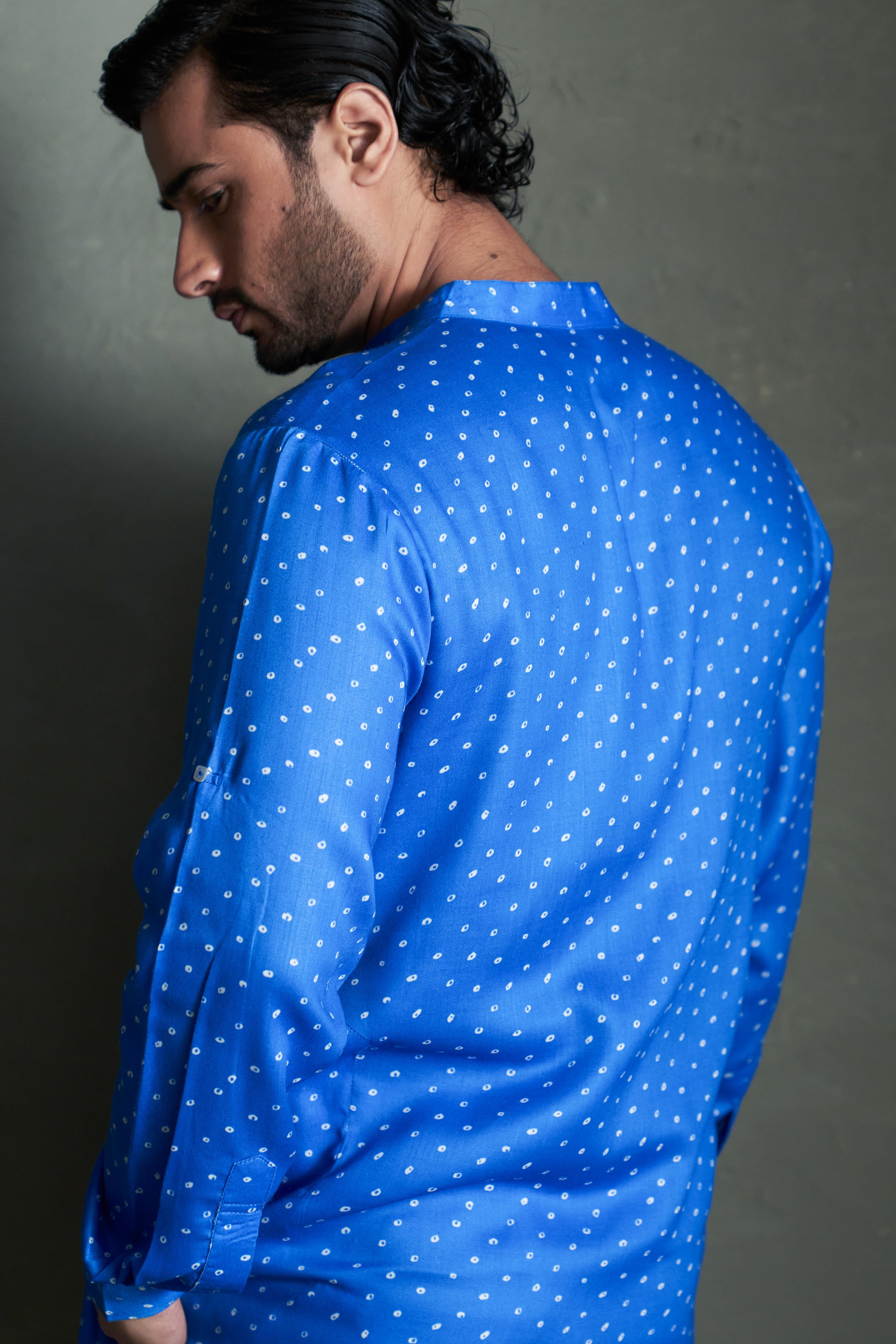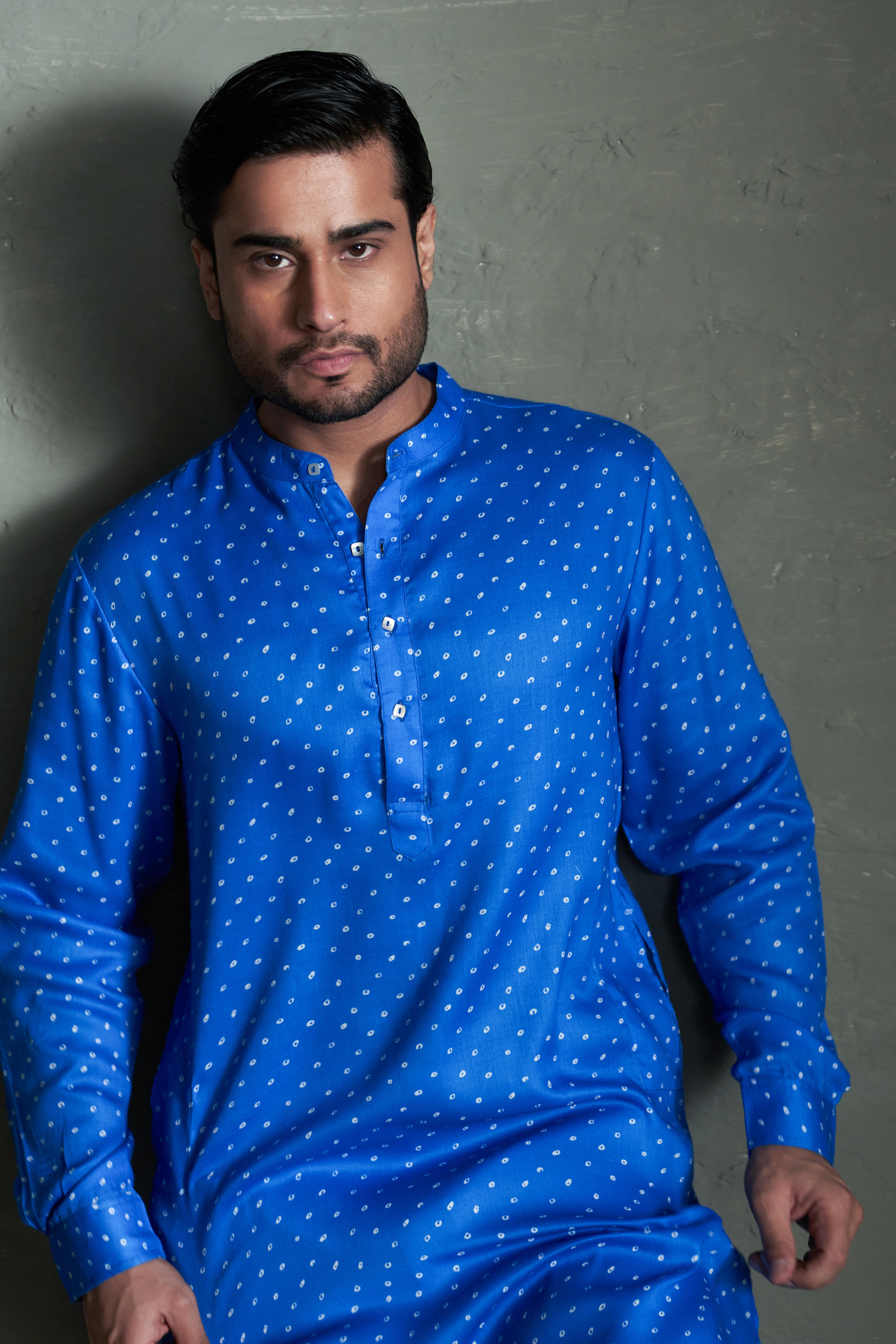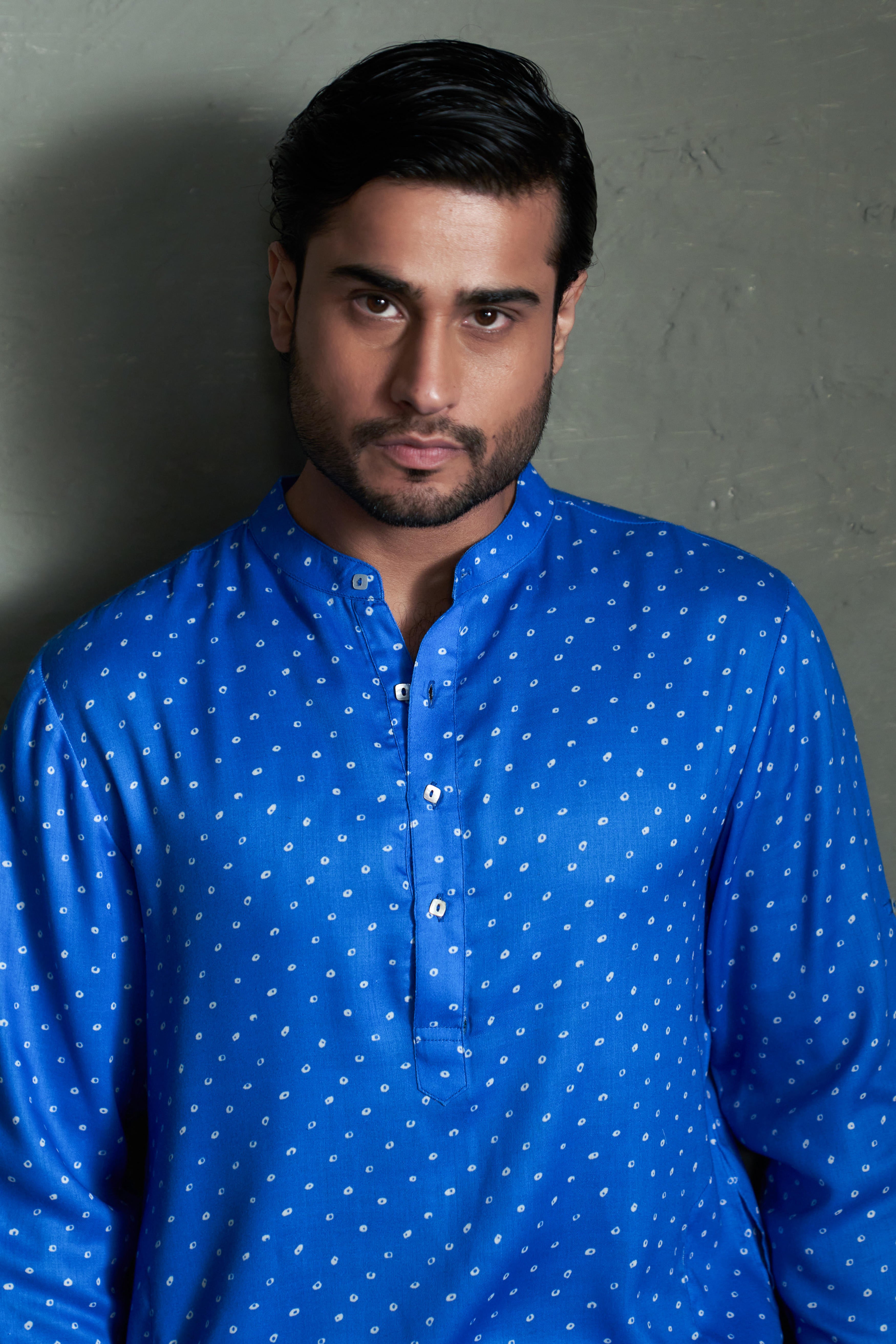 Subtle yet striking, this black long kurta features a delicate Bandhani micro-print that lends quiet charm. Designed for comfort with clean lines and a timeless cut — for everyday discoveries and weekend unwinds.