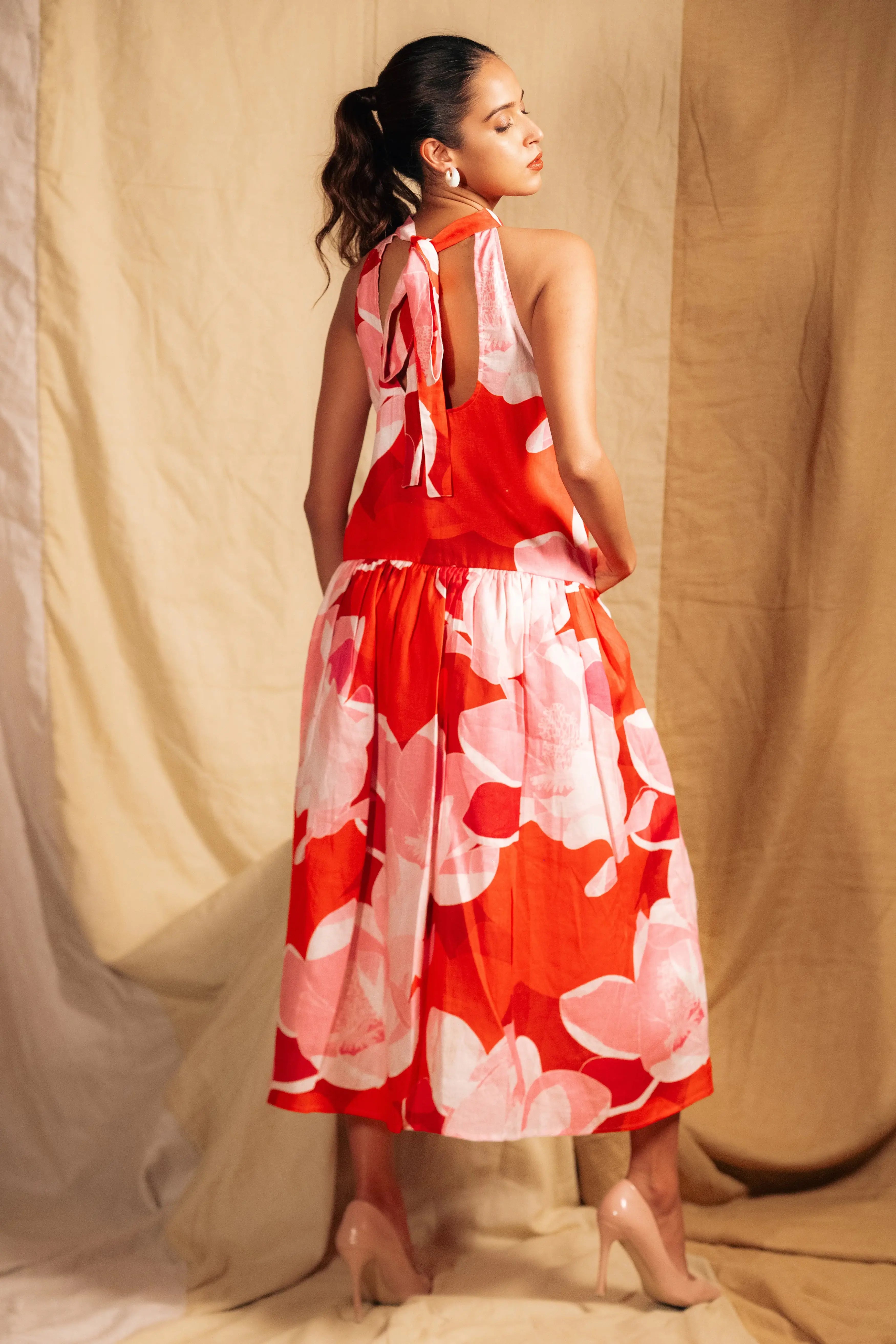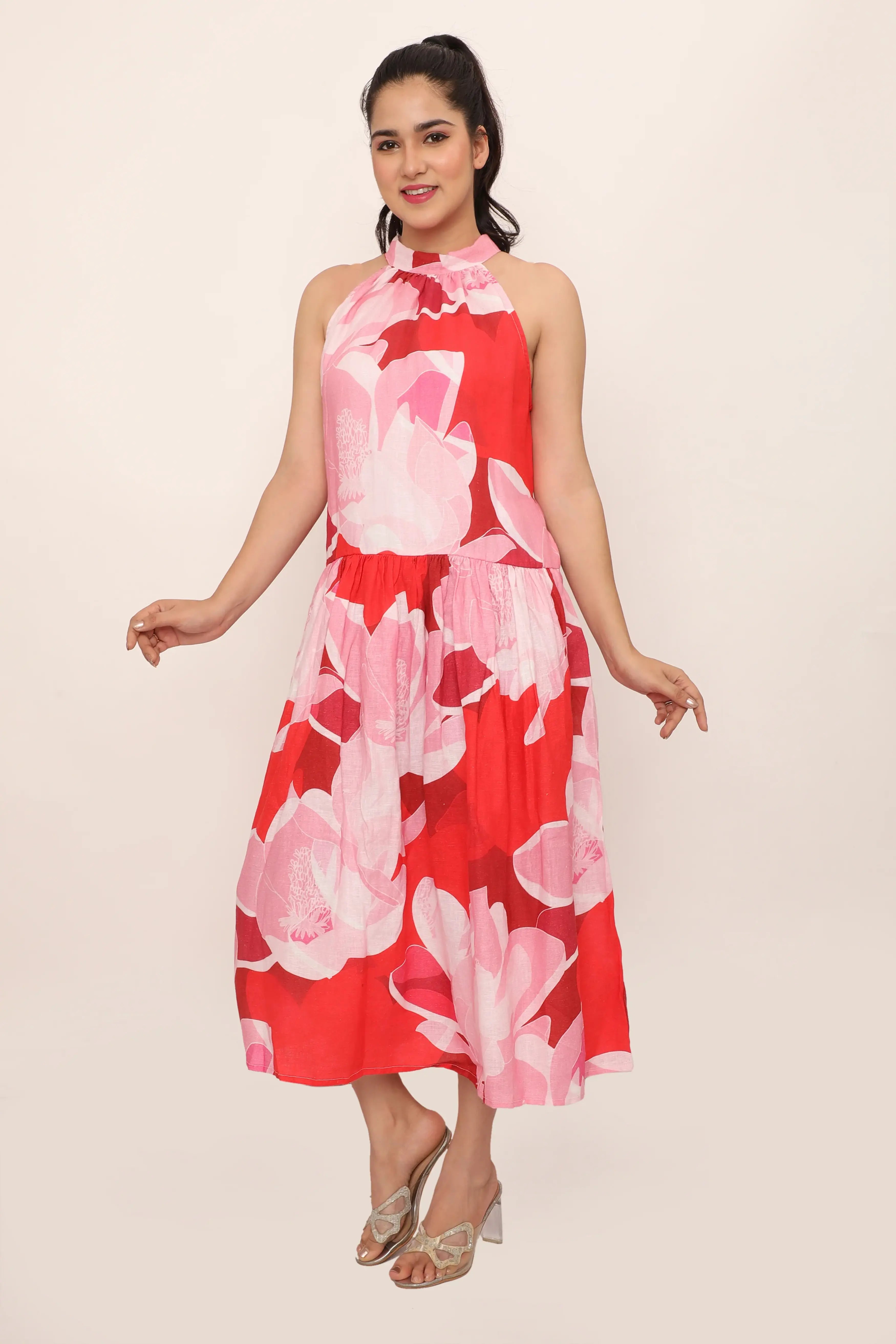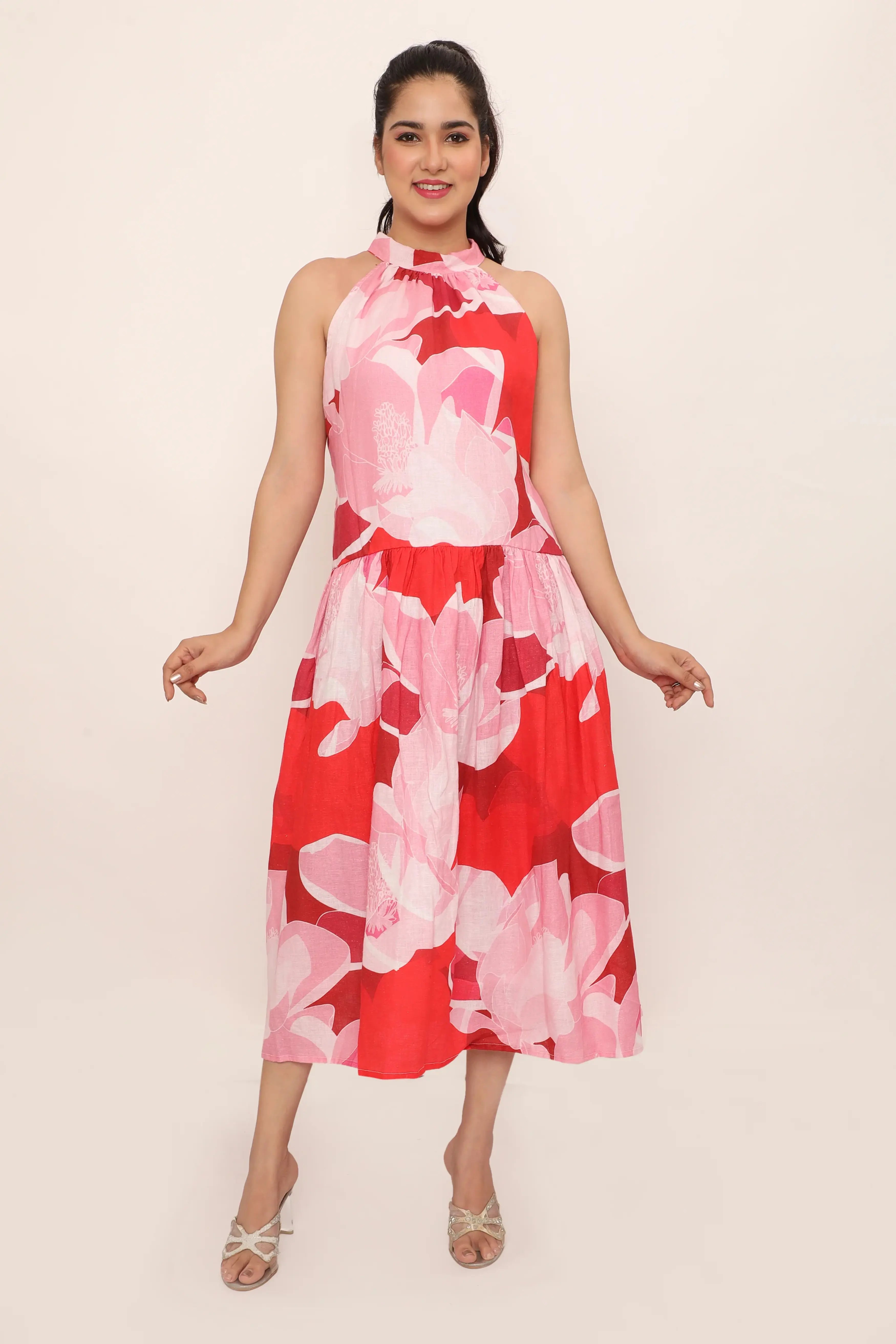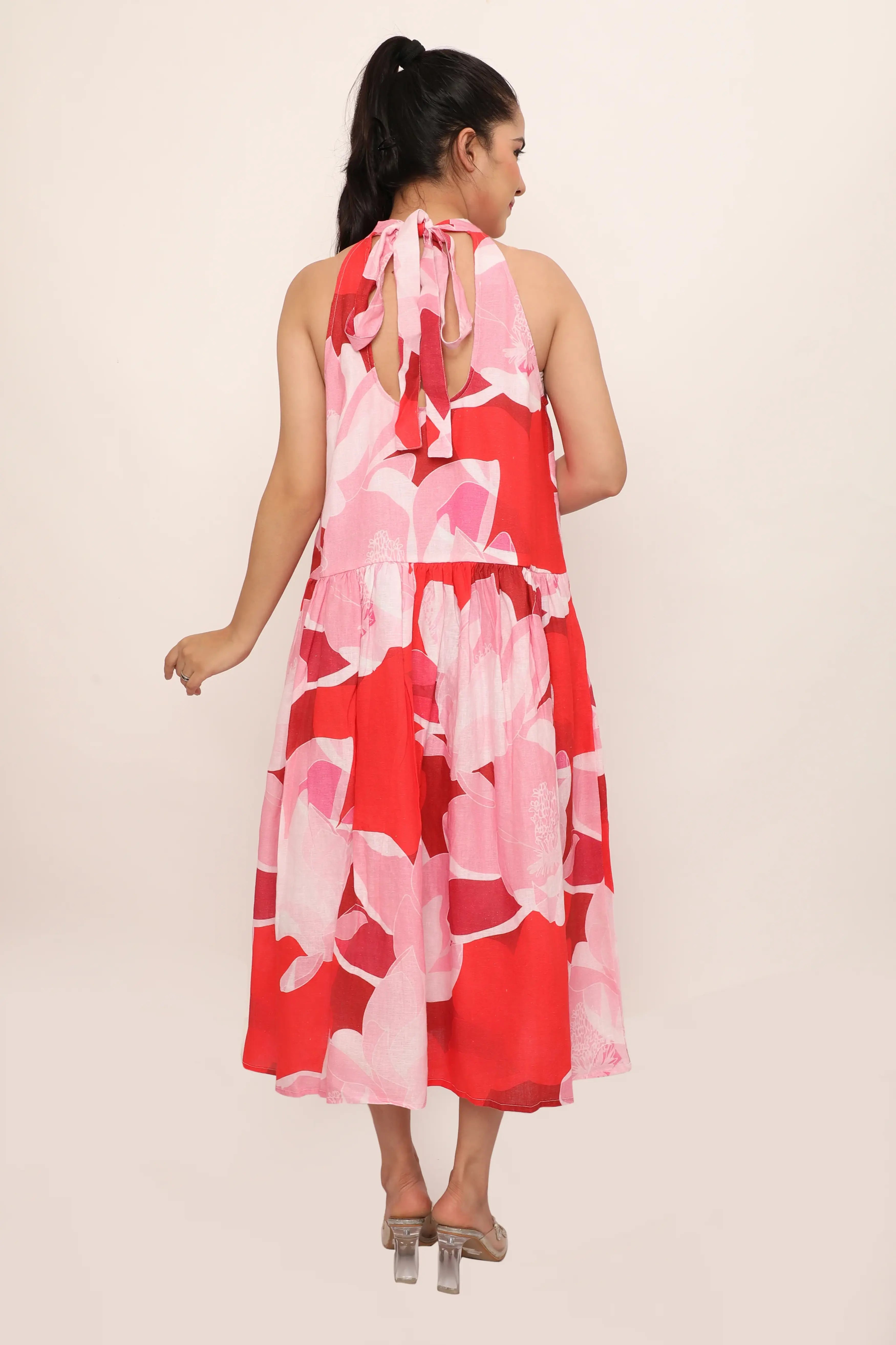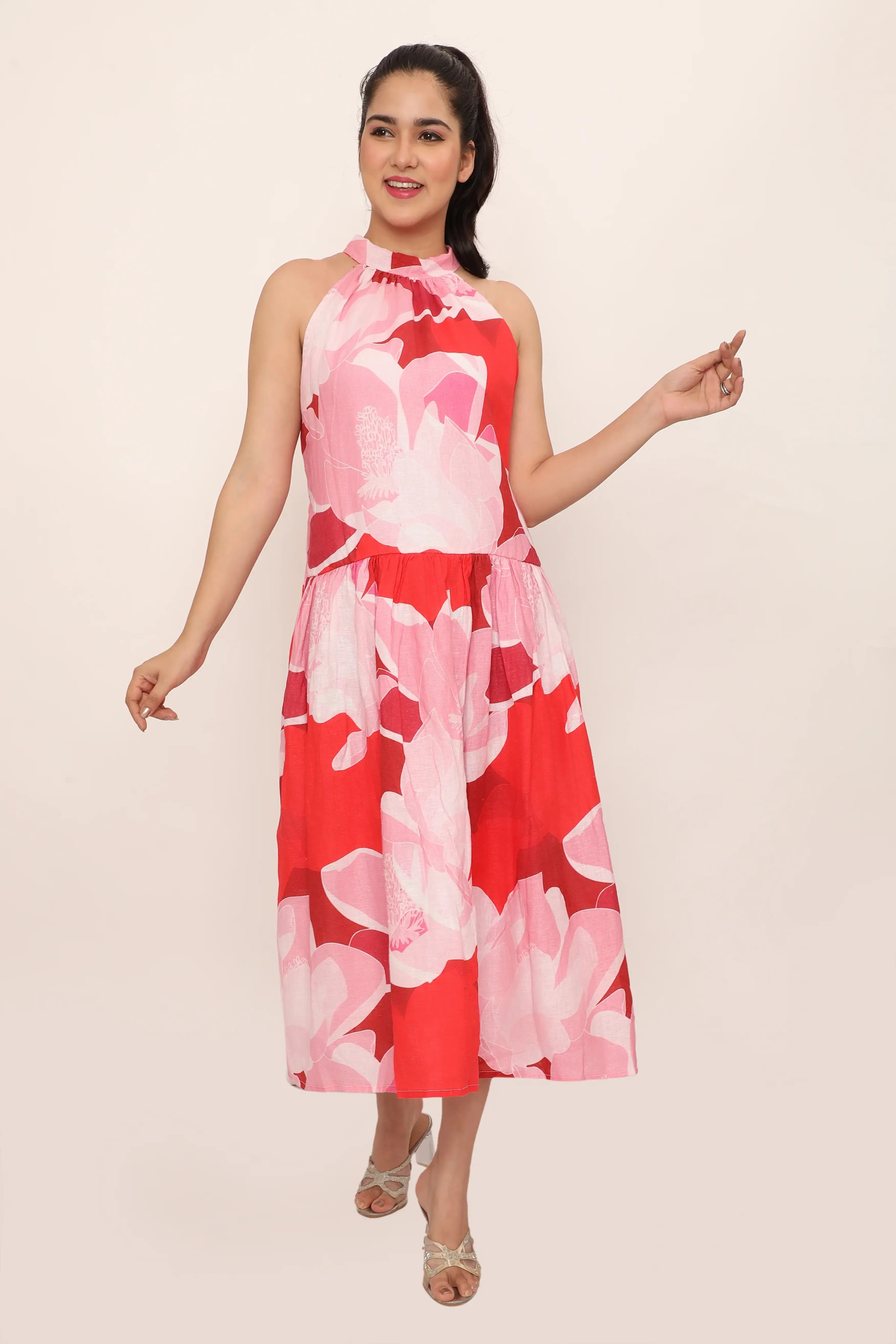 The Minerva Dress is a captivating blend of elegance and comfort. This long, loose-fit dress features a high neckline with a charming bow tie detail at the back, adding a touch of sophistication. Adorned with a vibrant print, the dress flows gracefully, making it perfect for both casual outings and special occasions. The sleeveless design and relaxed fit ensure you stay comfortable all day long, while the high-low hem adds a modern twist.