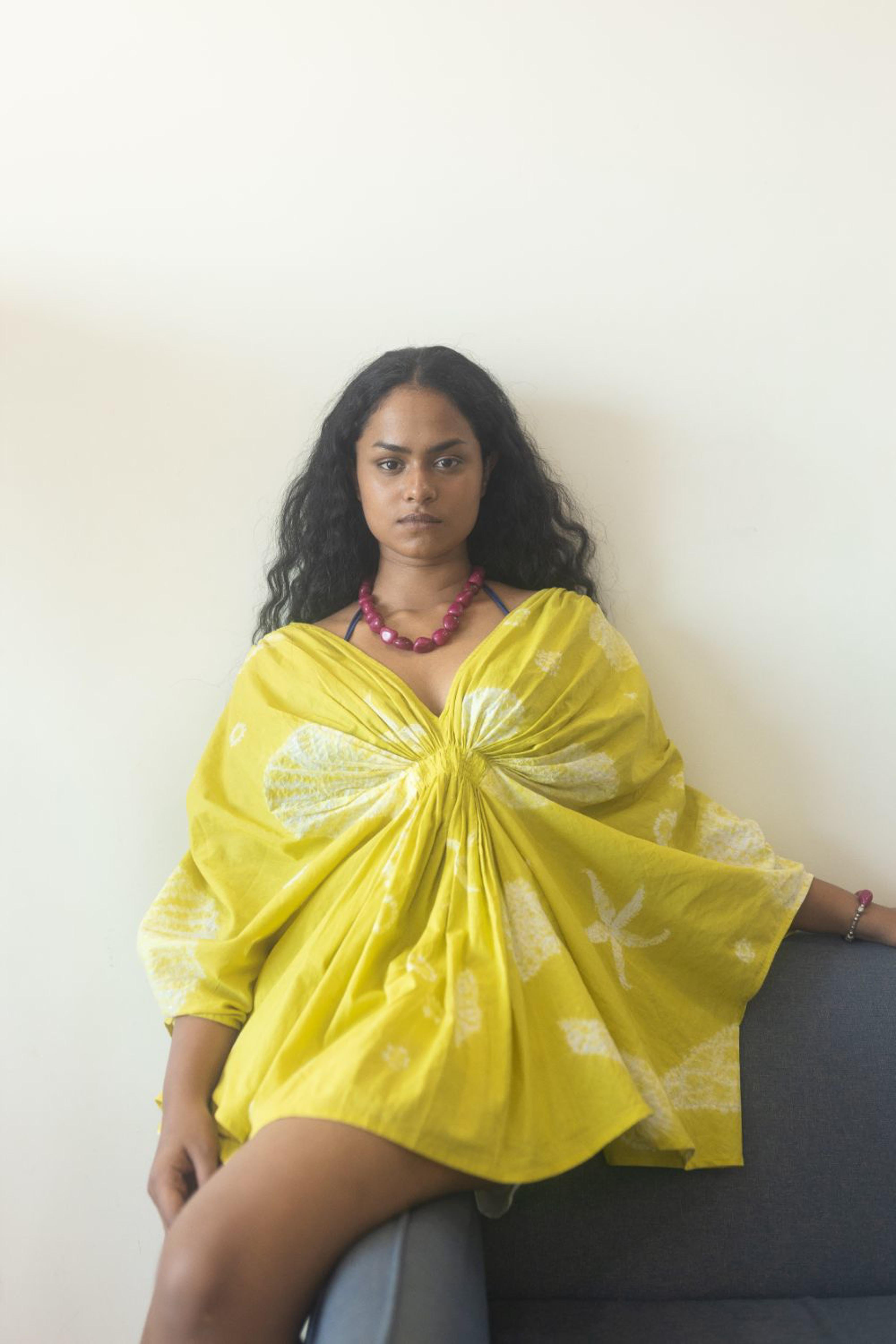 A statement layer that moves as effortlessly as the ocean tide. With its airy drape and fluid silhouette, this overlay adds depth and drama to any beachside ensemble—wear it over swimwear or style it for a chic, resort-ready look.