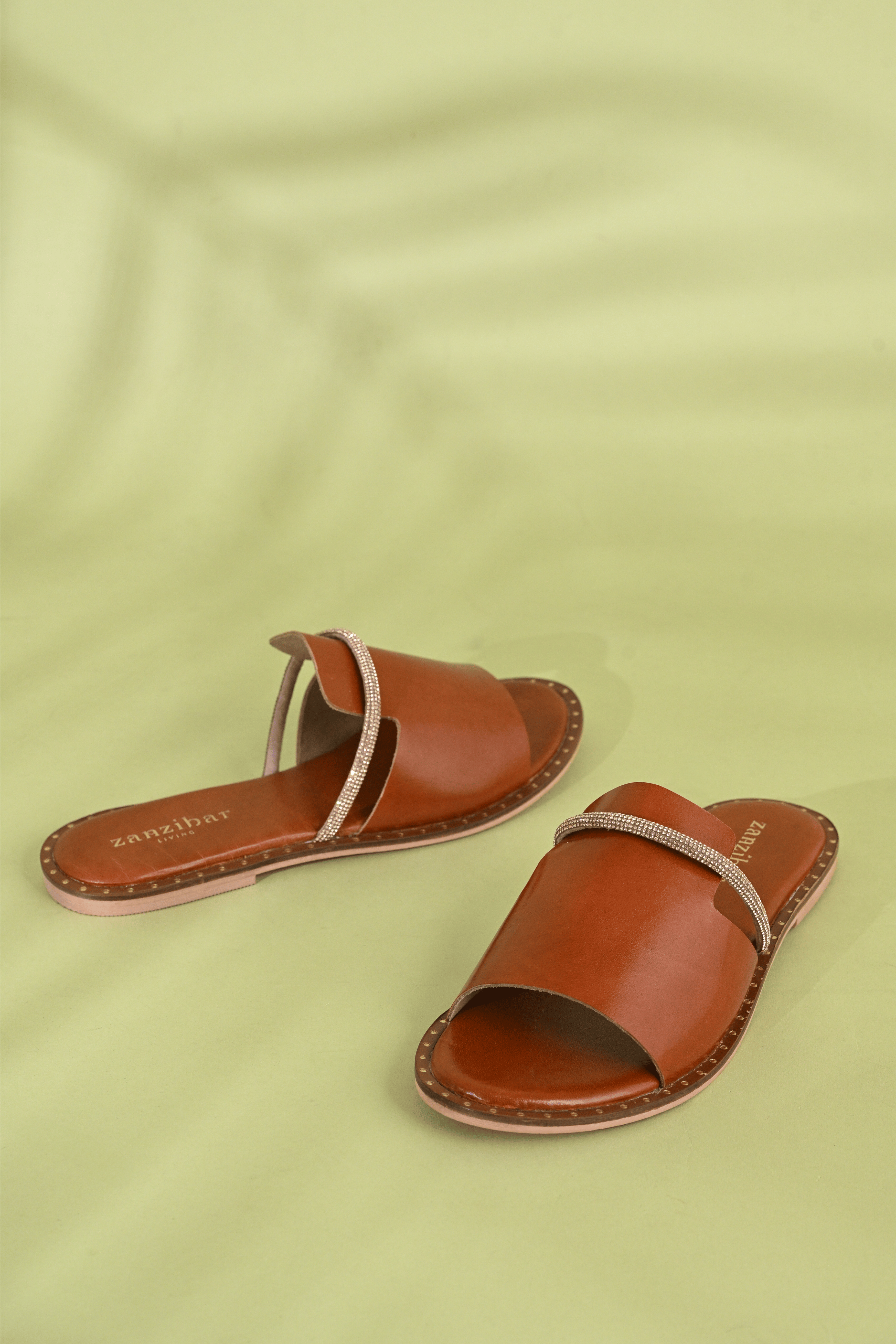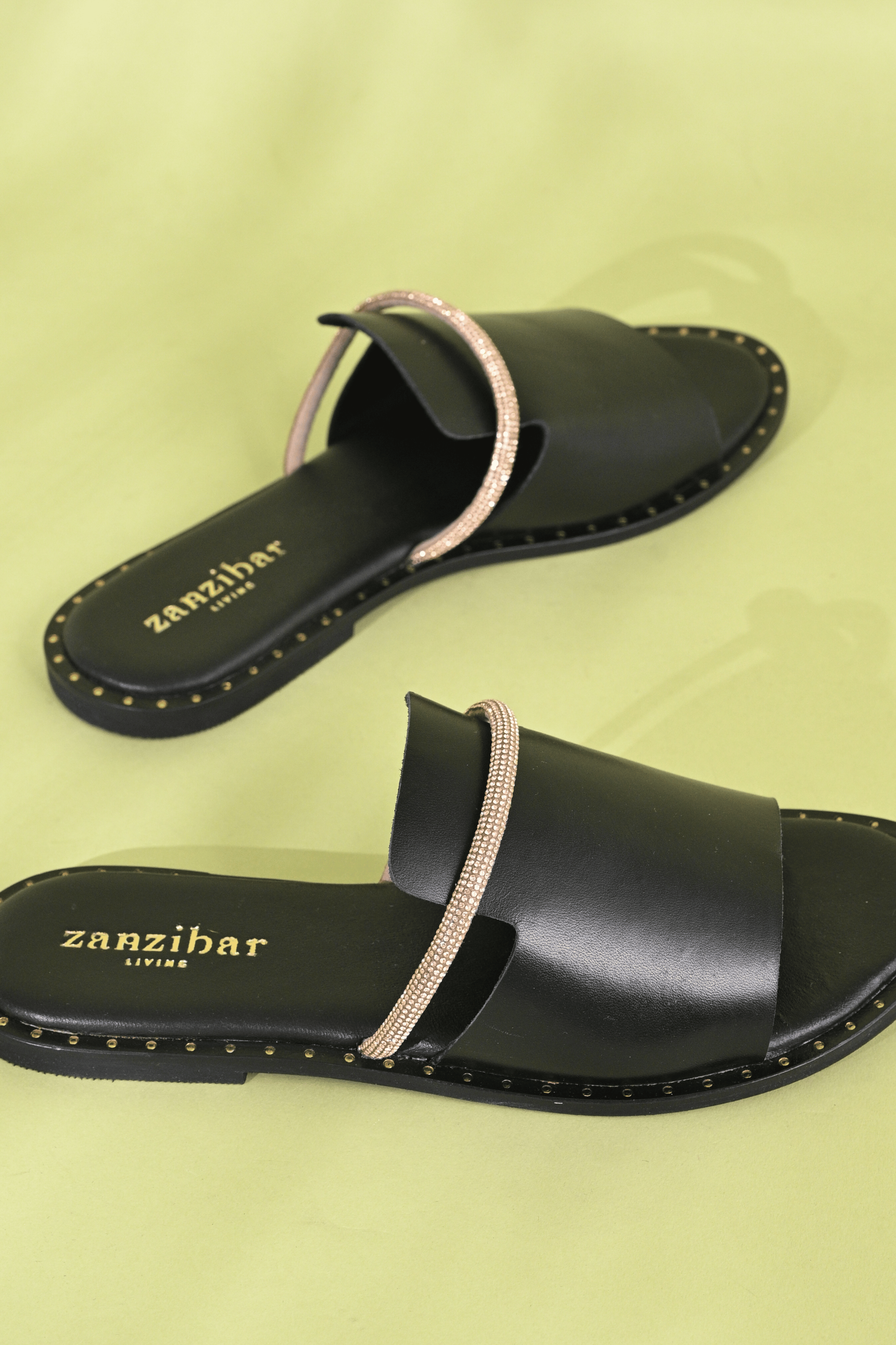 Revamp your look with our luxurious Mykonos slides. Handcrafted from the finest materials for superior comfort and support — and elegantly hand-embroidered for a touch of sparkle — this stylish accessory is a sophisticated way to add a little glitter to your everyday. Available in Tan and black.