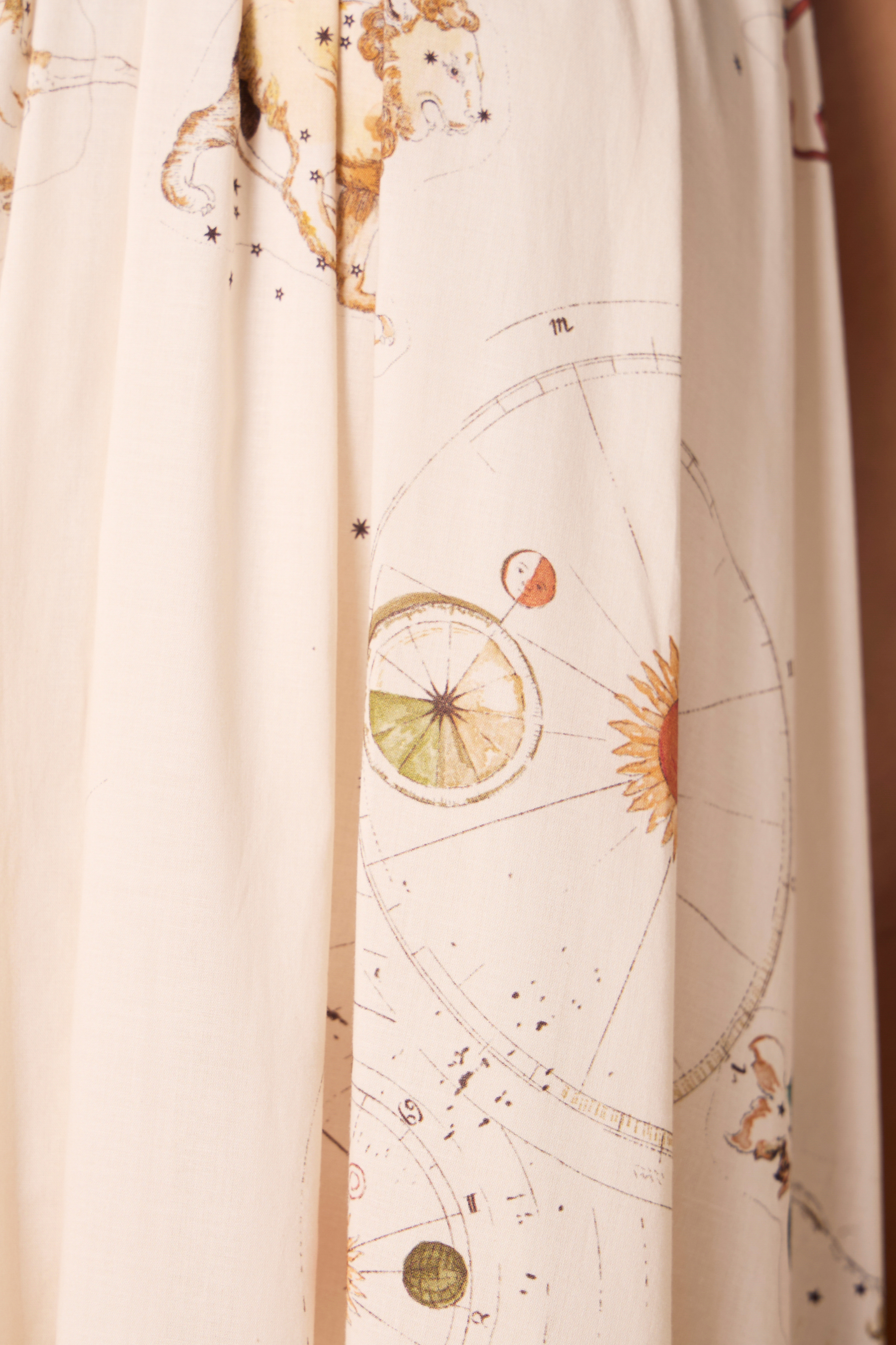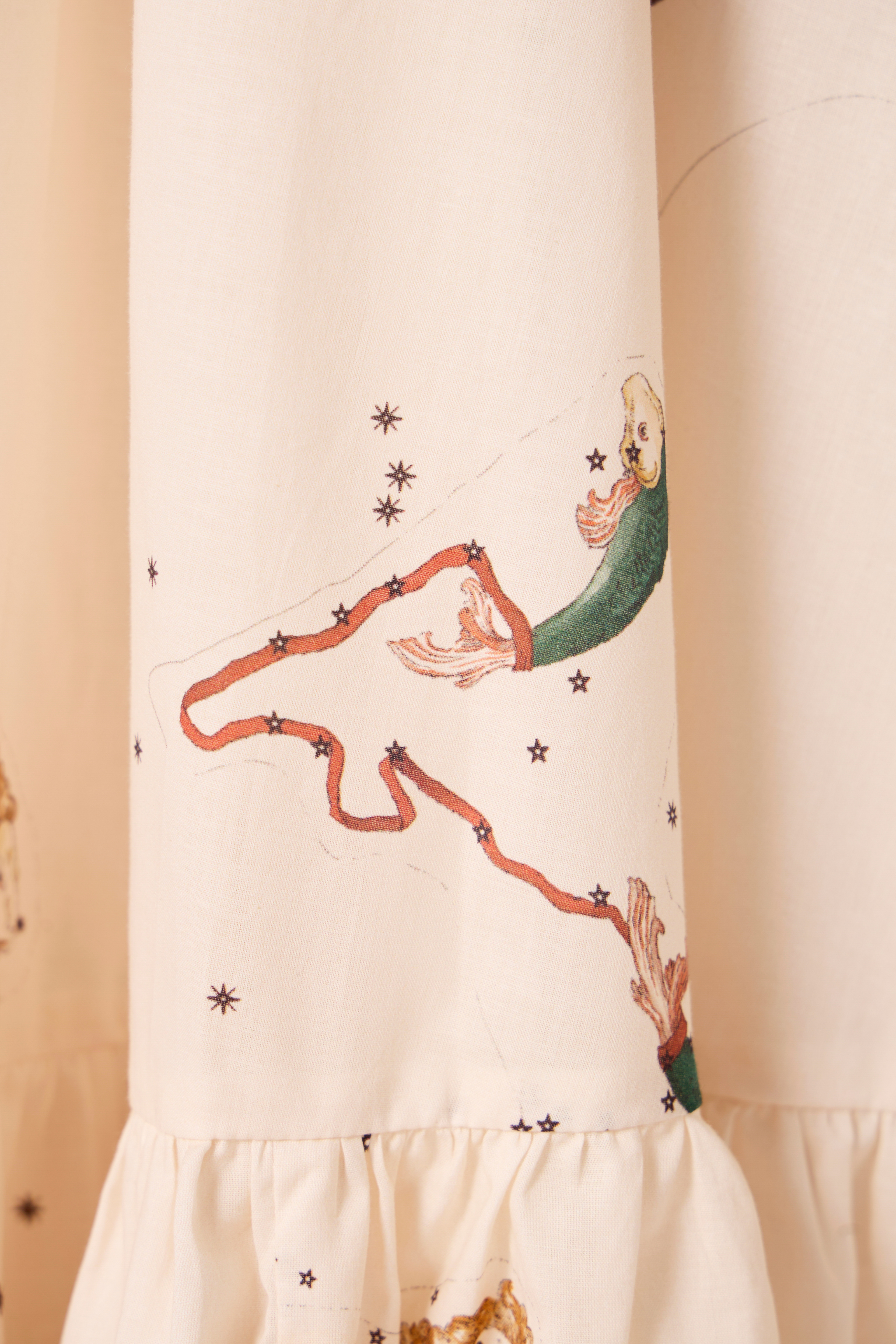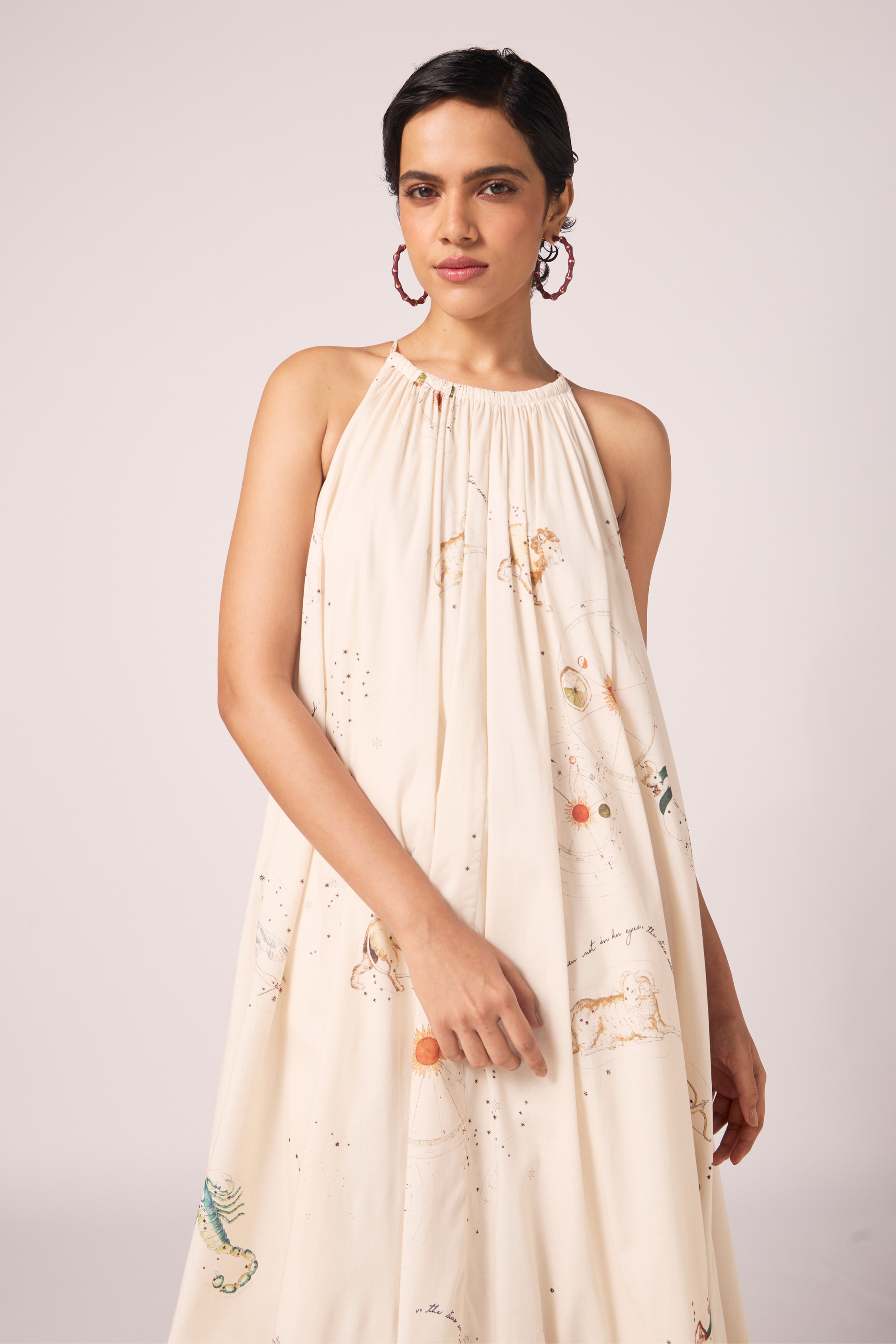 Elongated in line, light in spirit. The shoulder baring halter neckline frames the shoulders, while the print unfurls across the dress, giving scale and depth. A silhouette designed to flatter and move. - Relaxed Fit - Anushka is 5'8 and wearing XS . Her body measurements are Bust: 32", Waist: 29", Hips: 36" - Organic cotton cambric - Sleeveless; Low-cut back with straps looped for double strength and concealed back zip fastening - In-seam pockets