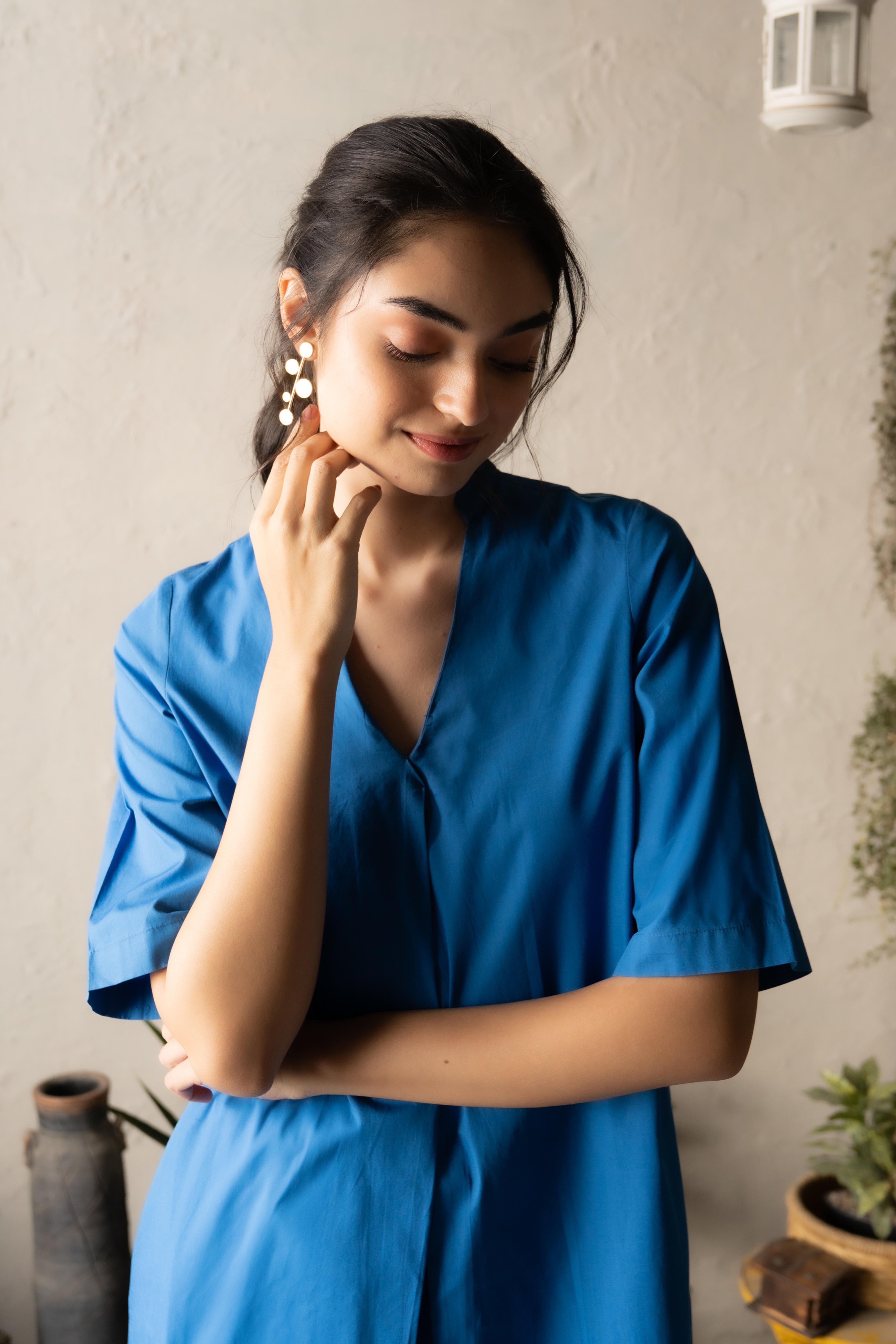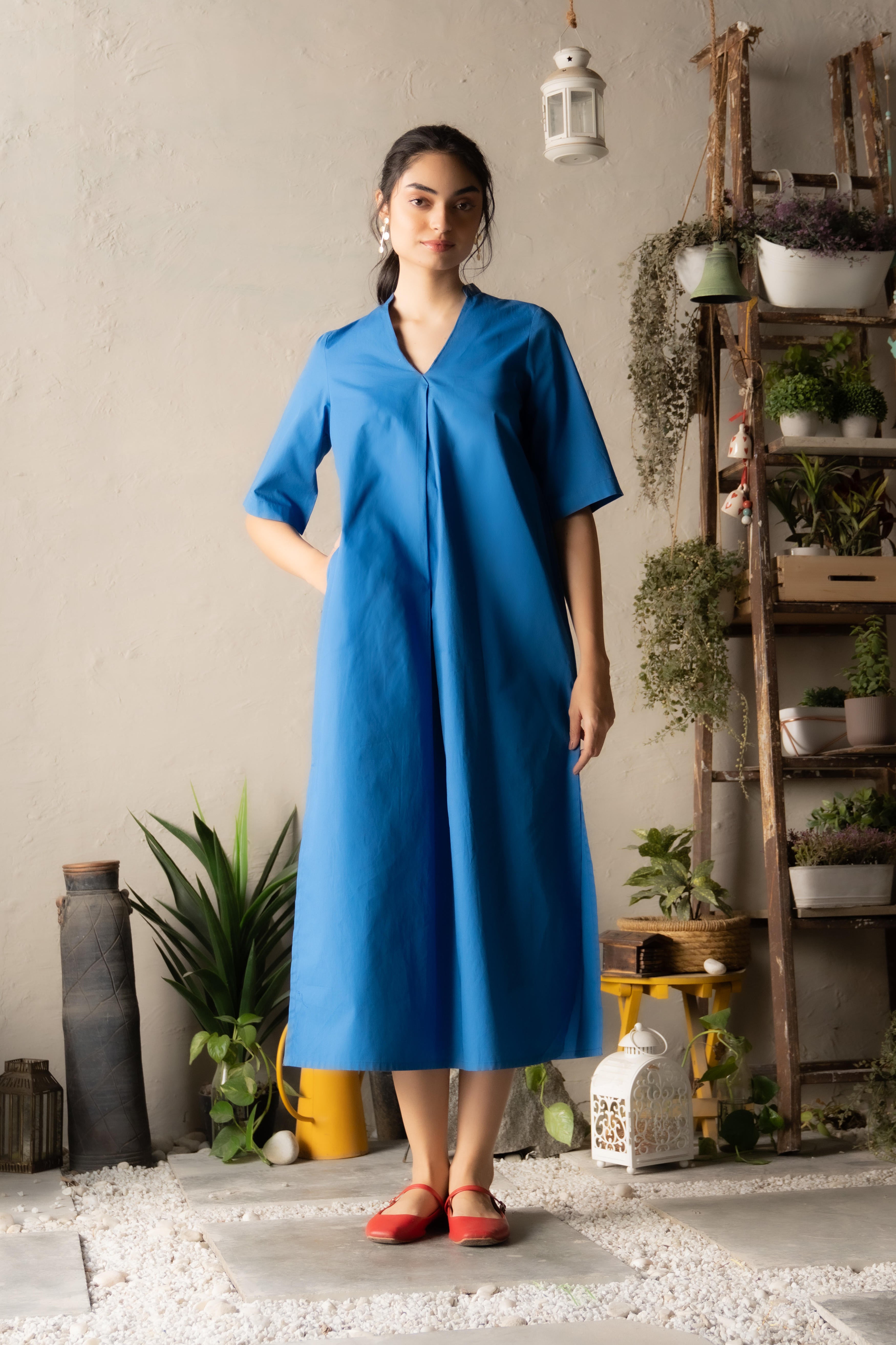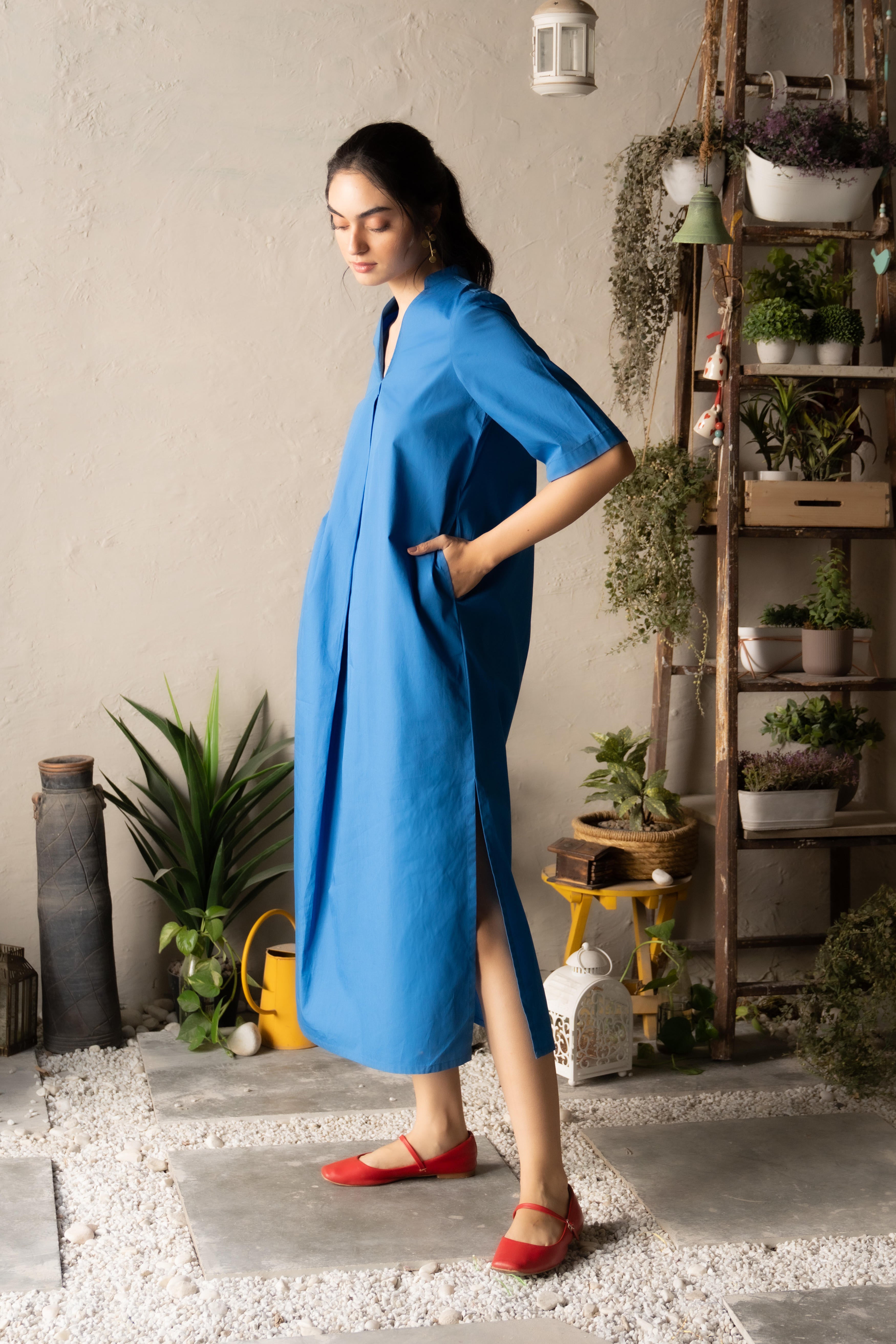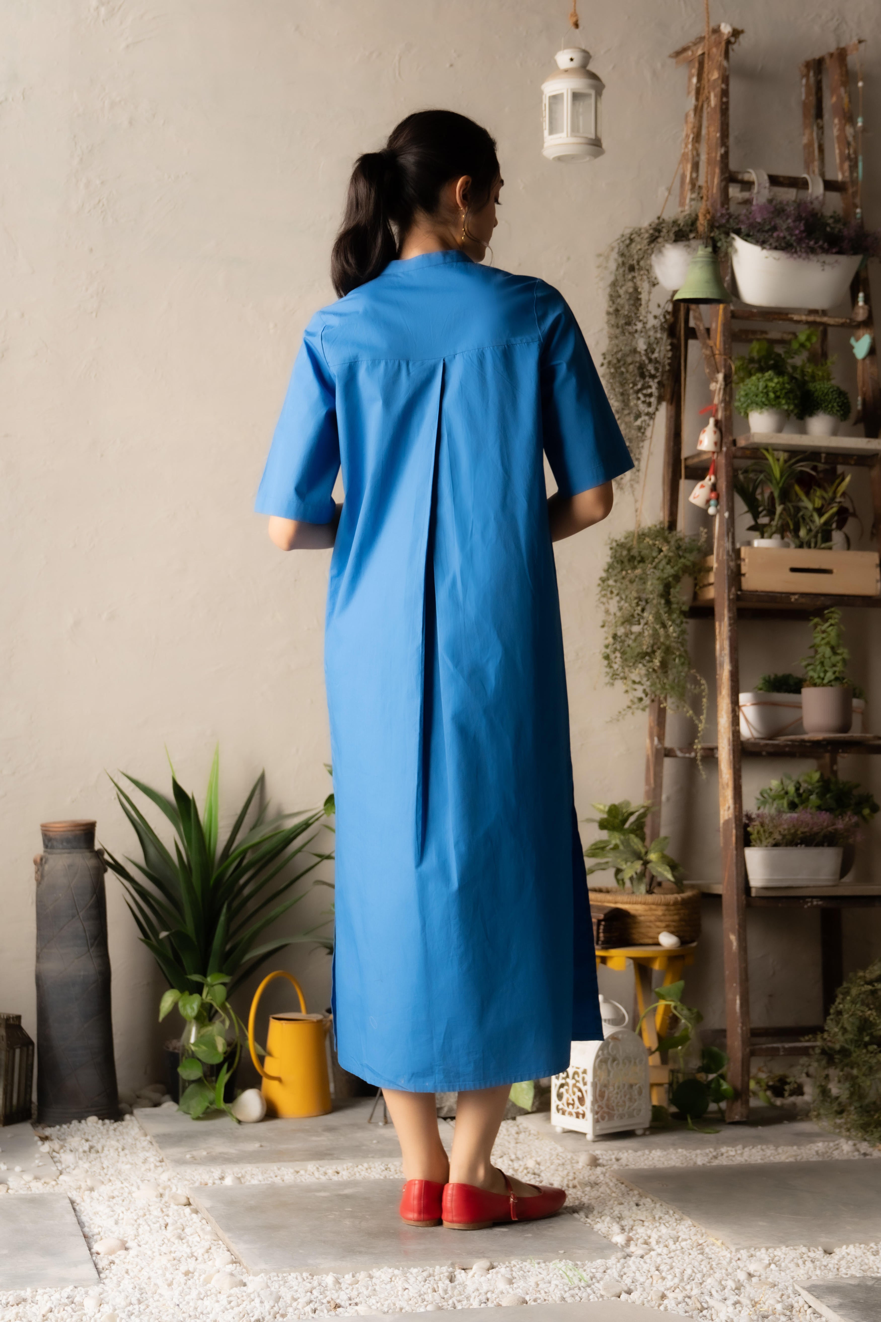 Inspired by the tranquility and mystery of the night, the Nocturne Dress combines effortless elegance with practicality. Crafted in a stunning cobalt blue, it features a straight silhouette accented with front pleats and functional side slits for ease and comfort. Designed with convenient side pockets, this versatile piece offers both style and utility. Perfect for casual outings, evenings out, or days when you want to embrace modern sophistication with minimal effort.
